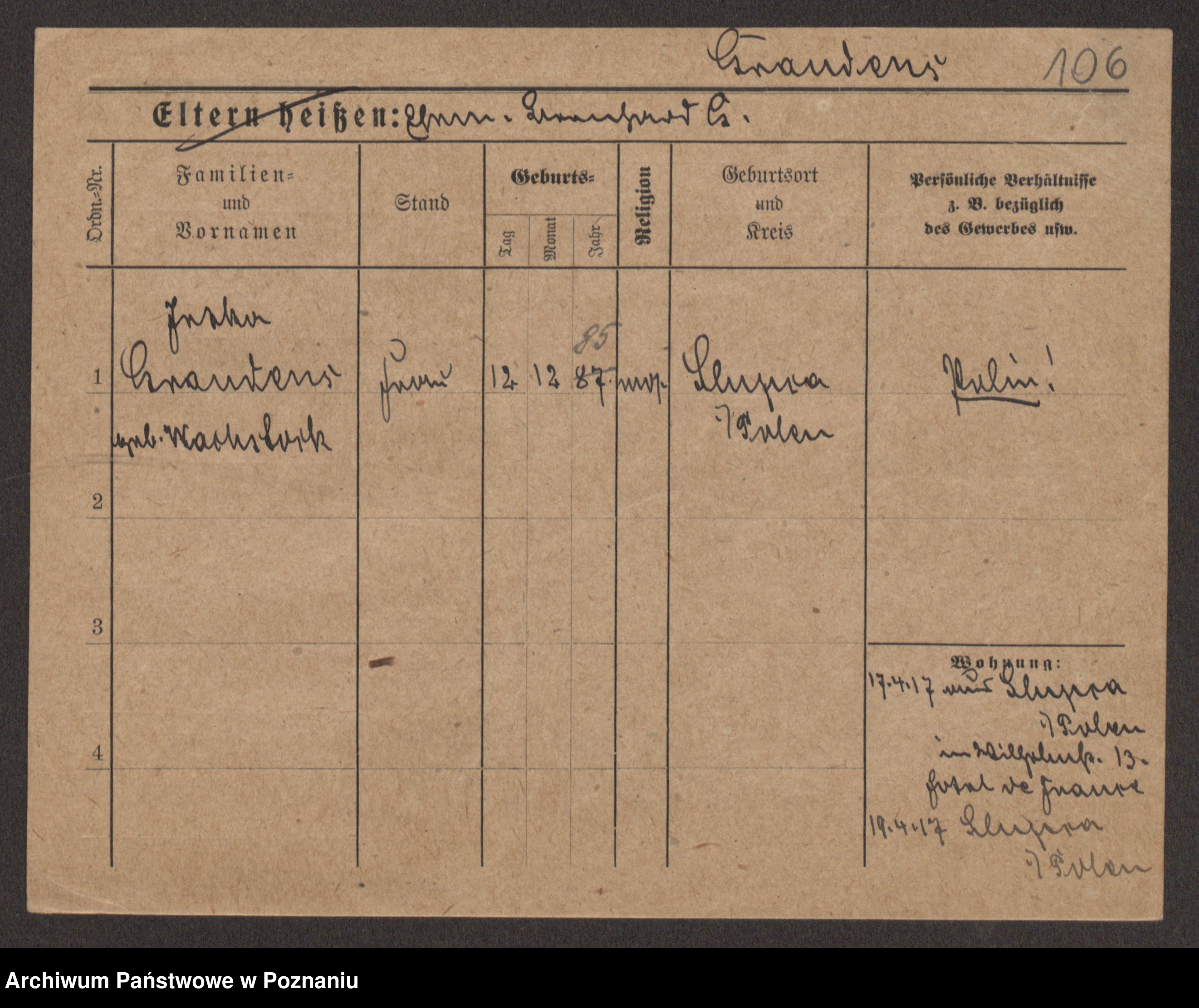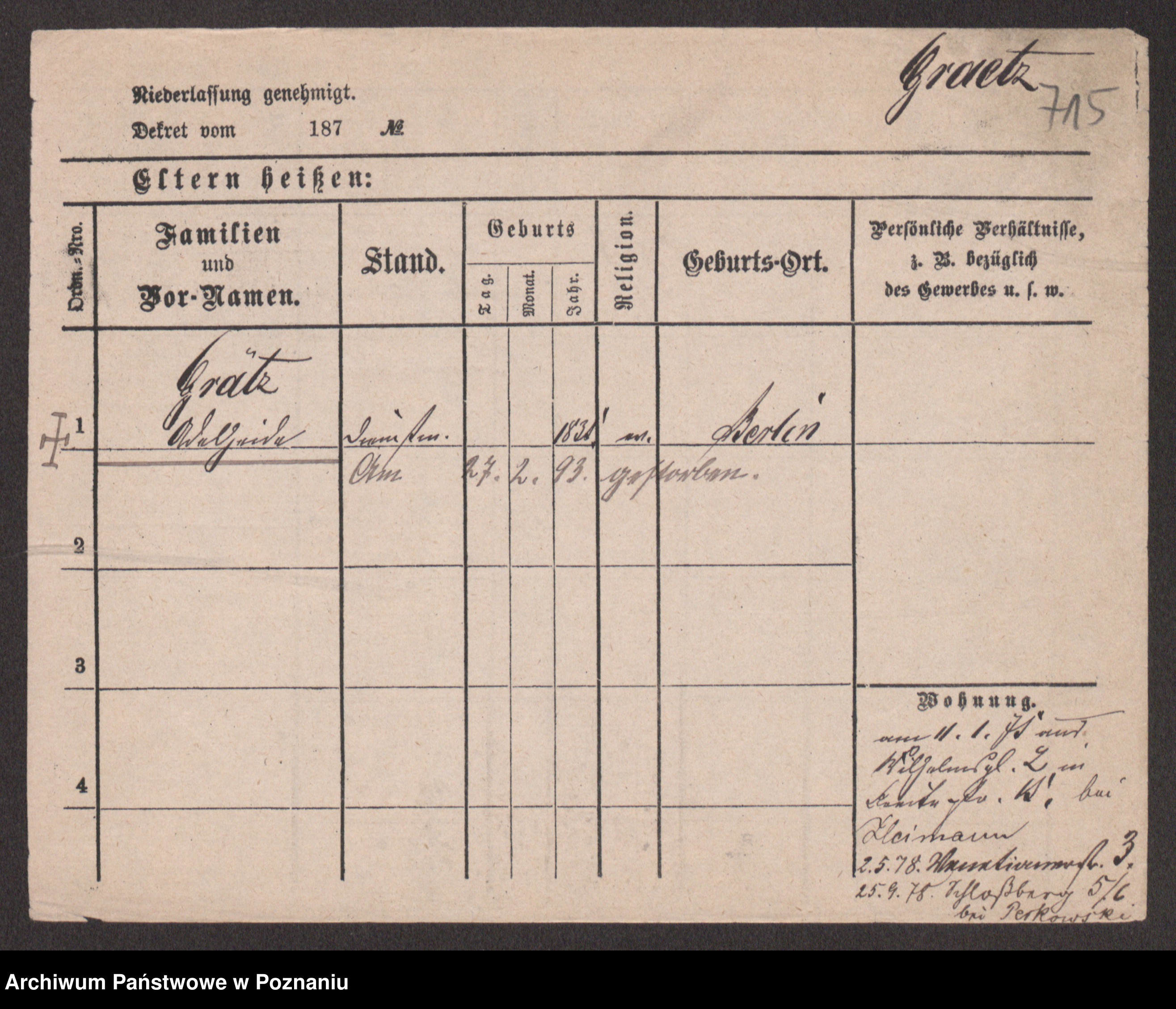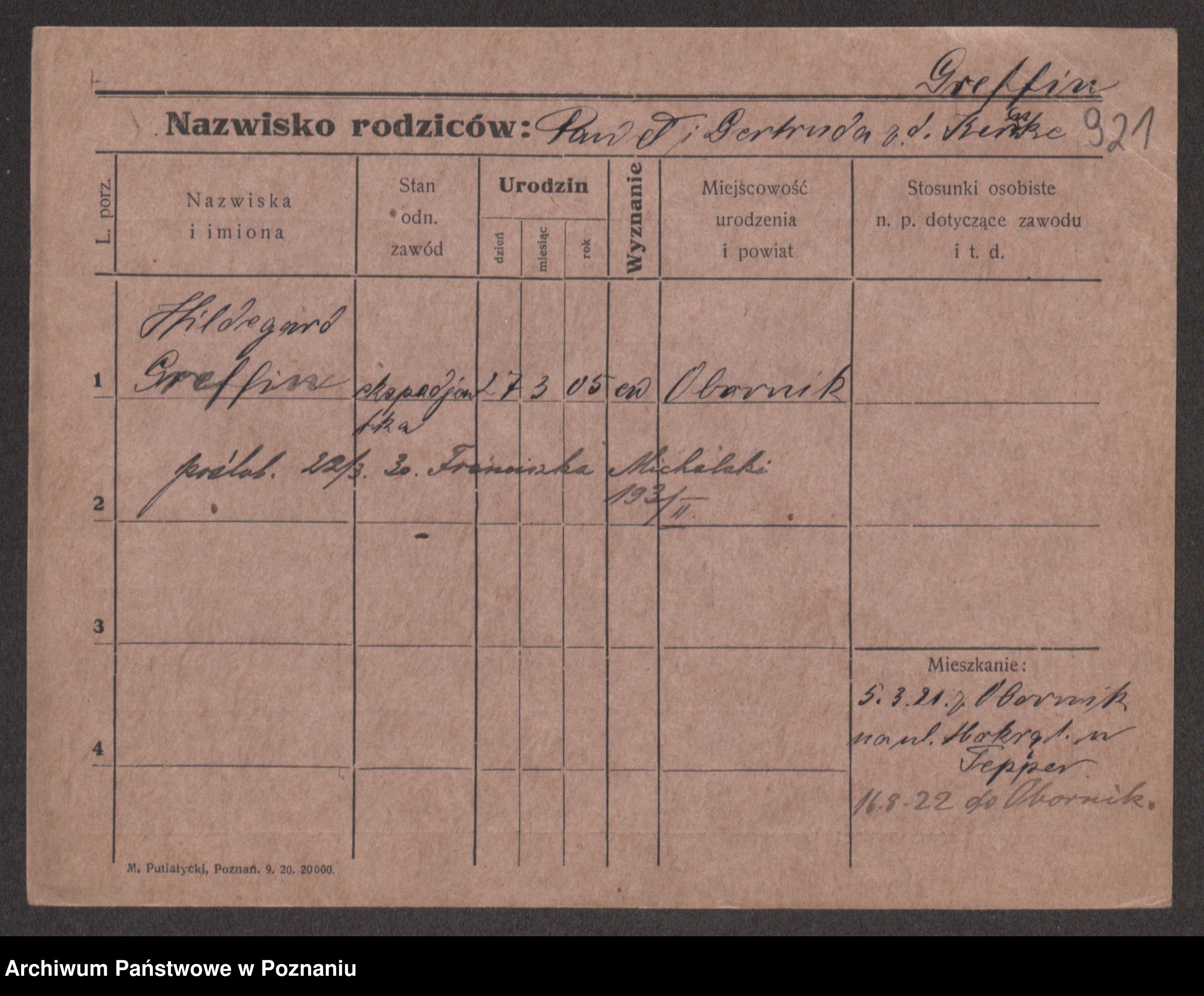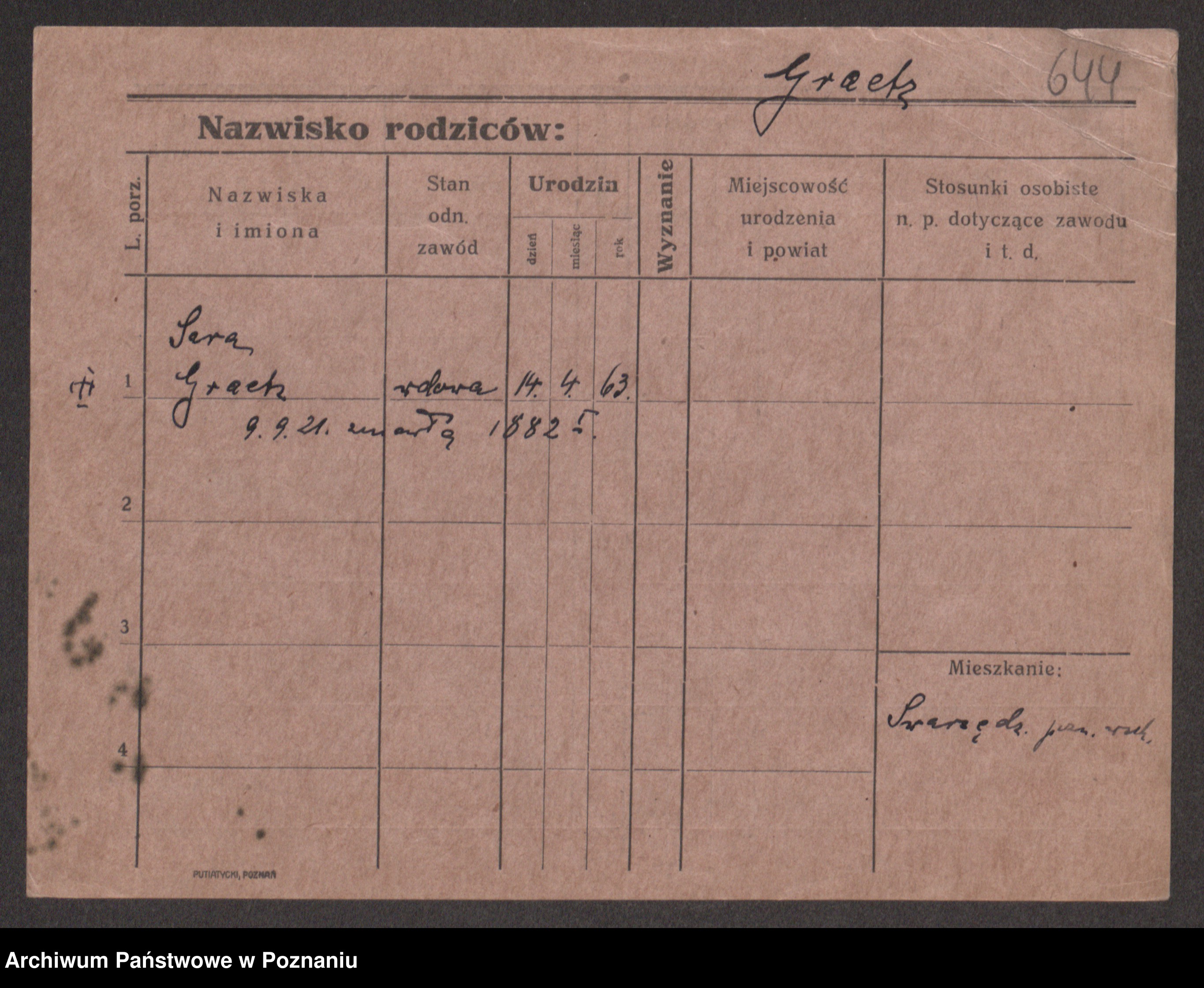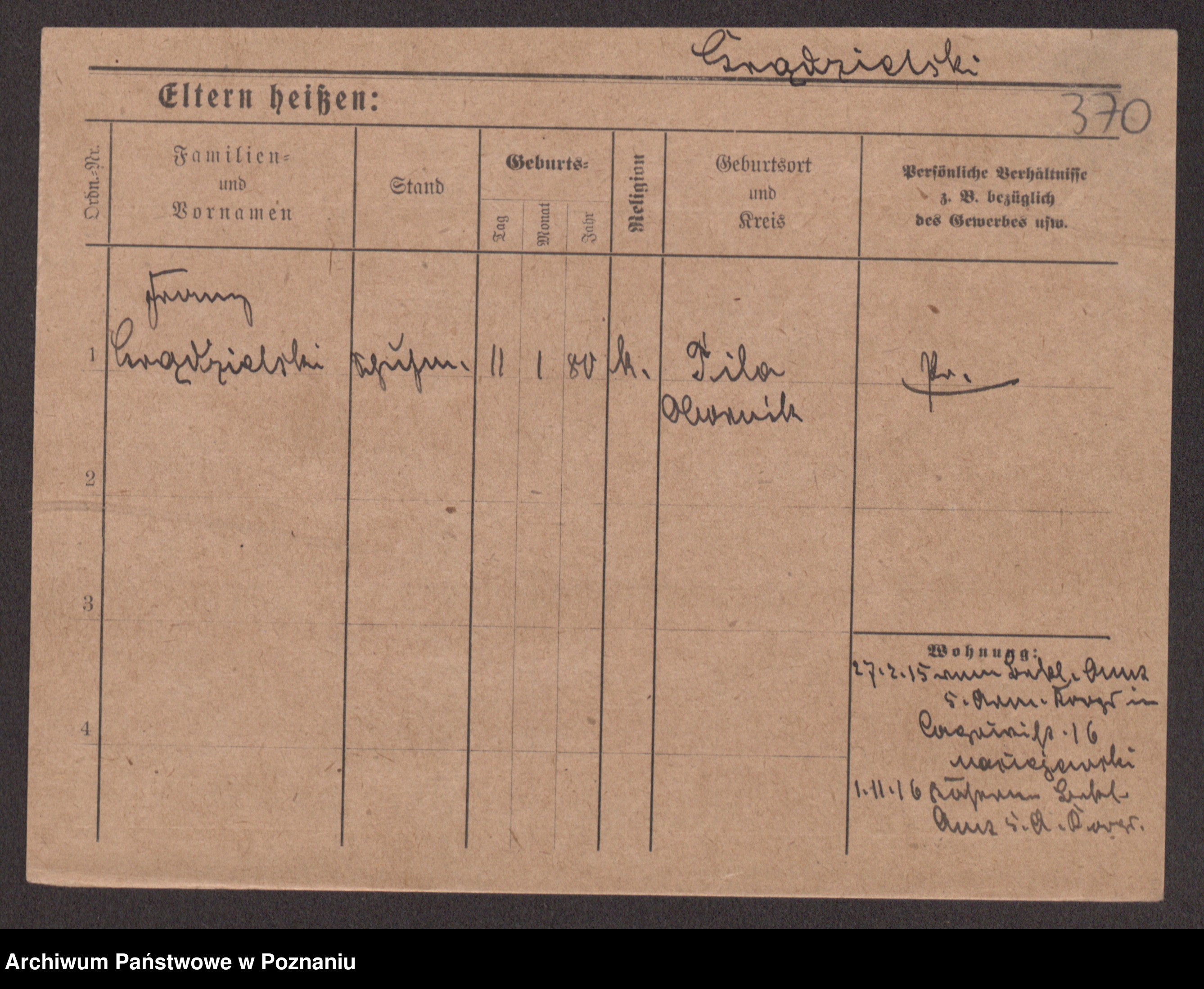 Graefling z d. Stanislawska 1. voto Grzeskowiak, Marianna
