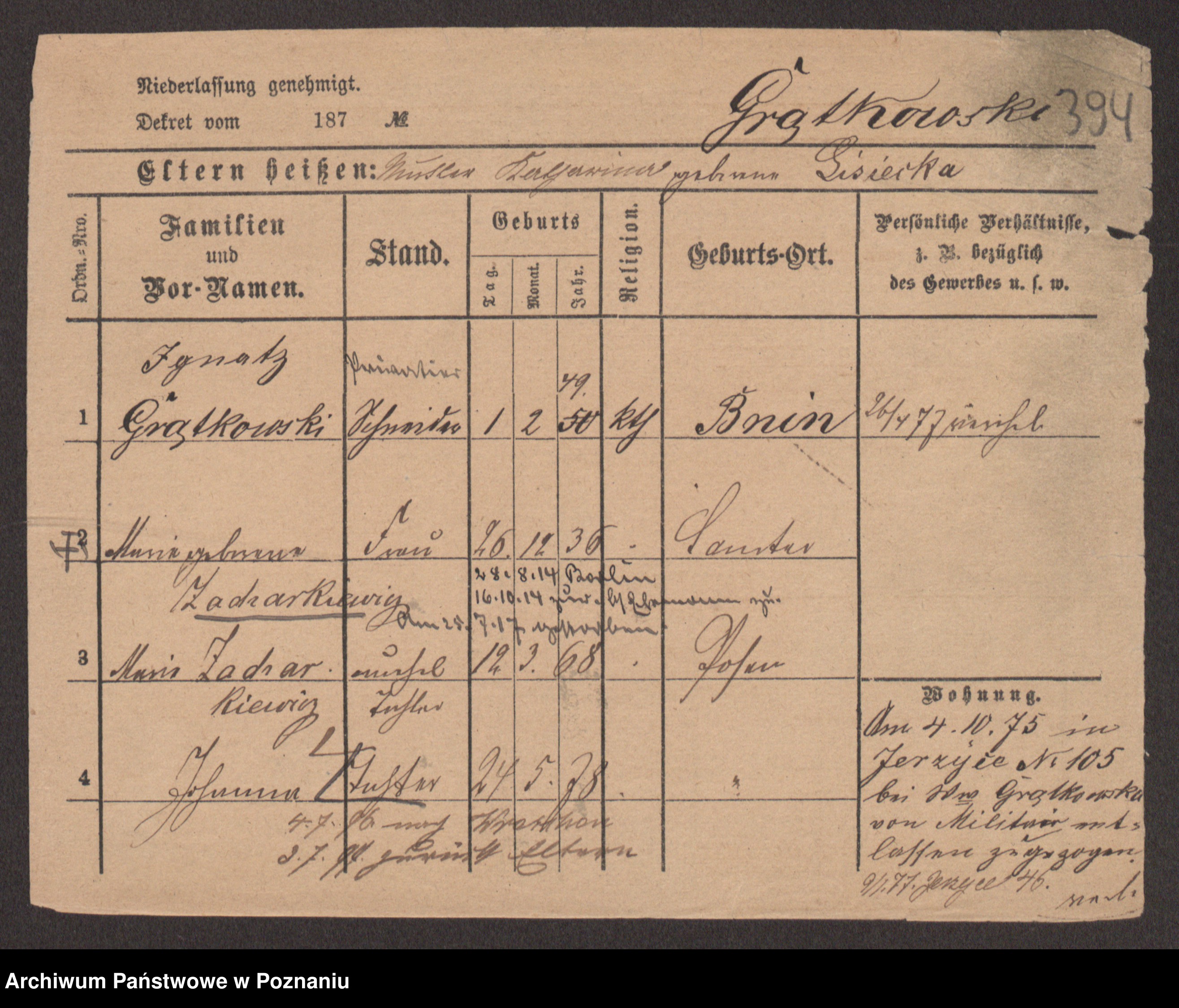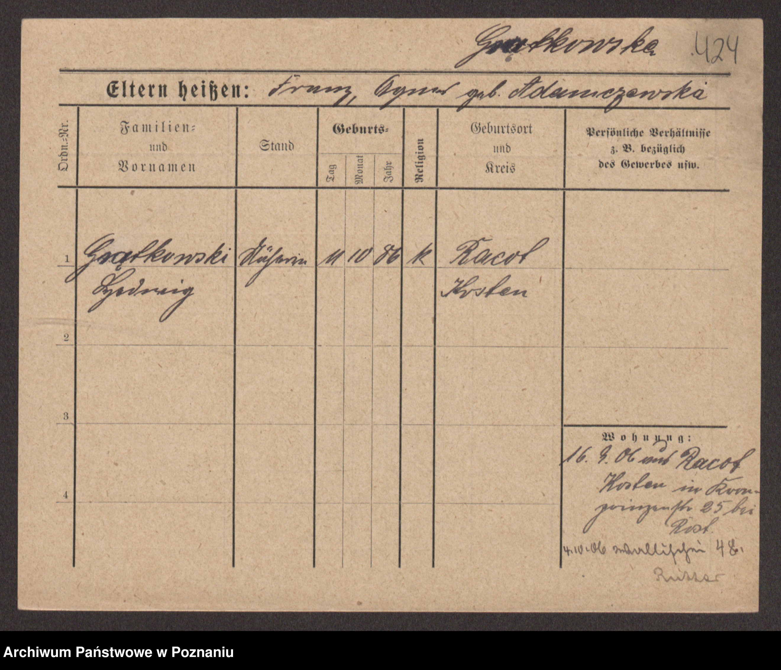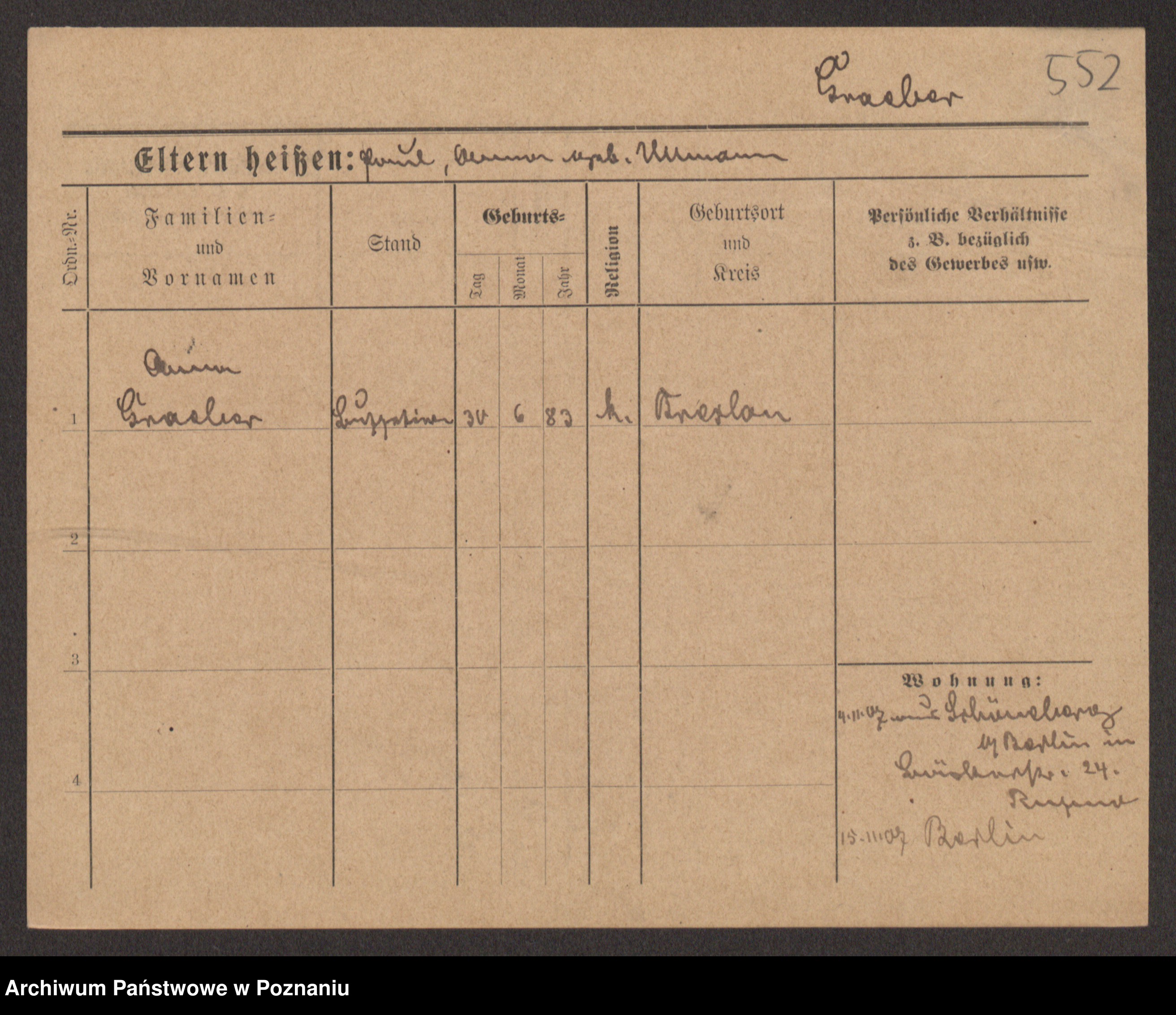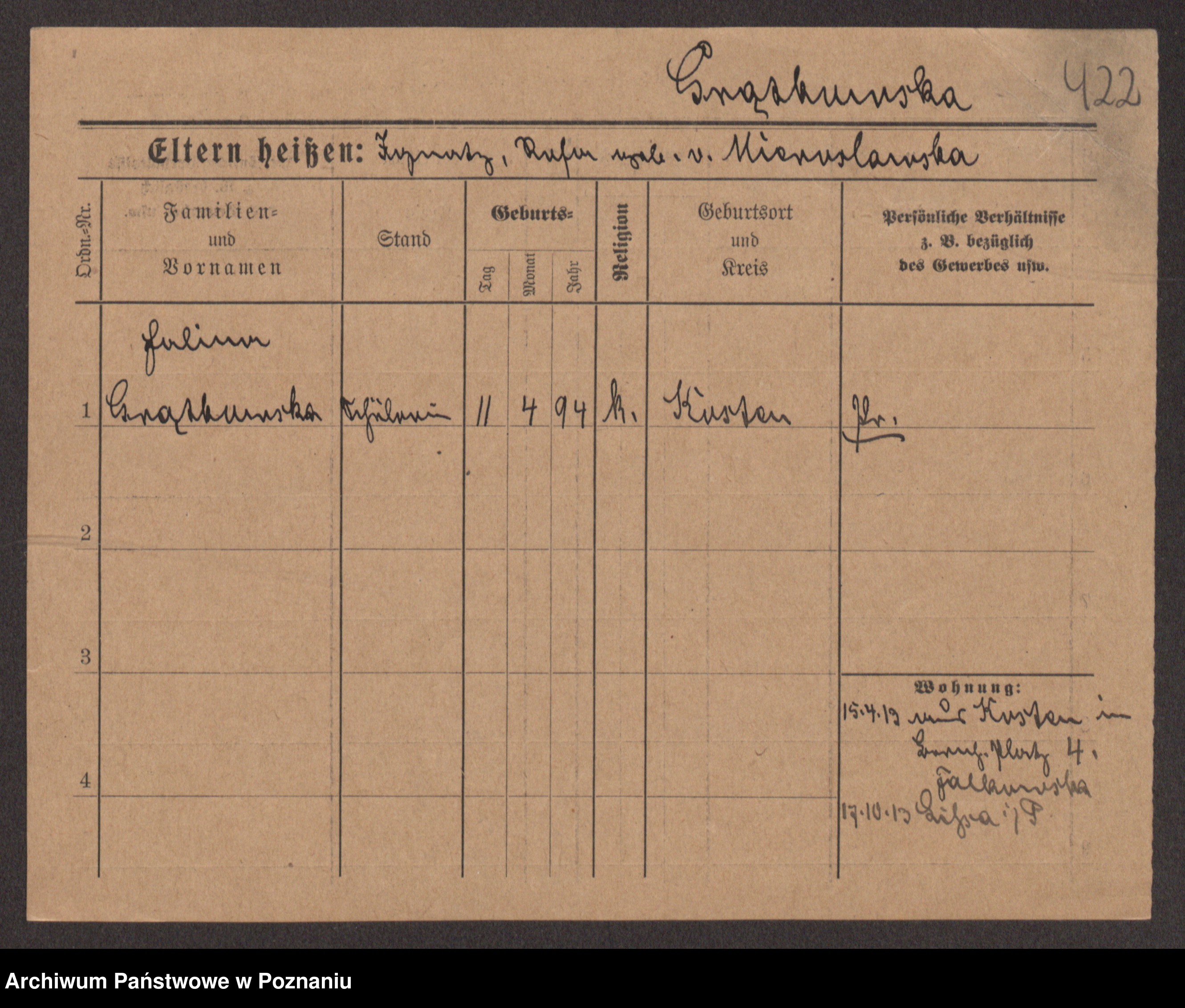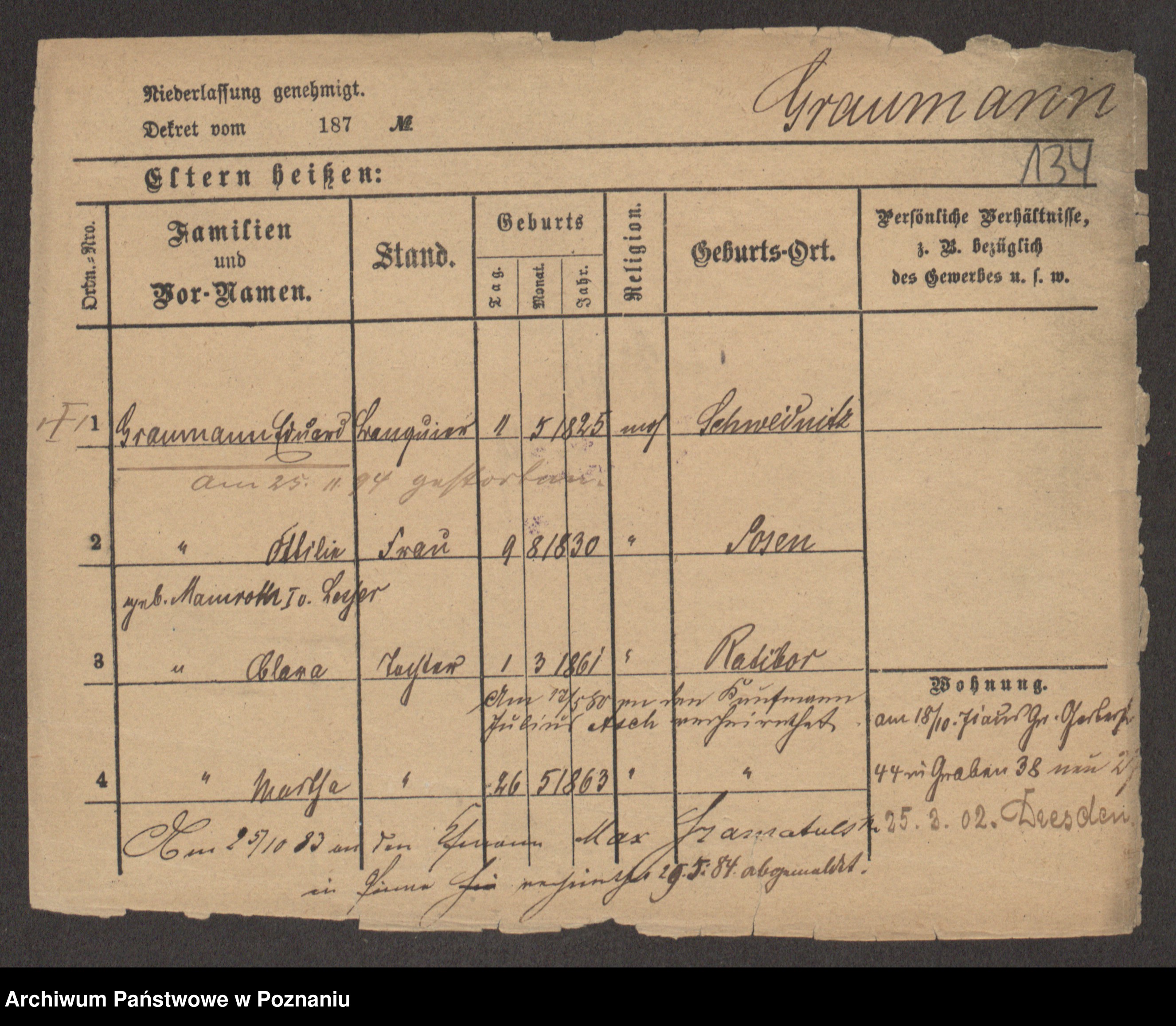 Graefling z d. Stanislawska 1. voto Grzeskowiak, Marianna