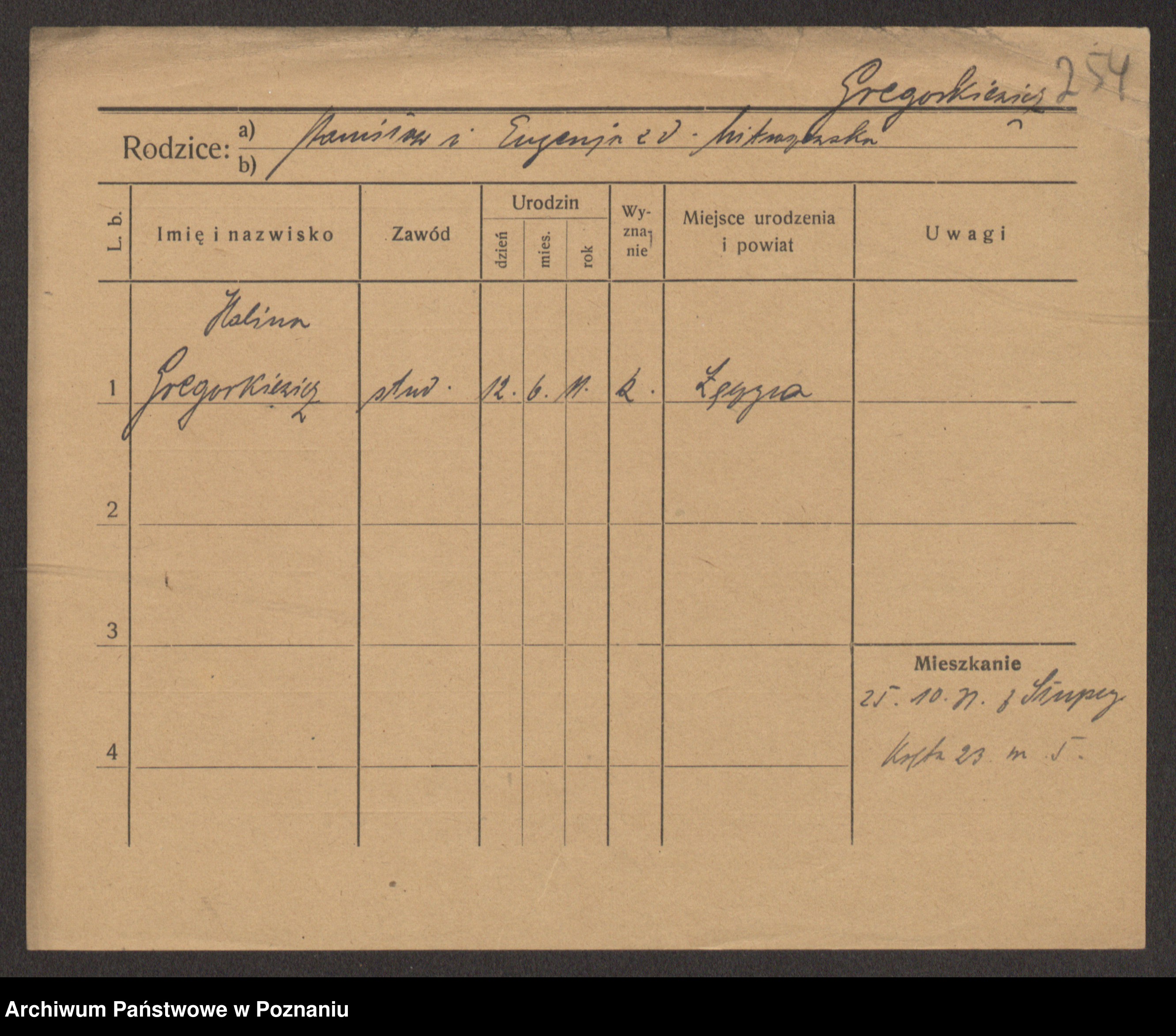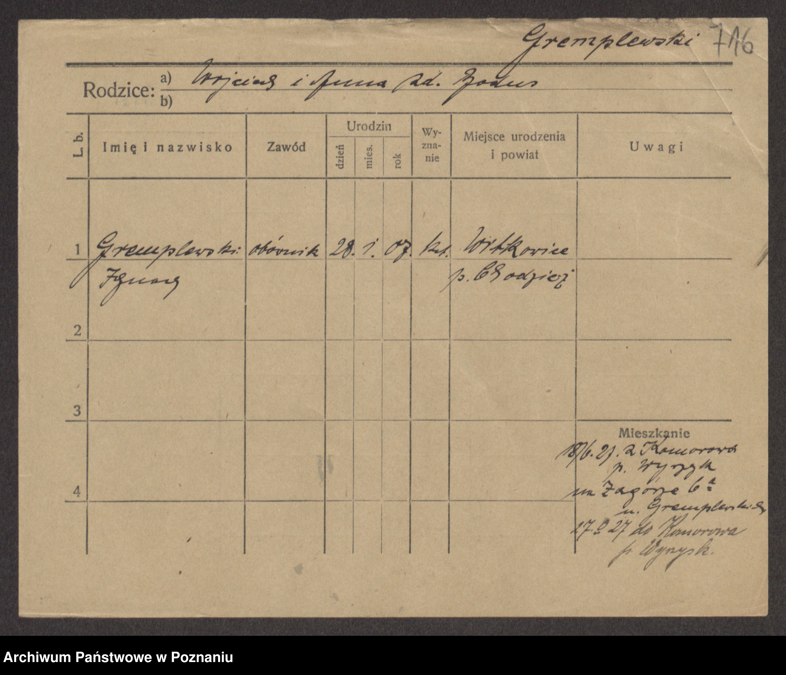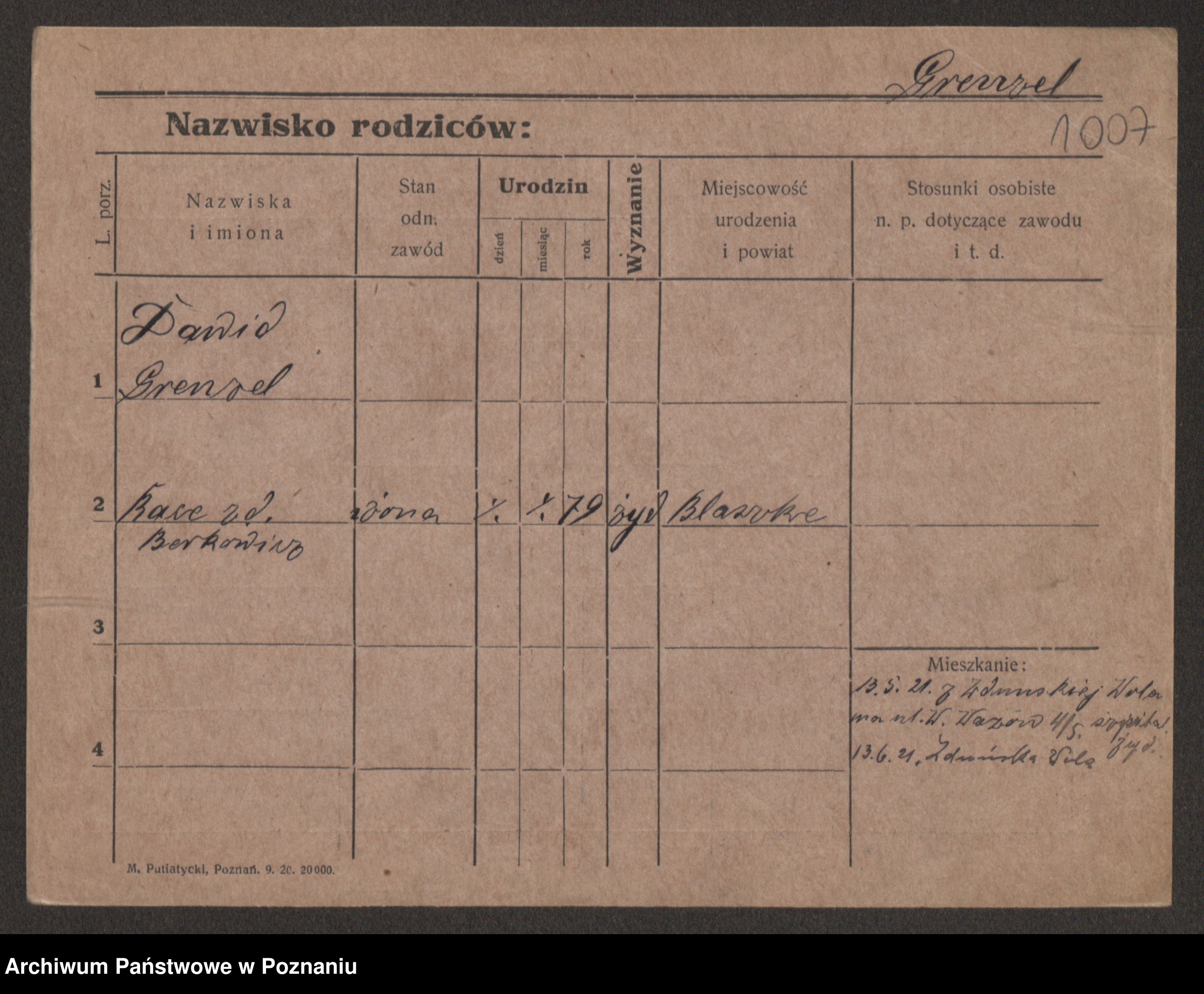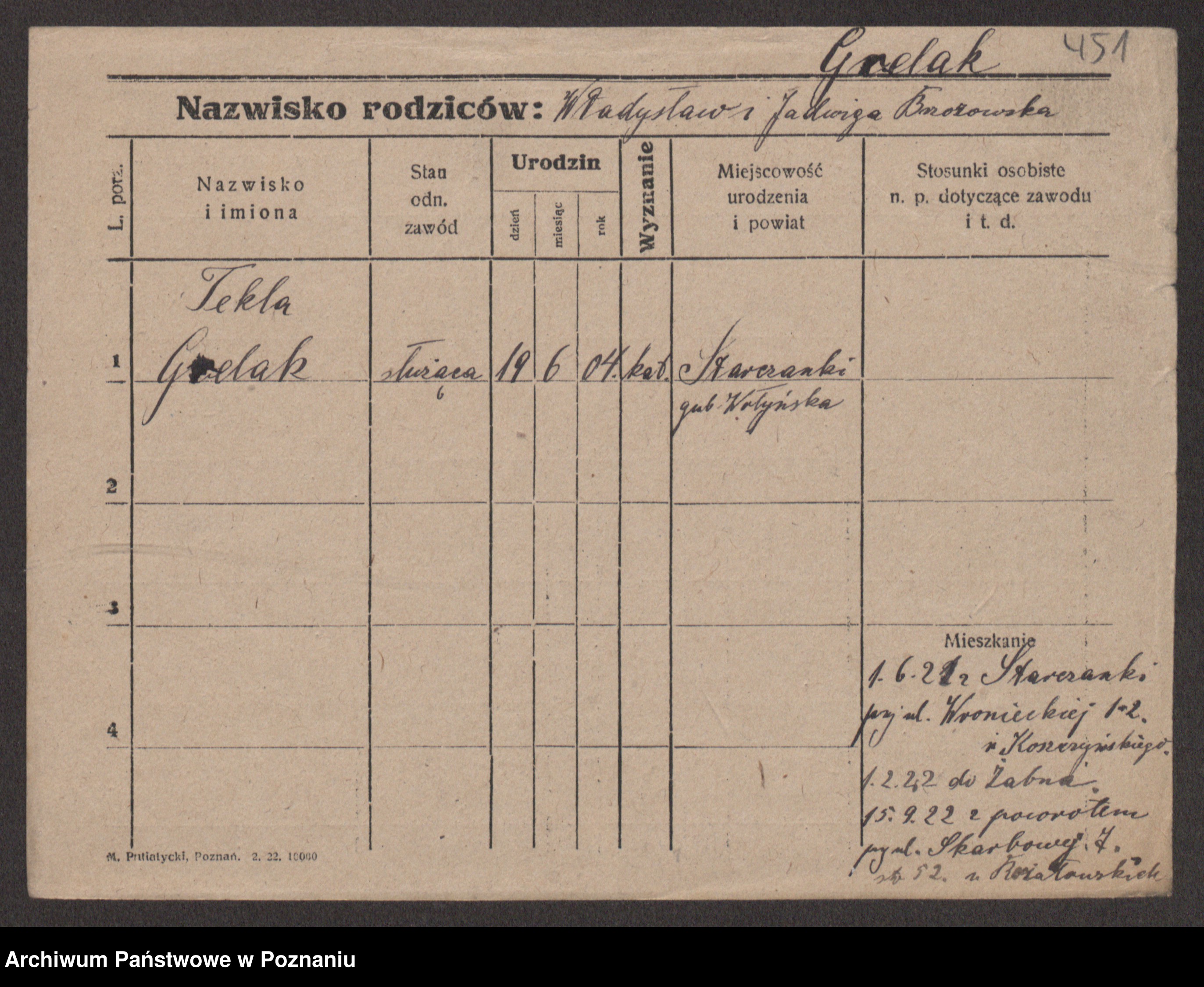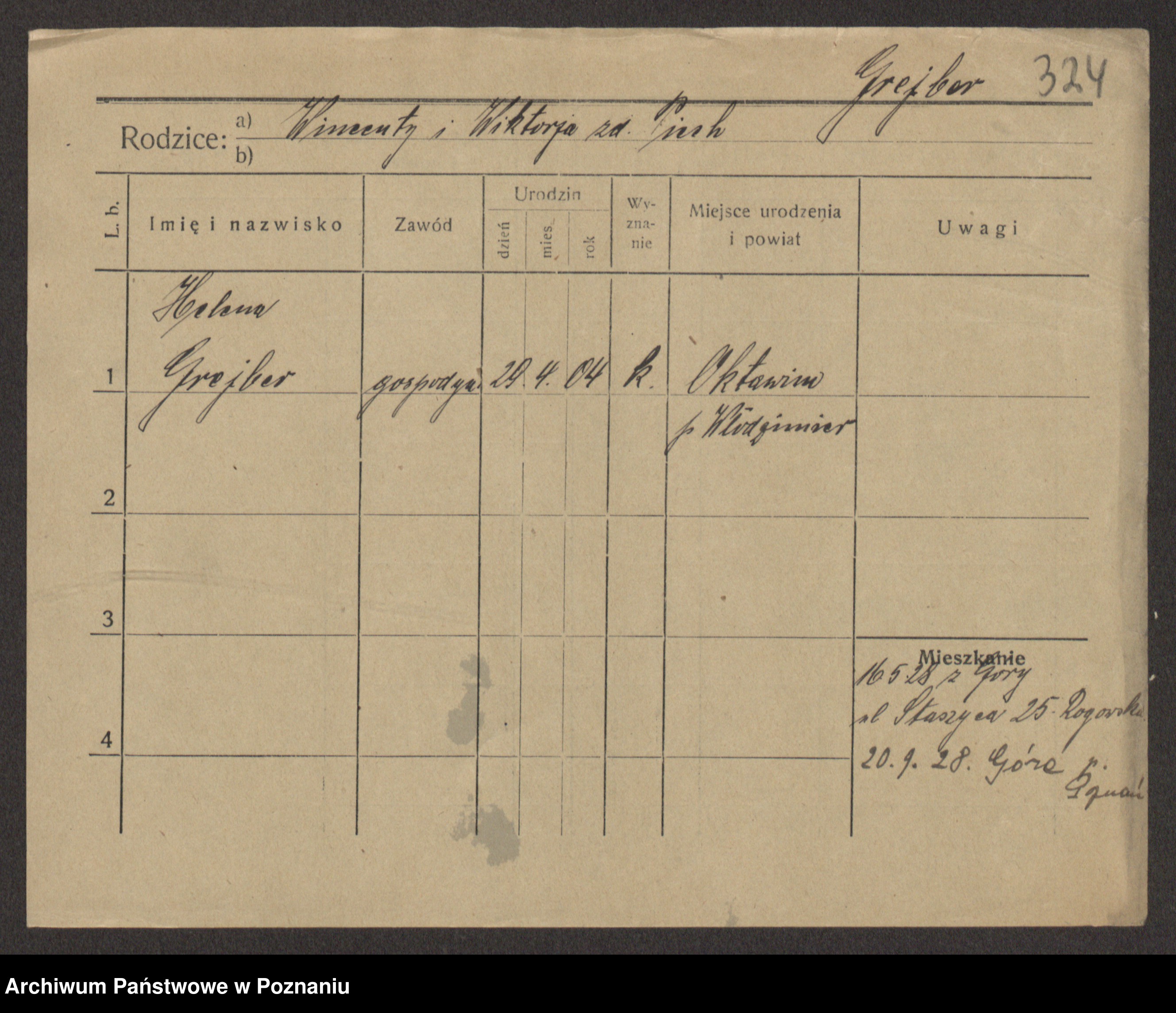 Podgląd karty osobowej dostępny jest po kliknięciu na nazwisko lub ikonkę karty. Można dokonywać powiększenia (ikony na górze) lub przechodzić między kolejnymi skanami (strzałki po bokach).