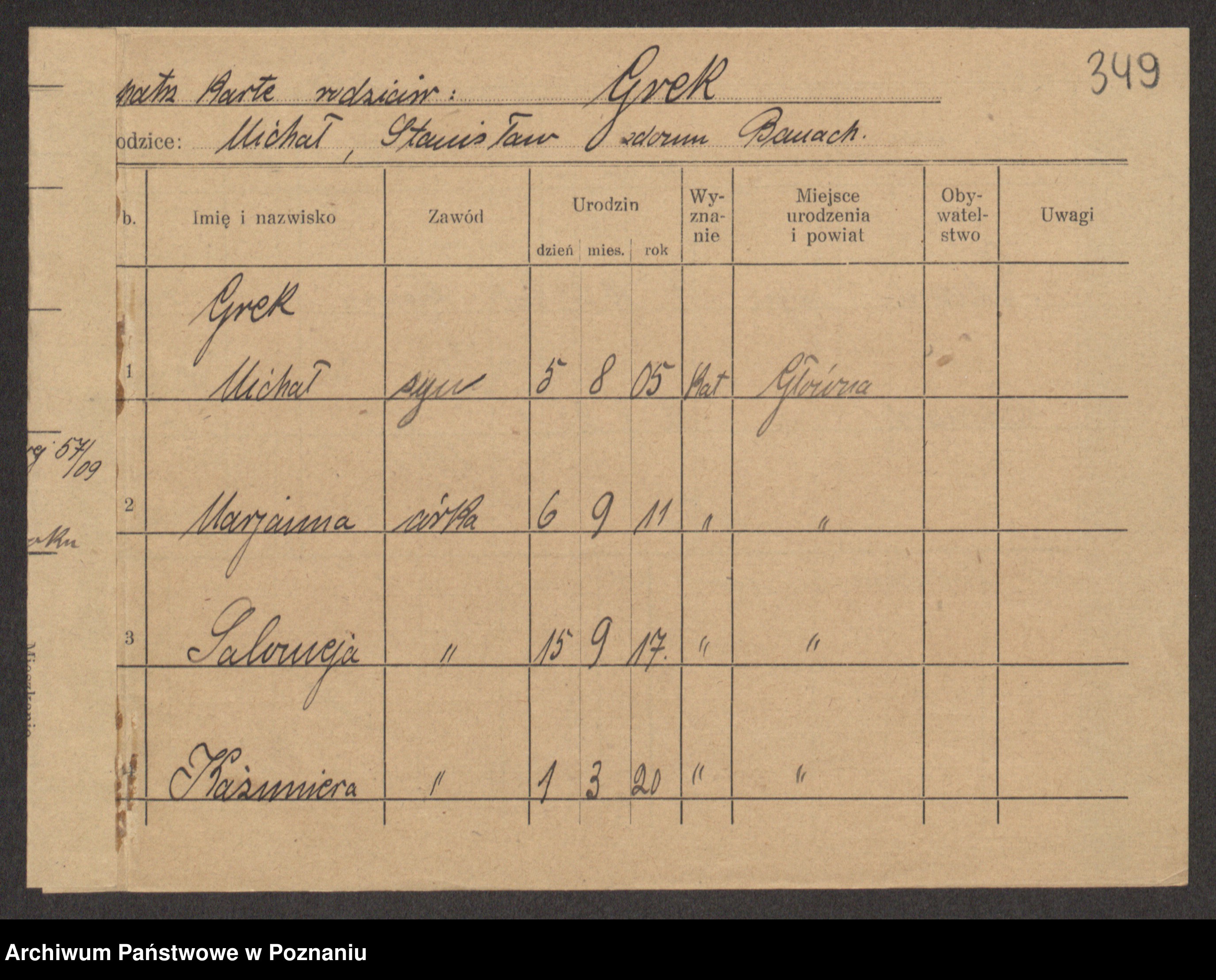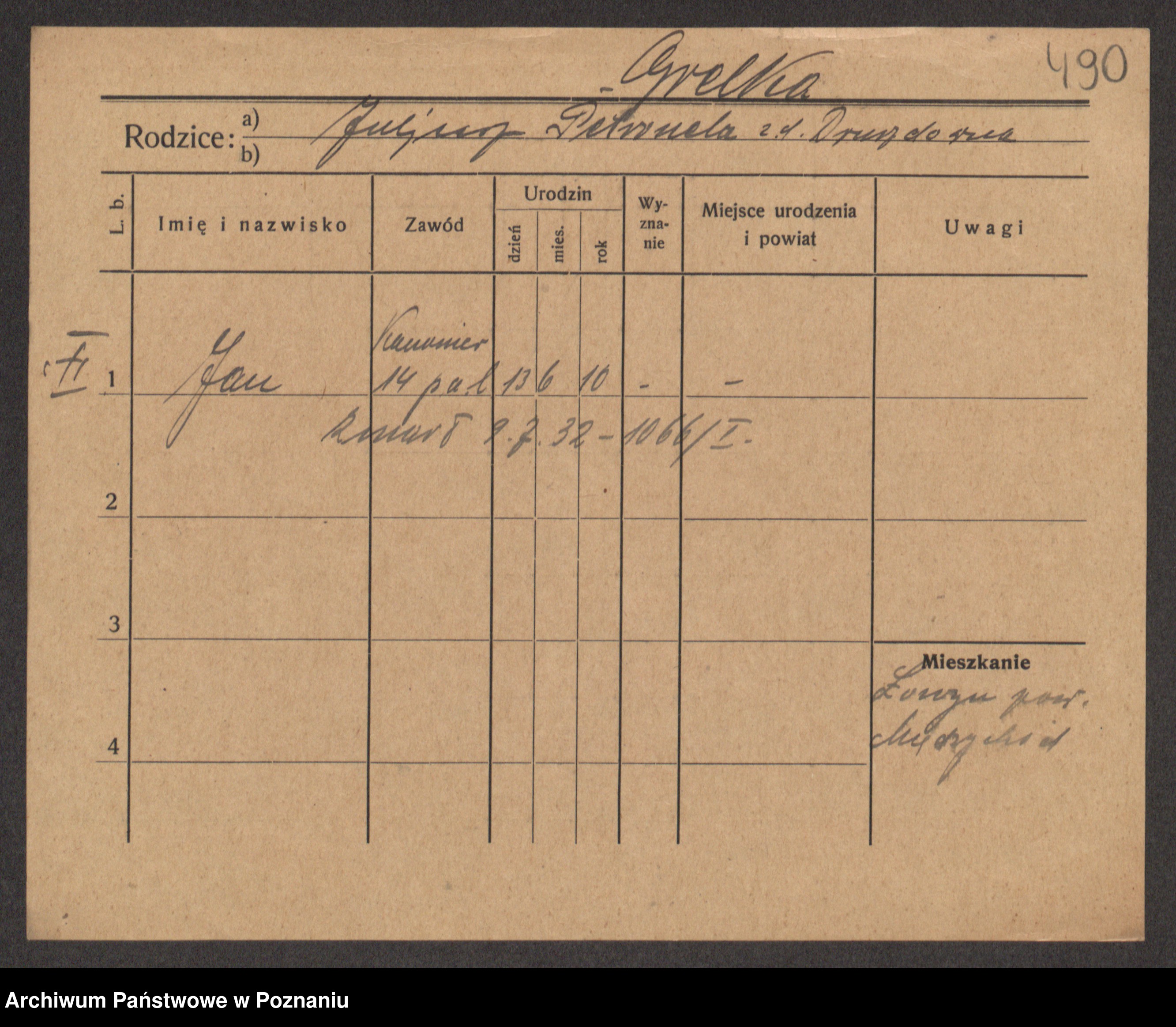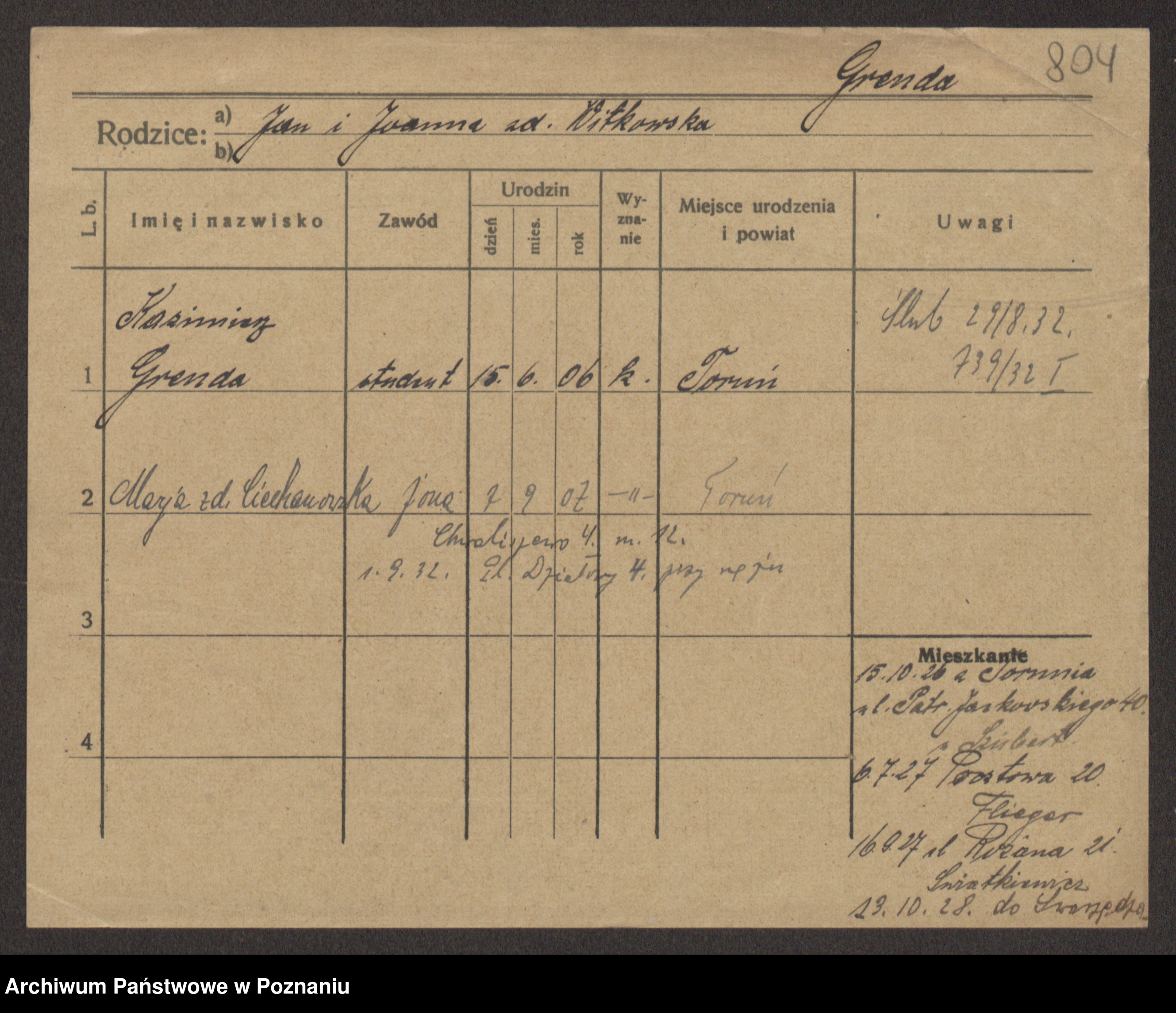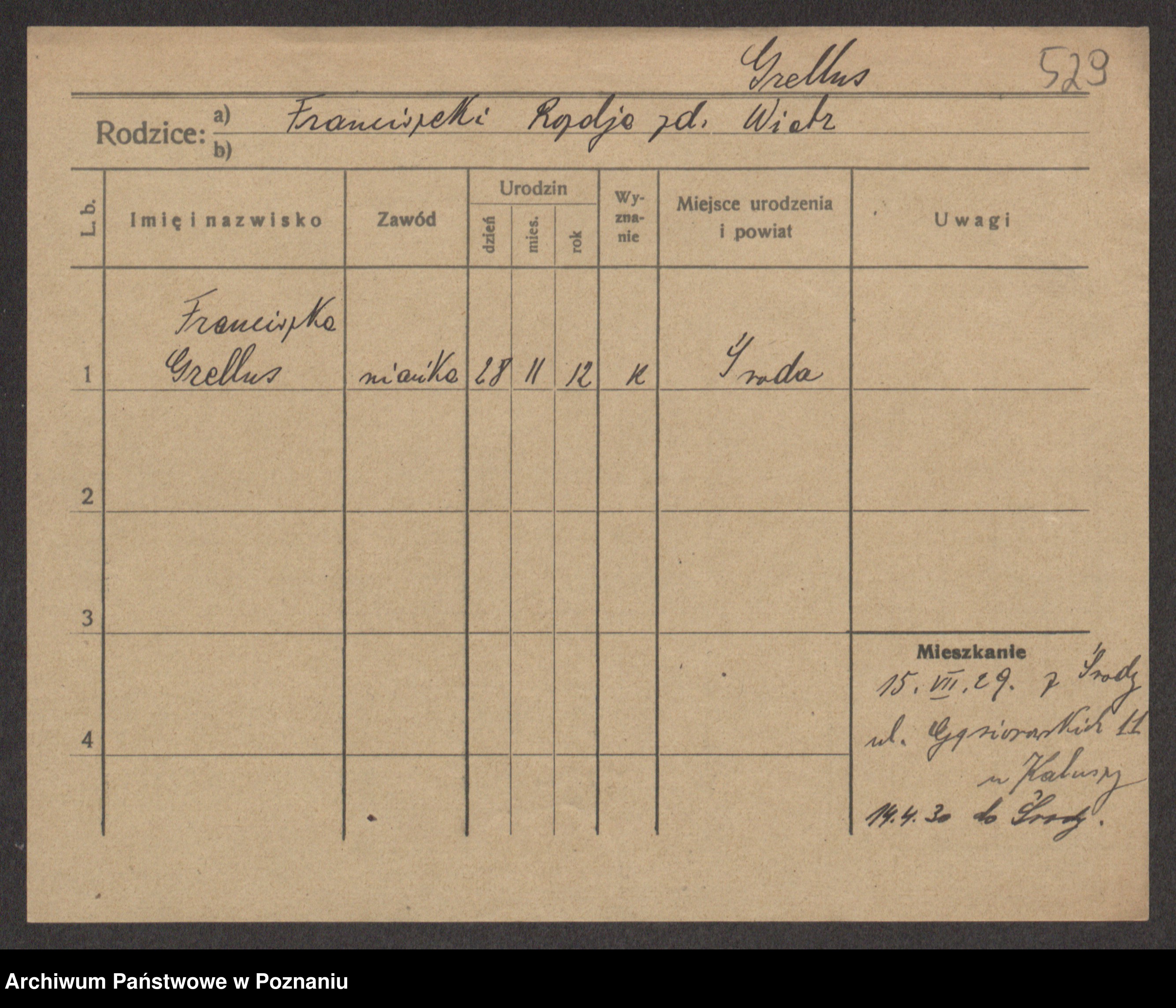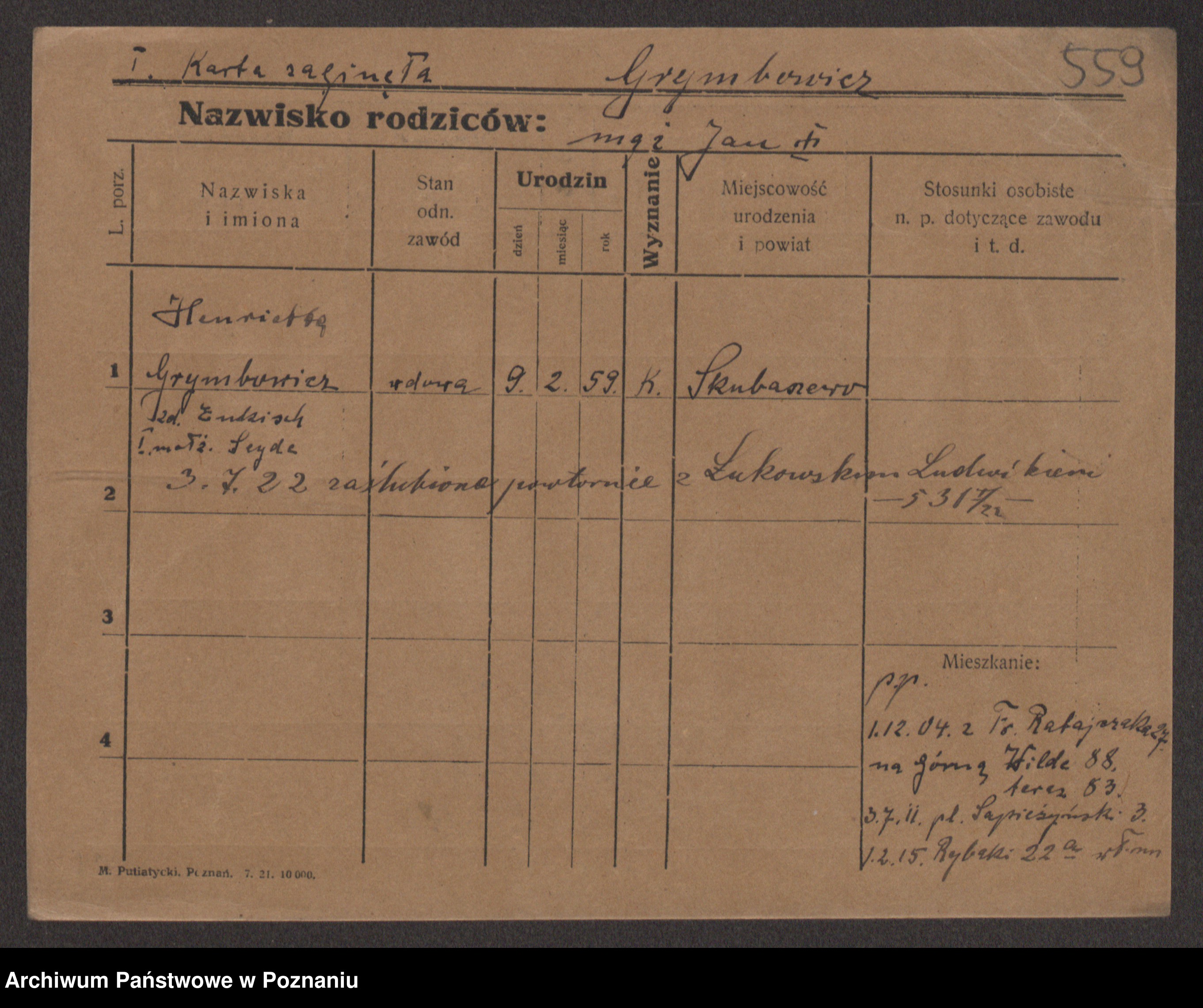 Podgląd karty osobowej dostępny jest po kliknięciu na nazwisko lub ikonkę karty. Można dokonywać powiększenia (ikony na górze) lub przechodzić między kolejnymi skanami (strzałki po bokach).