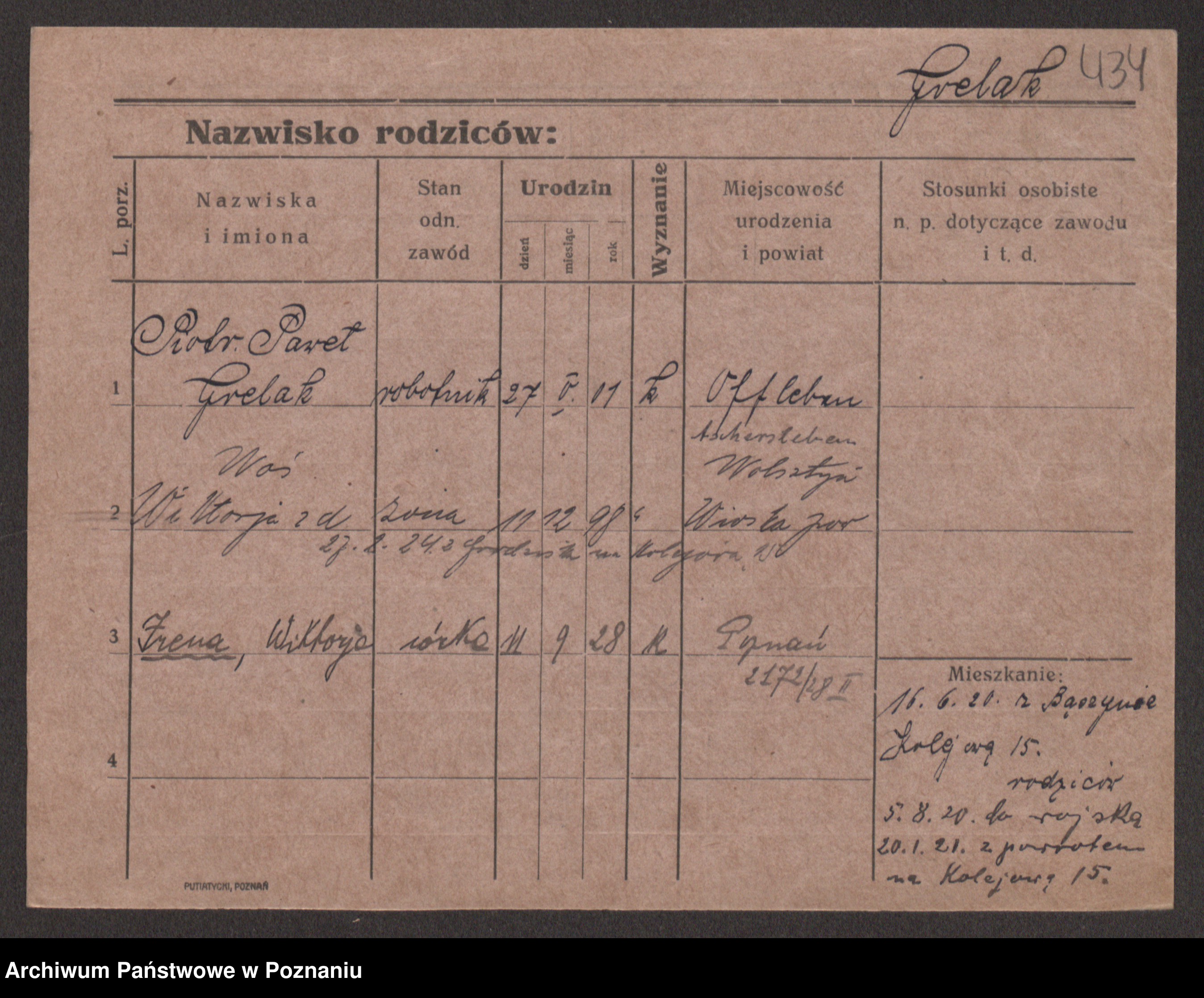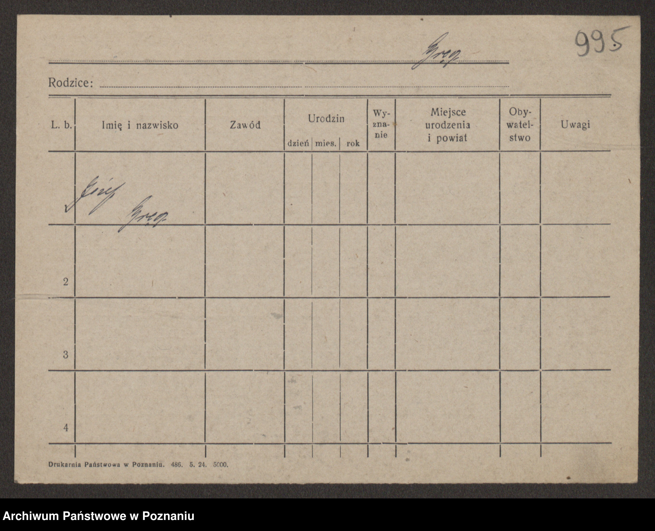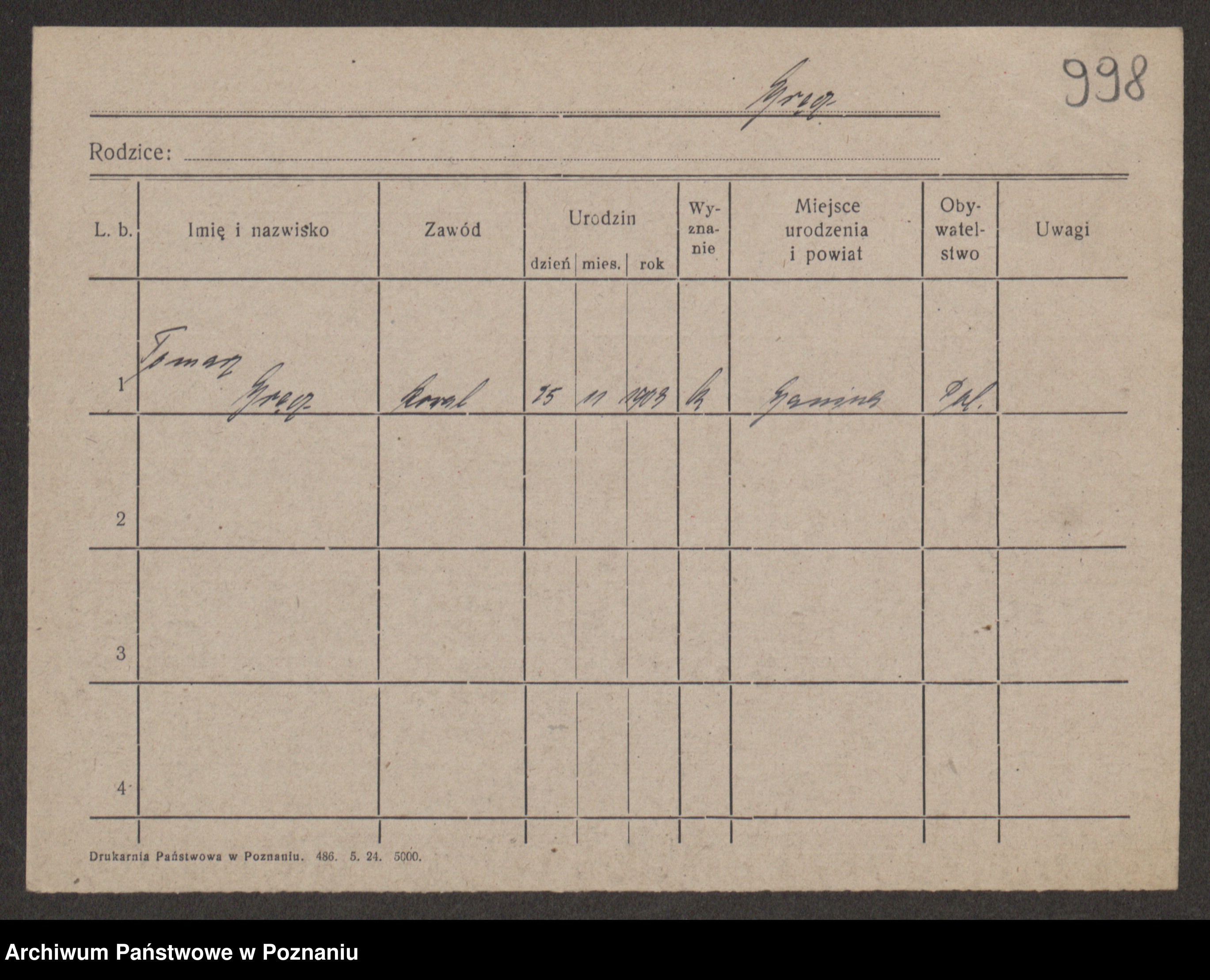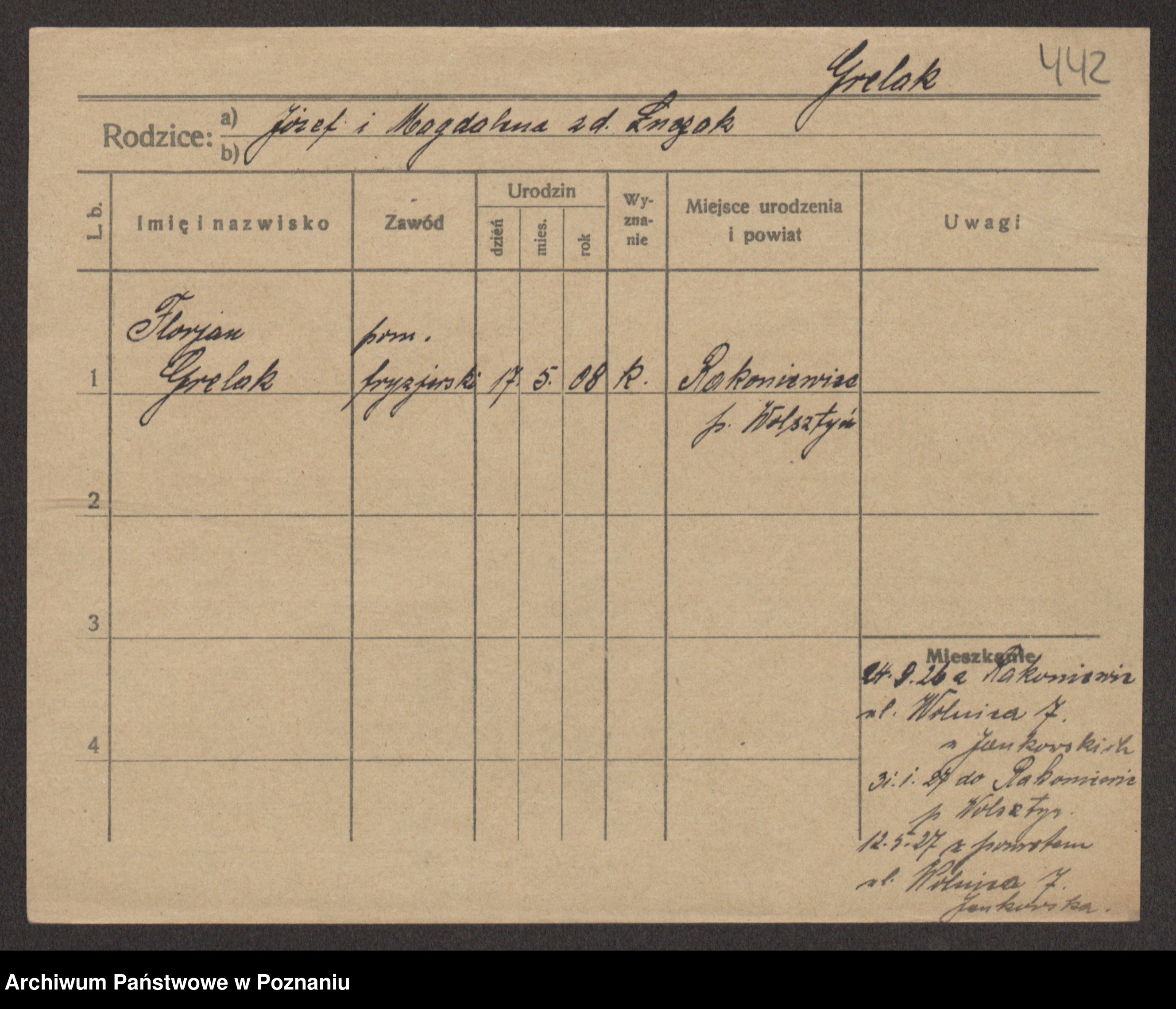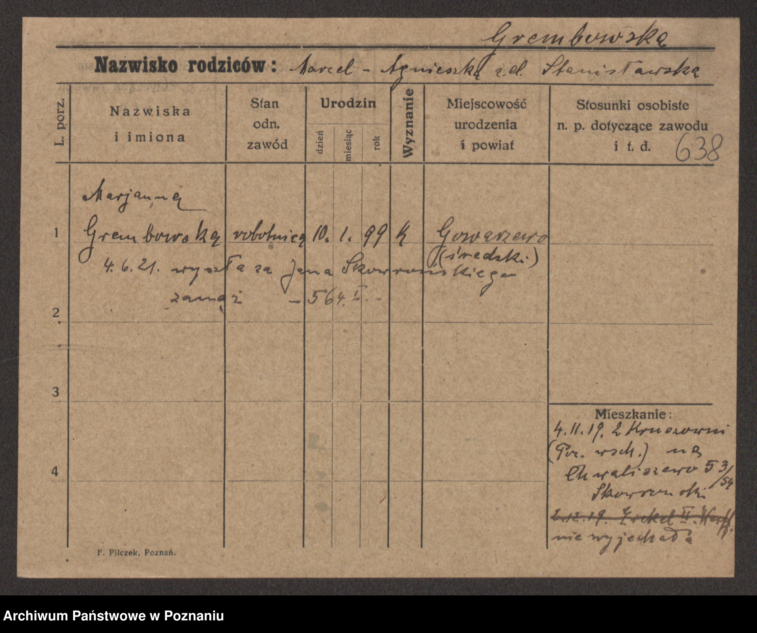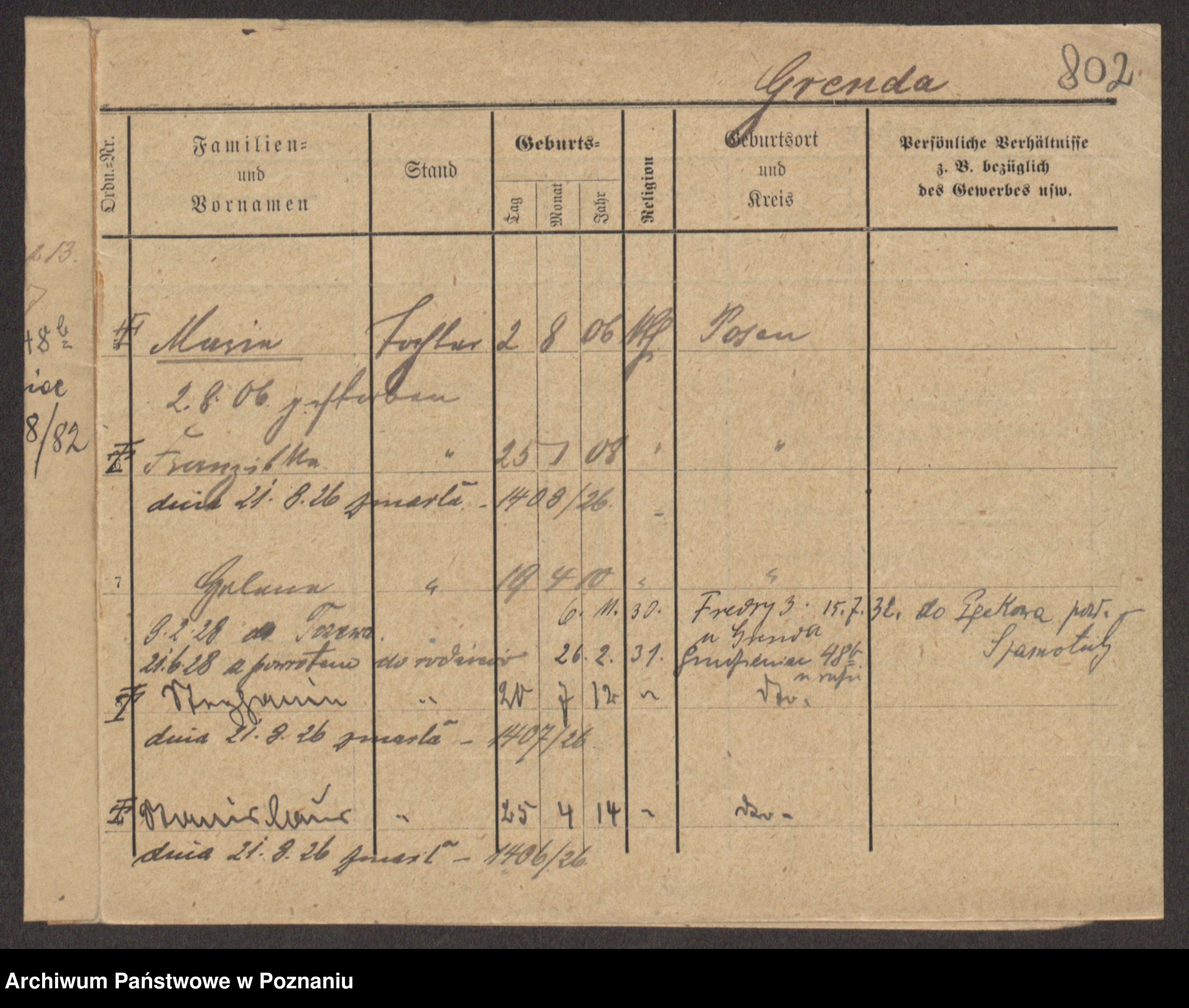 Podgląd karty osobowej dostępny jest po kliknięciu na nazwisko lub ikonkę karty. Można dokonywać powiększenia (ikony na górze) lub przechodzić między kolejnymi skanami (strzałki po bokach).