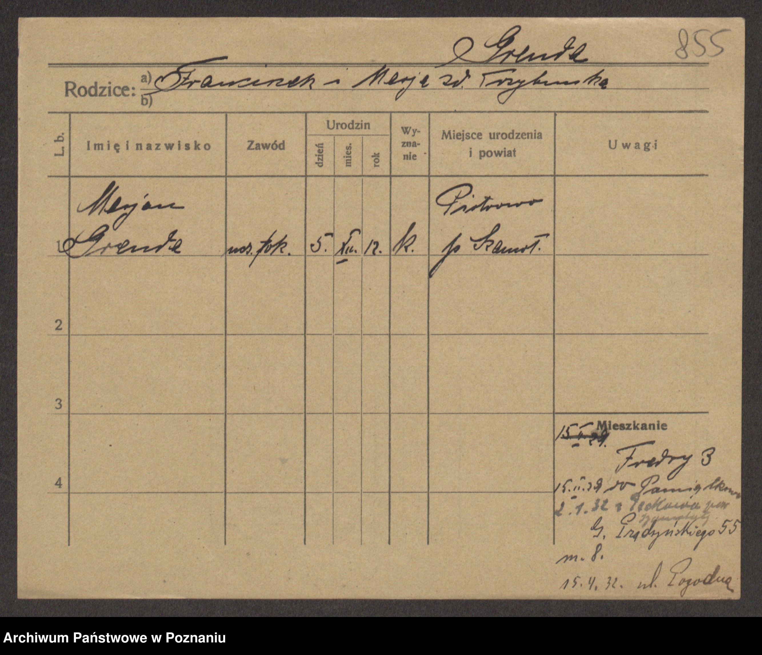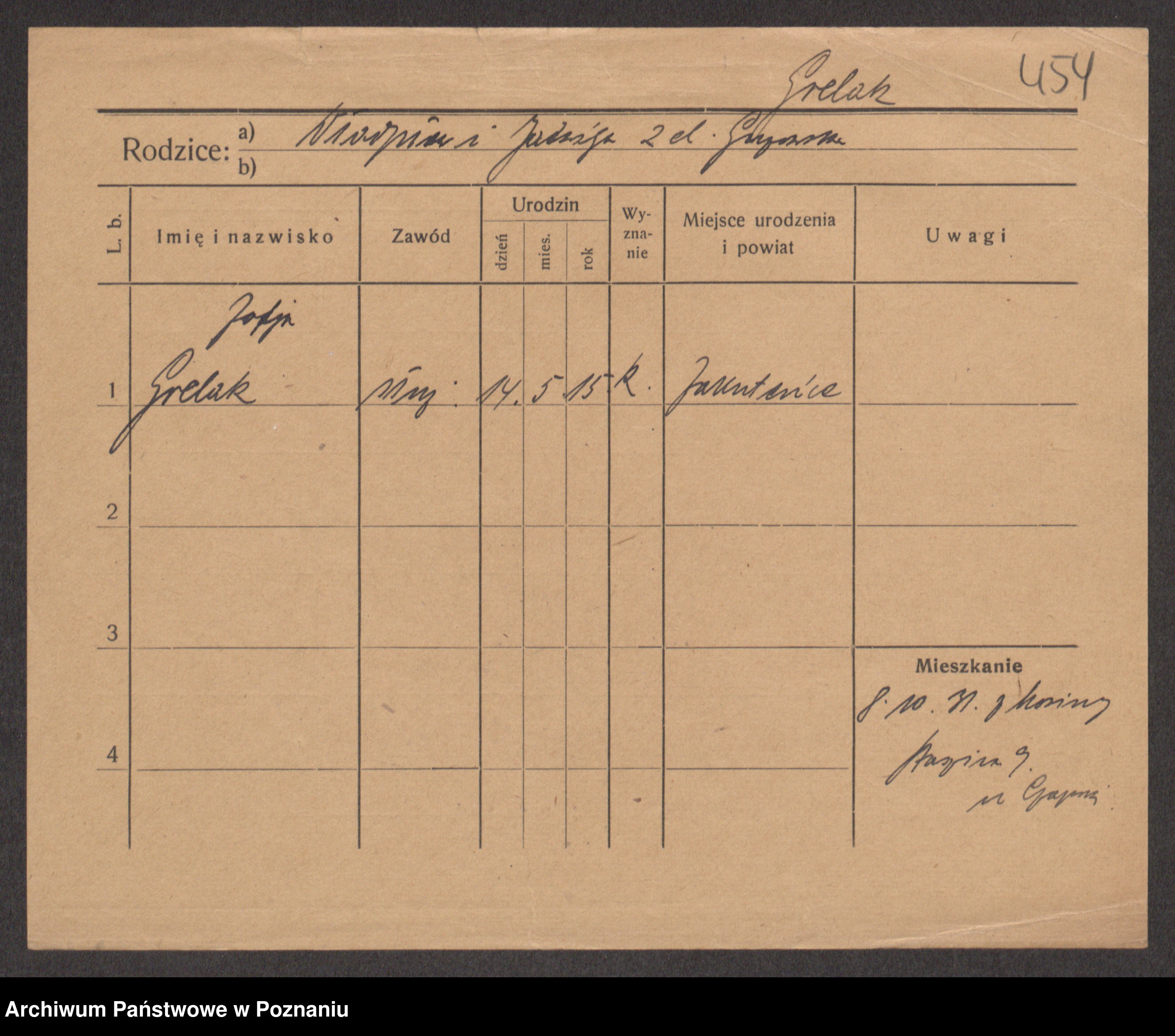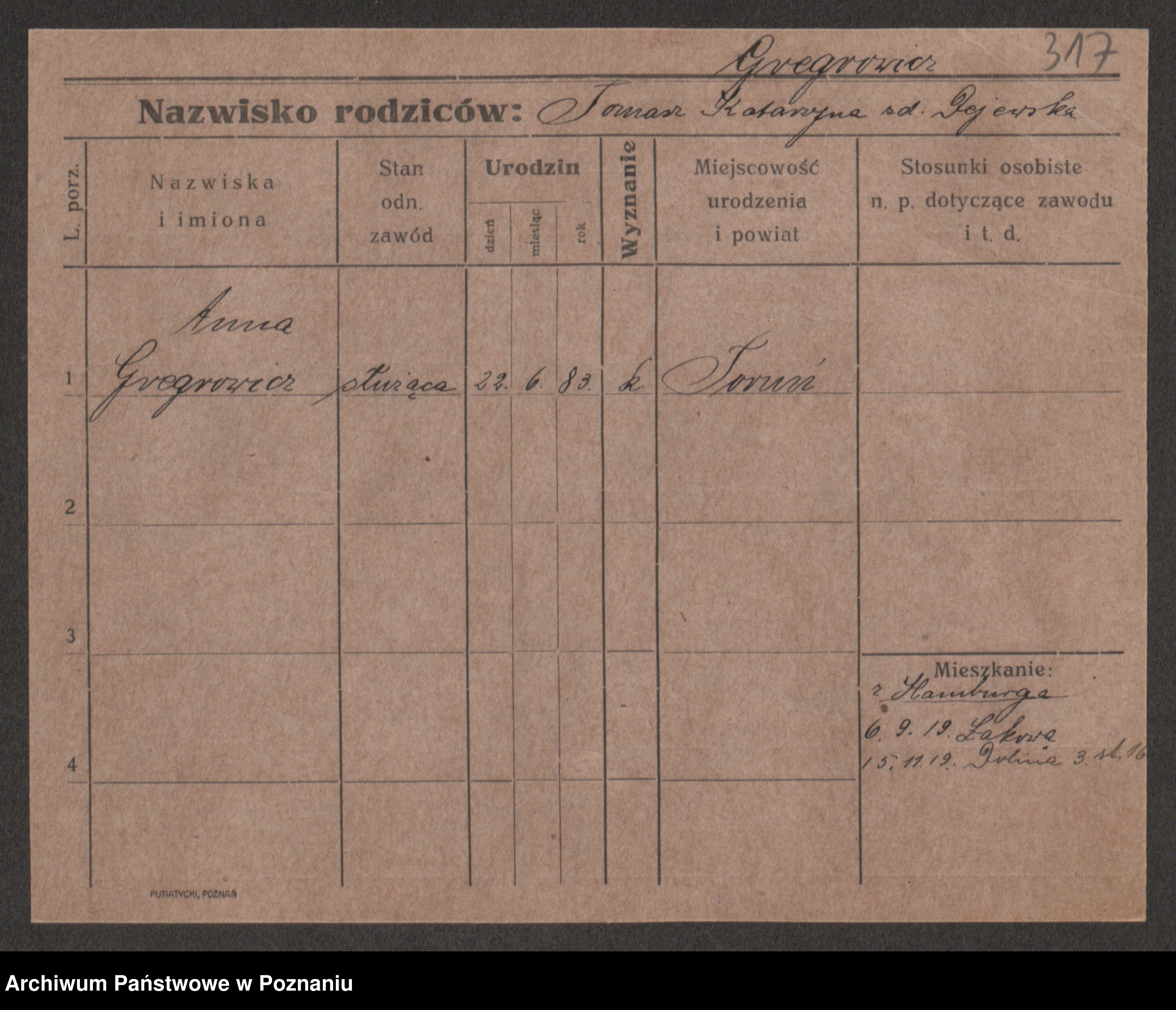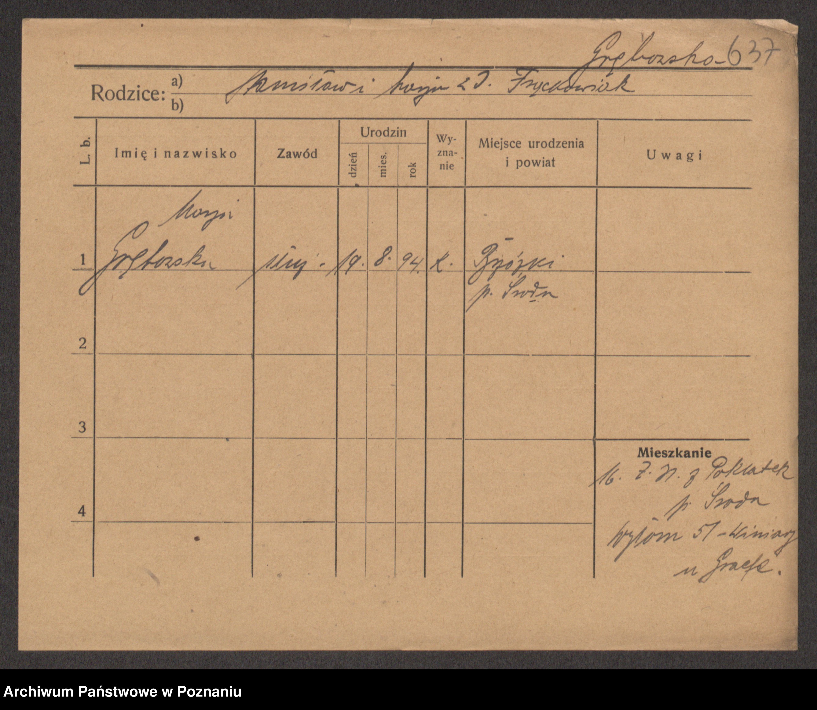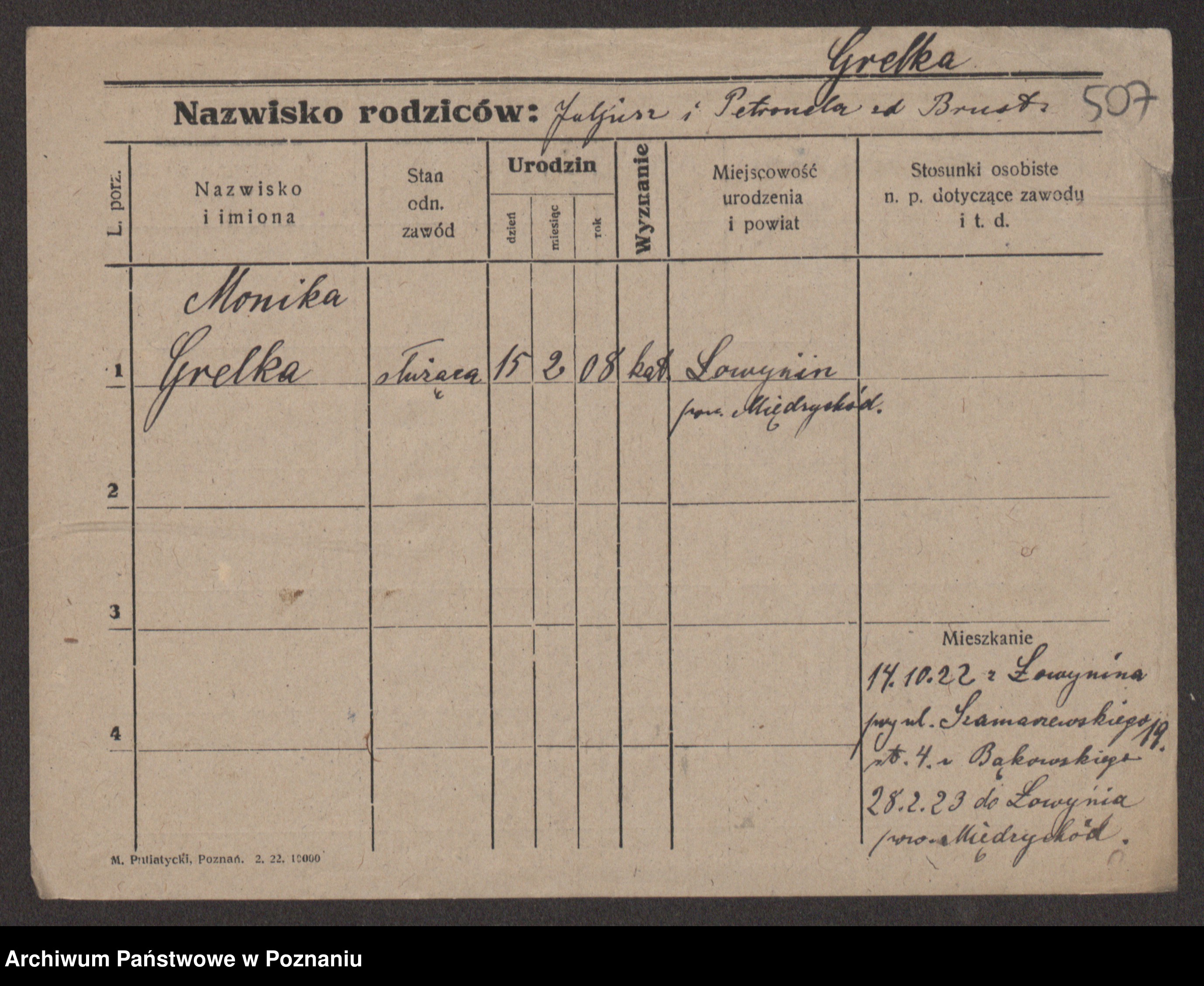 Podgląd karty osobowej dostępny jest po kliknięciu na nazwisko lub ikonkę karty. Można dokonywać powiększenia (ikony na górze) lub przechodzić między kolejnymi skanami (strzałki po bokach).