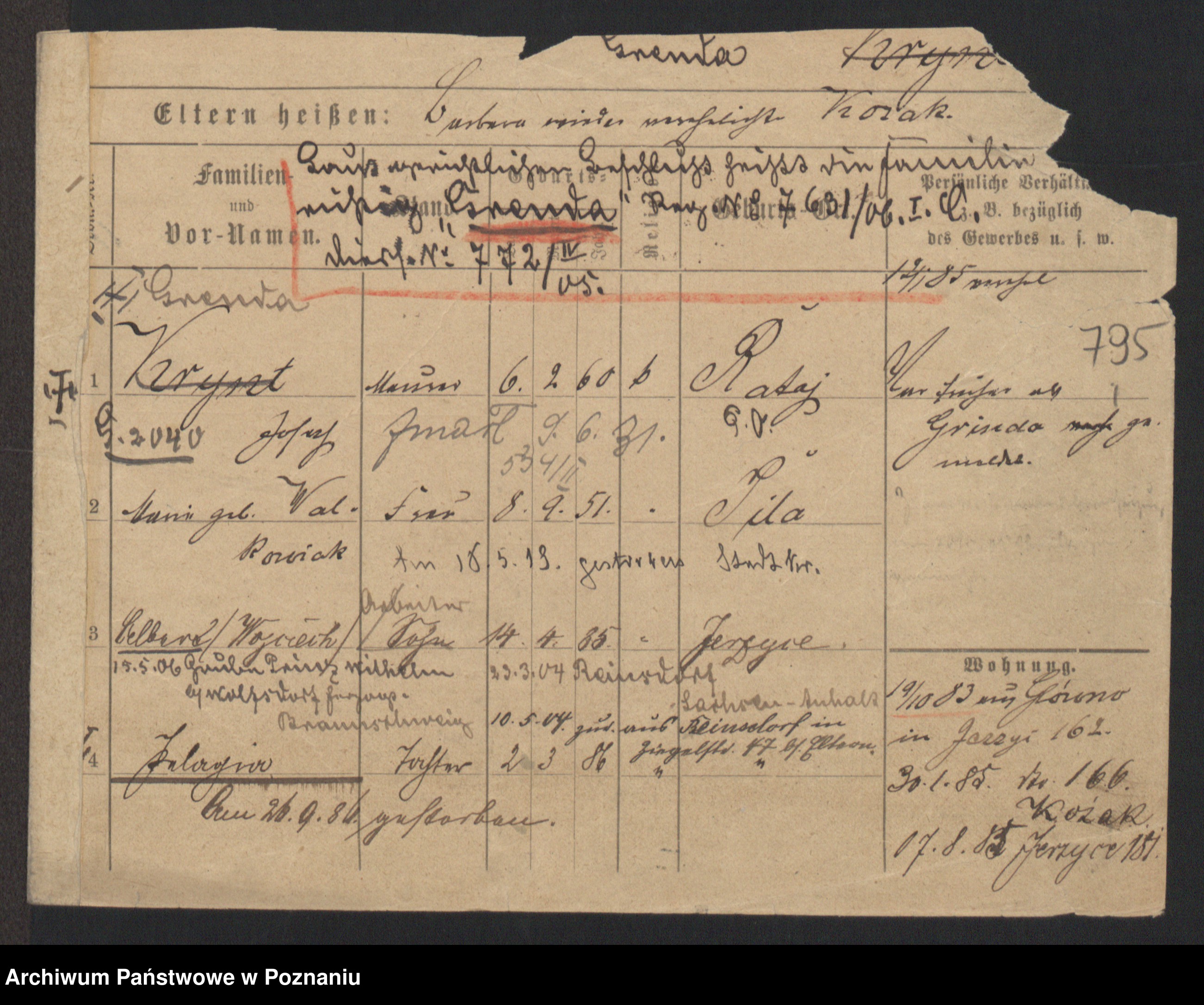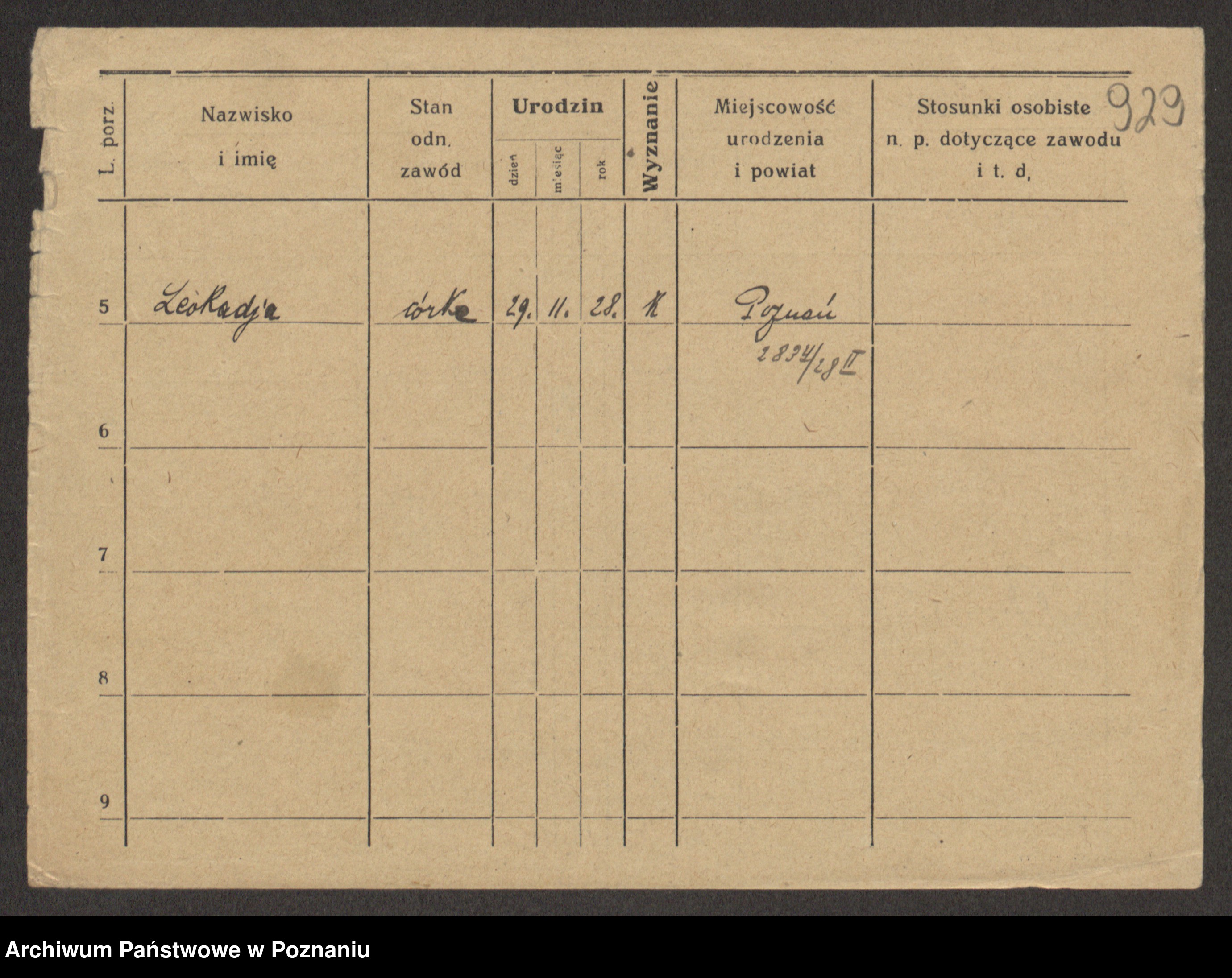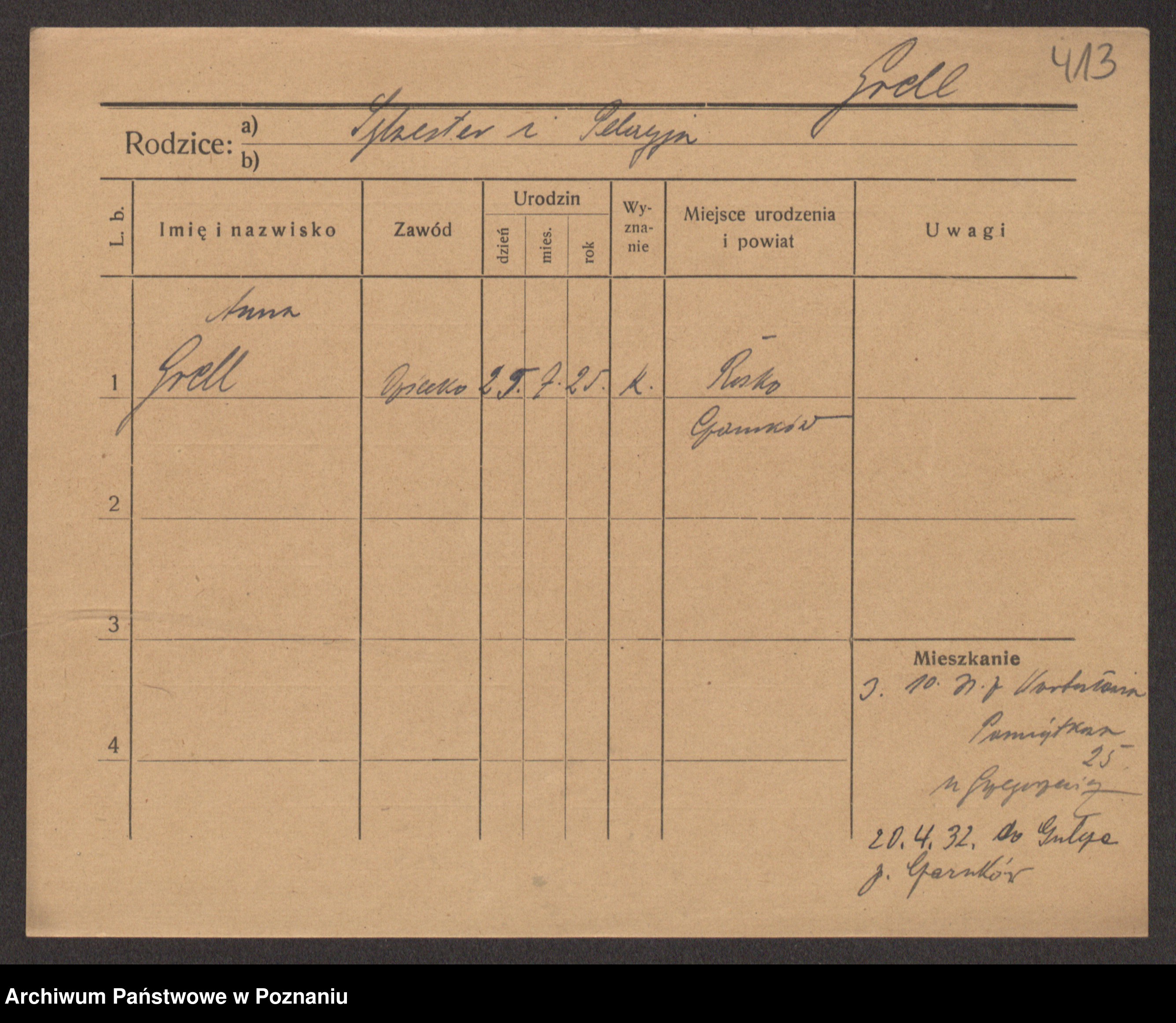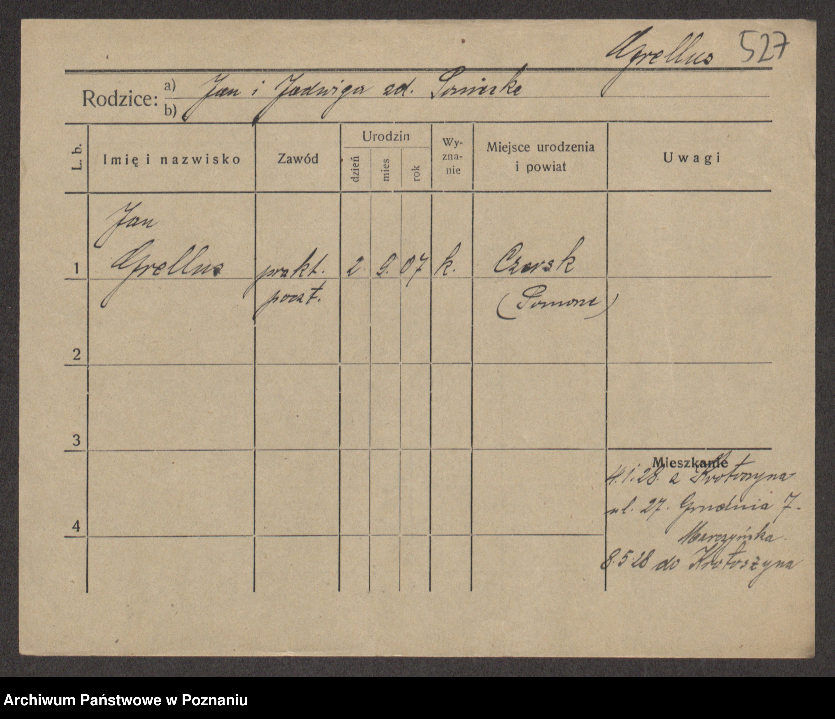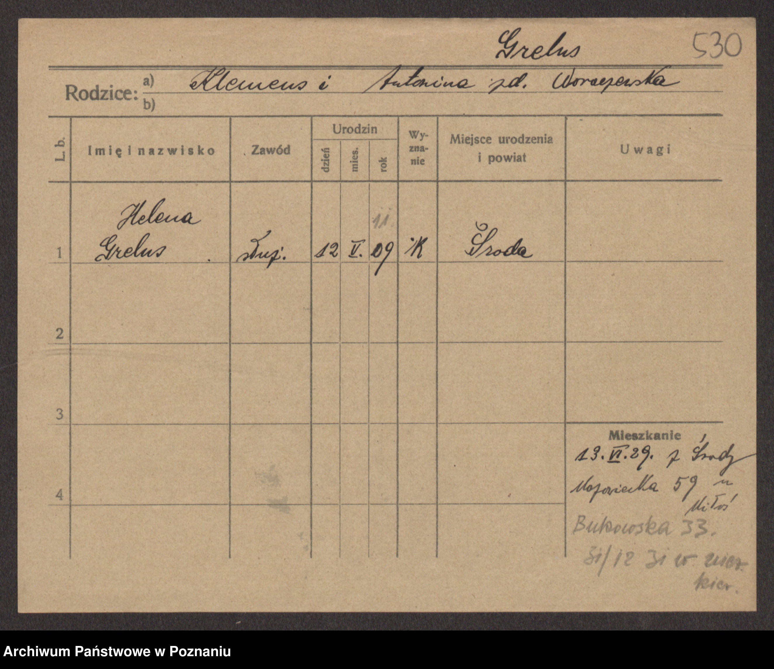 Podgląd karty osobowej dostępny jest po kliknięciu na nazwisko lub ikonkę karty. Można dokonywać powiększenia (ikony na górze) lub przechodzić między kolejnymi skanami (strzałki po bokach).