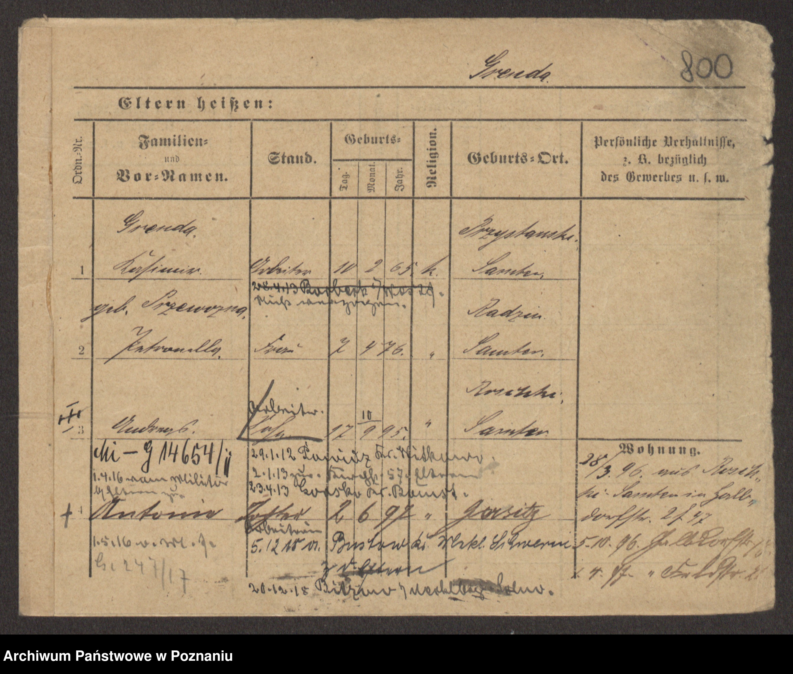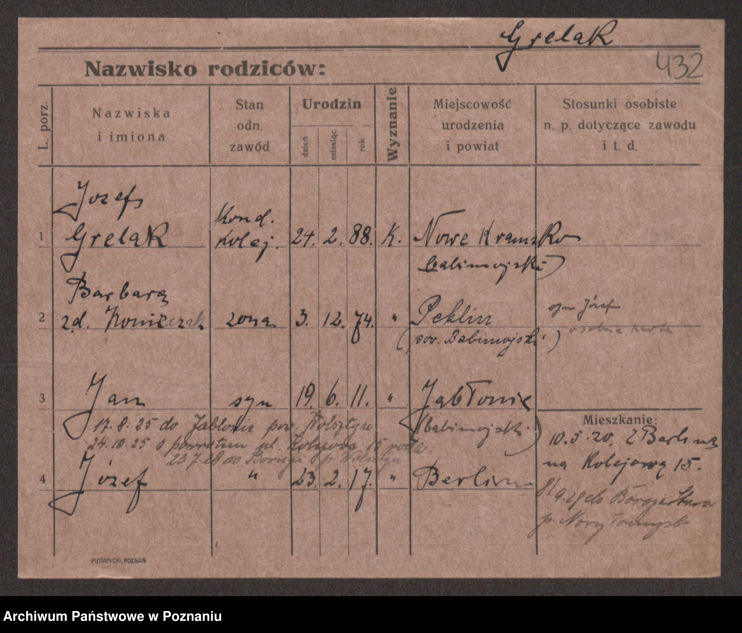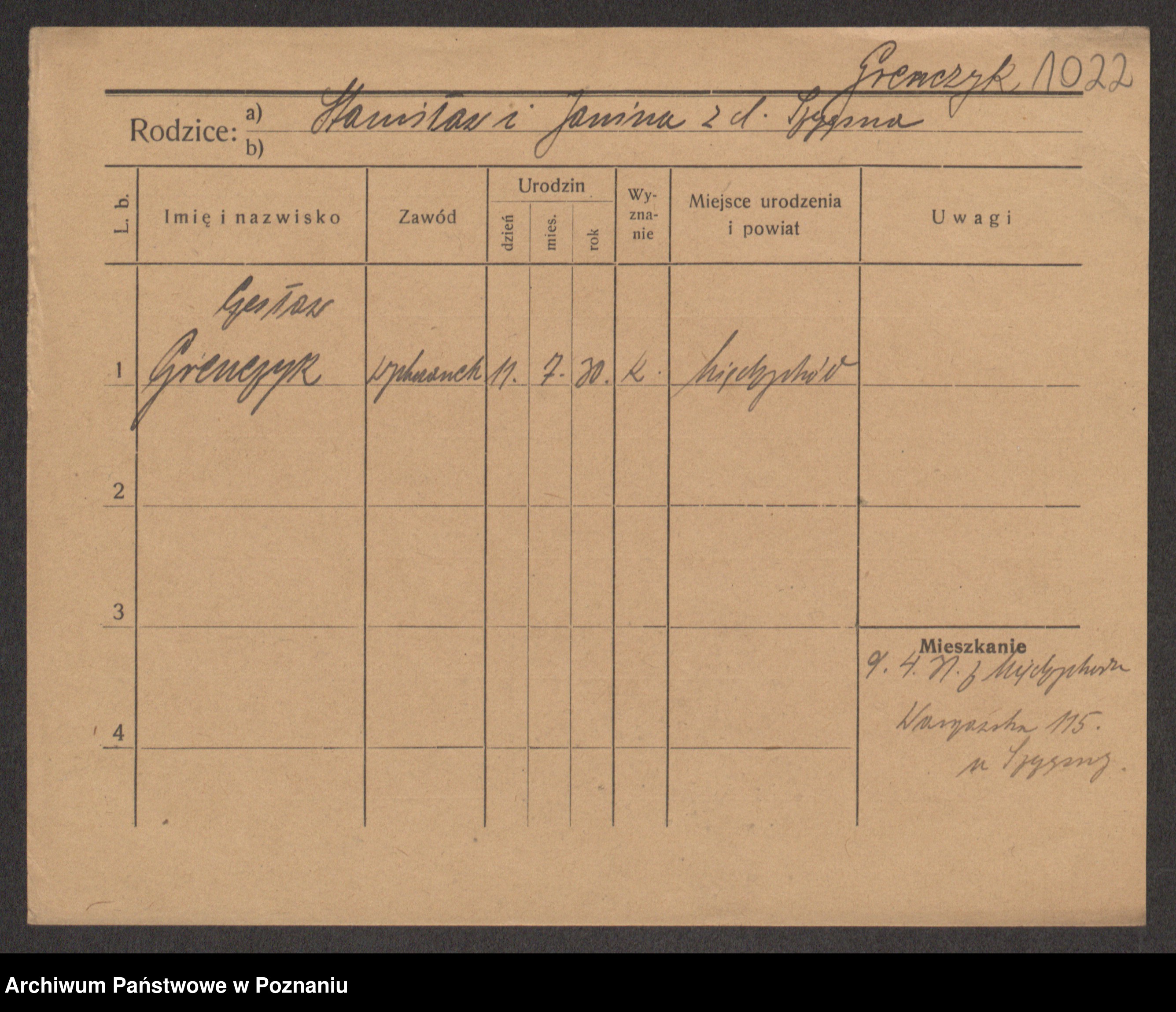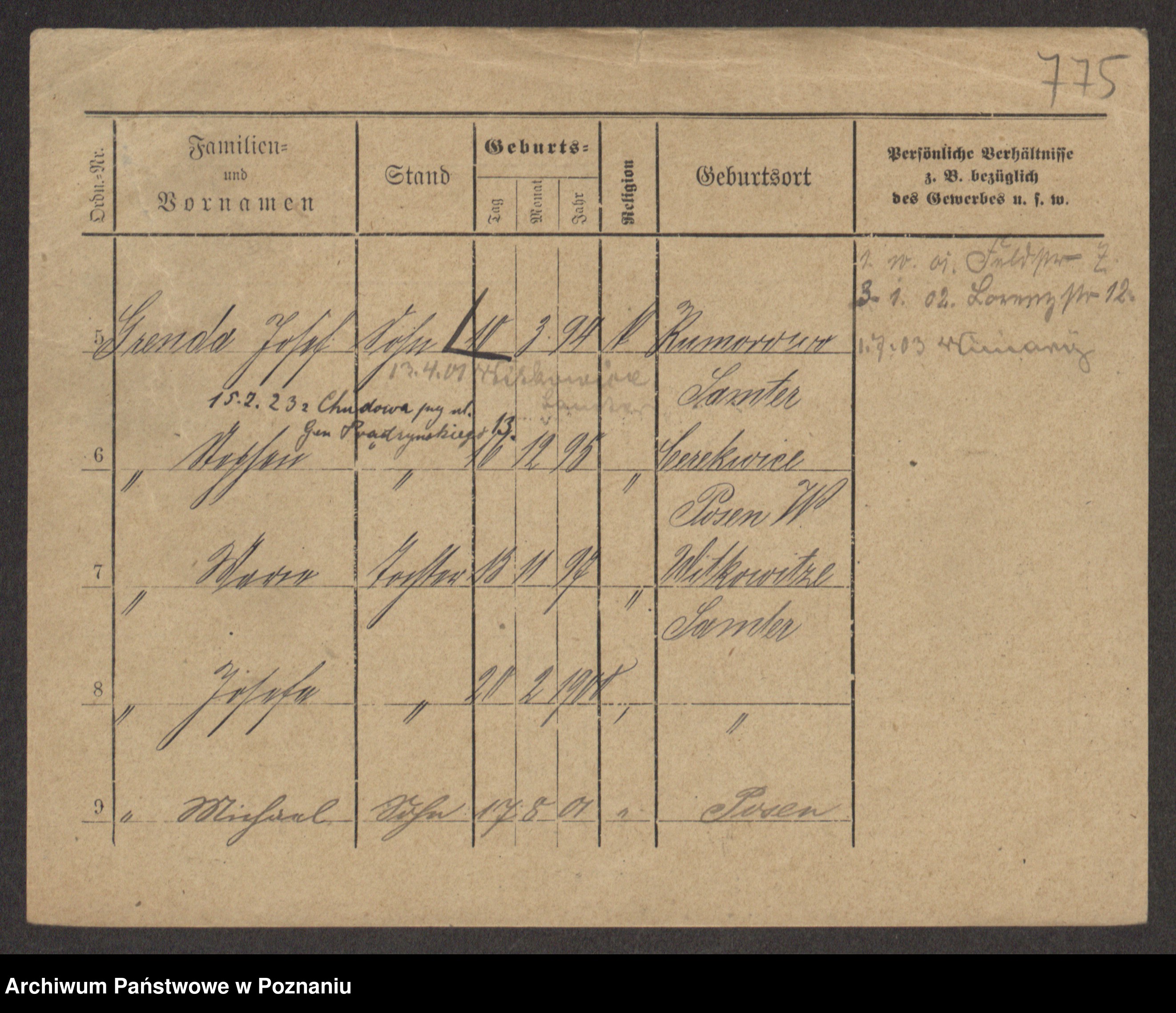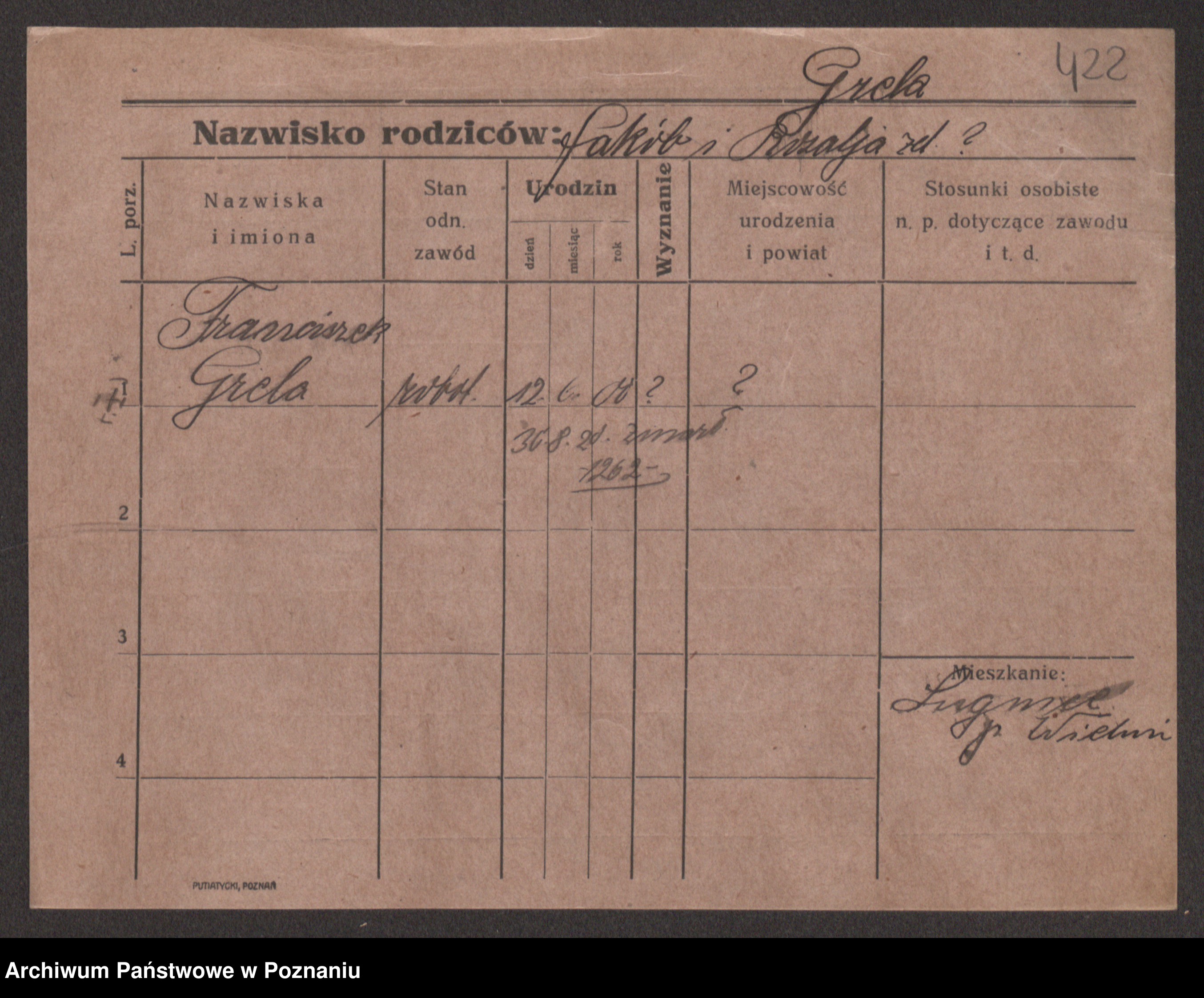 Podgląd karty osobowej dostępny jest po kliknięciu na nazwisko lub ikonkę karty. Można dokonywać powiększenia (ikony na górze) lub przechodzić między kolejnymi skanami (strzałki po bokach).