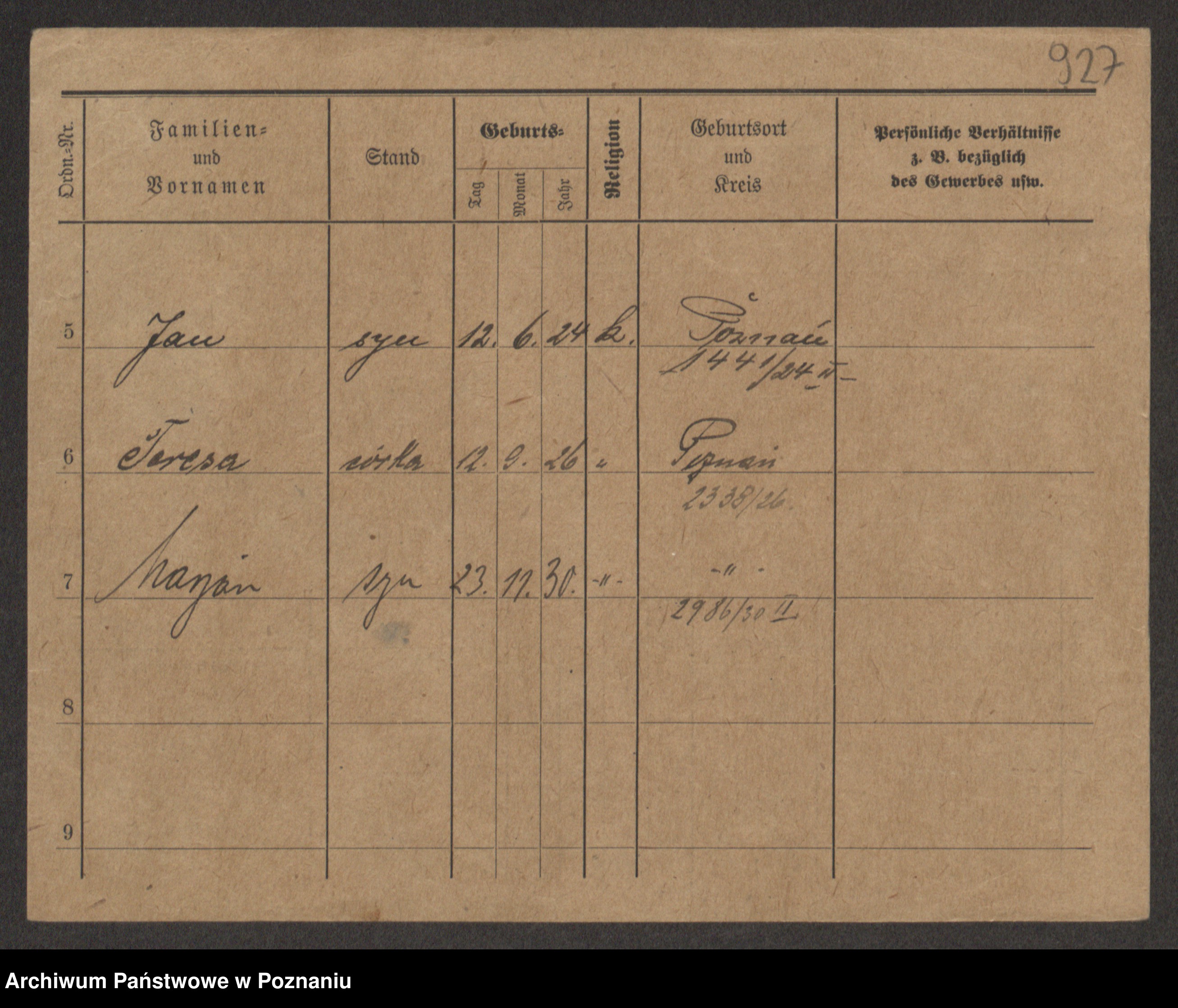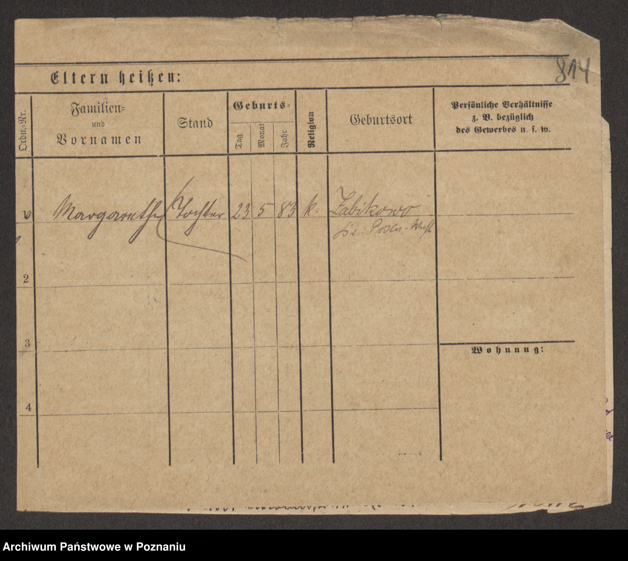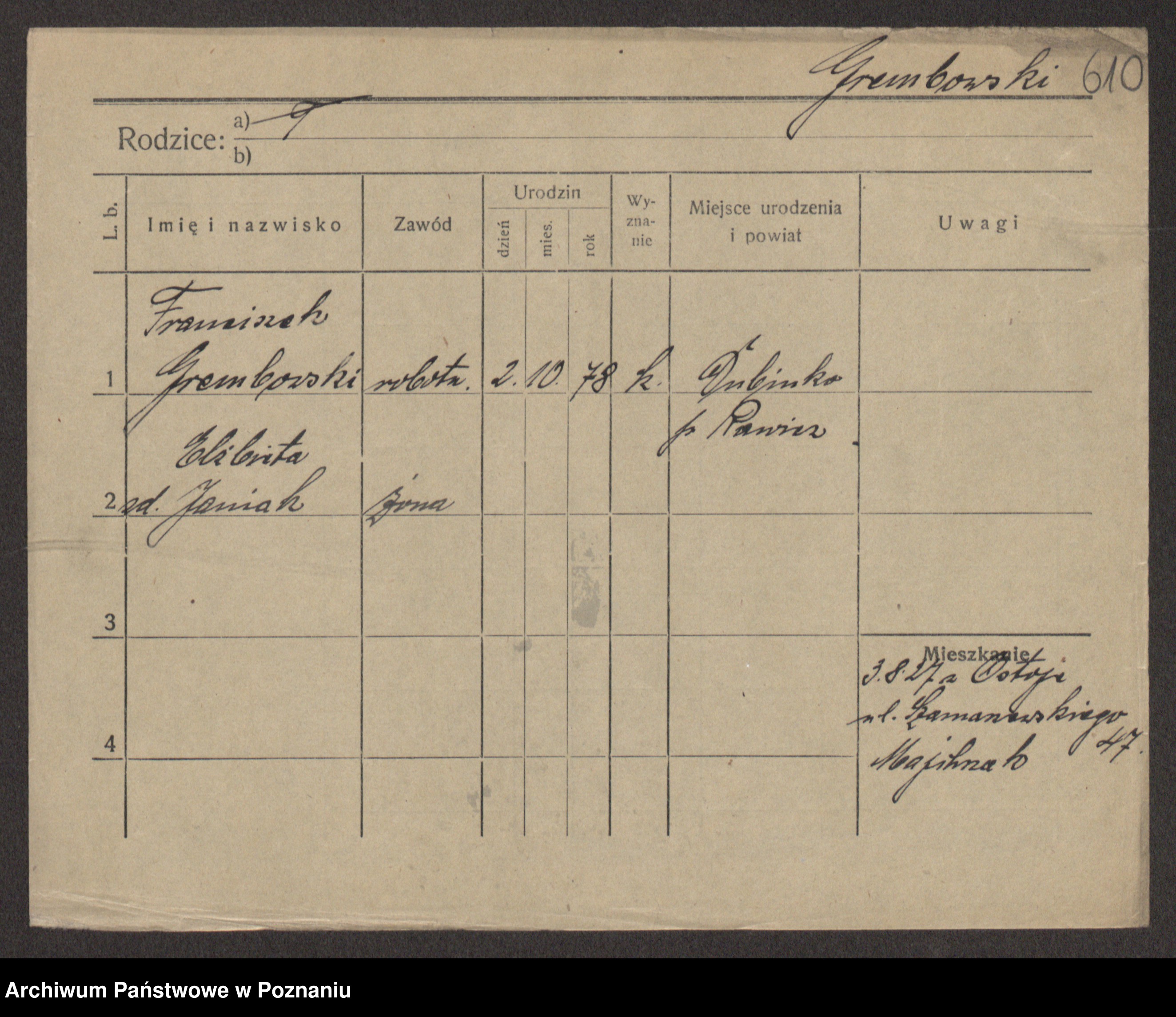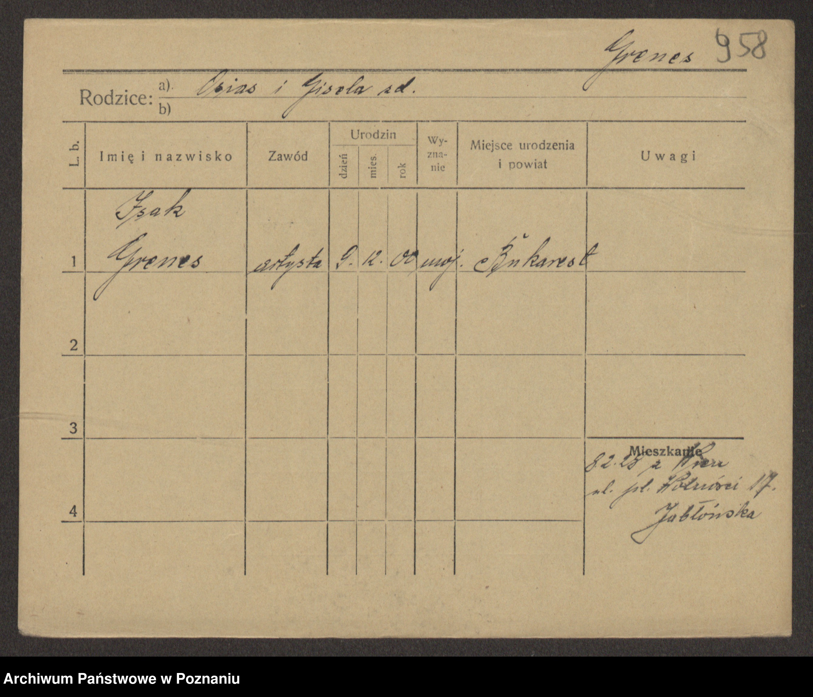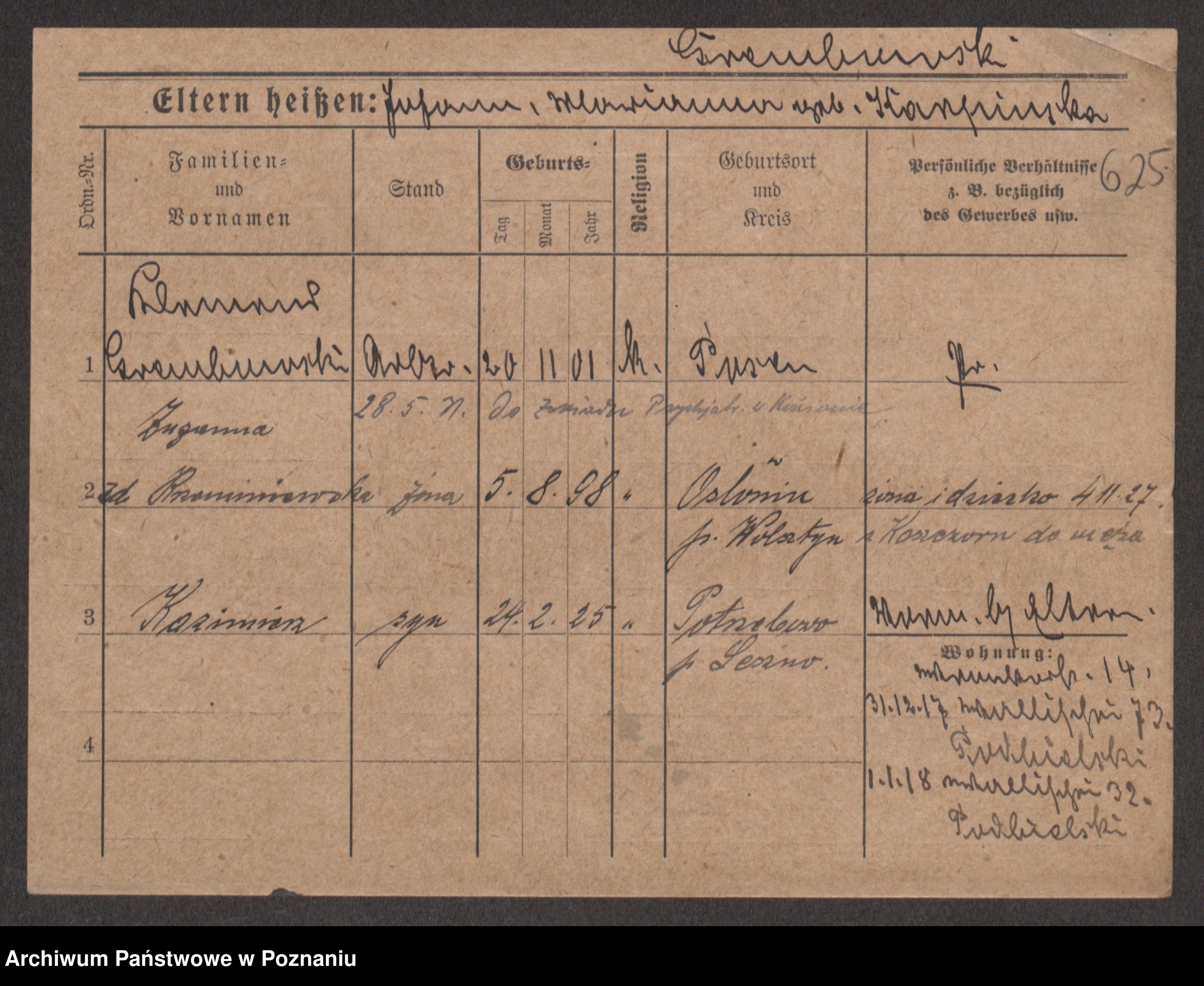 Podgląd karty osobowej dostępny jest po kliknięciu na nazwisko lub ikonkę karty. Można dokonywać powiększenia (ikony na górze) lub przechodzić między kolejnymi skanami (strzałki po bokach).