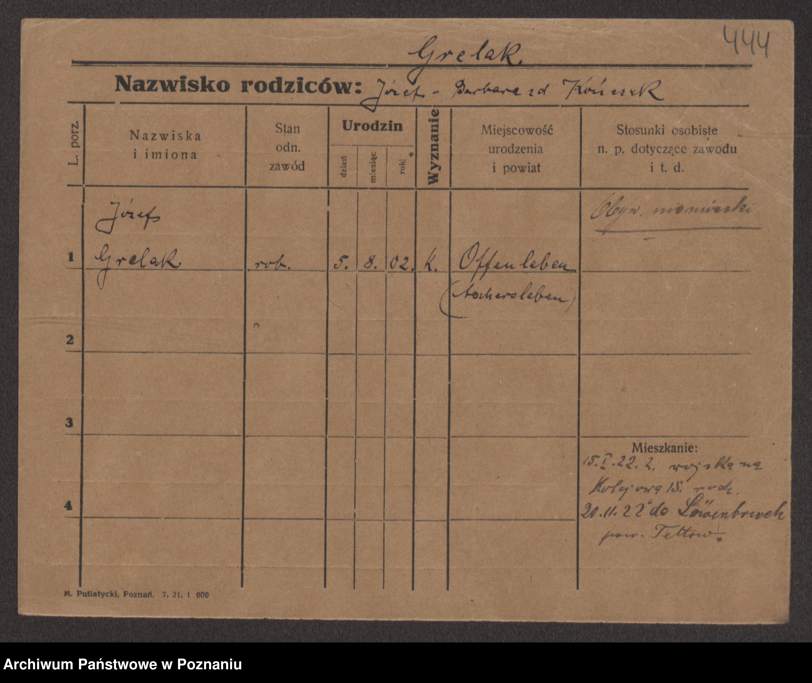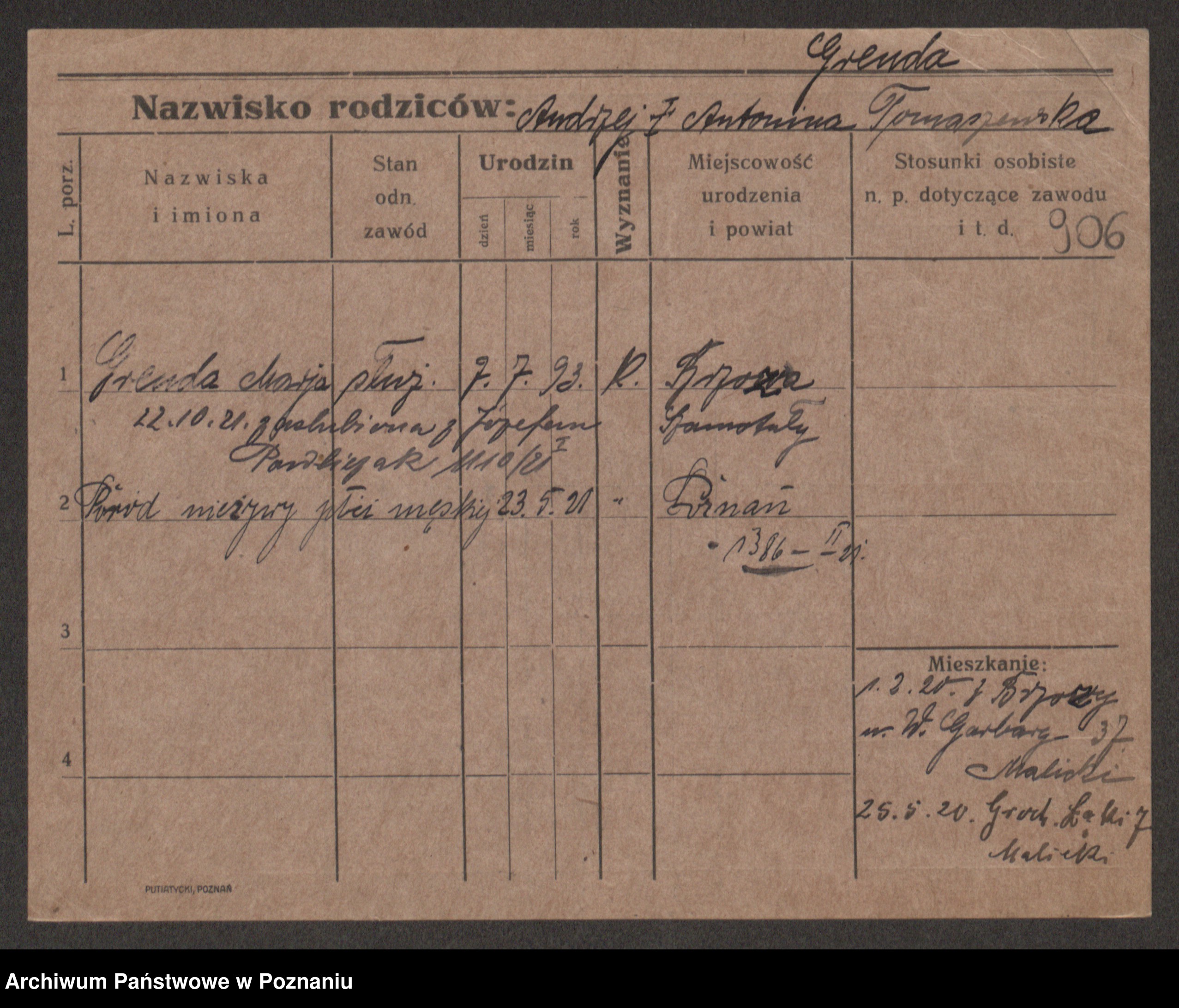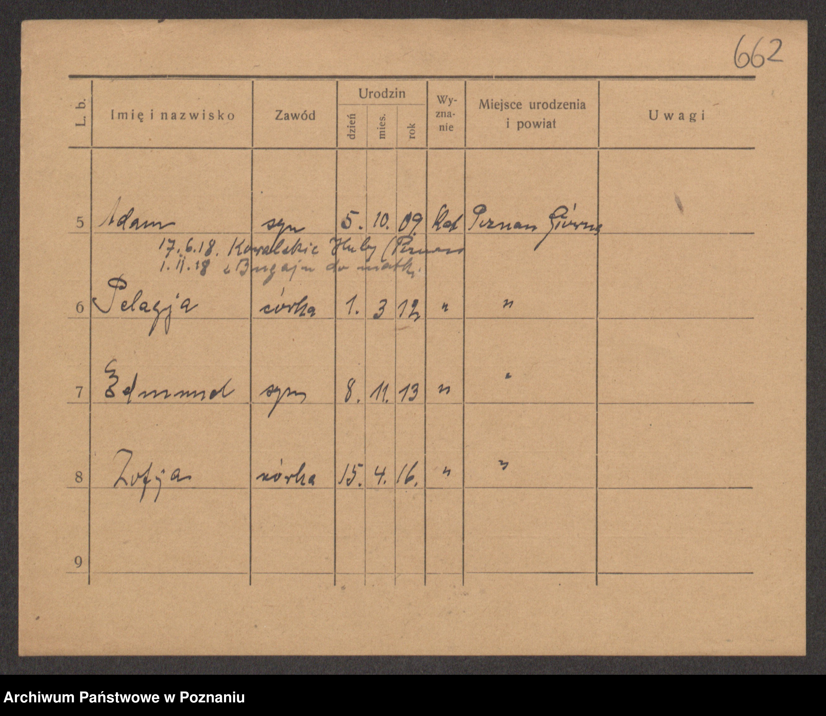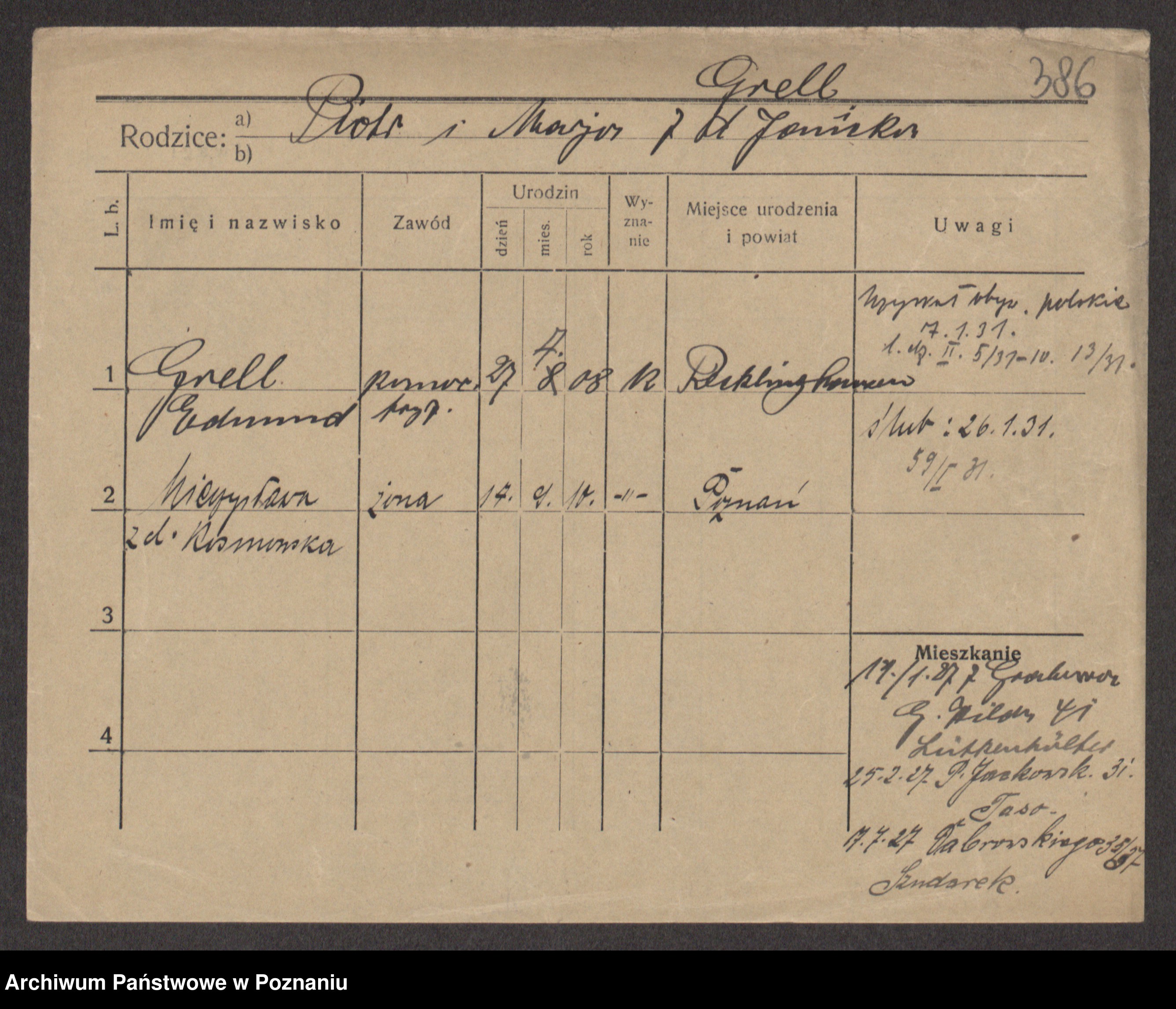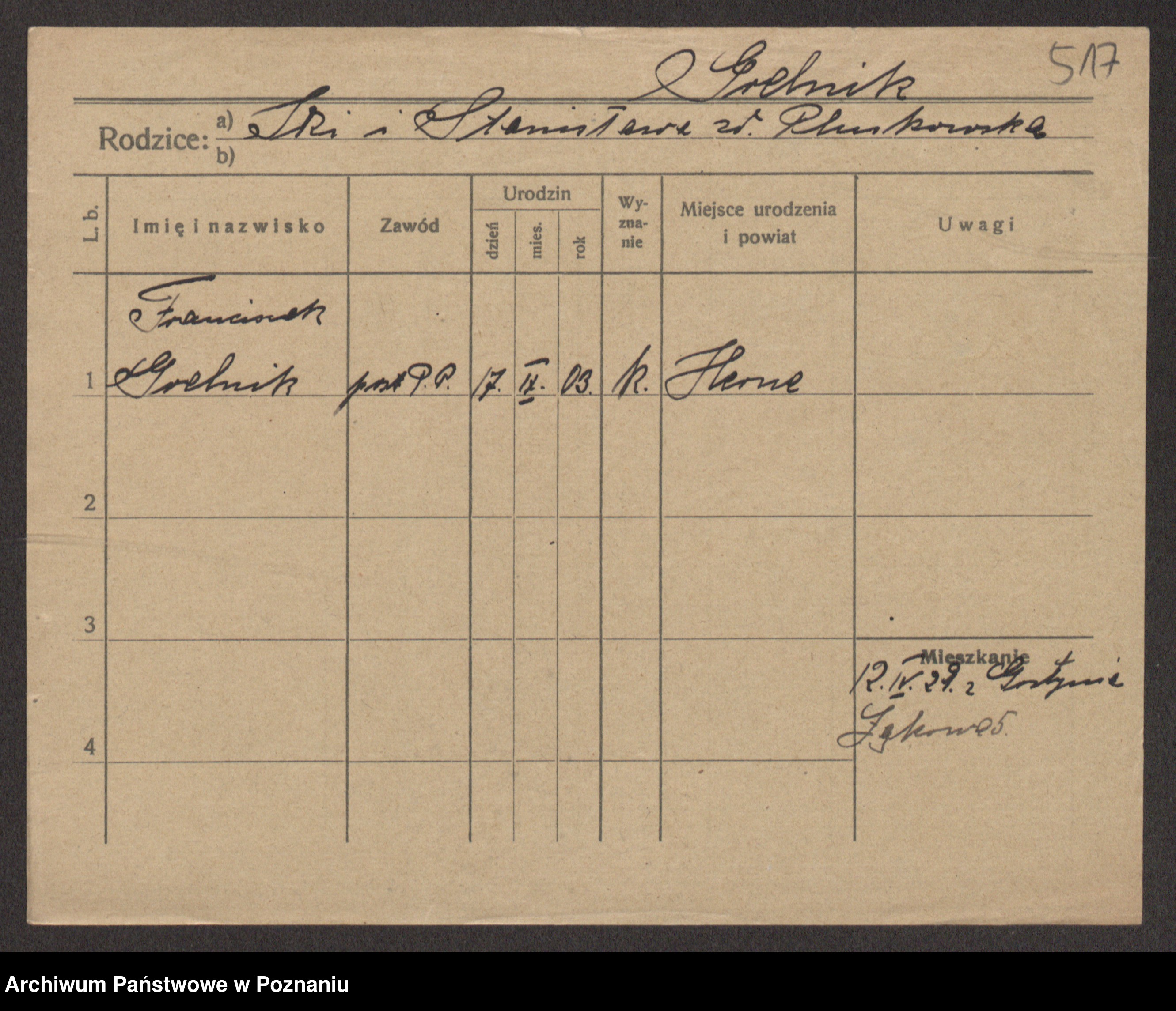 Podgląd karty osobowej dostępny jest po kliknięciu na nazwisko lub ikonkę karty. Można dokonywać powiększenia (ikony na górze) lub przechodzić między kolejnymi skanami (strzałki po bokach).