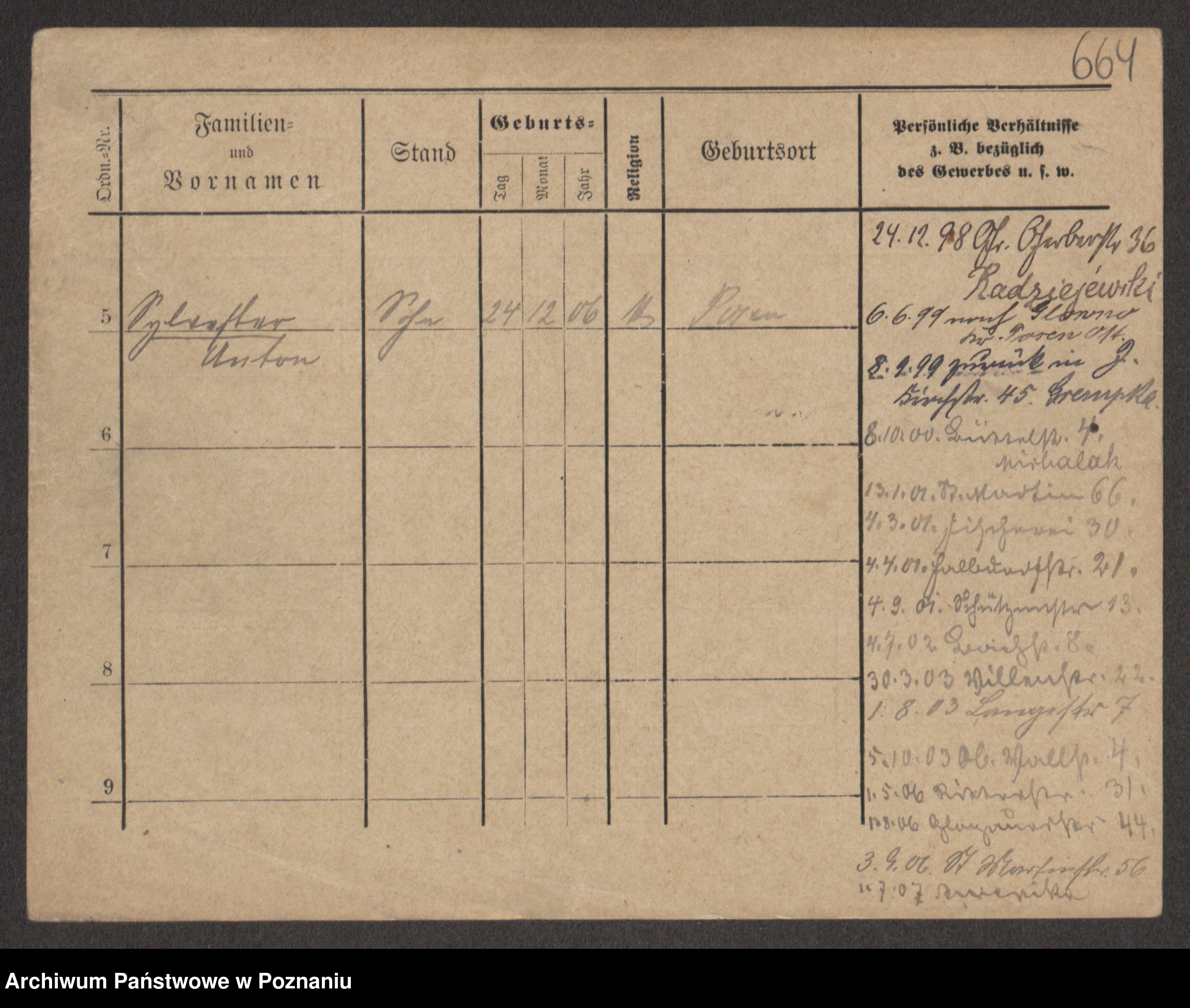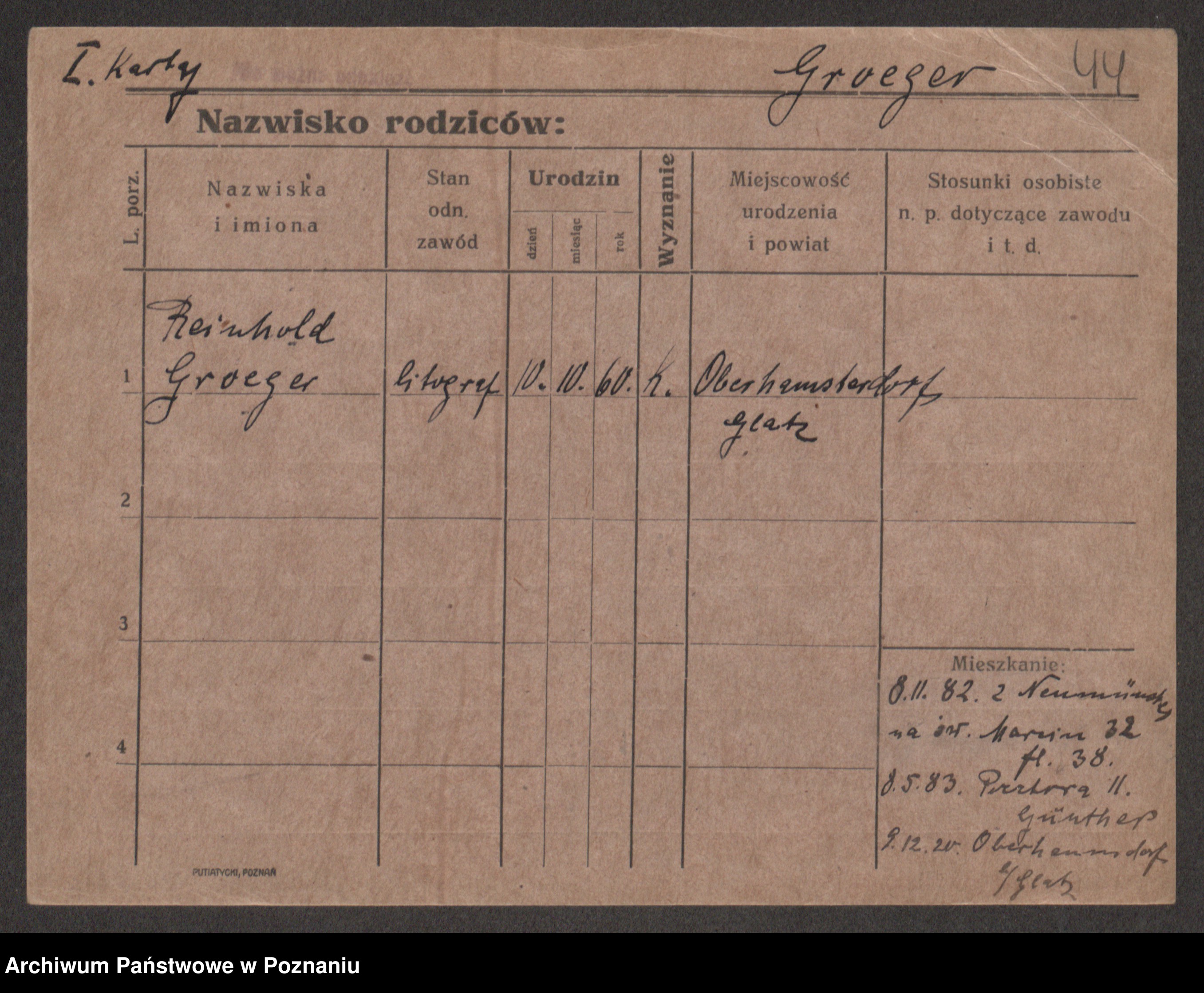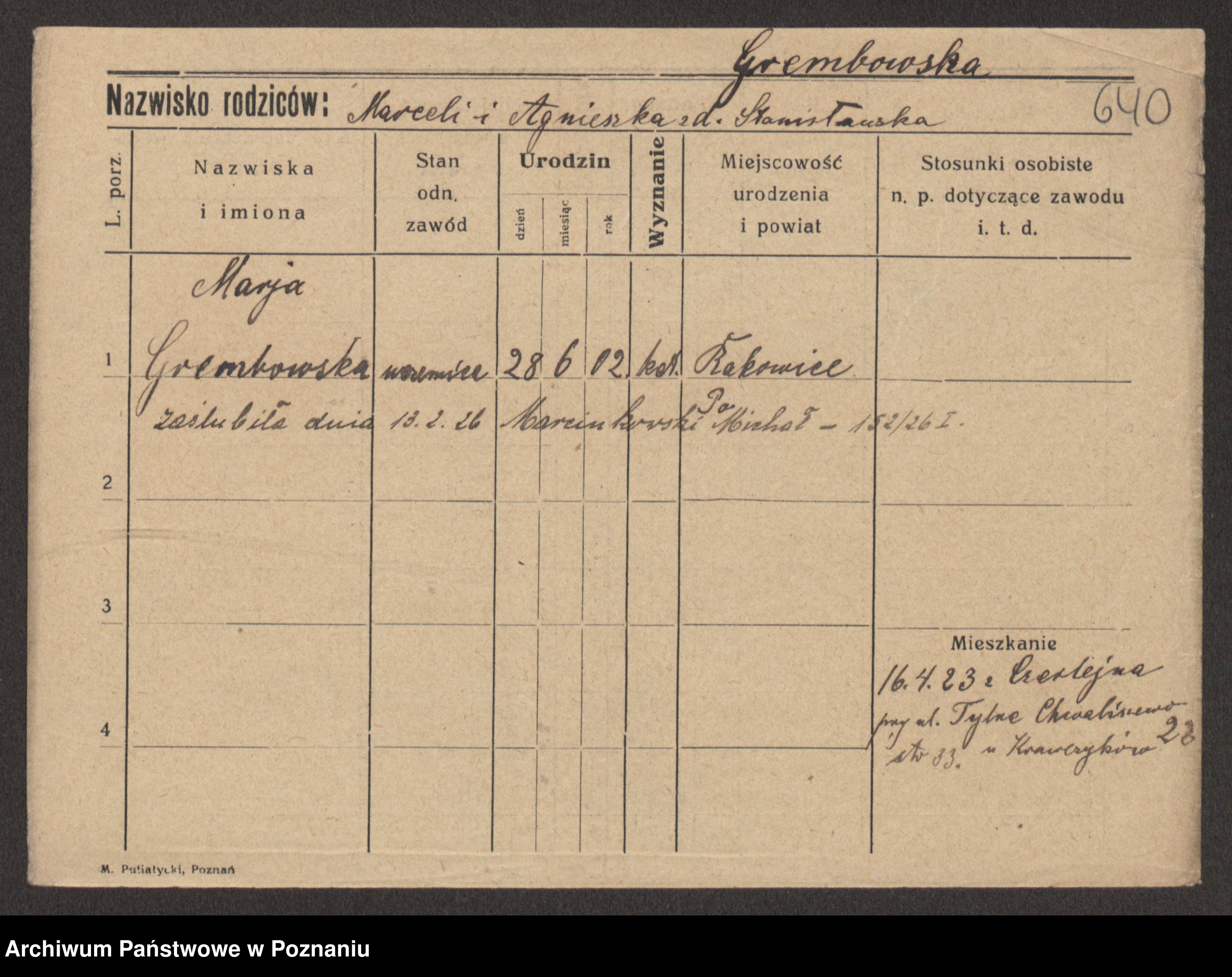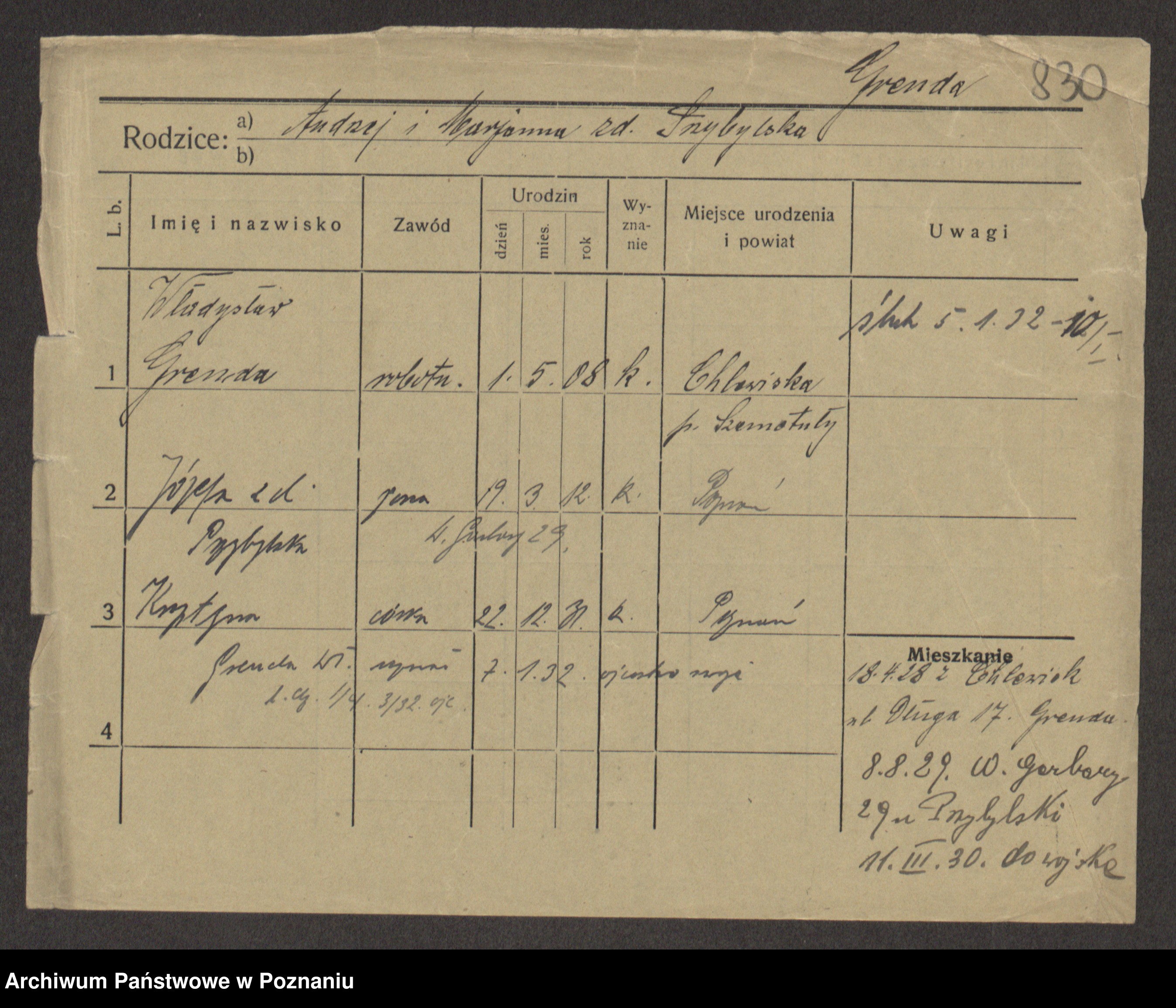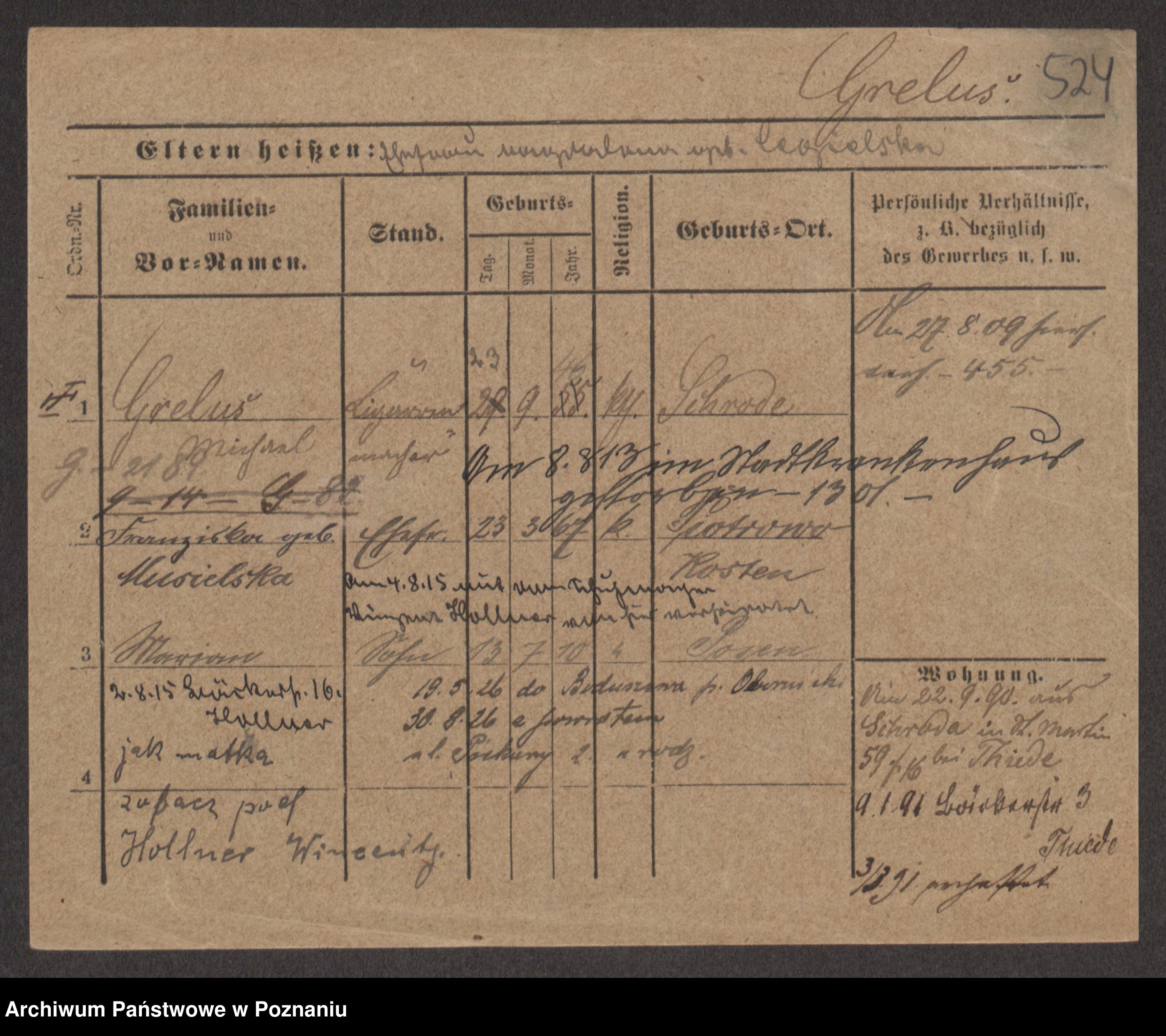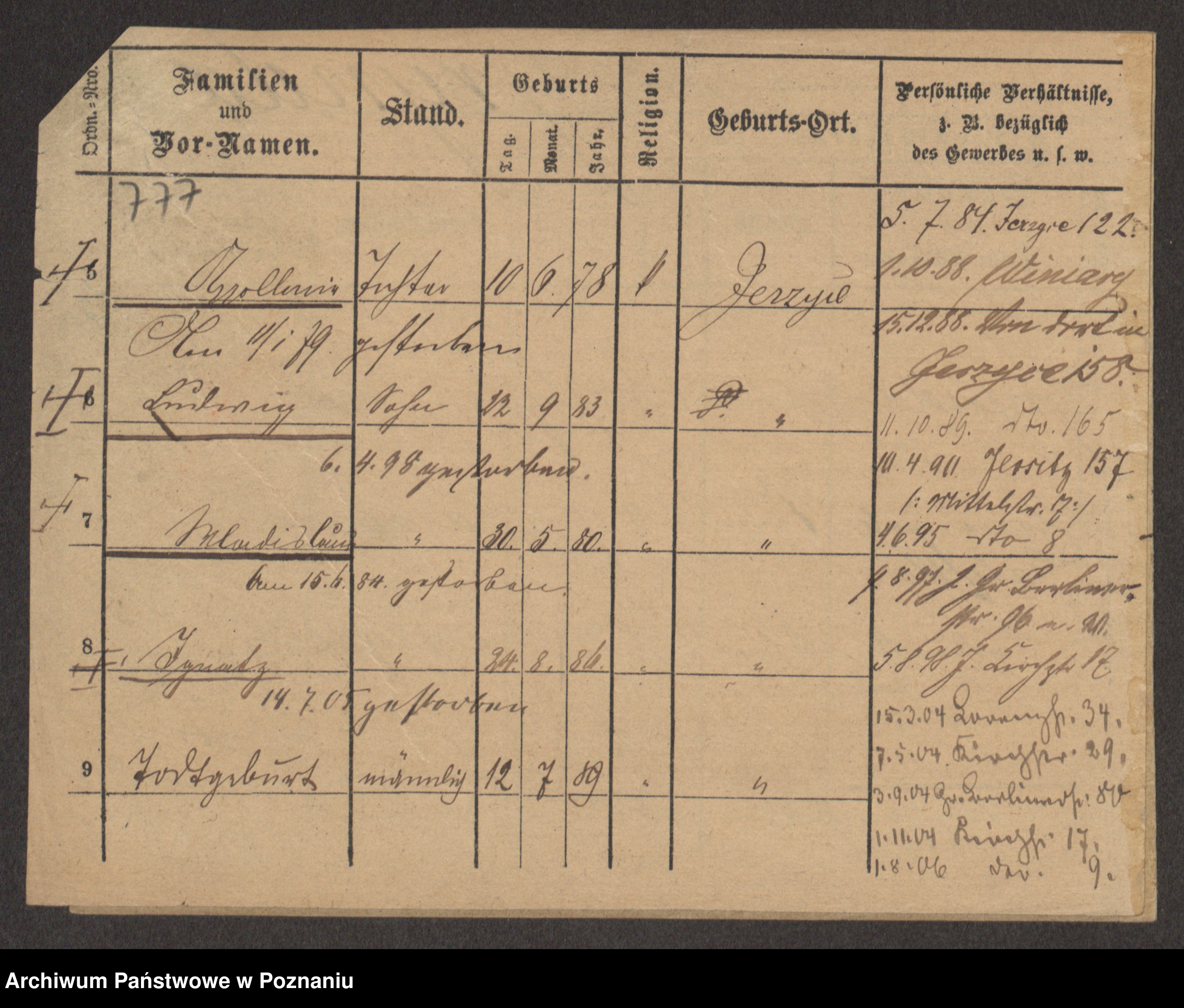 Podgląd karty osobowej dostępny jest po kliknięciu na nazwisko lub ikonkę karty. Można dokonywać powiększenia (ikony na górze) lub przechodzić między kolejnymi skanami (strzałki po bokach).