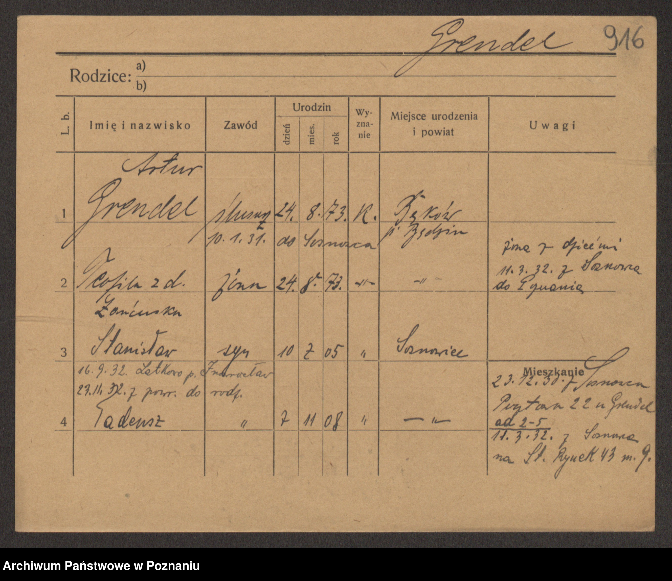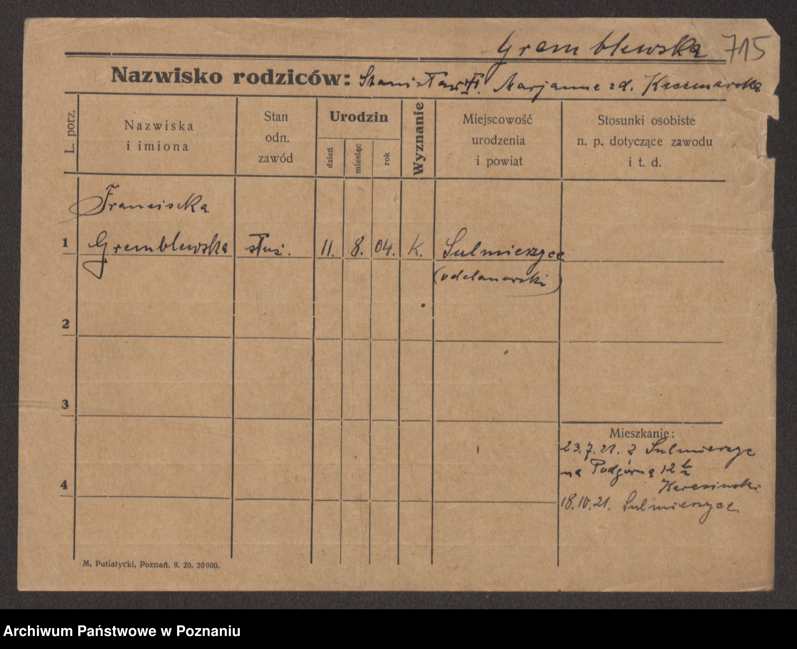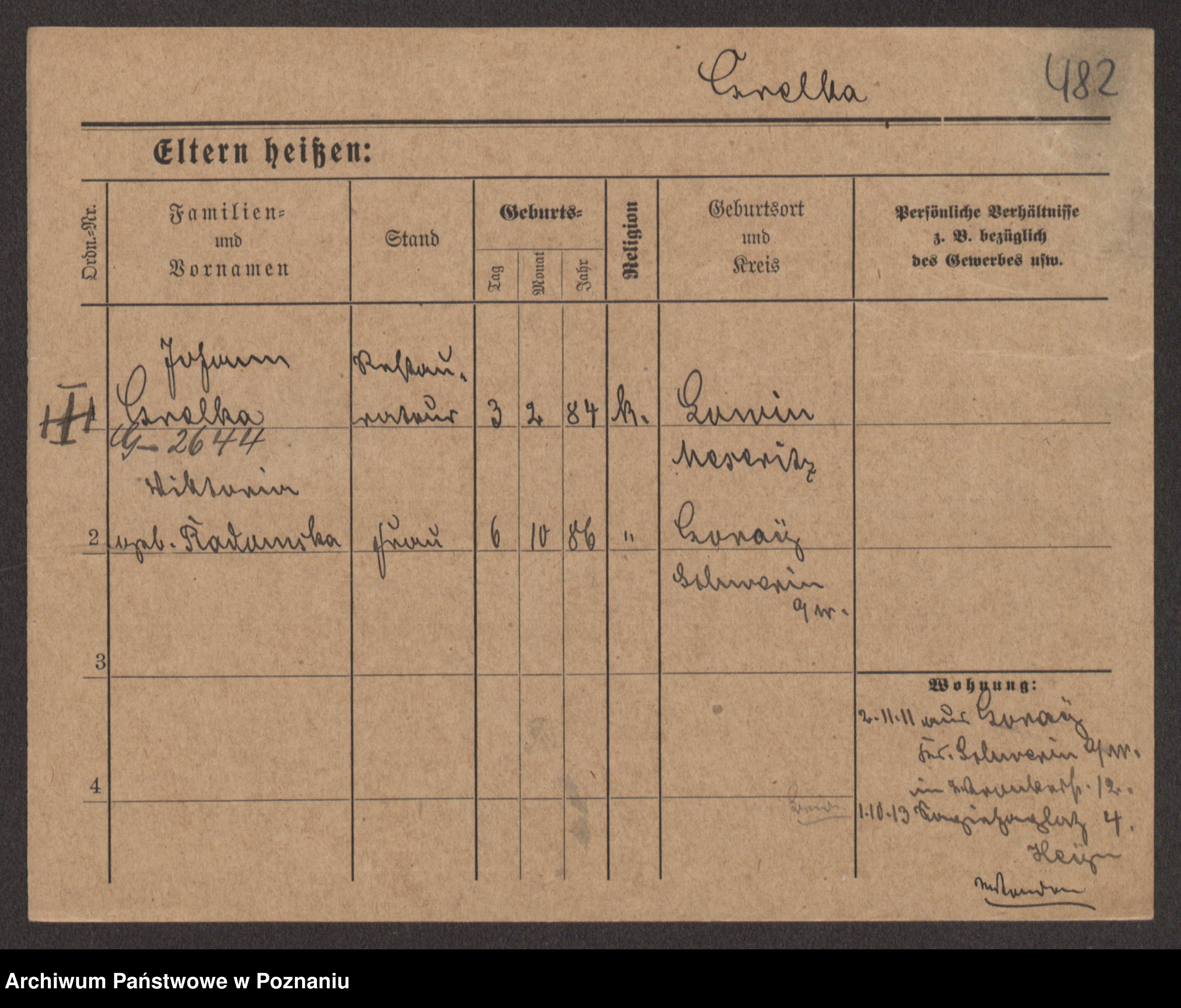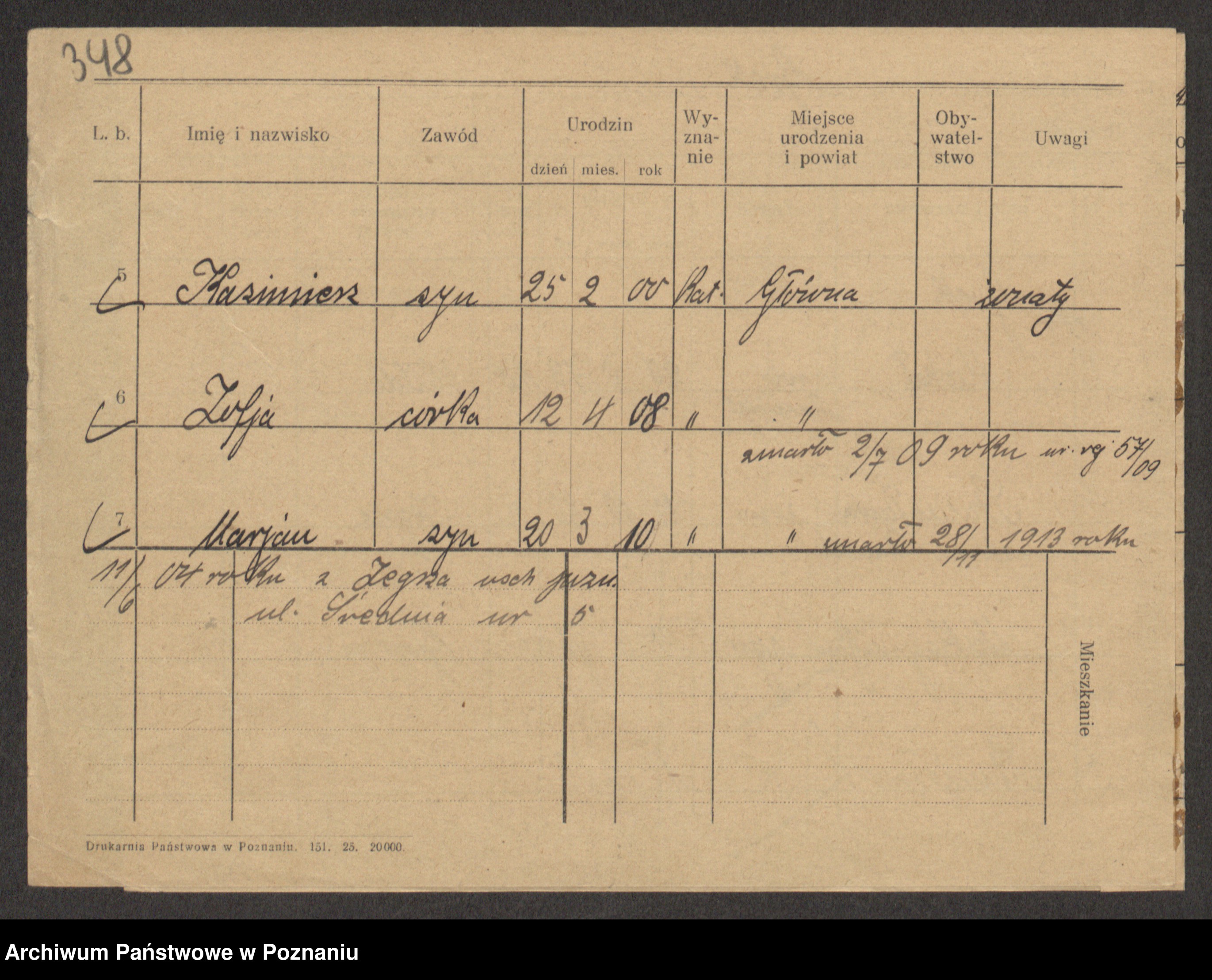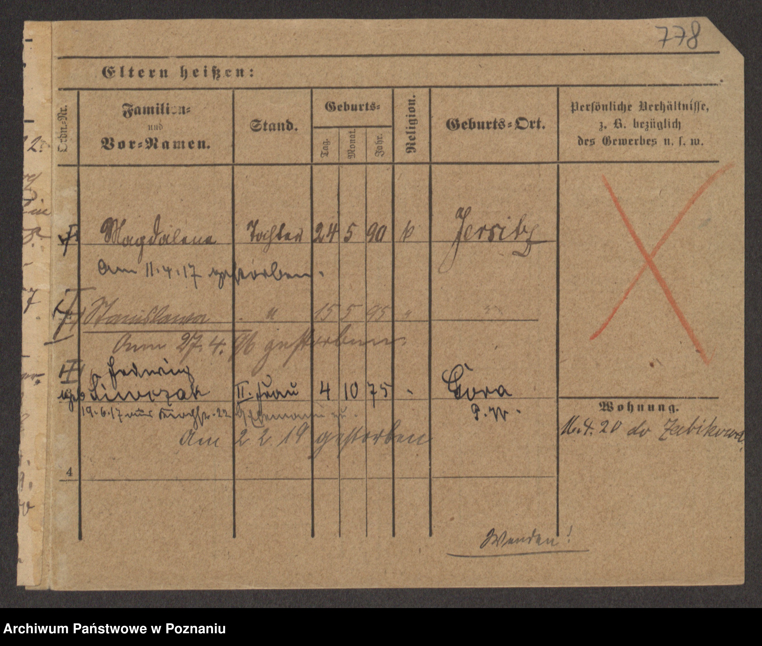 Podgląd karty osobowej dostępny jest po kliknięciu na nazwisko lub ikonkę karty. Można dokonywać powiększenia (ikony na górze) lub przechodzić między kolejnymi skanami (strzałki po bokach).