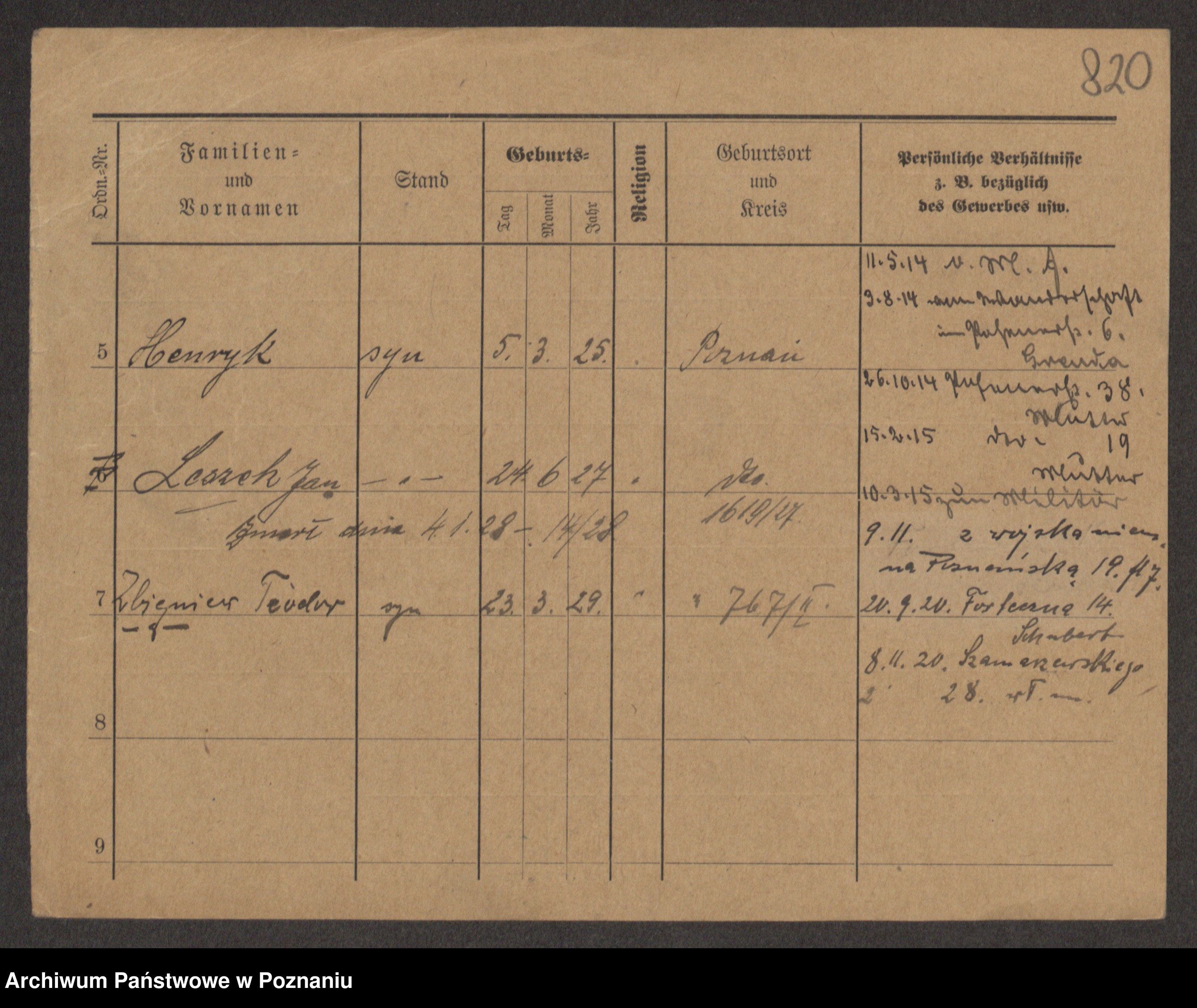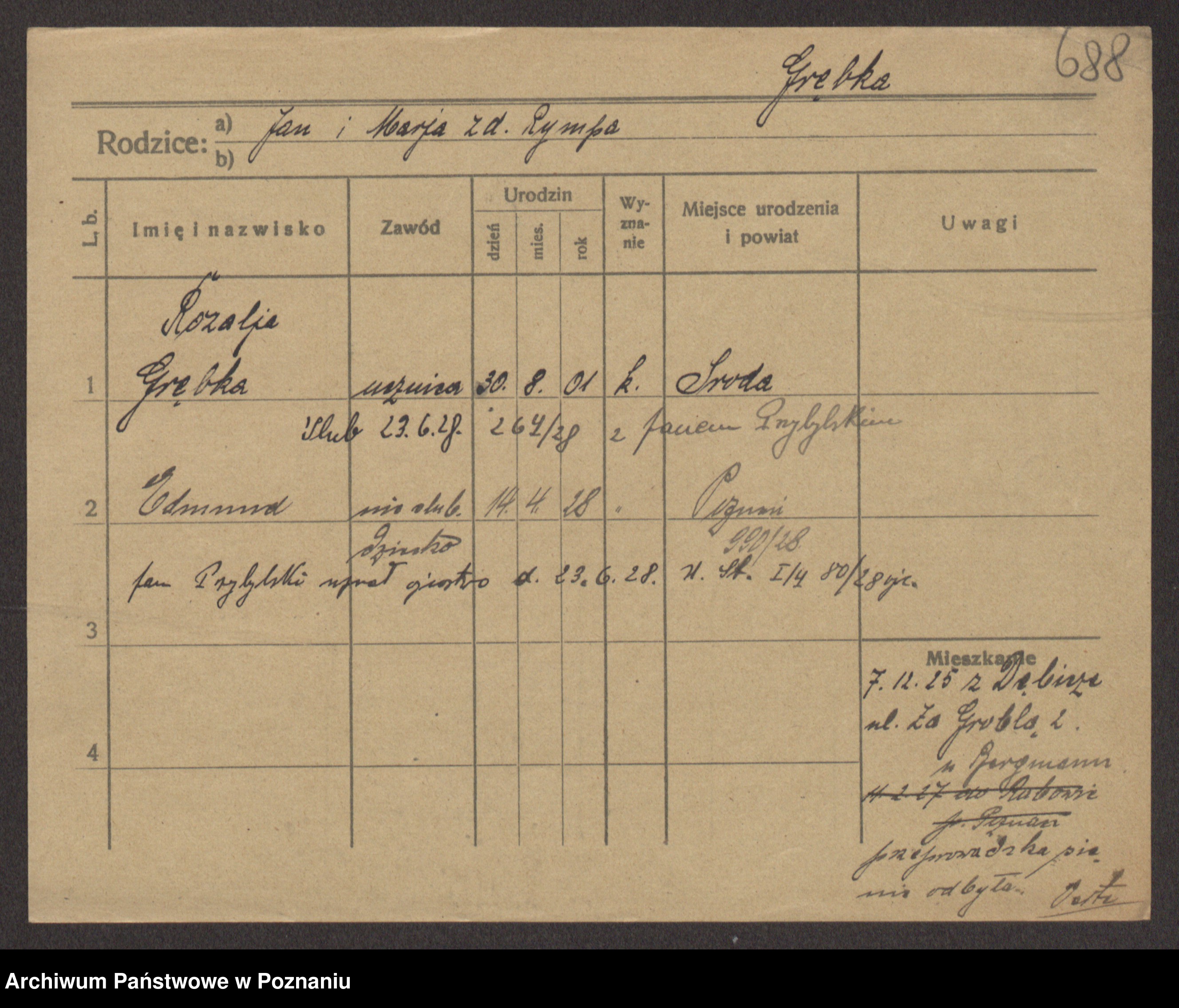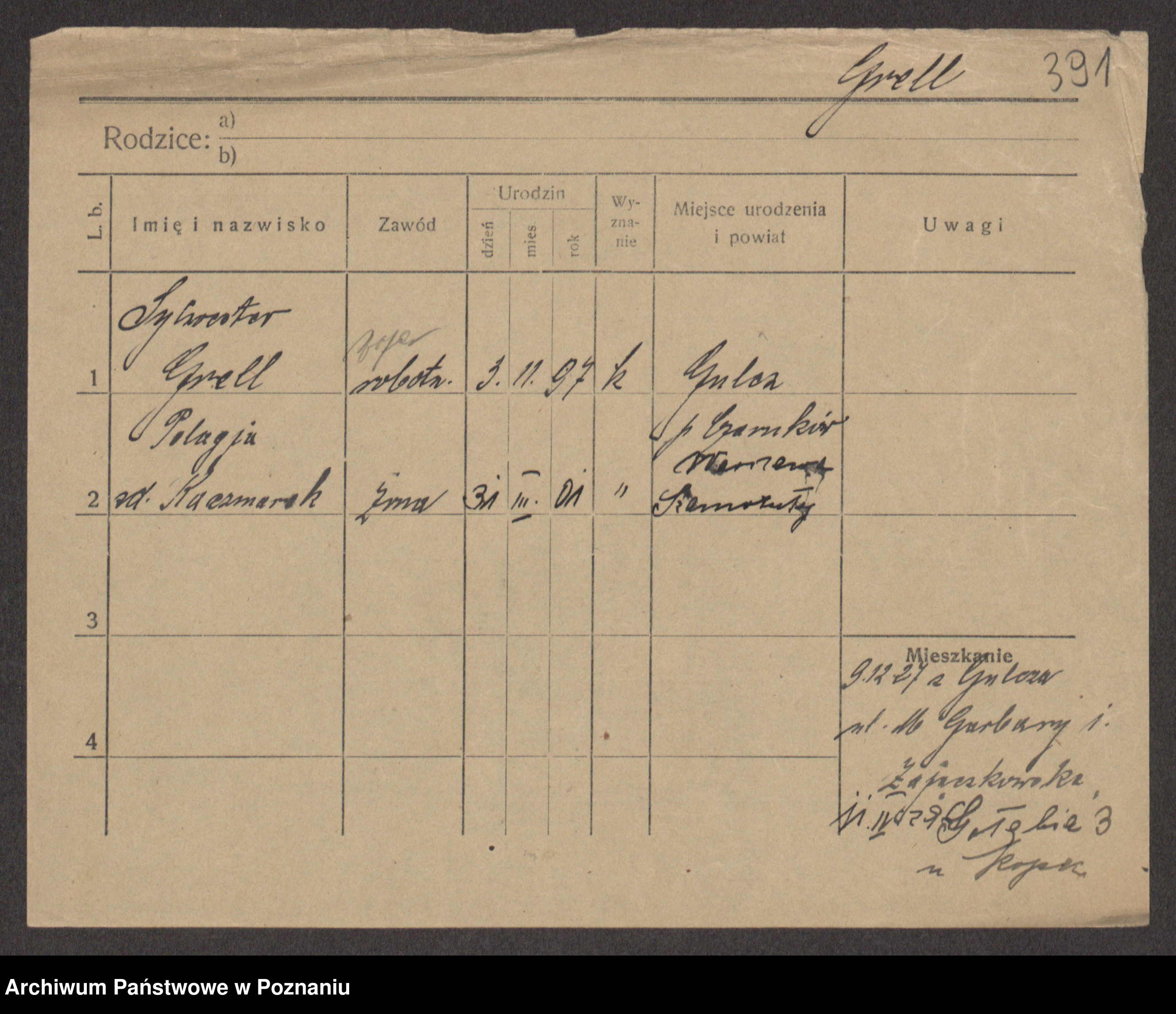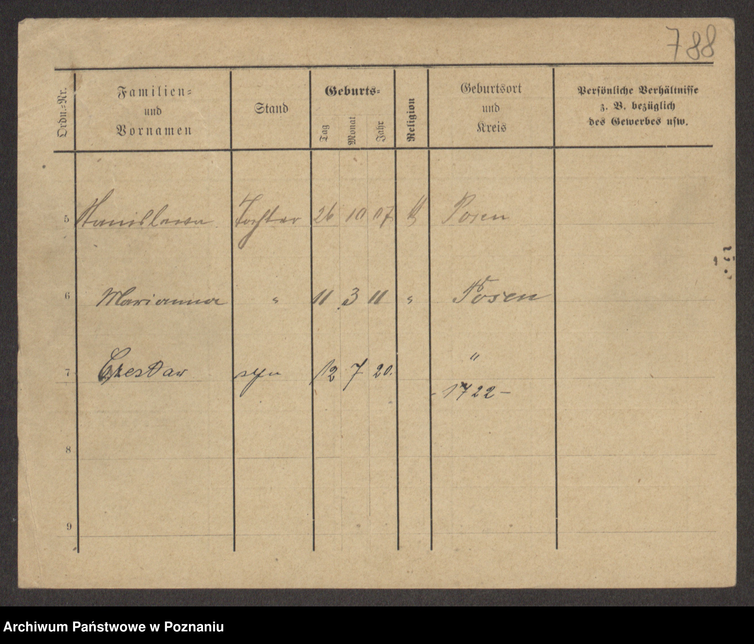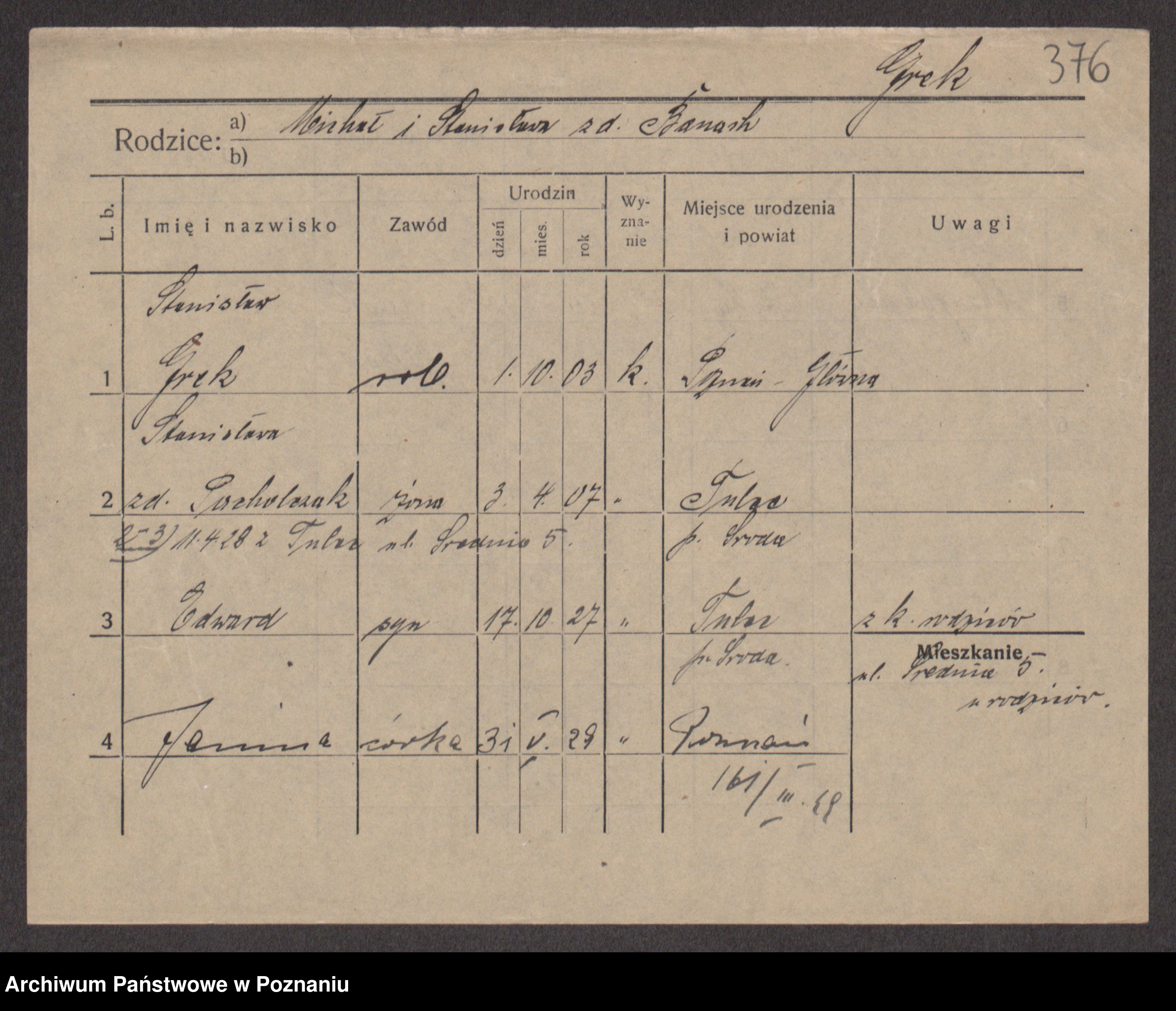 Podgląd karty osobowej dostępny jest po kliknięciu na nazwisko lub ikonkę karty. Można dokonywać powiększenia (ikony na górze) lub przechodzić między kolejnymi skanami (strzałki po bokach).
