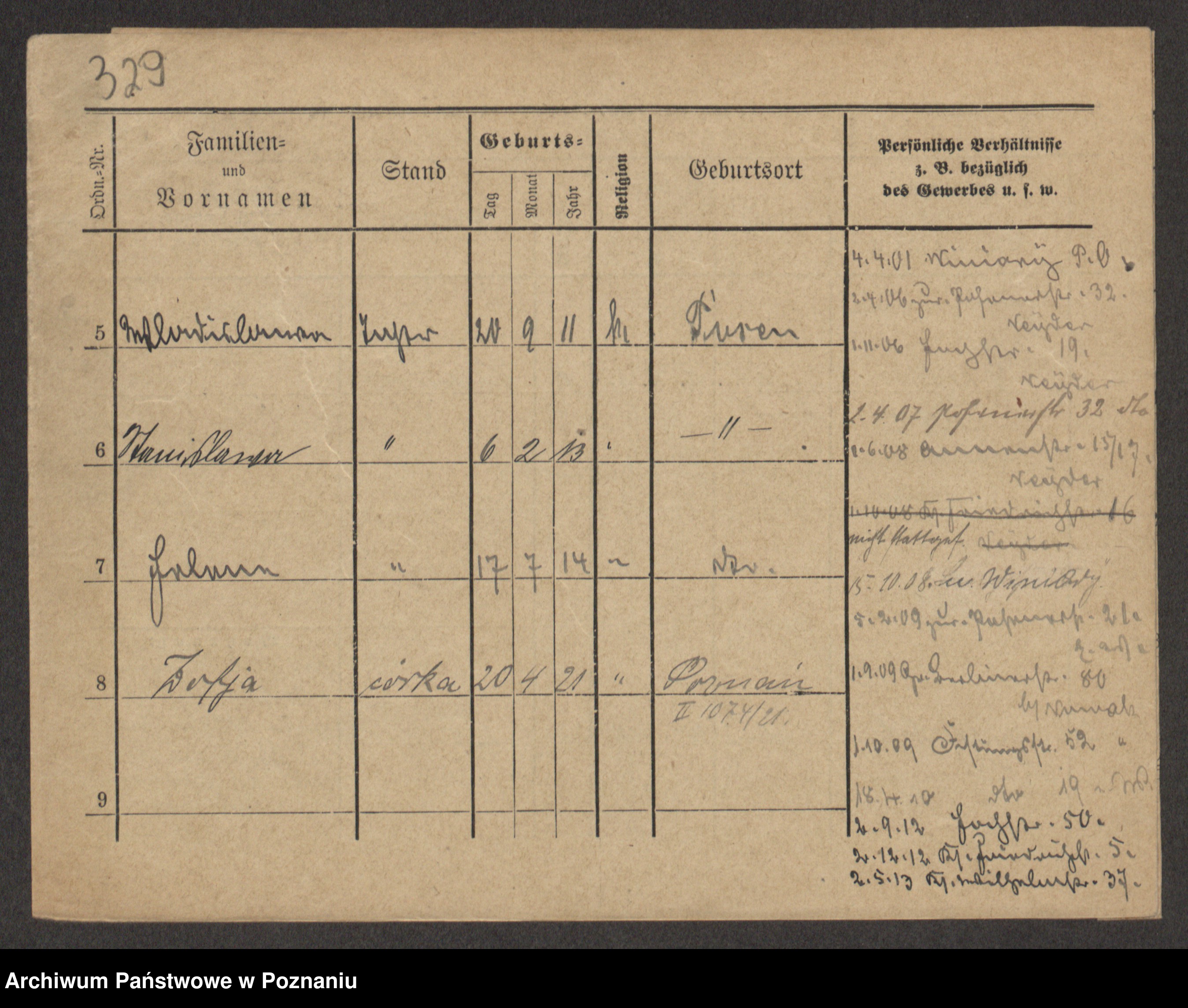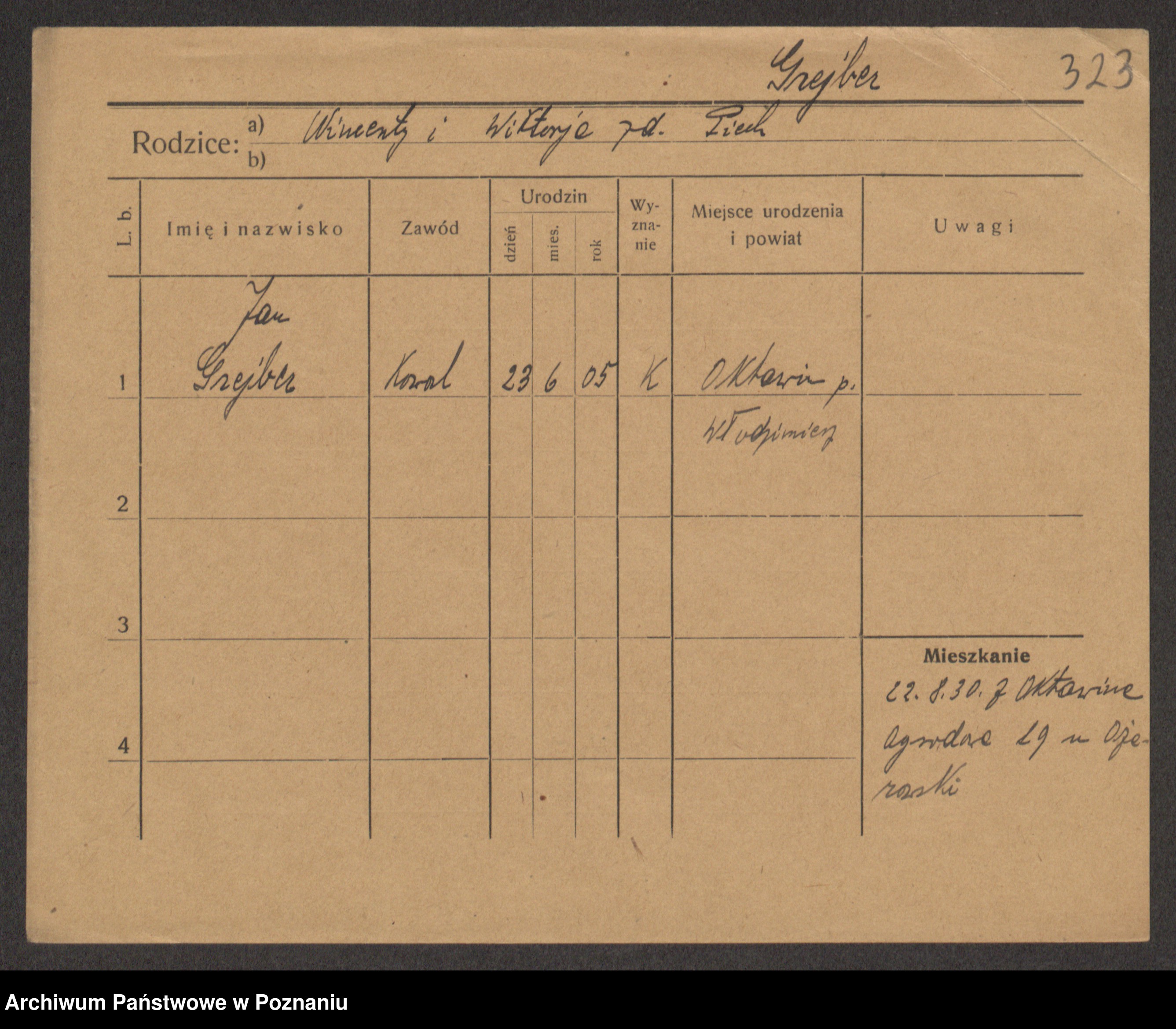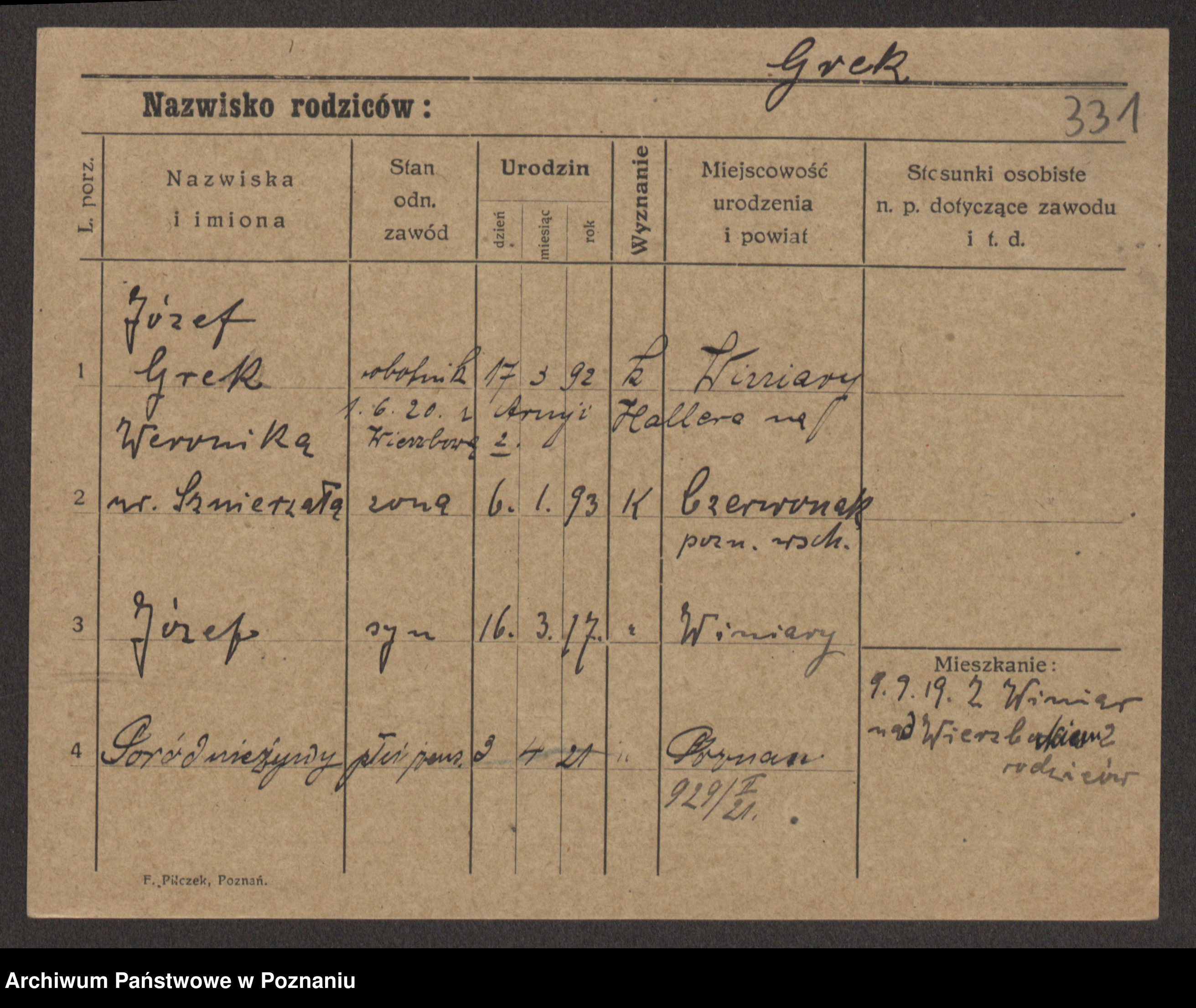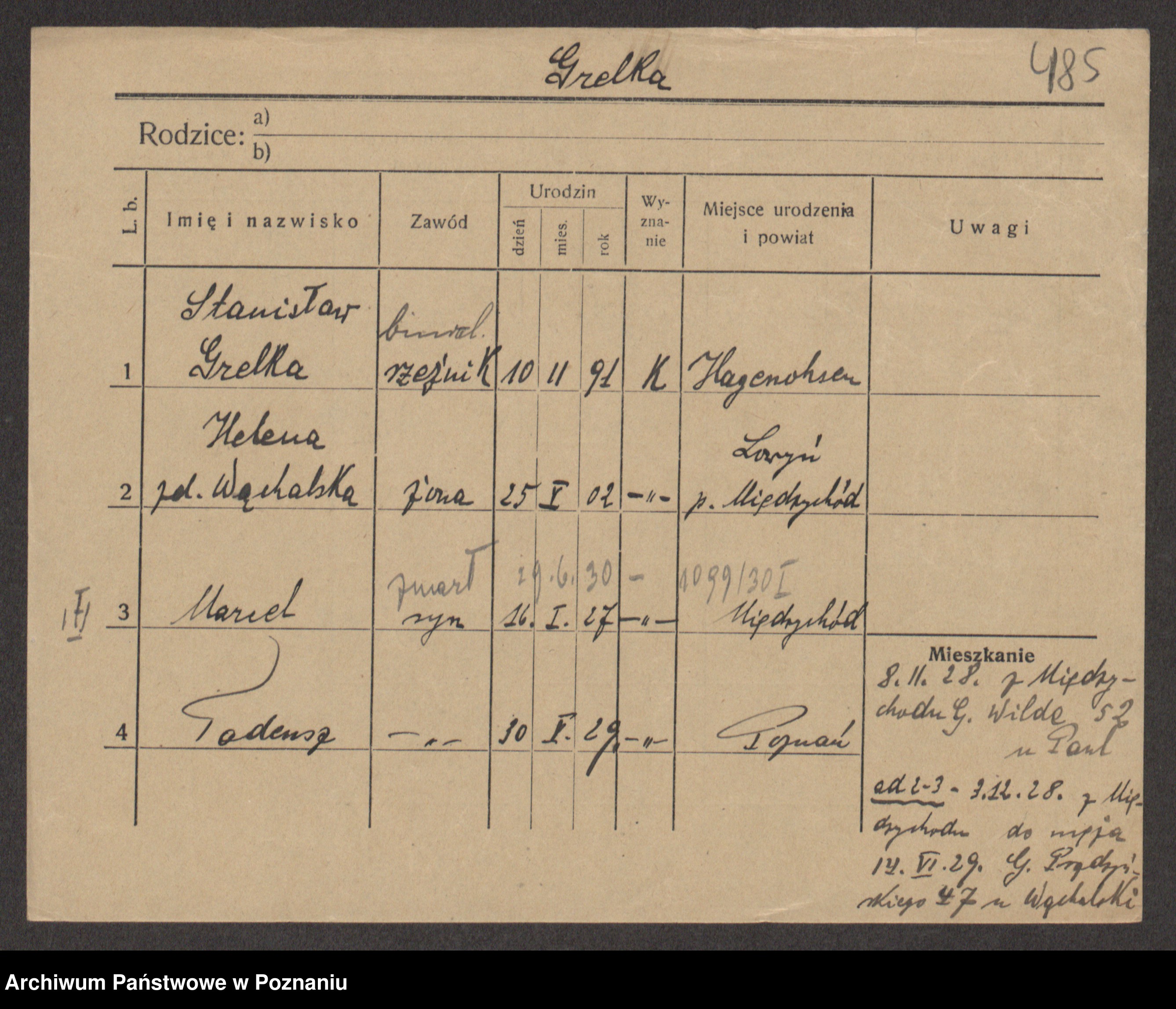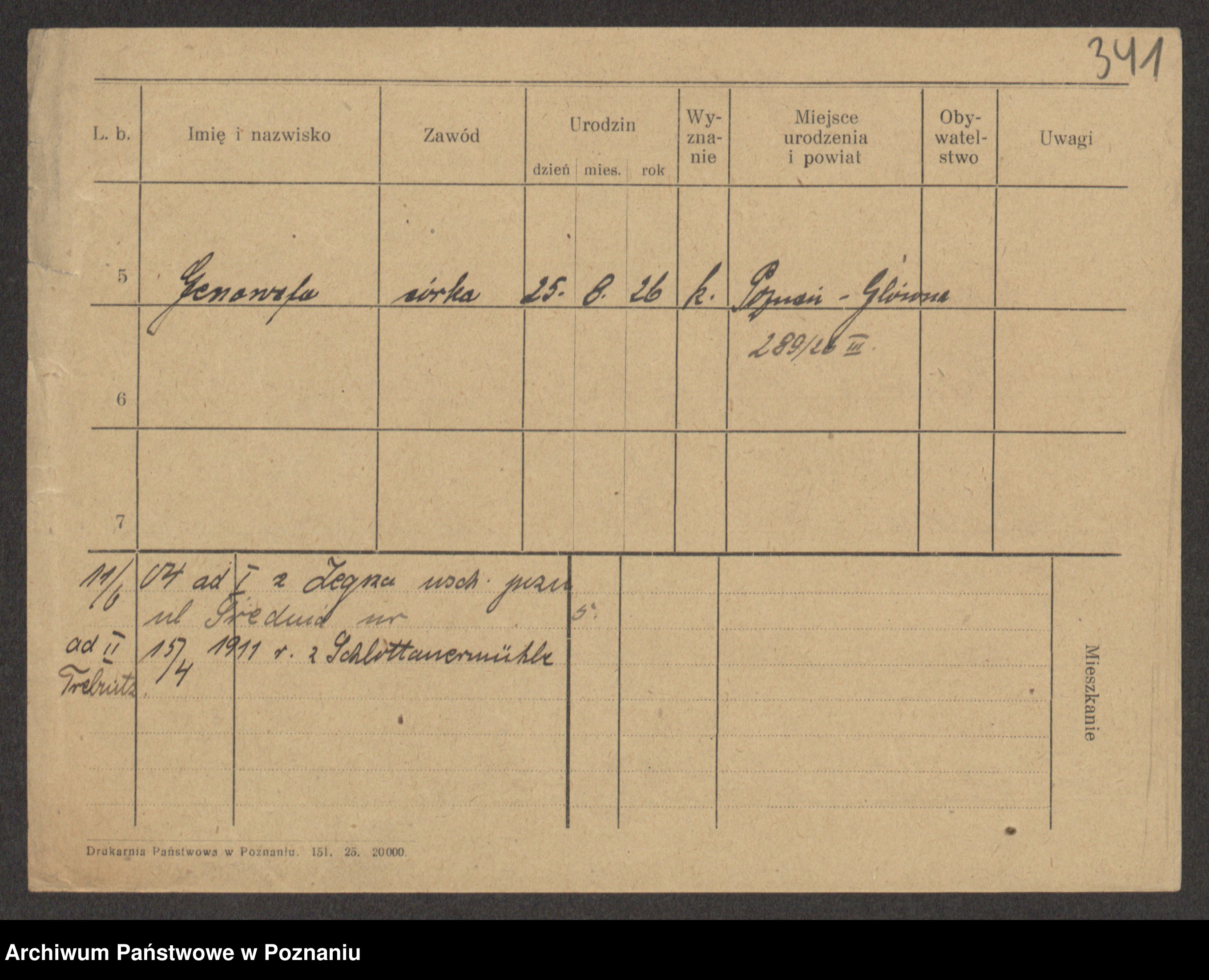 Podgląd karty osobowej dostępny jest po kliknięciu na nazwisko lub ikonkę karty. Można dokonywać powiększenia (ikony na górze) lub przechodzić między kolejnymi skanami (strzałki po bokach).