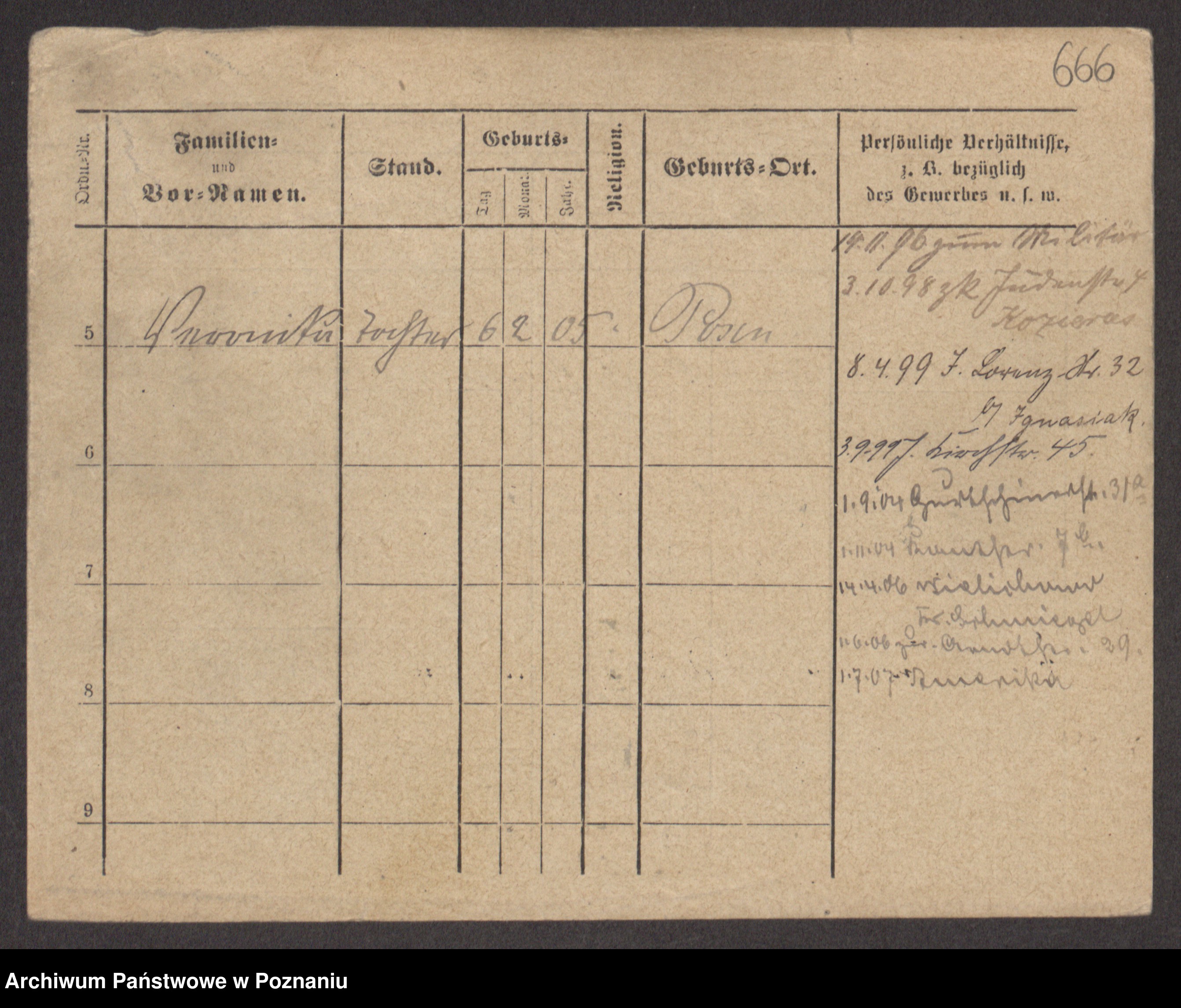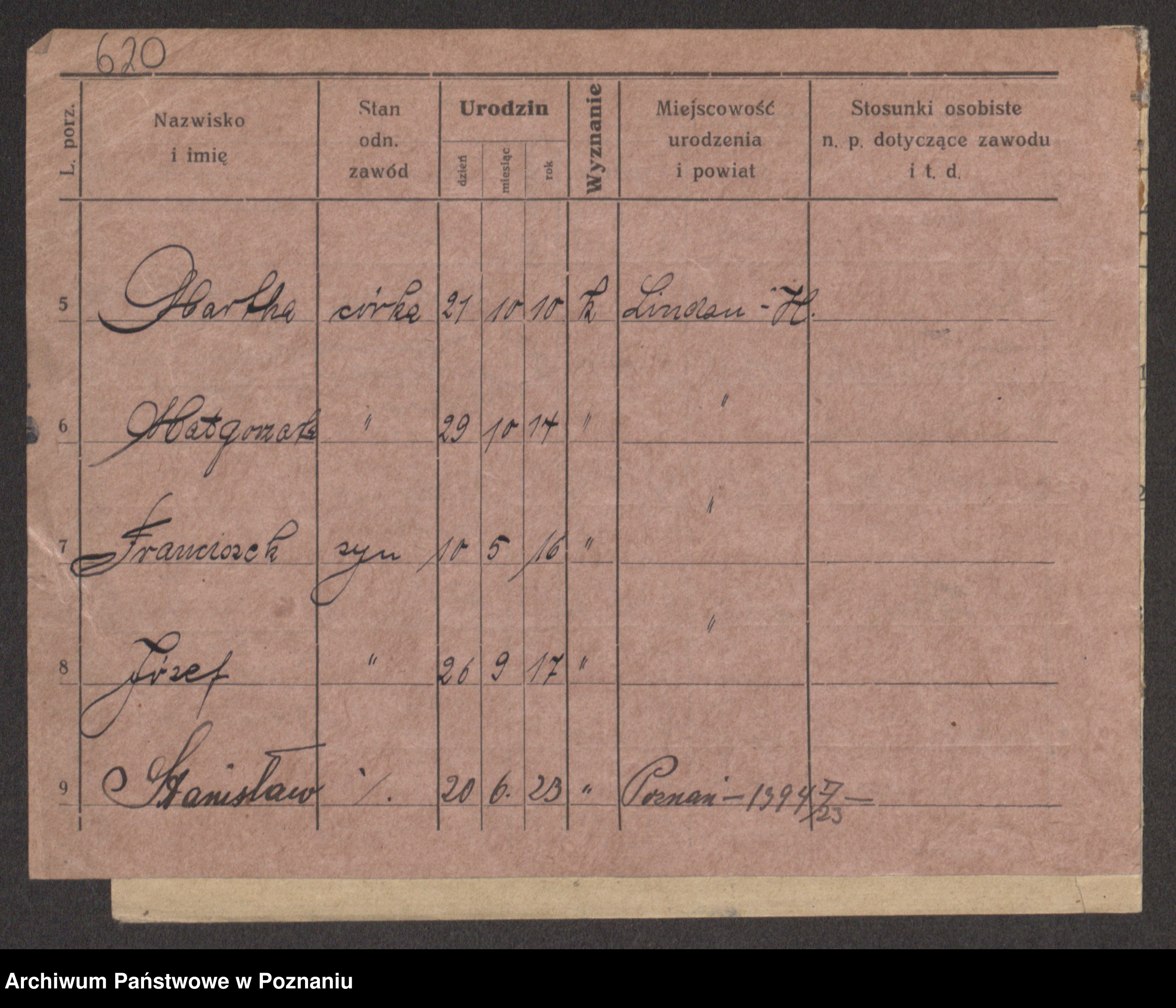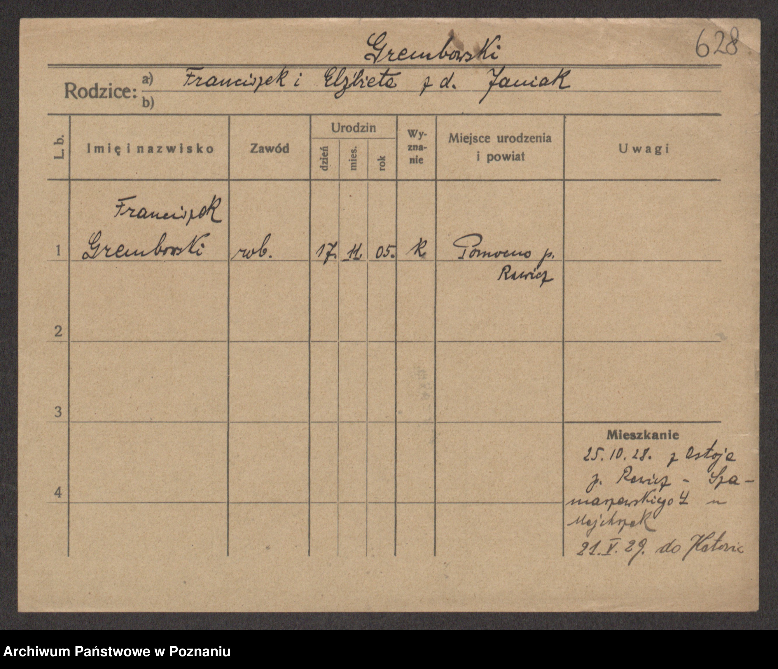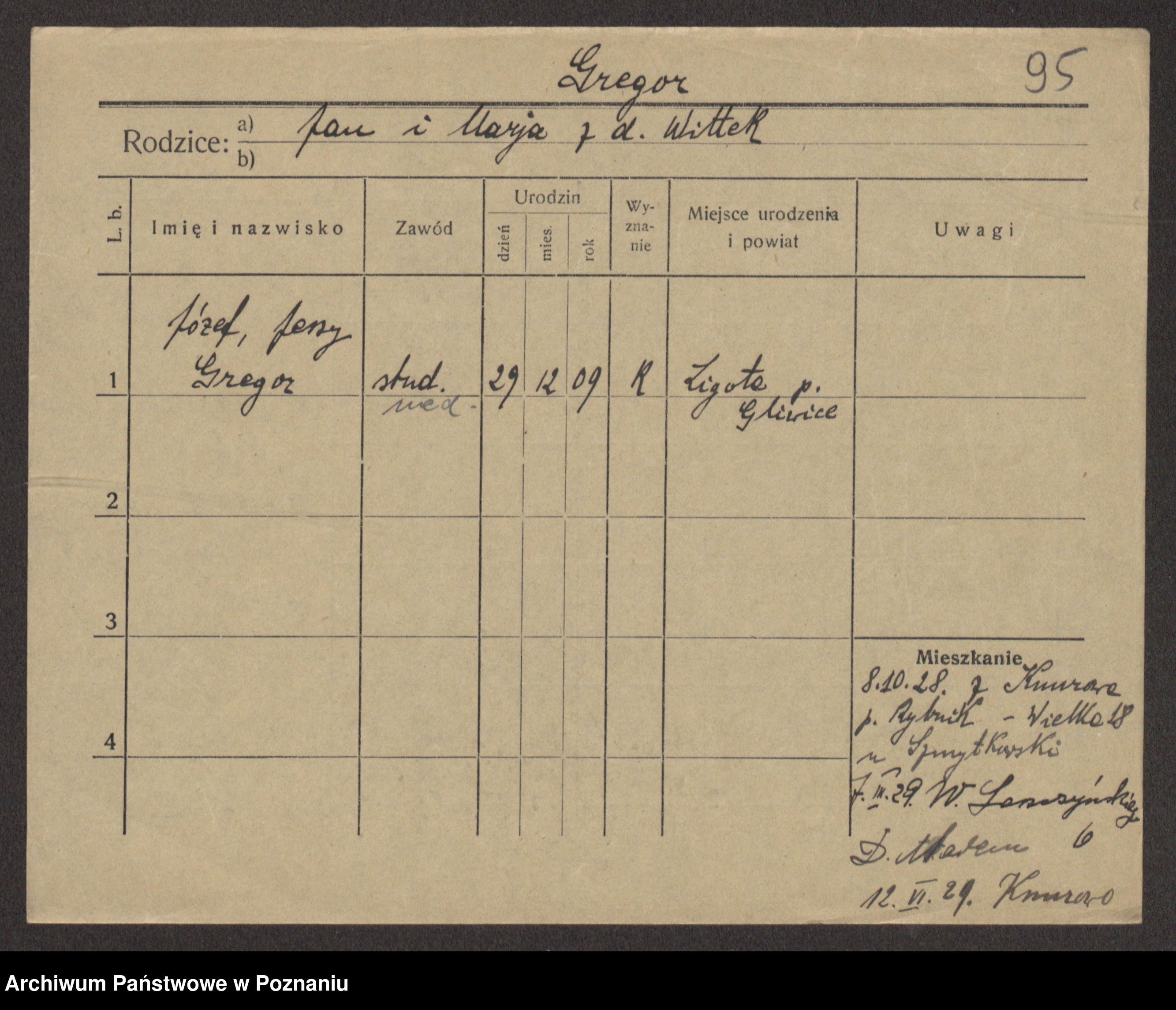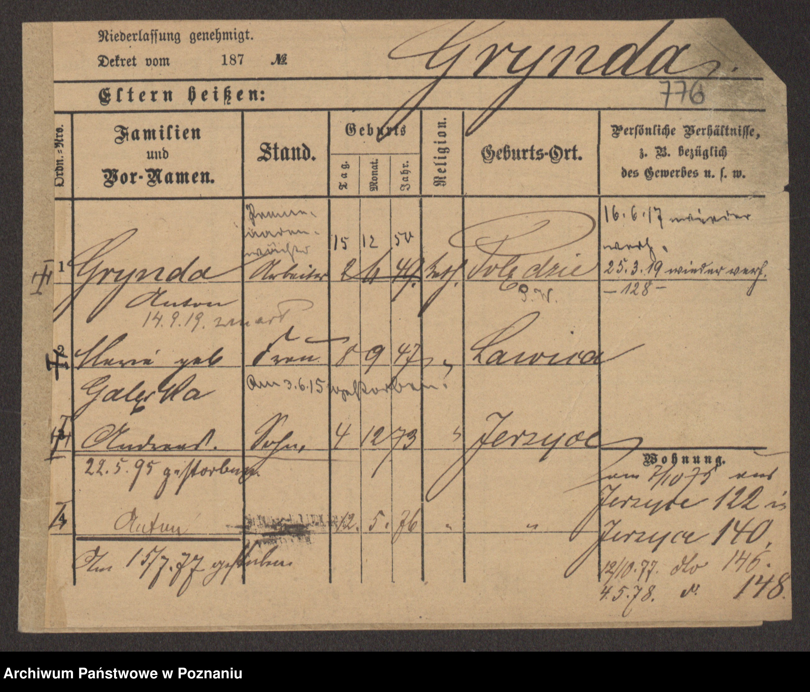 Podgląd karty osobowej dostępny jest po kliknięciu na nazwisko lub ikonkę karty. Można dokonywać powiększenia (ikony na górze) lub przechodzić między kolejnymi skanami (strzałki po bokach).