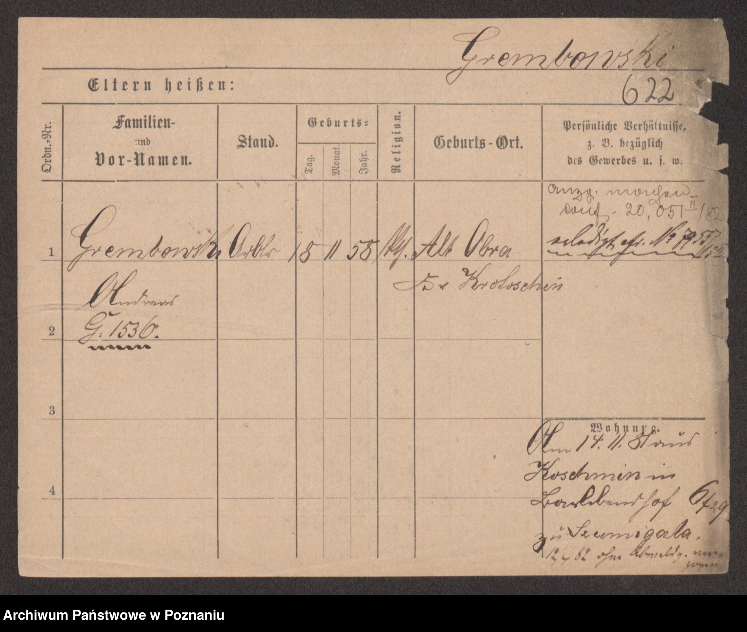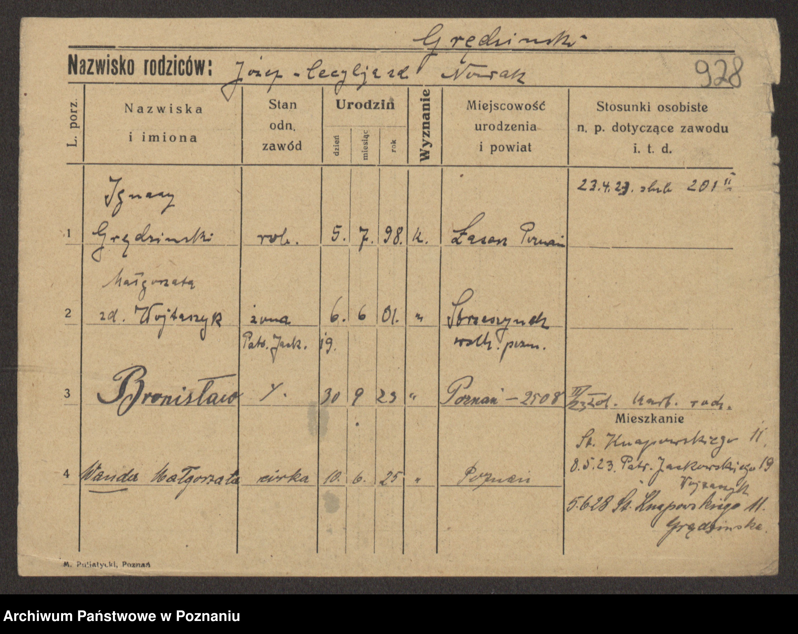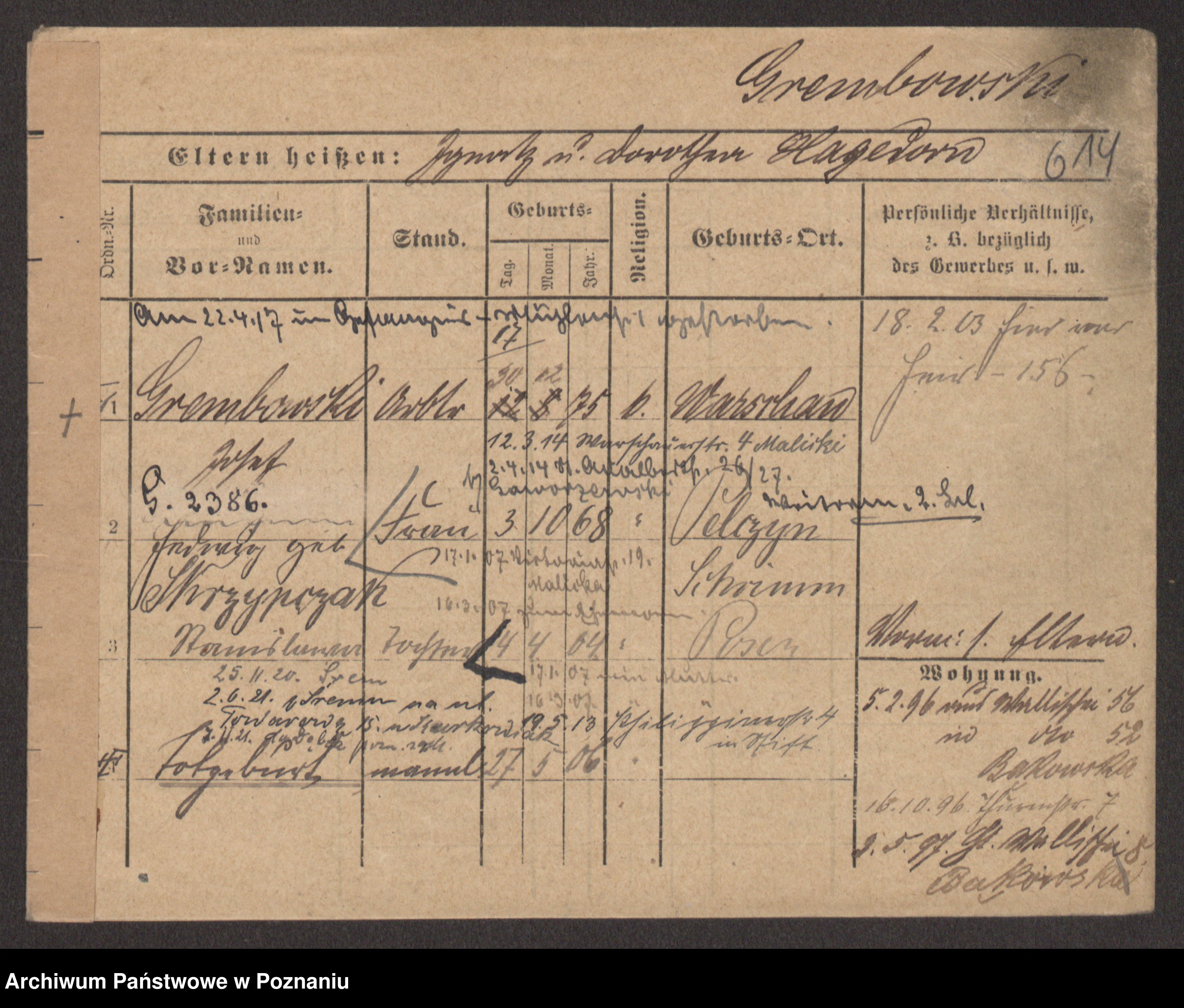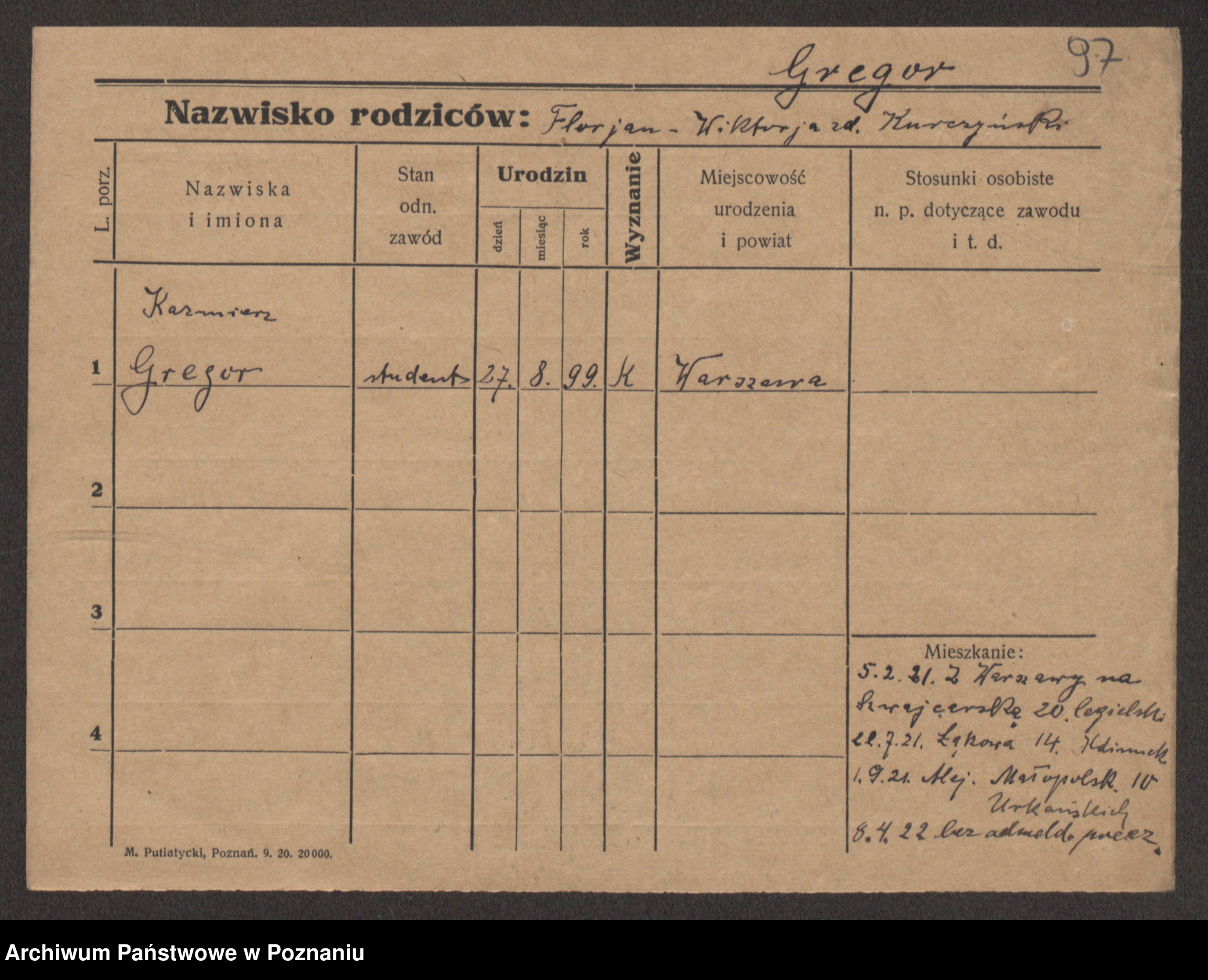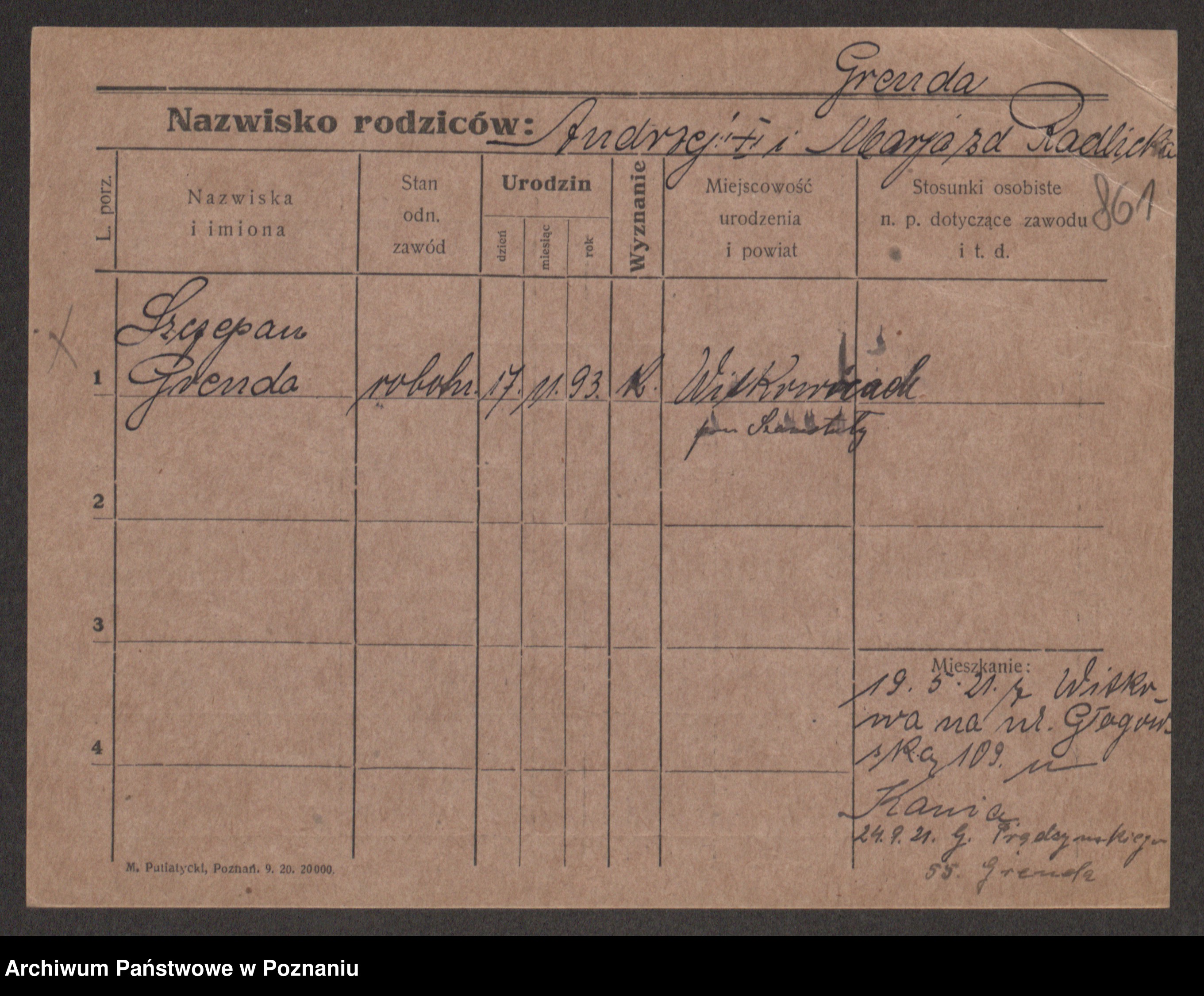 Podgląd karty osobowej dostępny jest po kliknięciu na nazwisko lub ikonkę karty. Można dokonywać powiększenia (ikony na górze) lub przechodzić między kolejnymi skanami (strzałki po bokach).