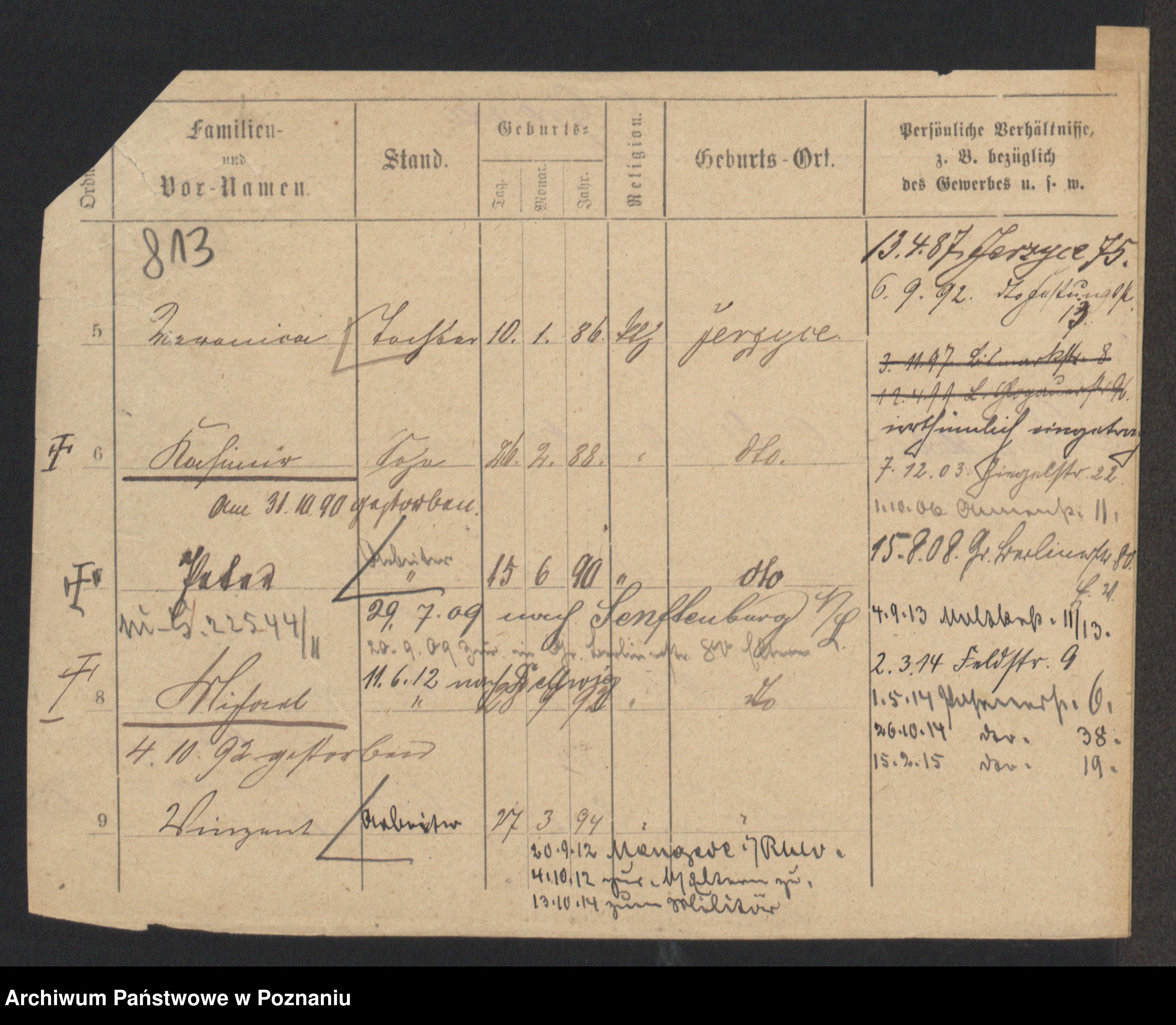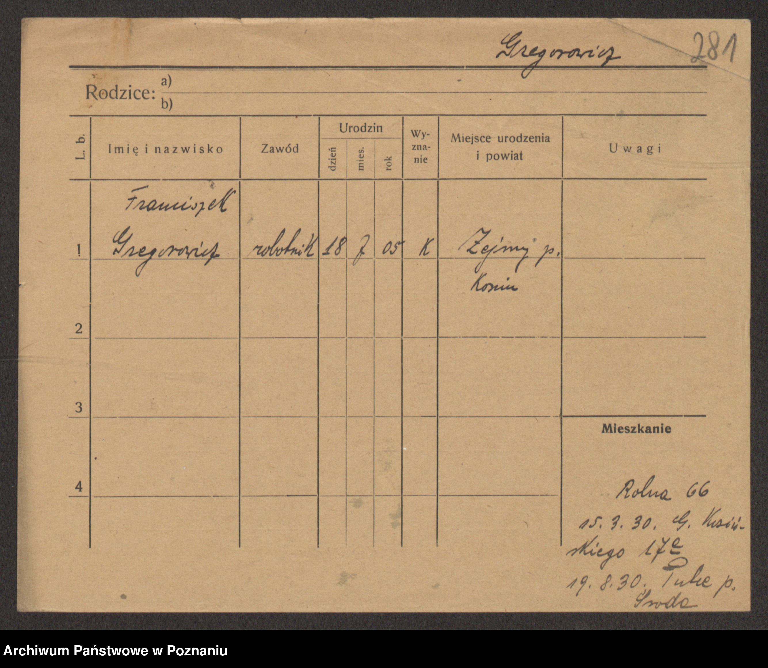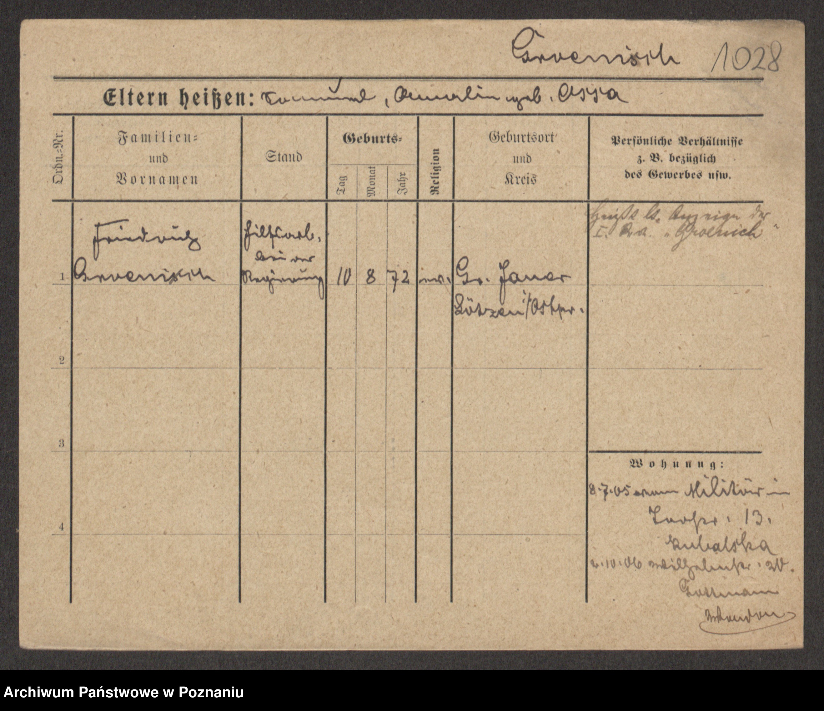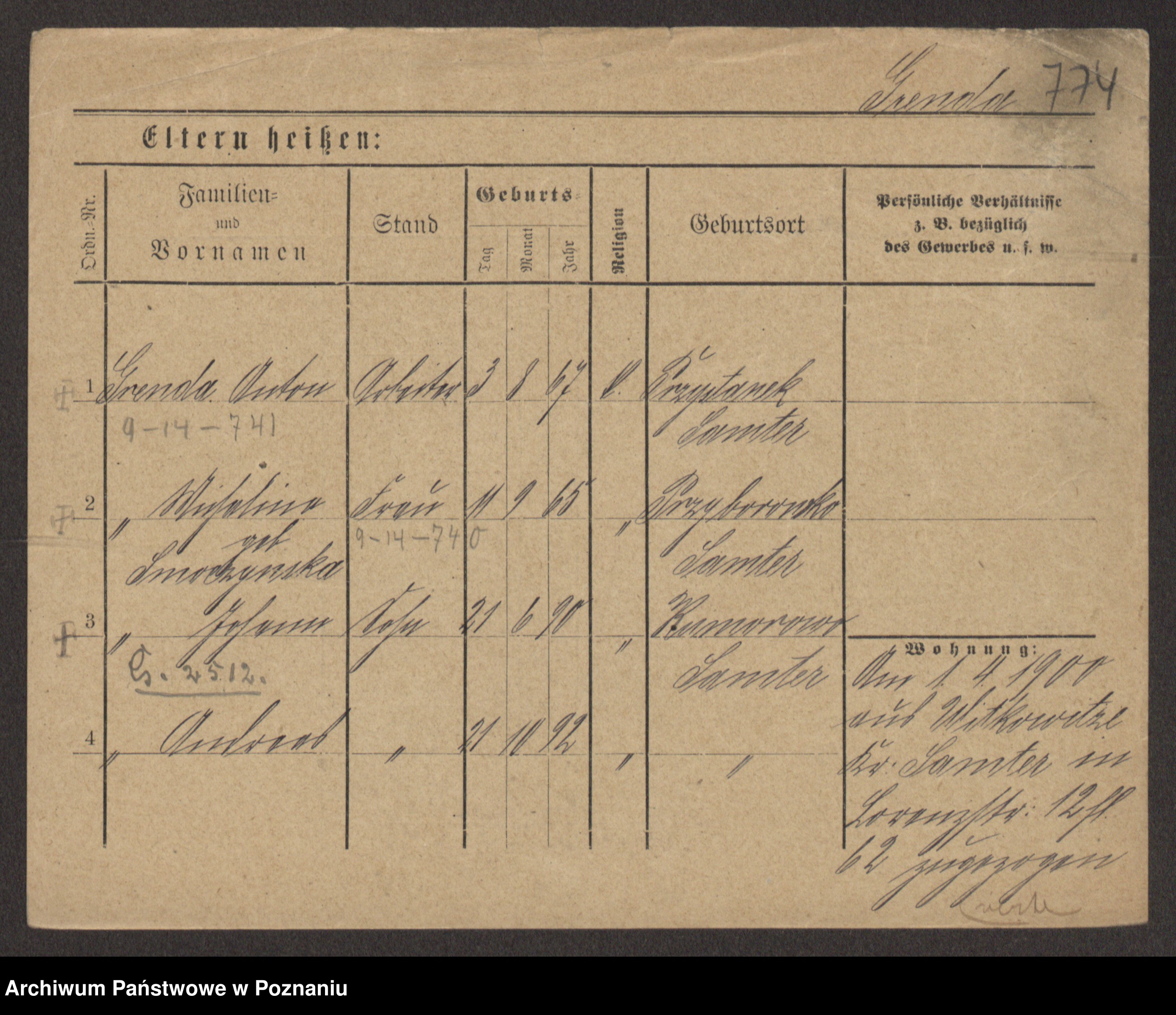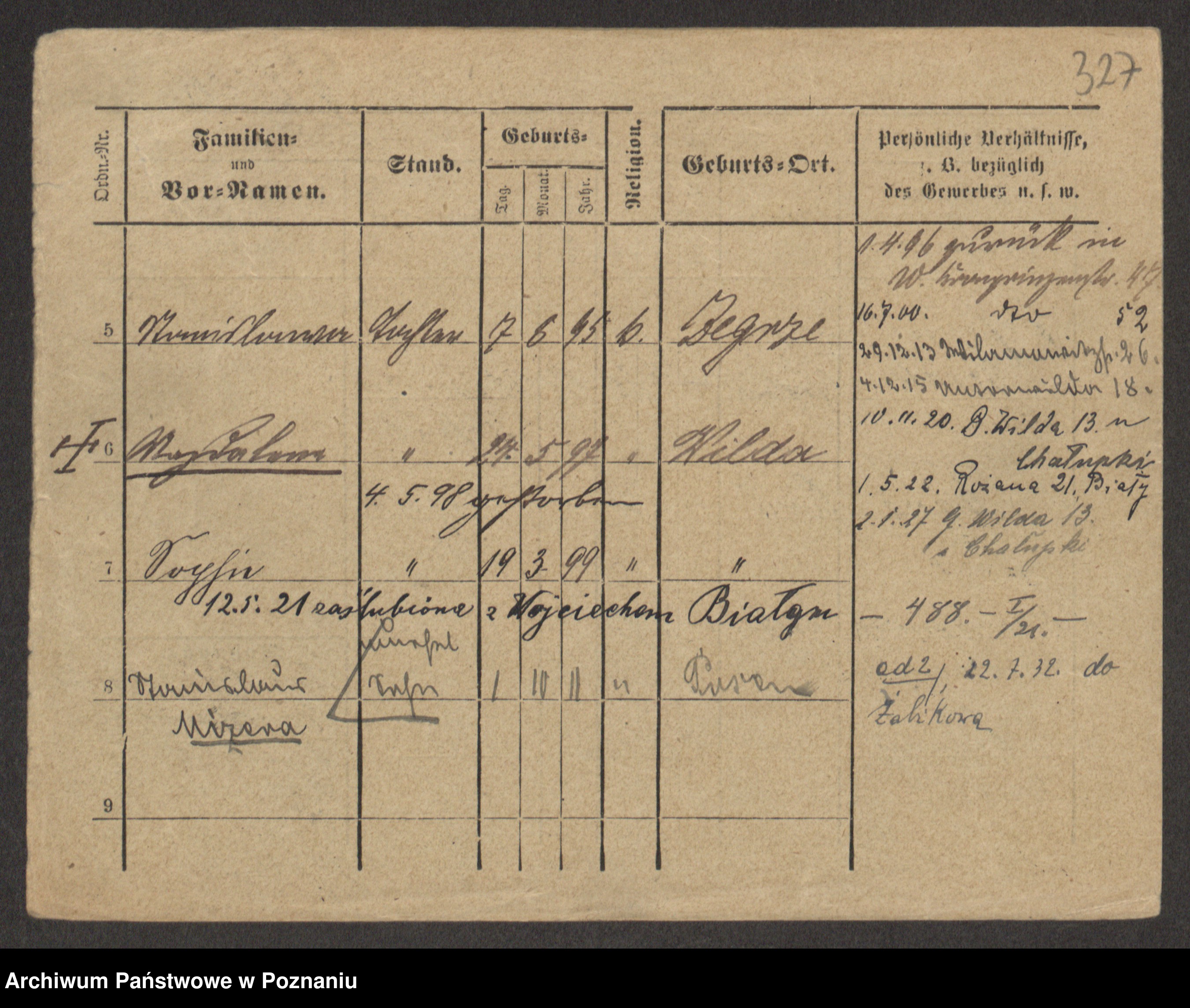 Podgląd karty osobowej dostępny jest po kliknięciu na nazwisko lub ikonkę karty. Można dokonywać powiększenia (ikony na górze) lub przechodzić między kolejnymi skanami (strzałki po bokach).