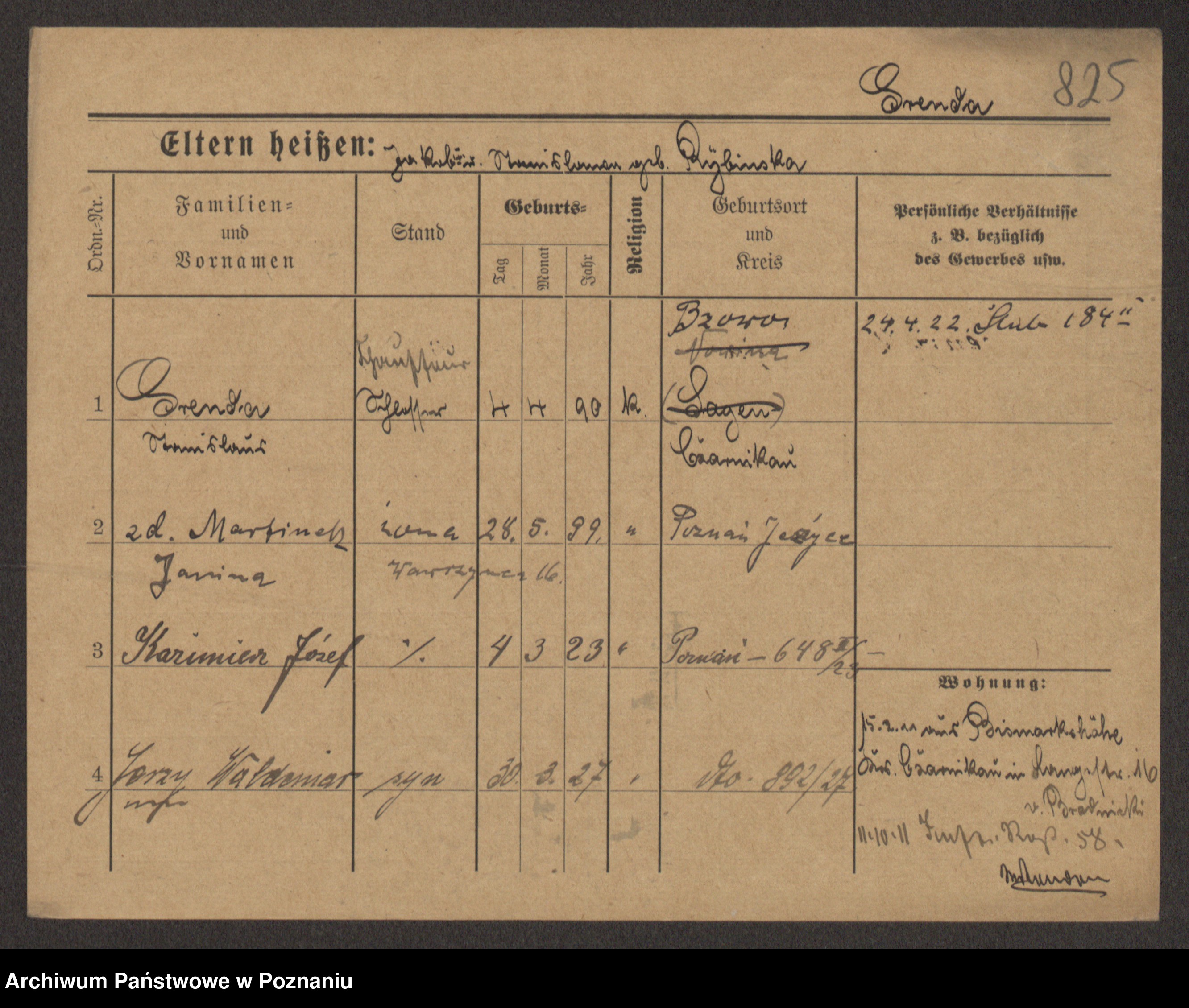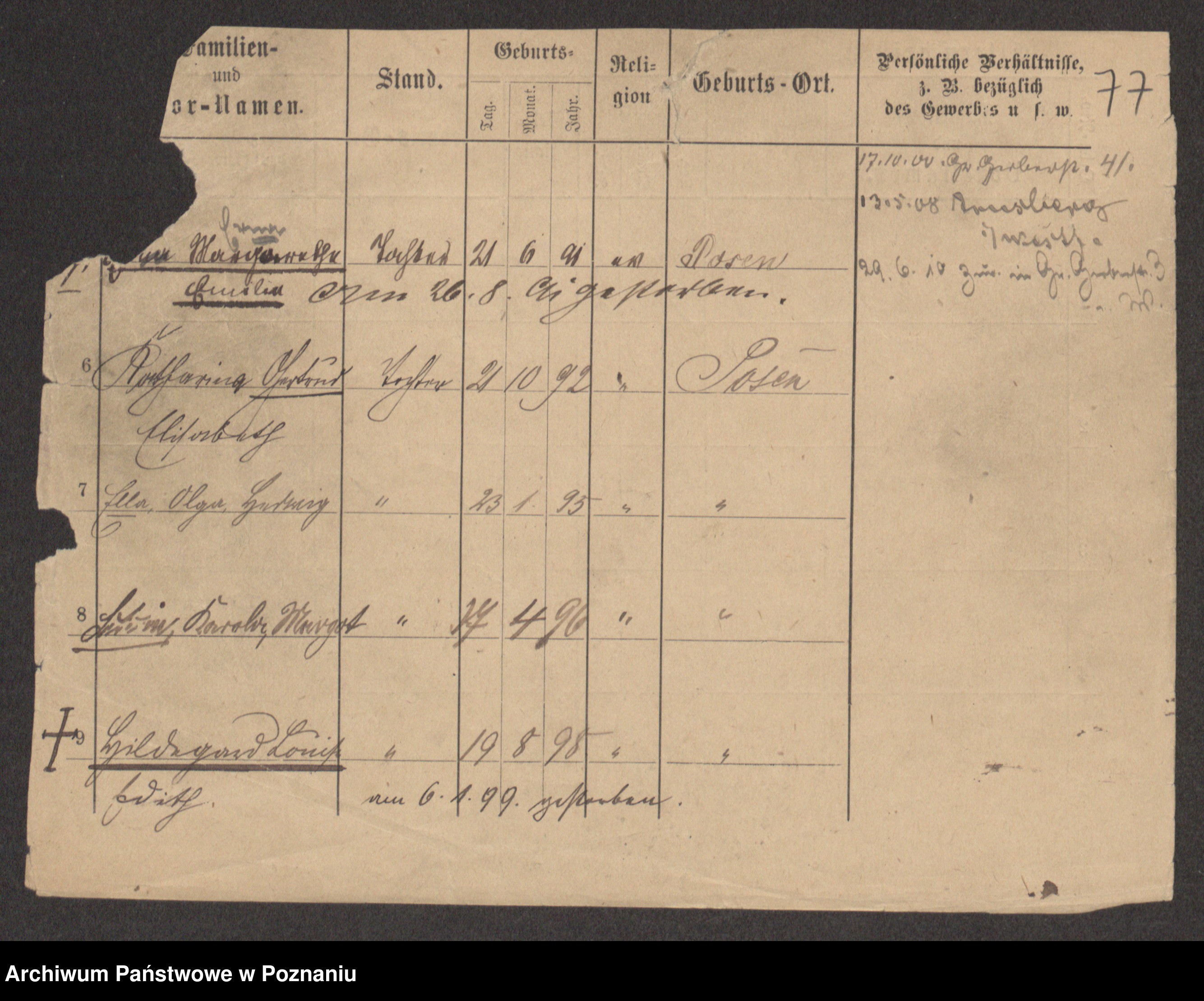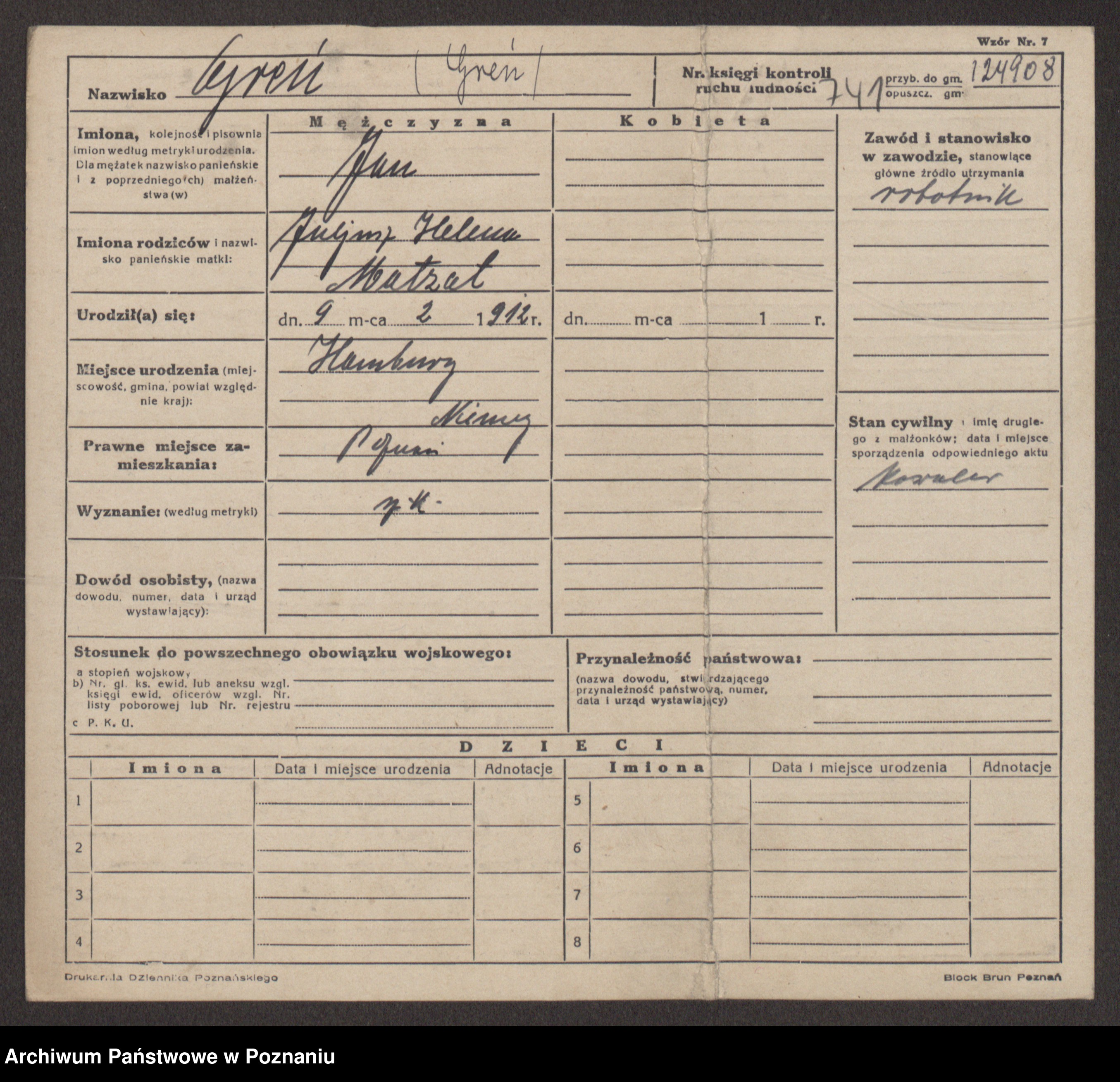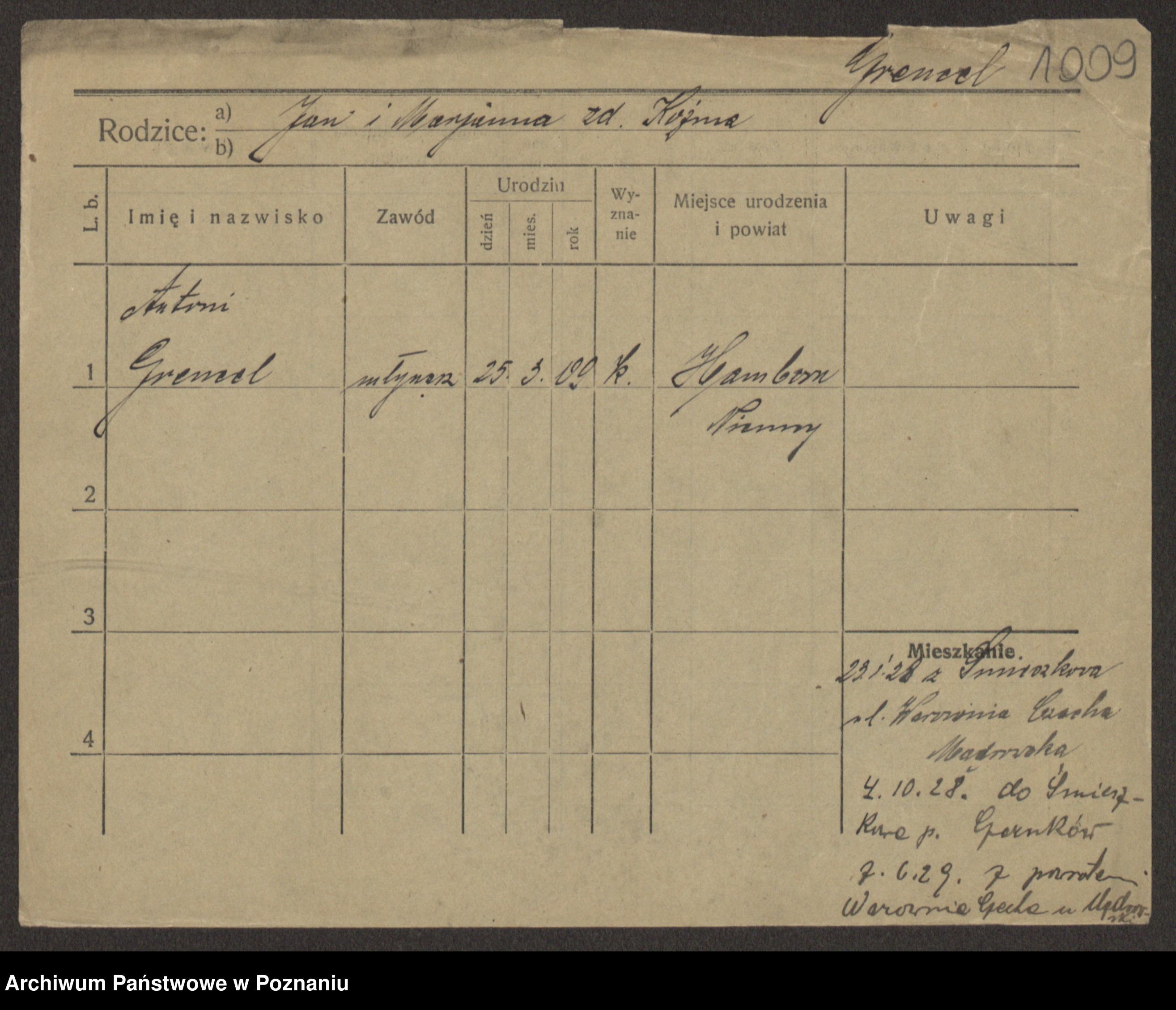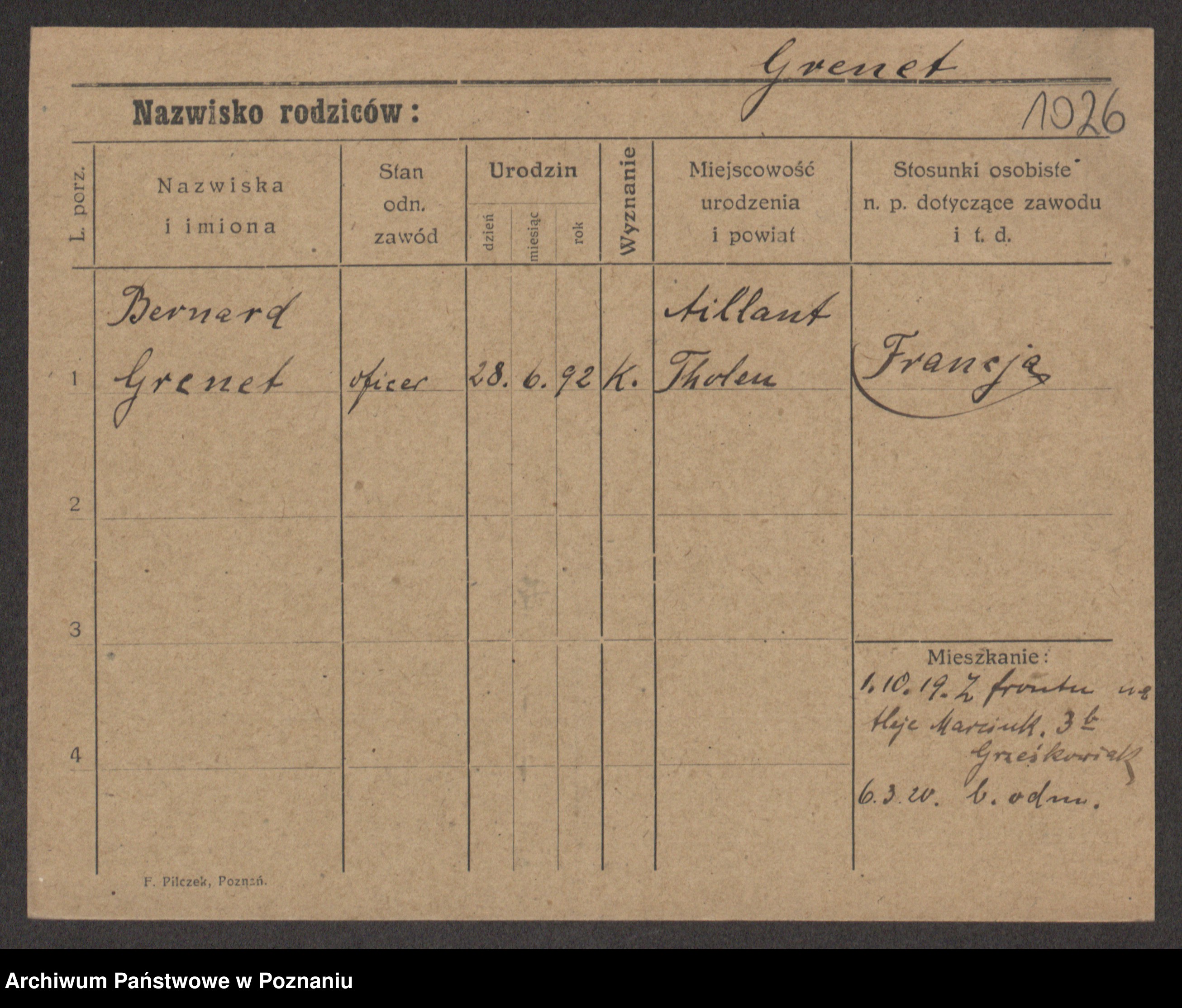 Podgląd karty osobowej dostępny jest po kliknięciu na nazwisko lub ikonkę karty. Można dokonywać powiększenia (ikony na górze) lub przechodzić między kolejnymi skanami (strzałki po bokach).