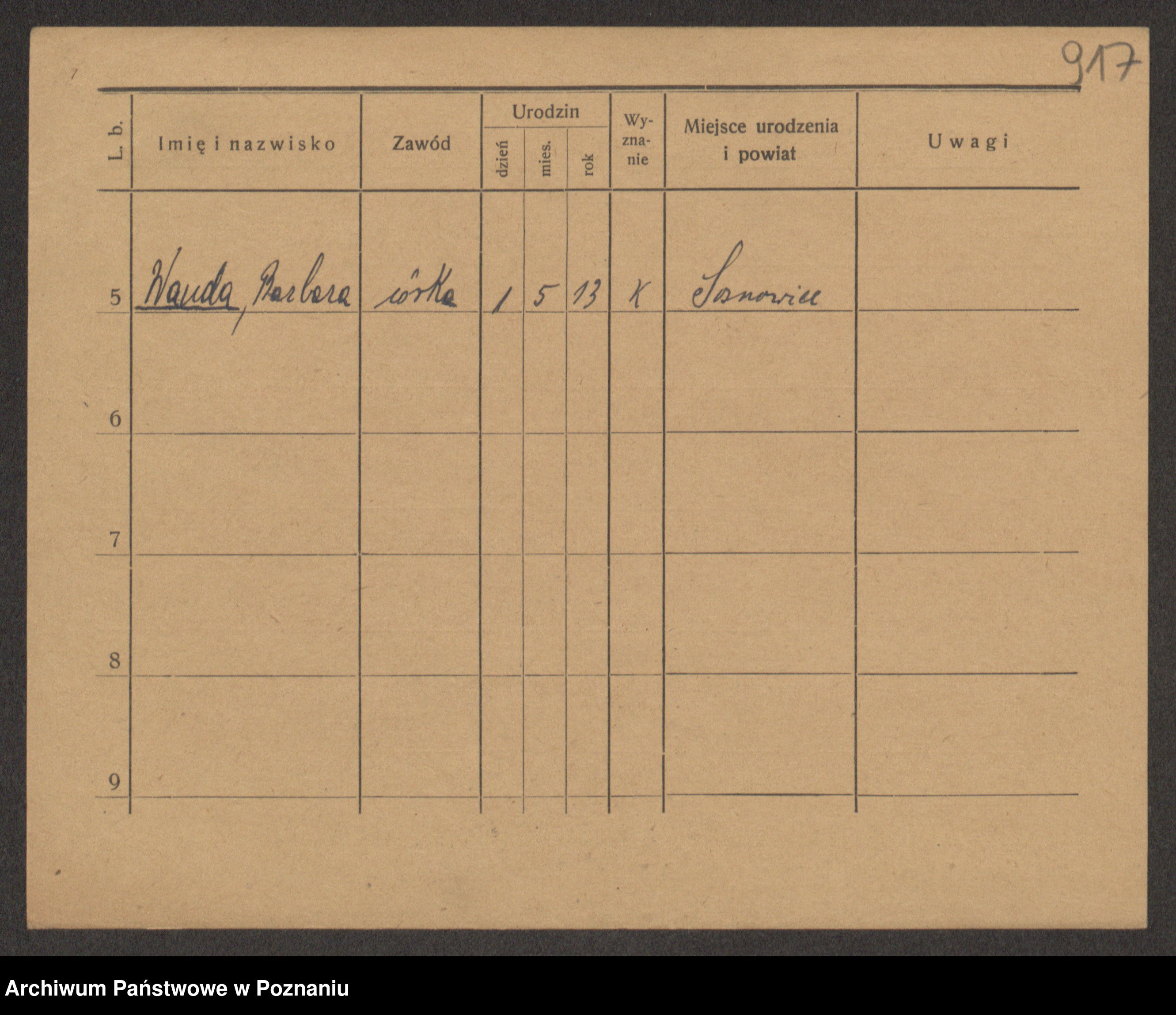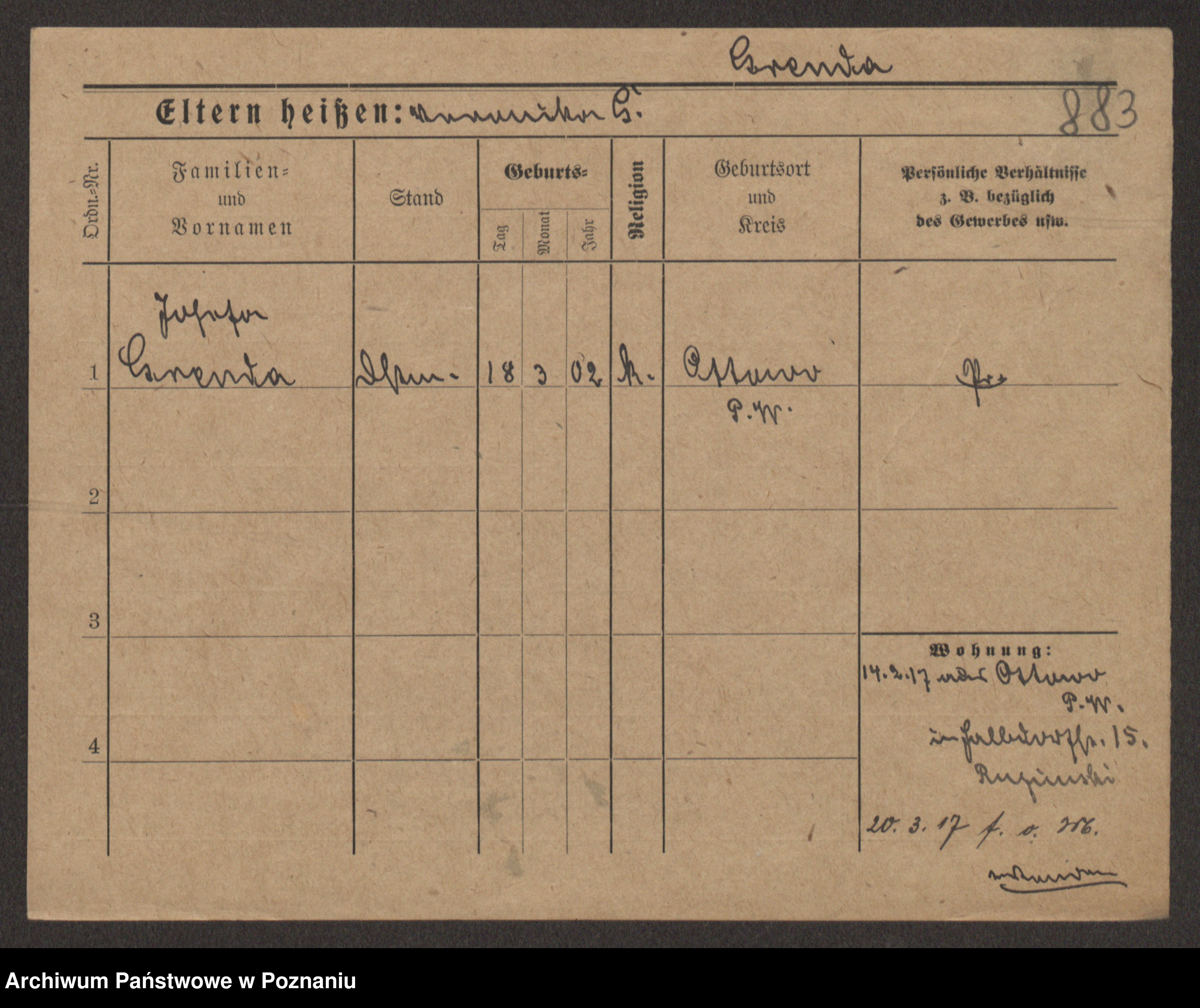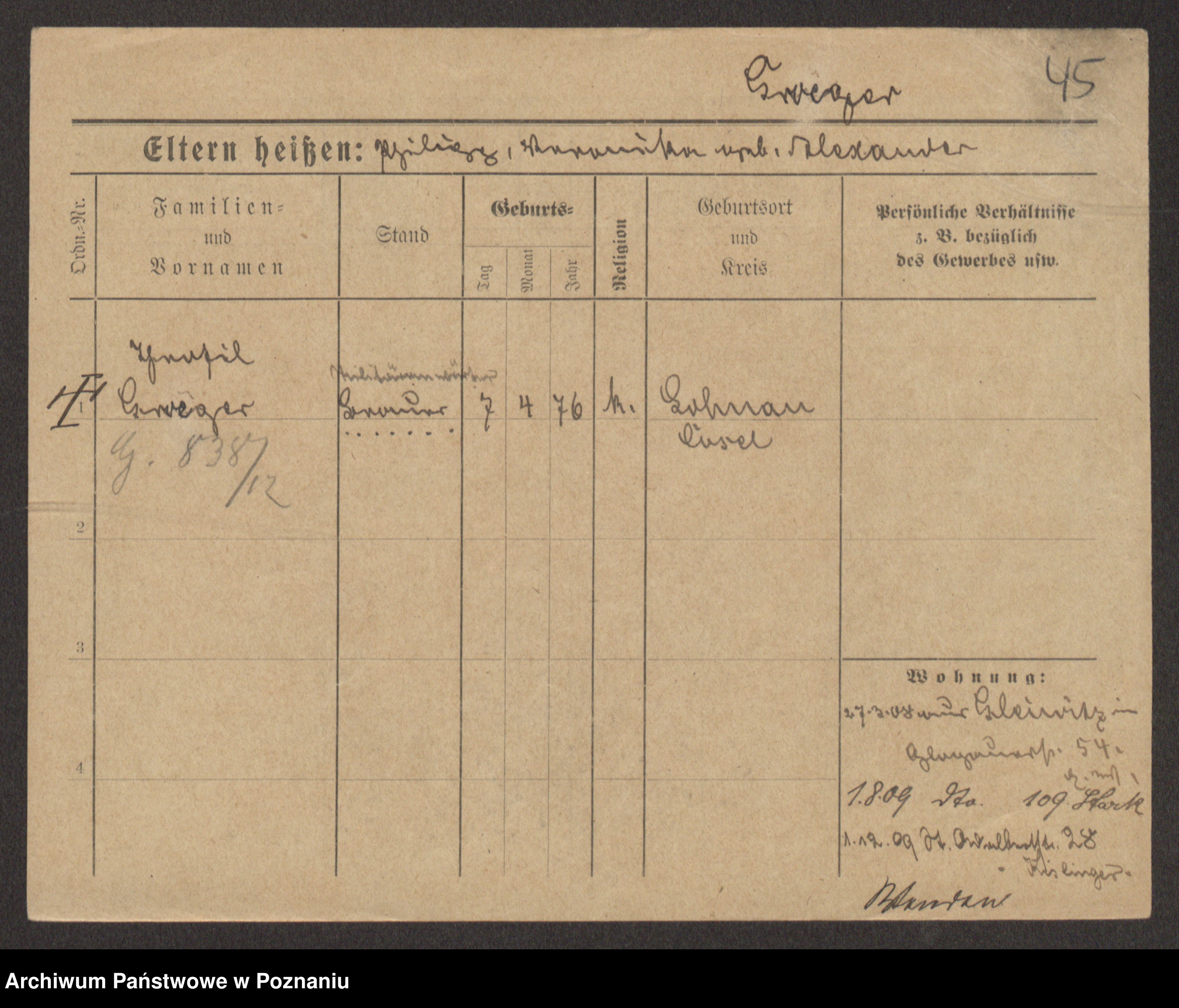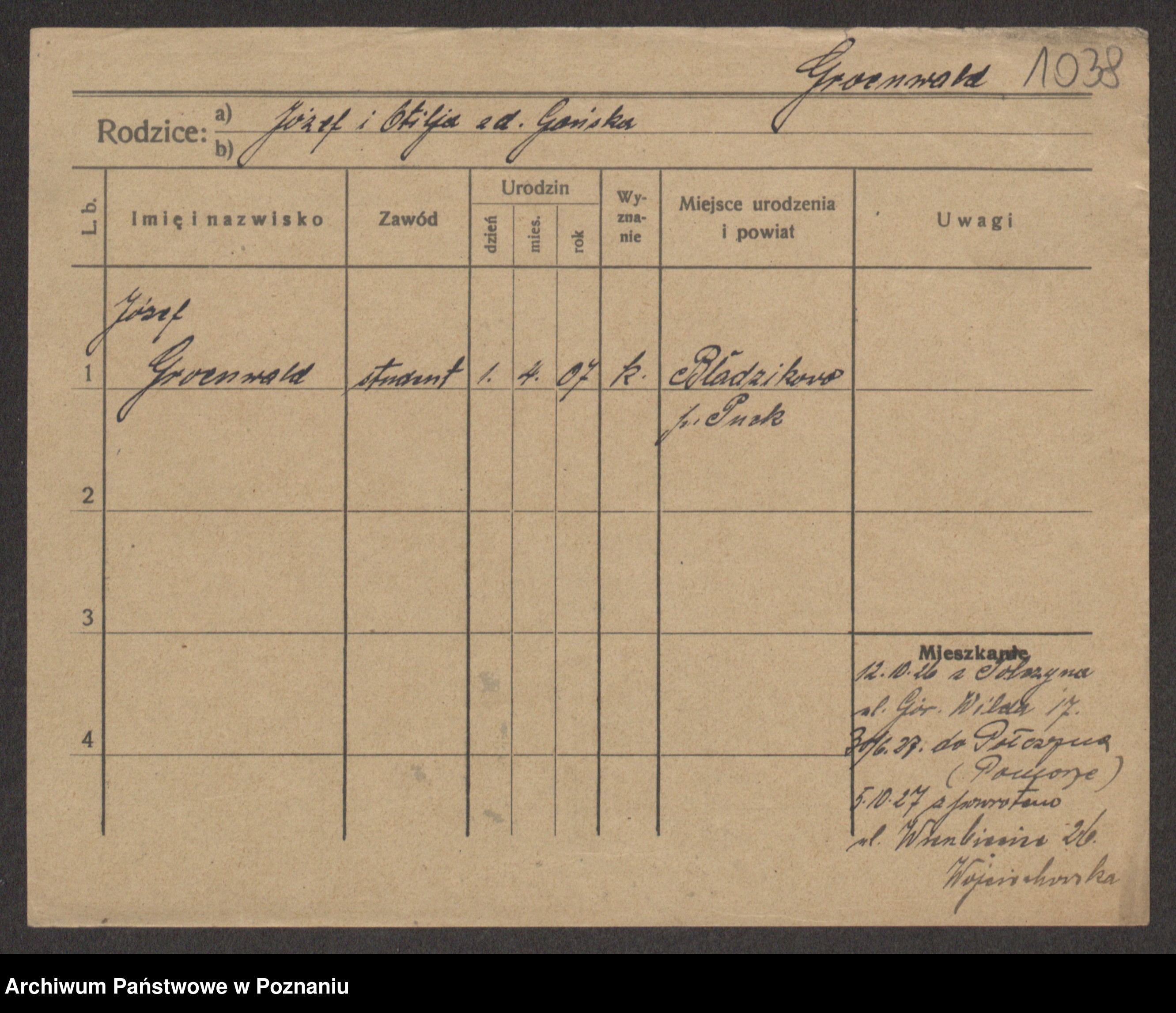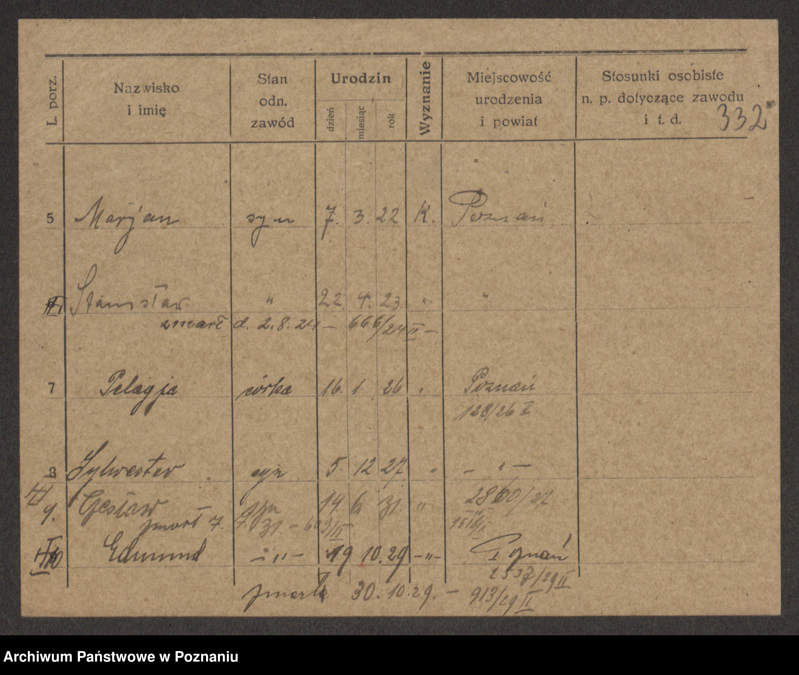 Podgląd karty osobowej dostępny jest po kliknięciu na nazwisko lub ikonkę karty. Można dokonywać powiększenia (ikony na górze) lub przechodzić między kolejnymi skanami (strzałki po bokach).