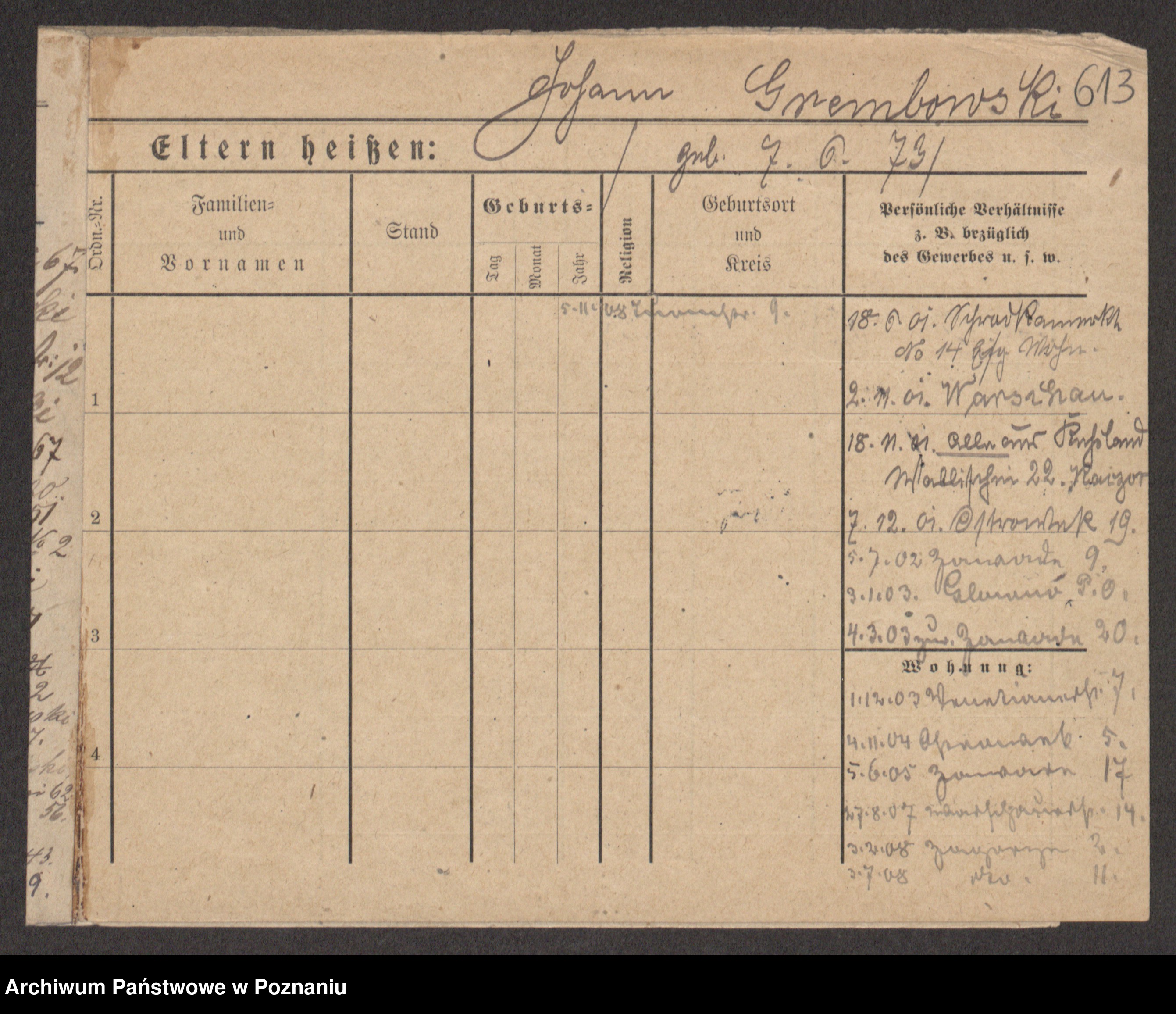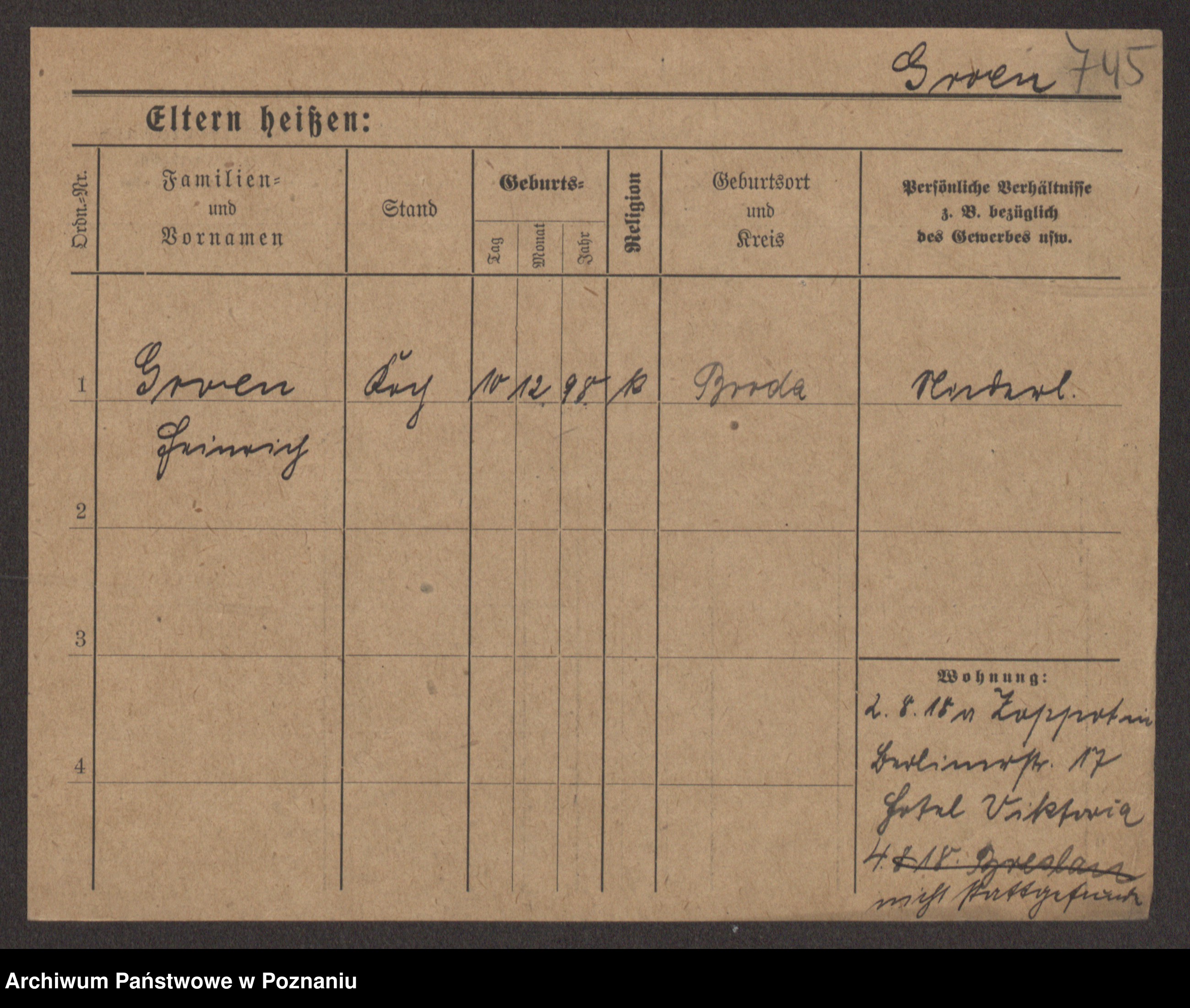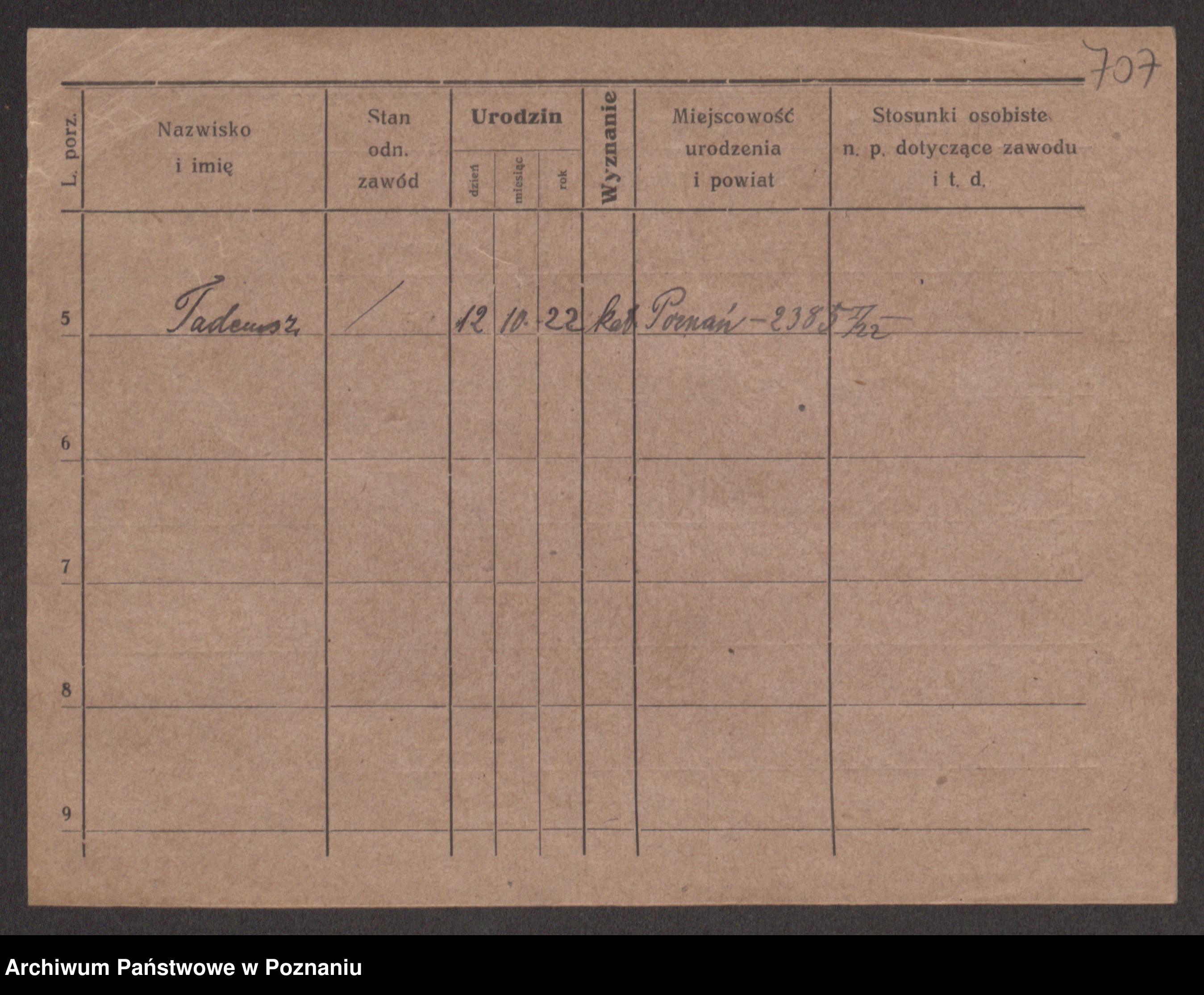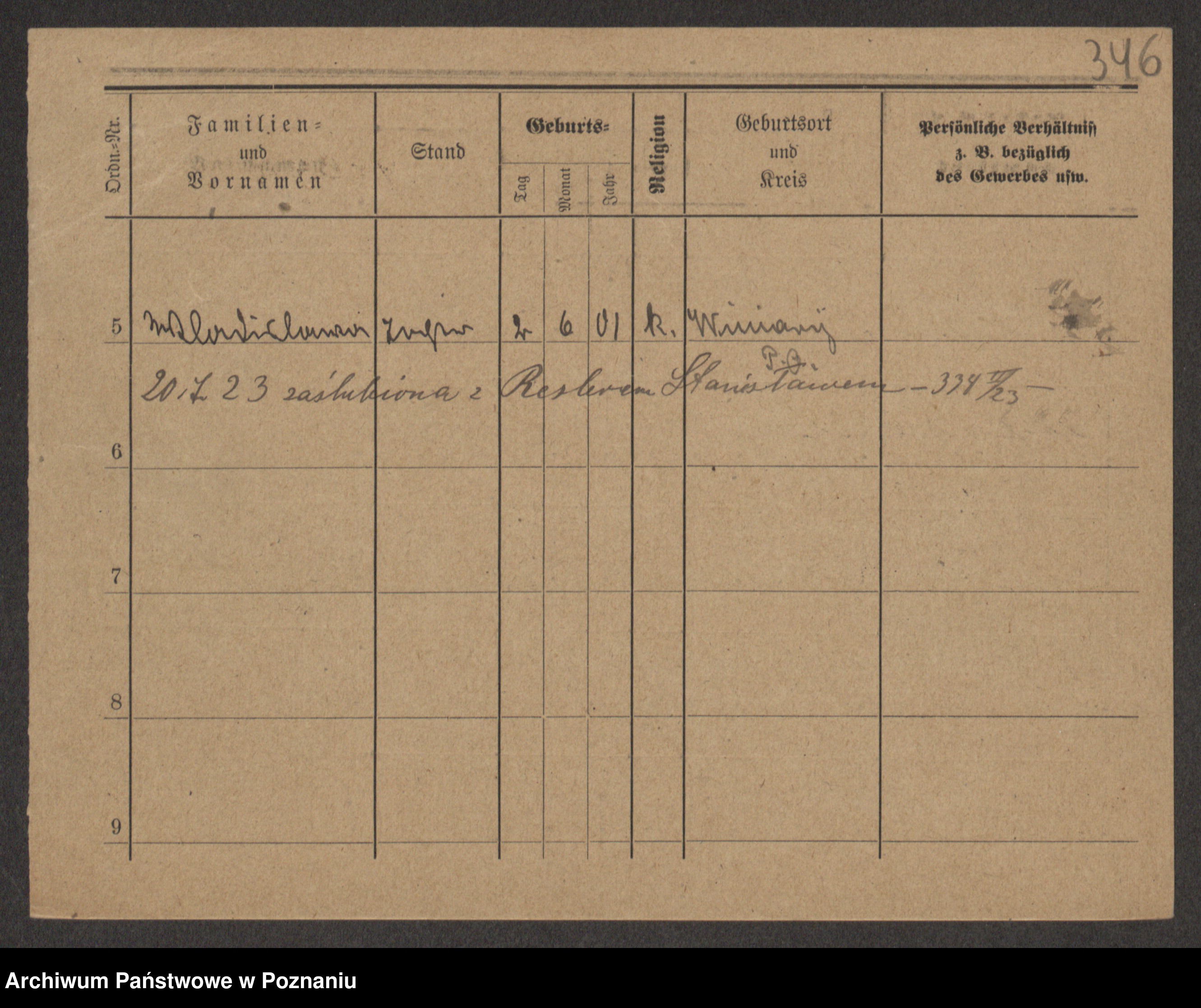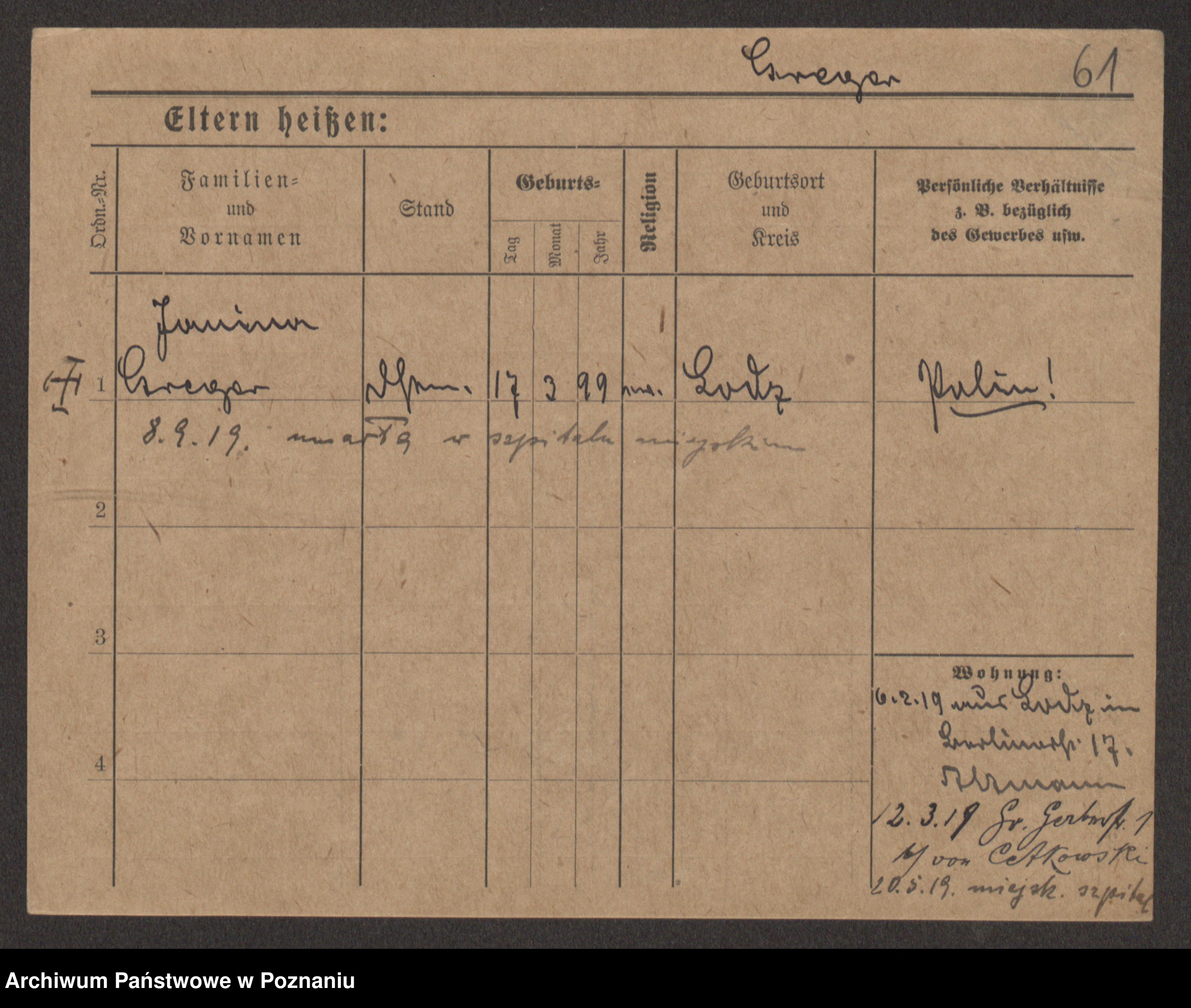 Podgląd karty osobowej dostępny jest po kliknięciu na nazwisko lub ikonkę karty. Można dokonywać powiększenia (ikony na górze) lub przechodzić między kolejnymi skanami (strzałki po bokach).