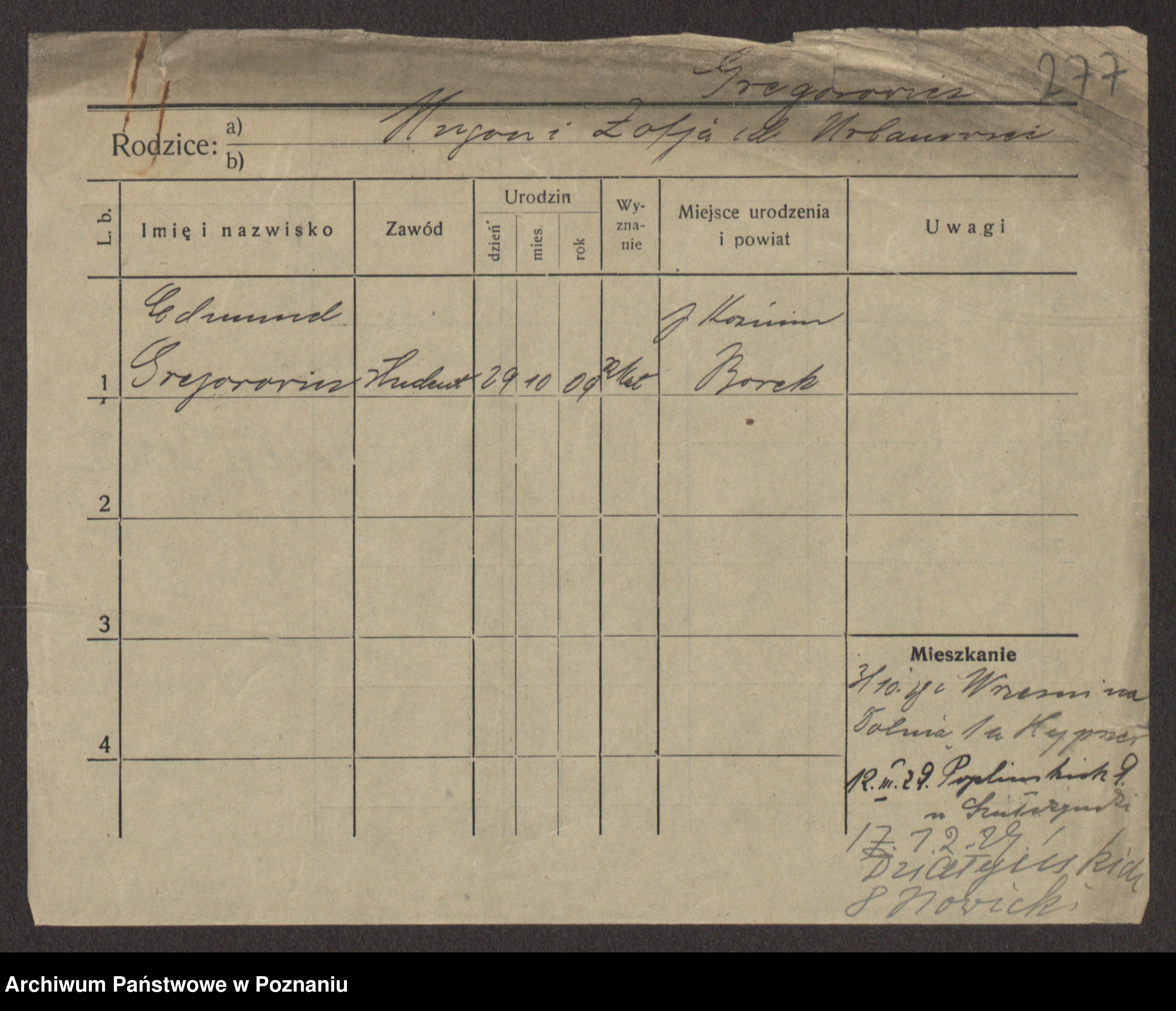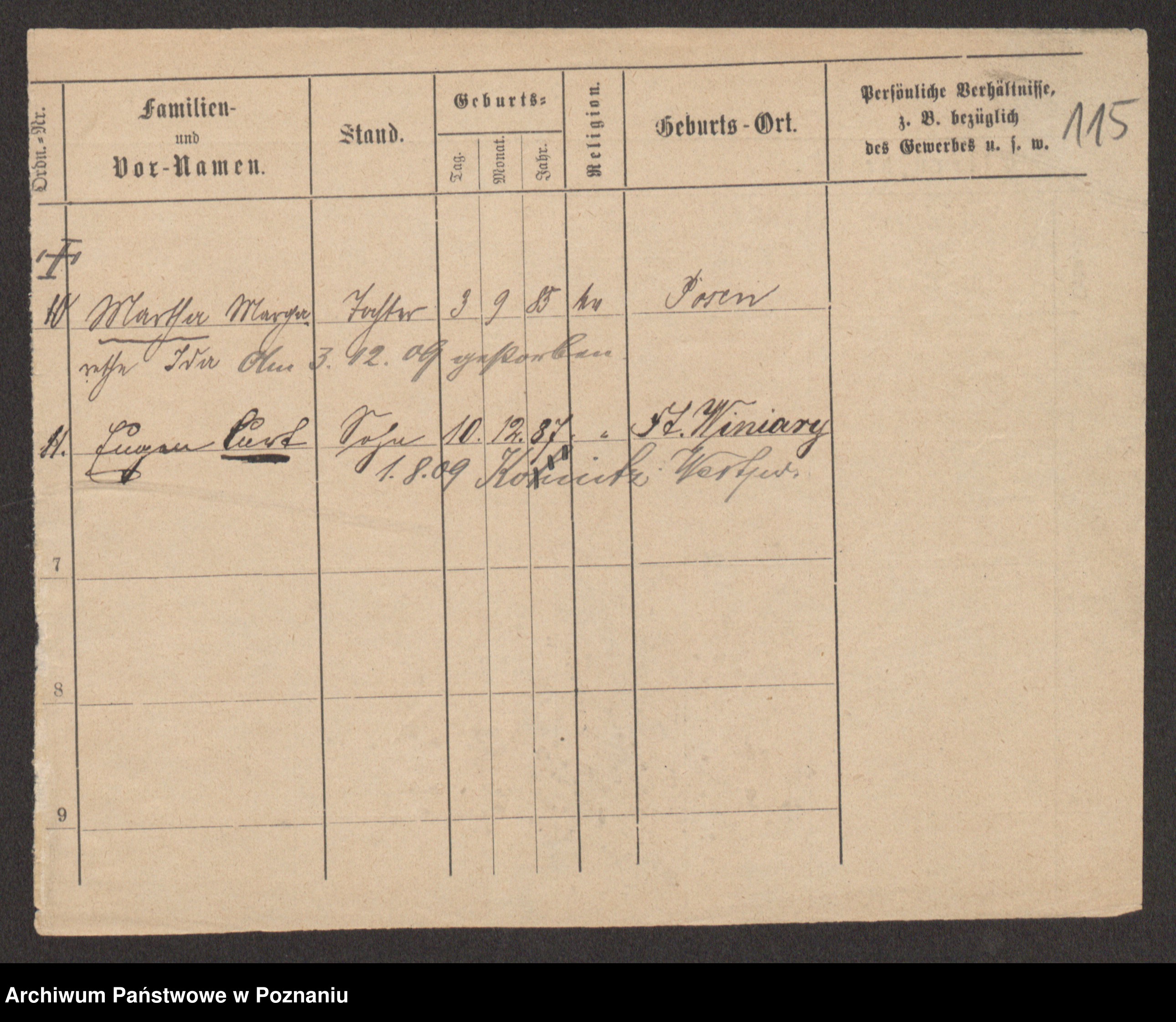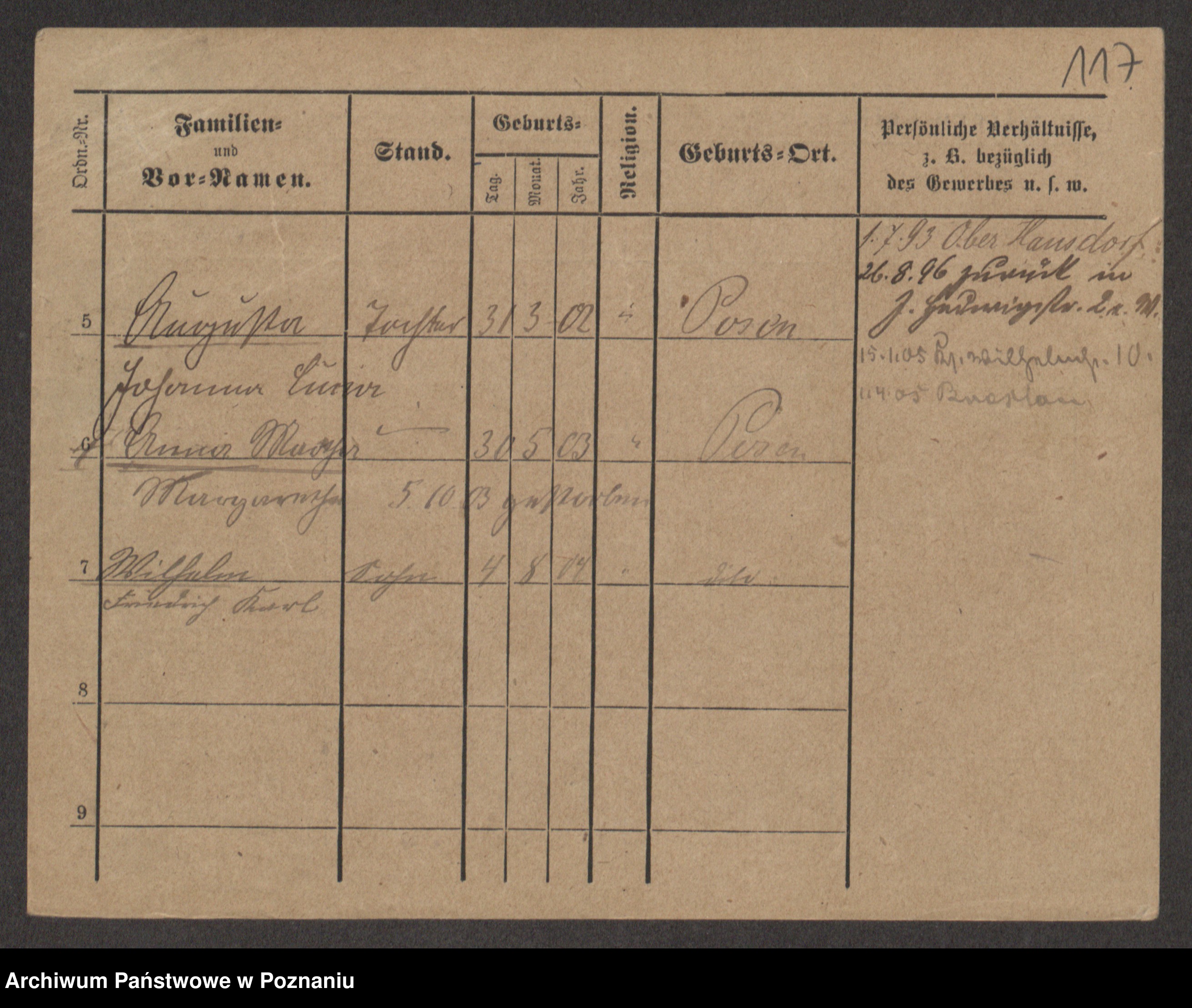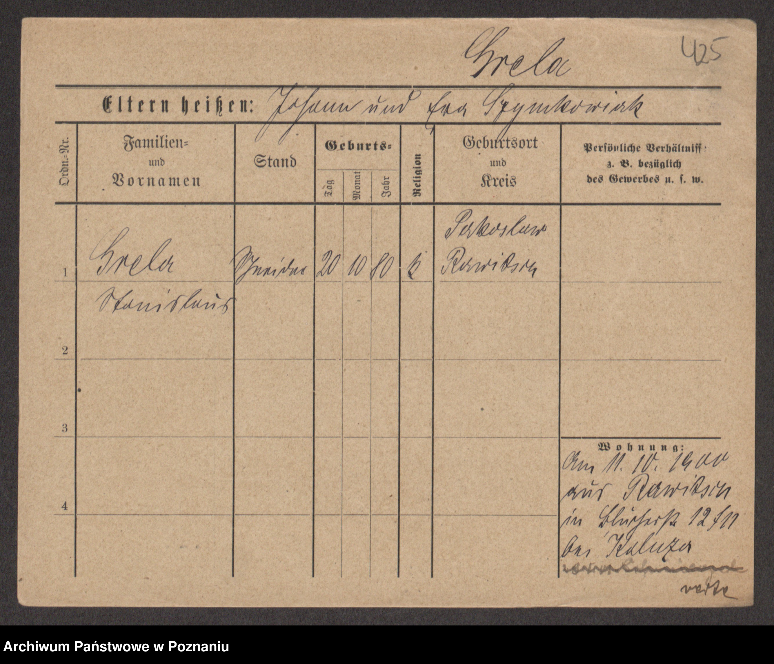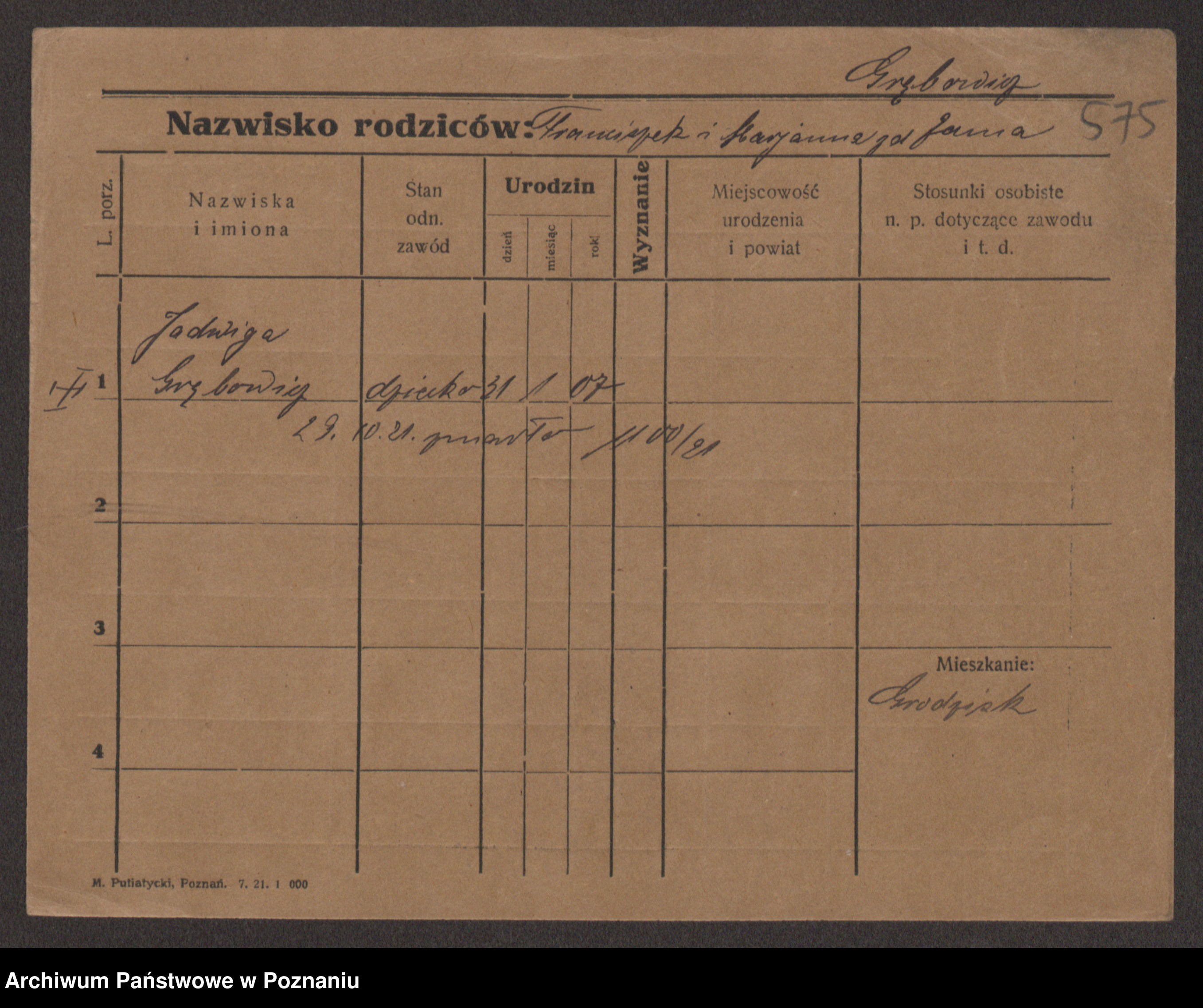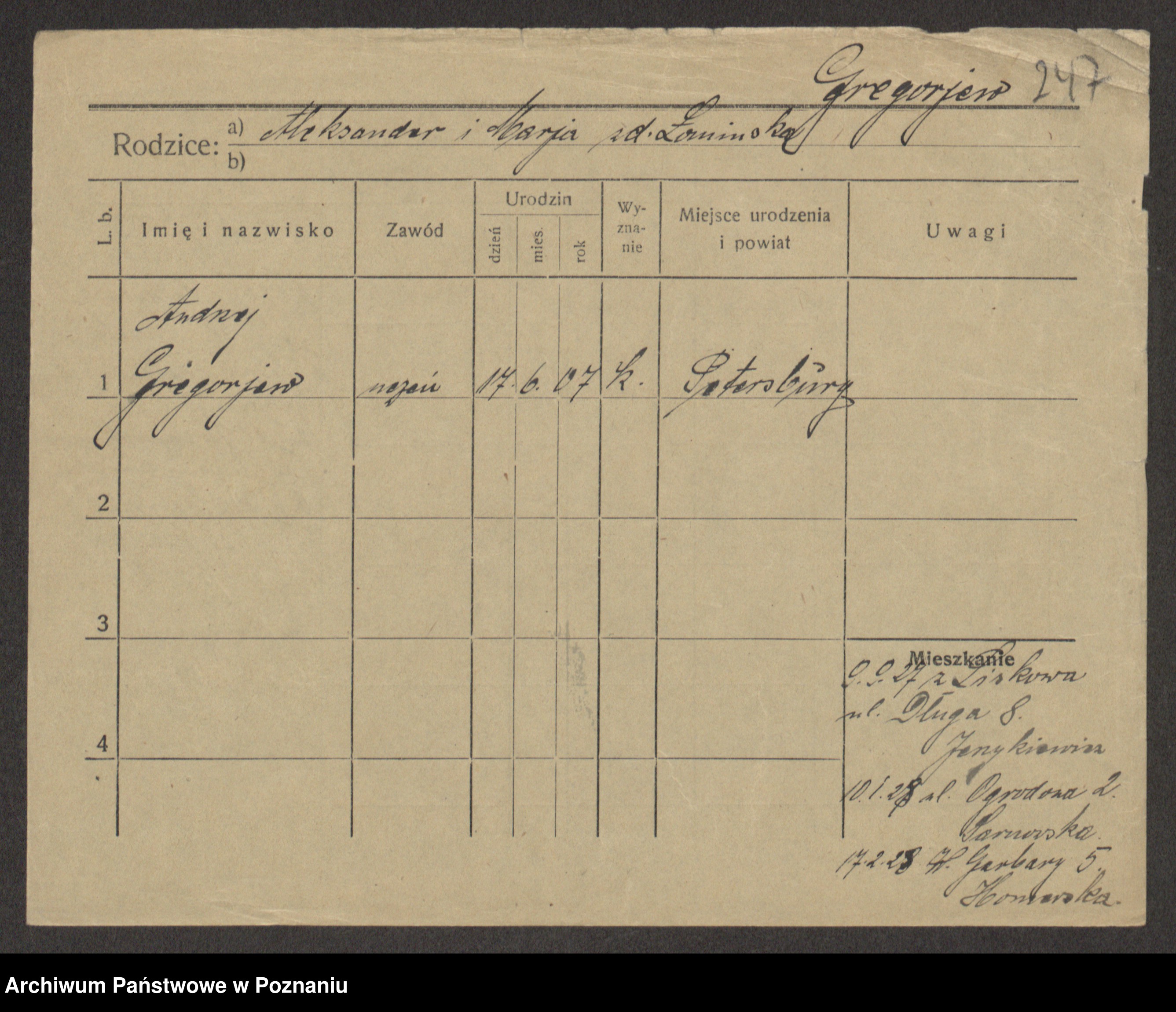 Podgląd karty osobowej dostępny jest po kliknięciu na nazwisko lub ikonkę karty. Można dokonywać powiększenia (ikony na górze) lub przechodzić między kolejnymi skanami (strzałki po bokach).