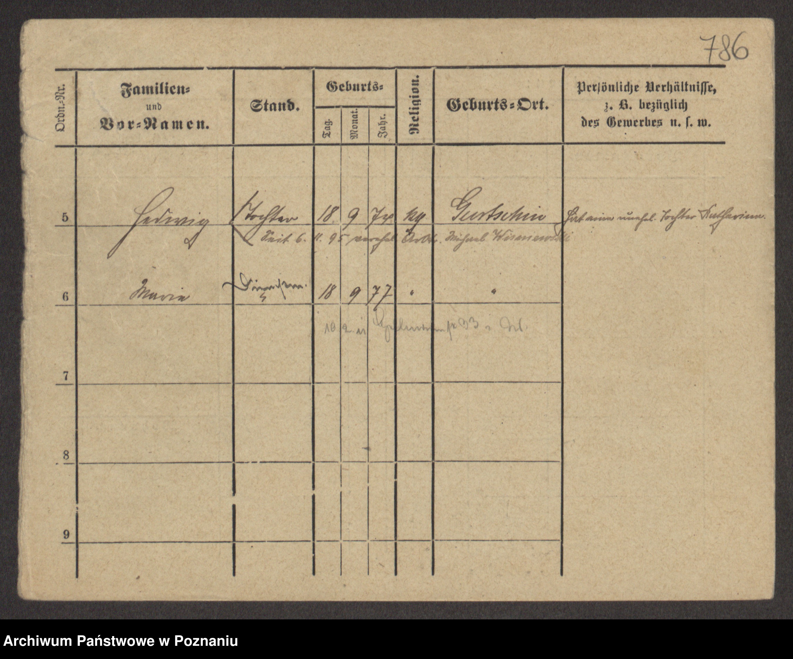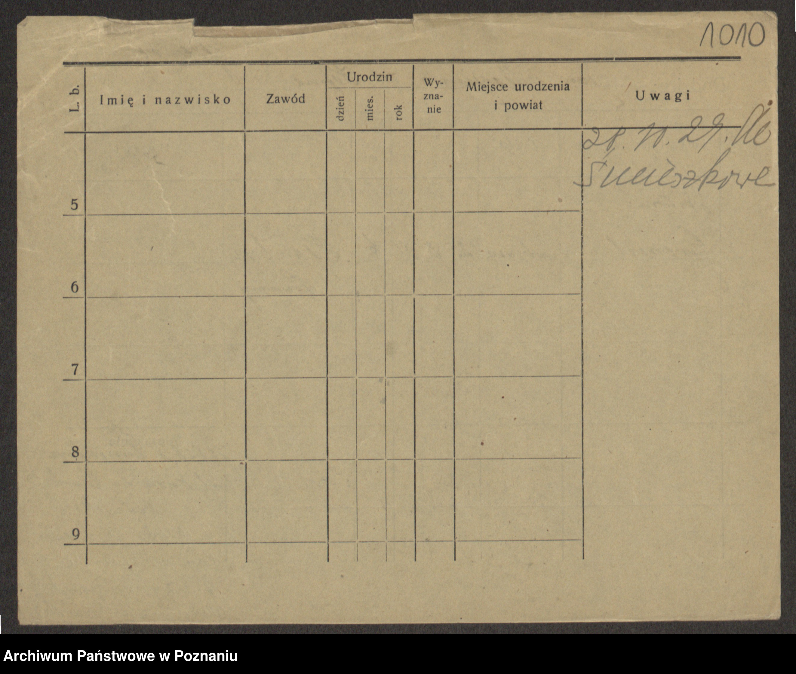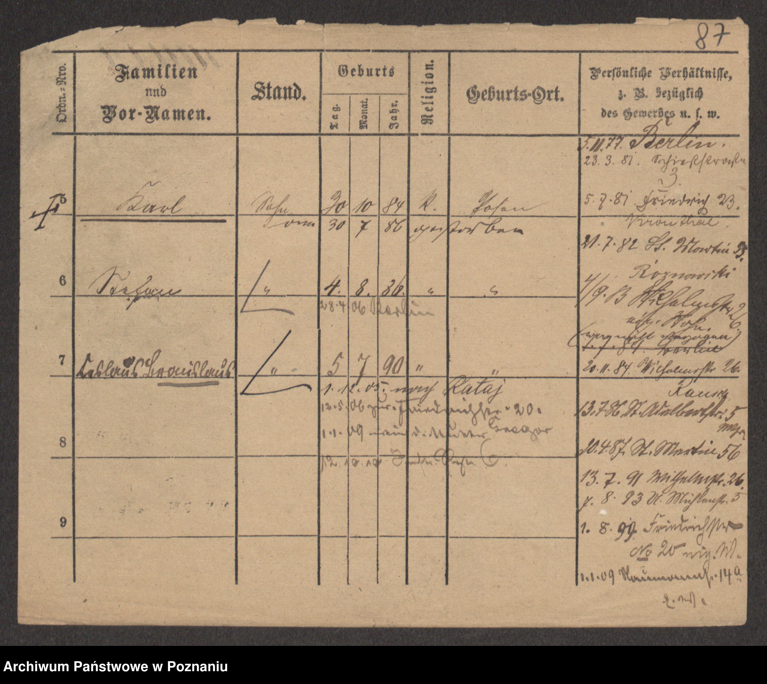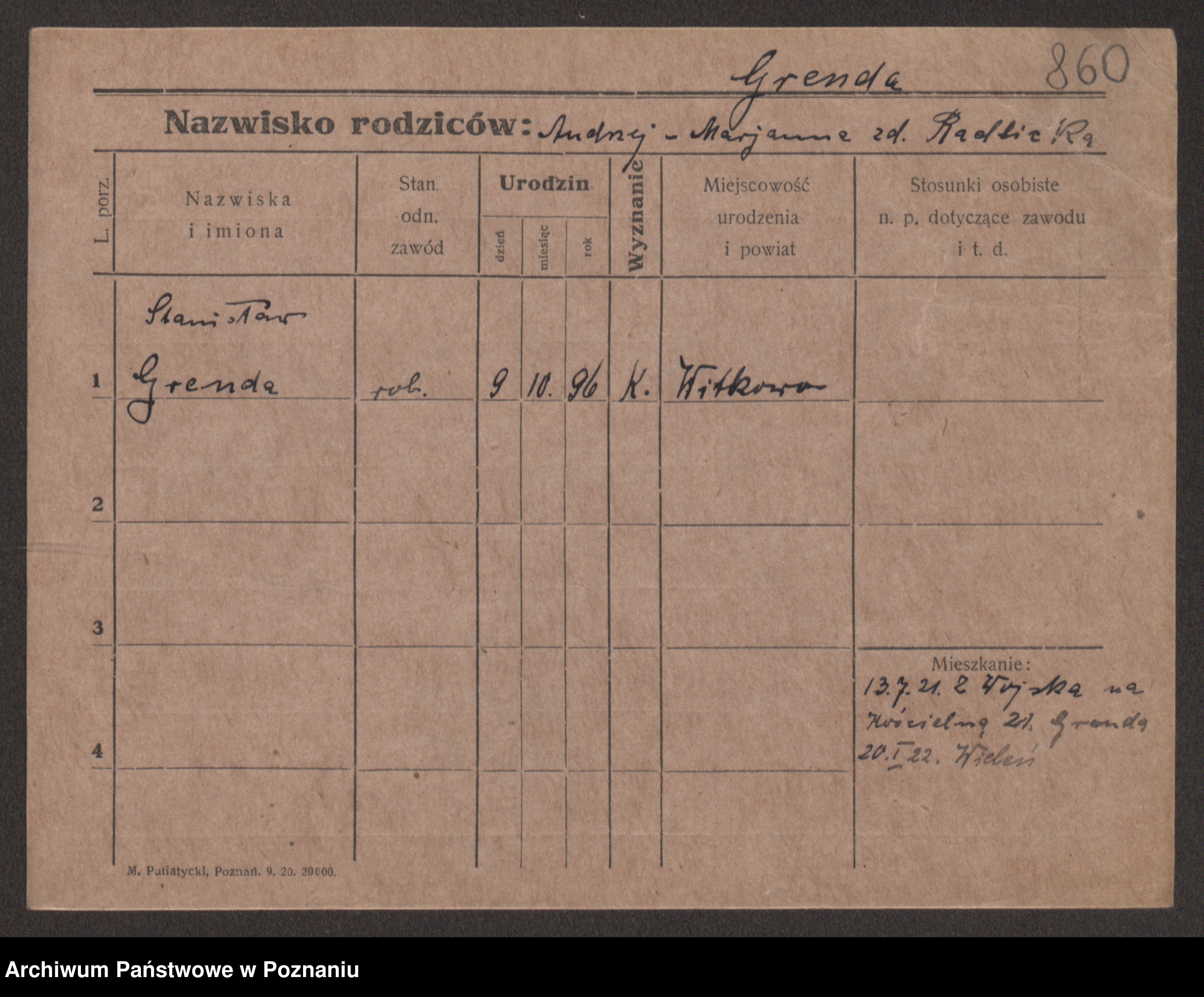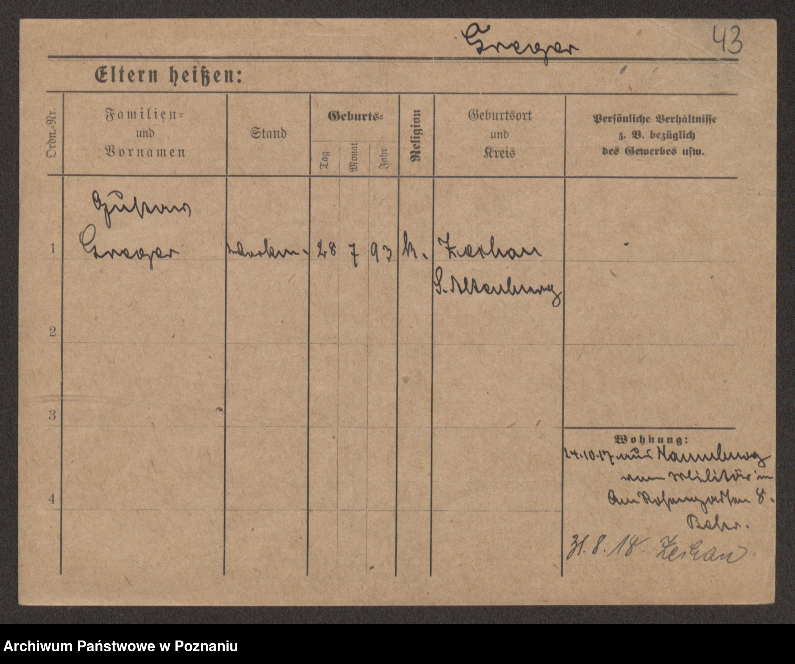 Podgląd karty osobowej dostępny jest po kliknięciu na nazwisko lub ikonkę karty. Można dokonywać powiększenia (ikony na górze) lub przechodzić między kolejnymi skanami (strzałki po bokach).