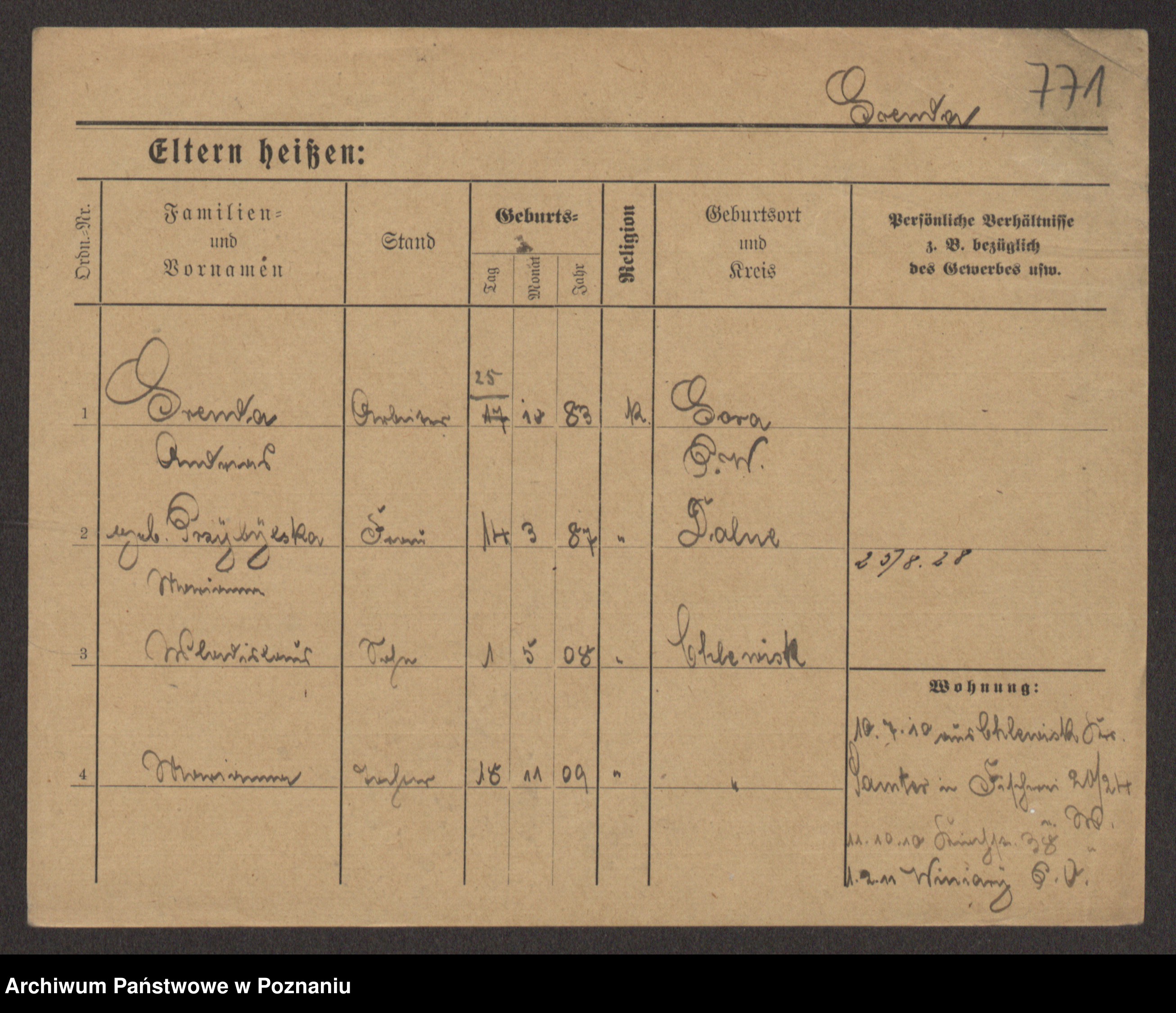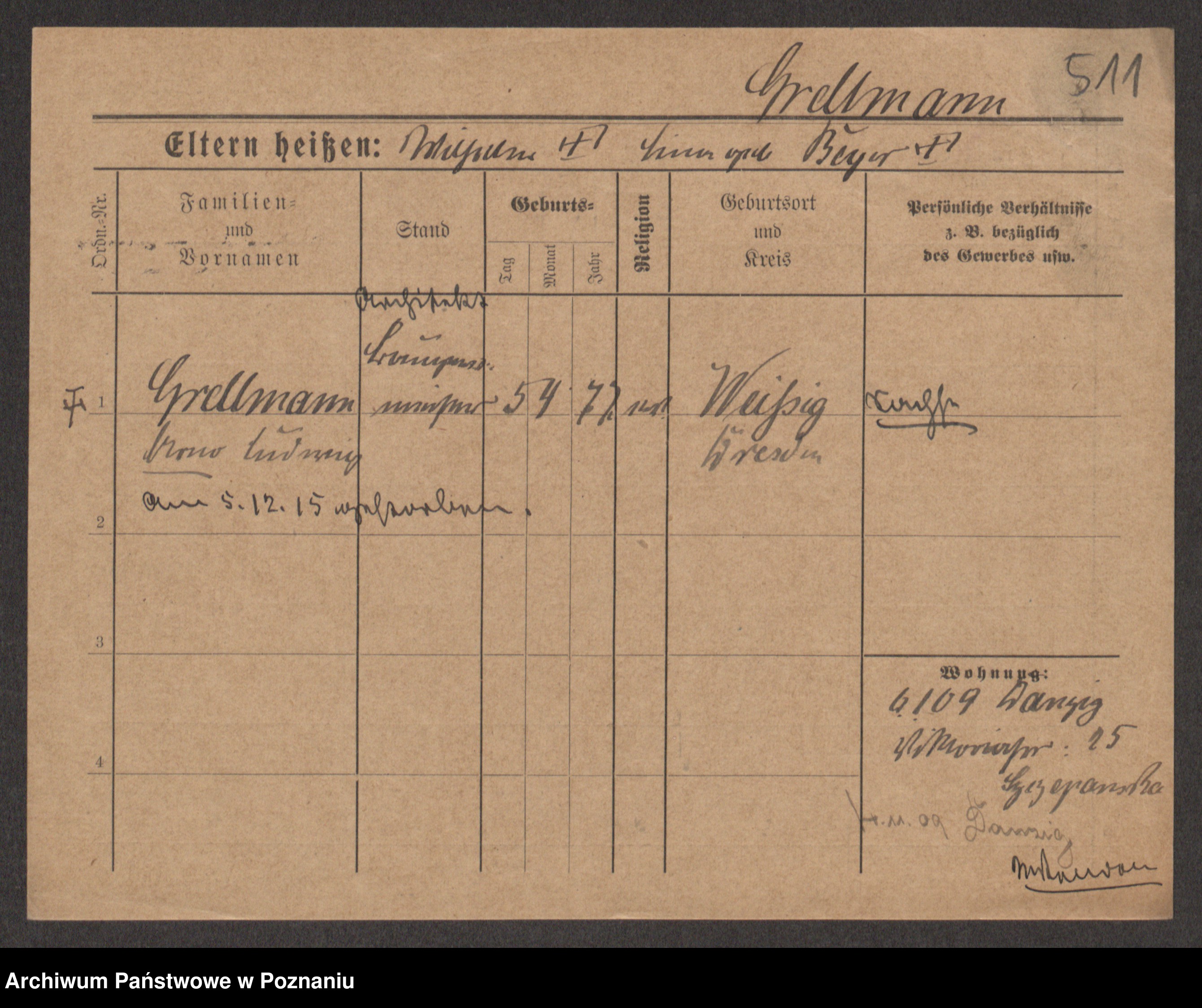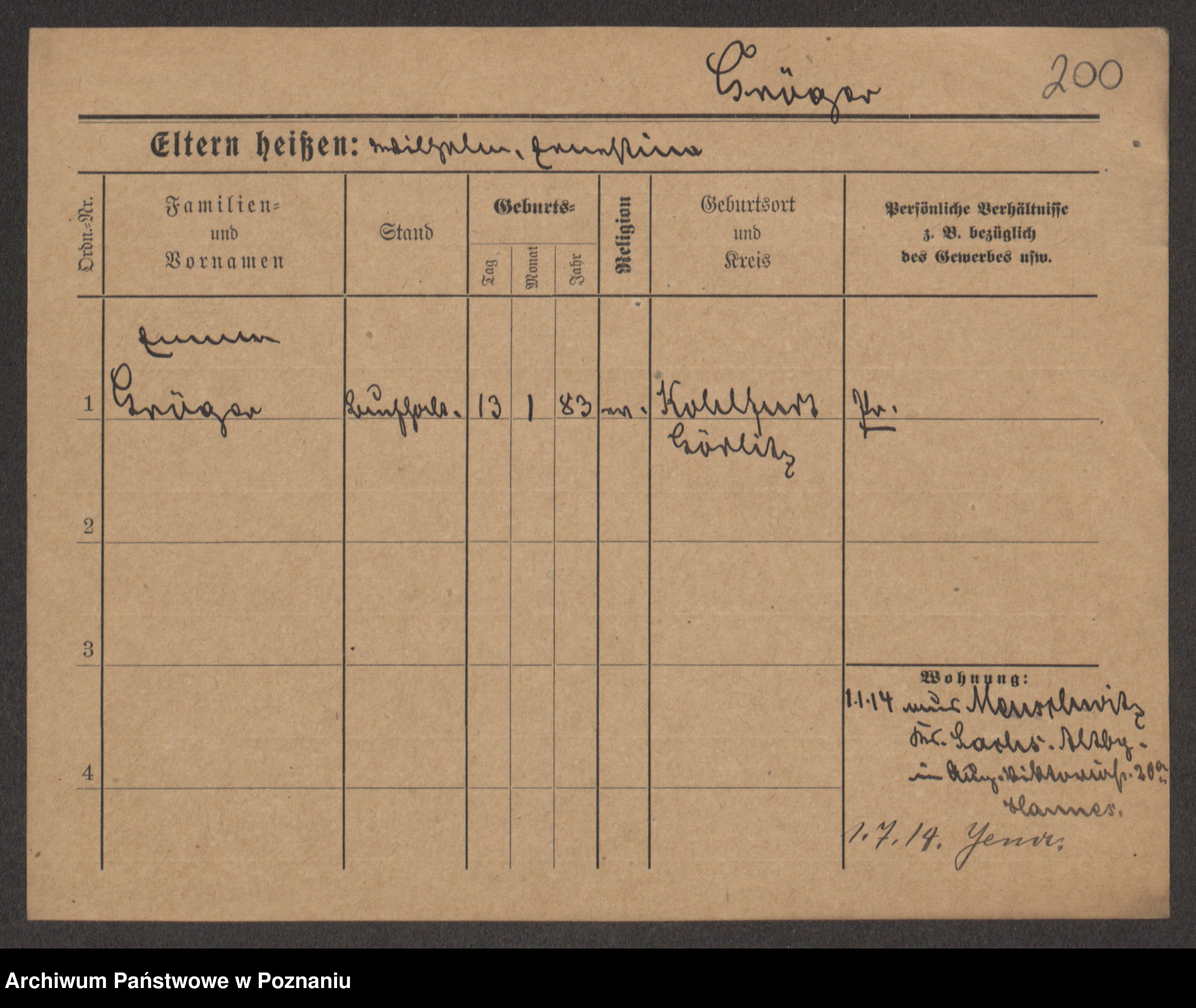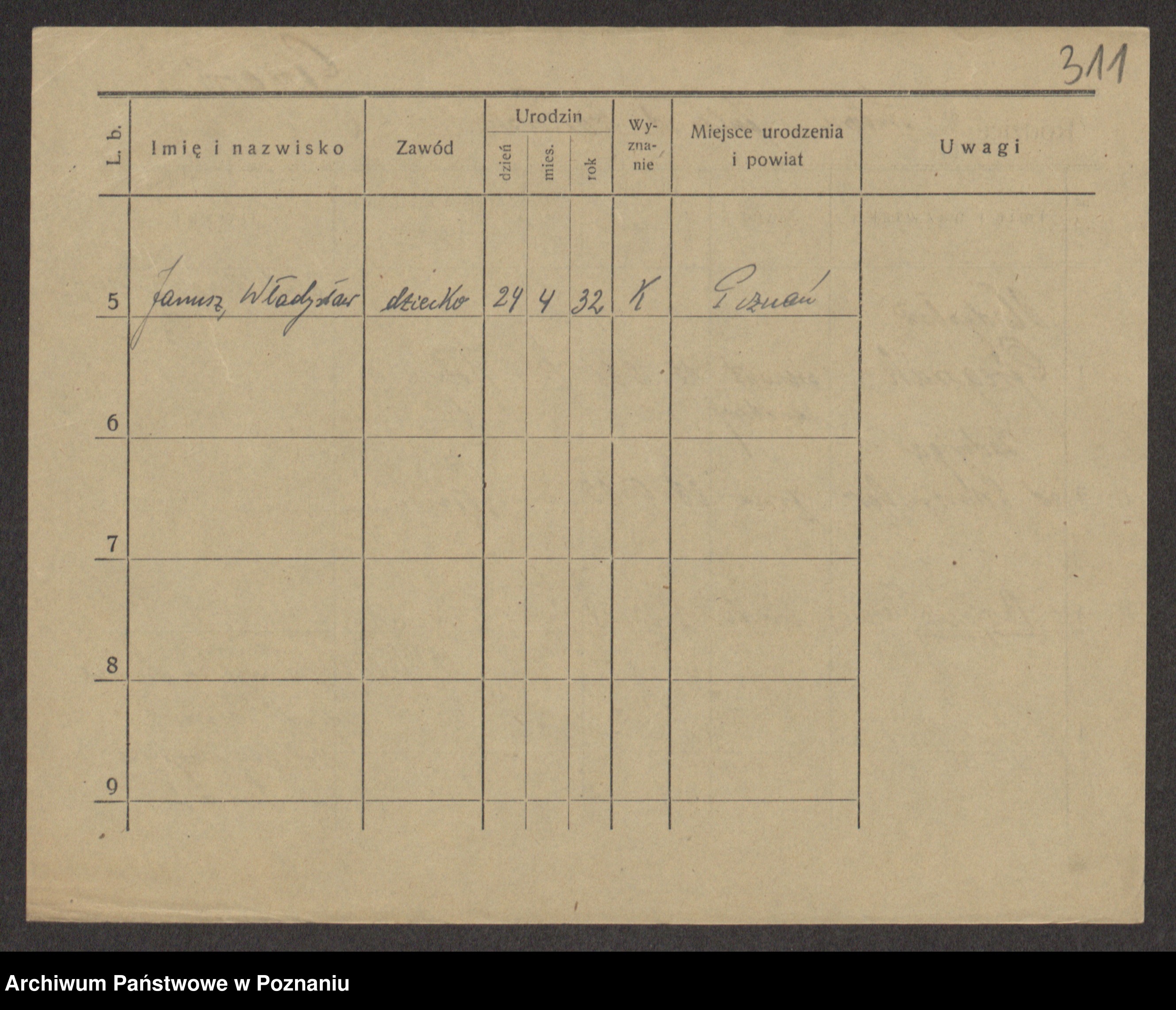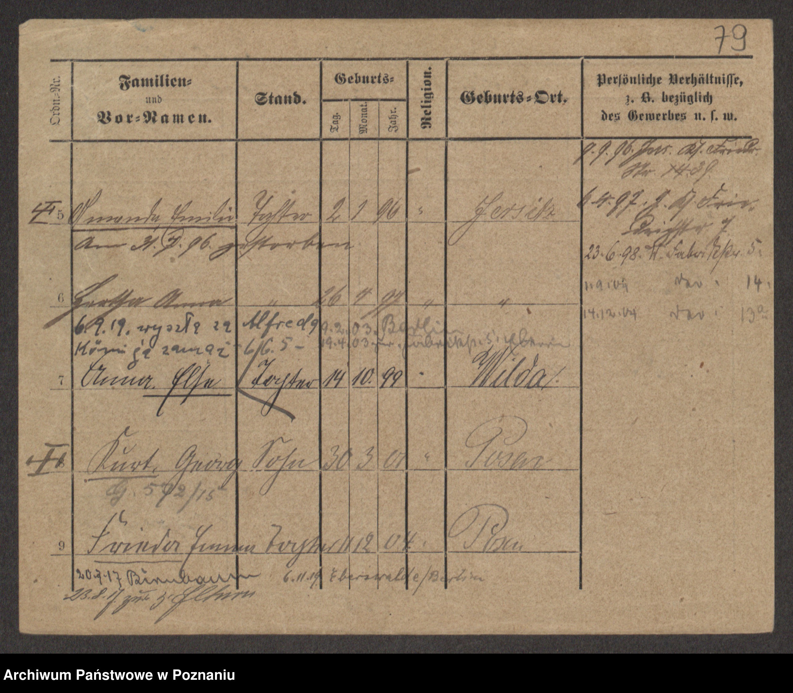 Podgląd karty osobowej dostępny jest po kliknięciu na nazwisko lub ikonkę karty. Można dokonywać powiększenia (ikony na górze) lub przechodzić między kolejnymi skanami (strzałki po bokach).