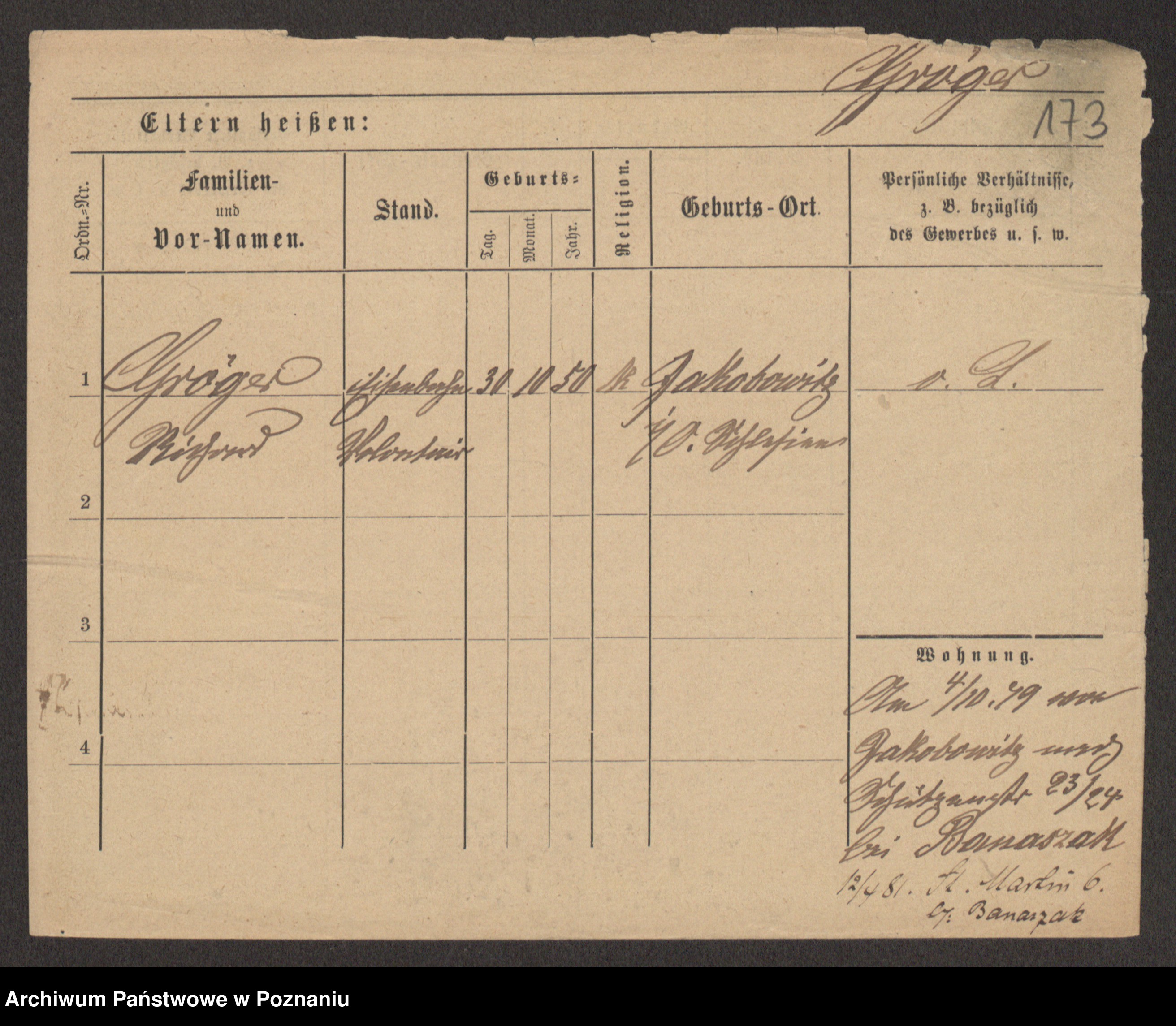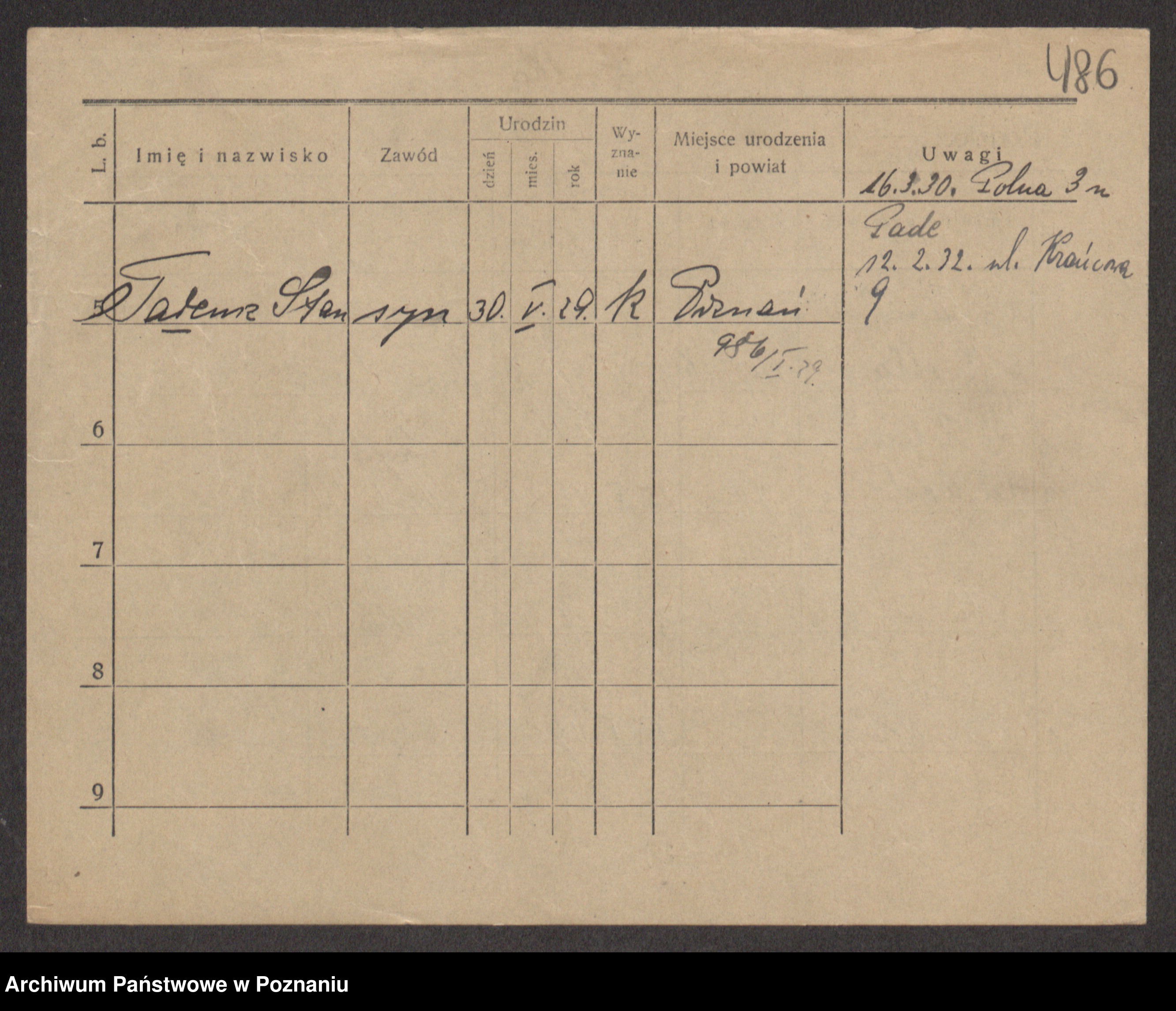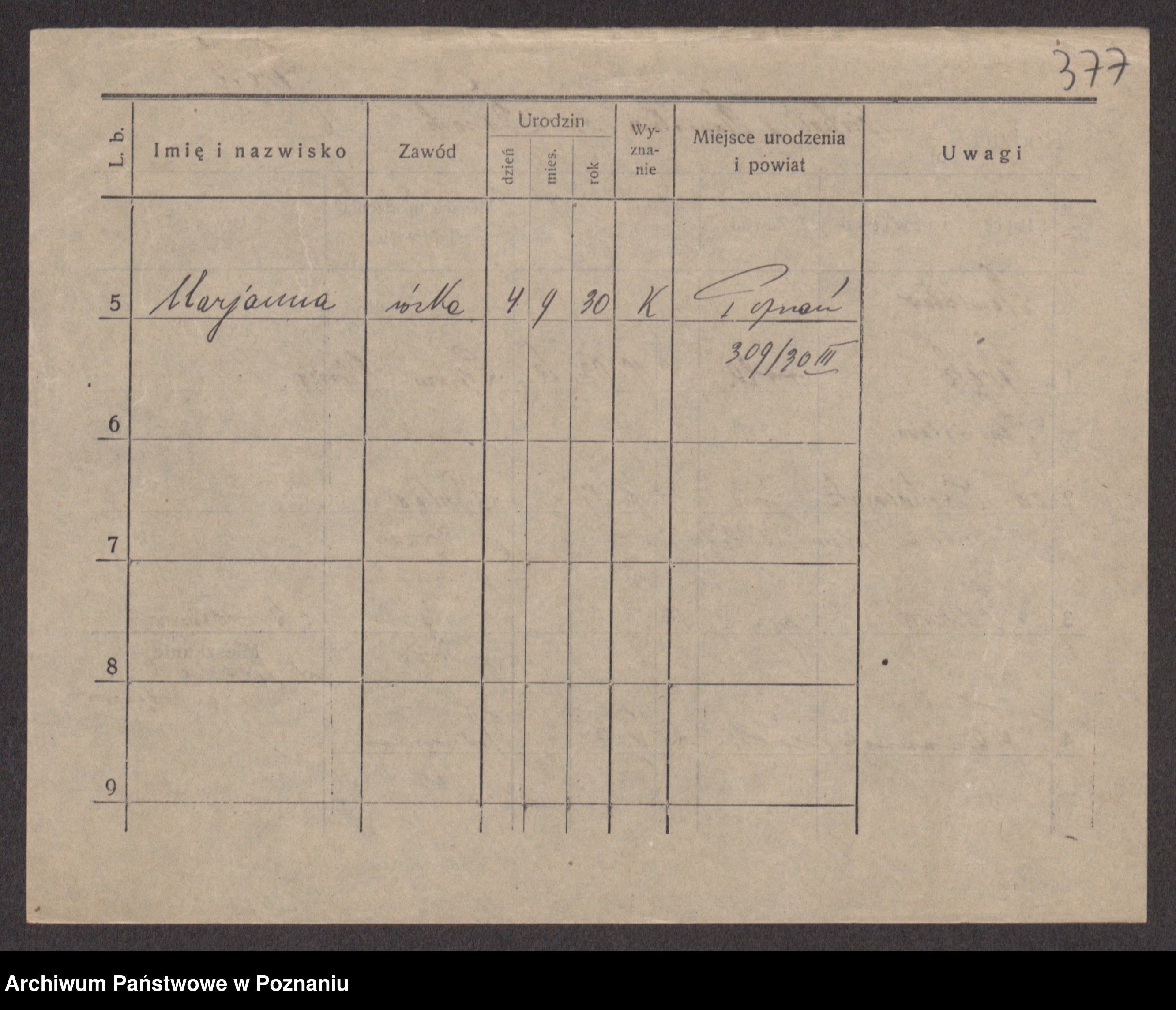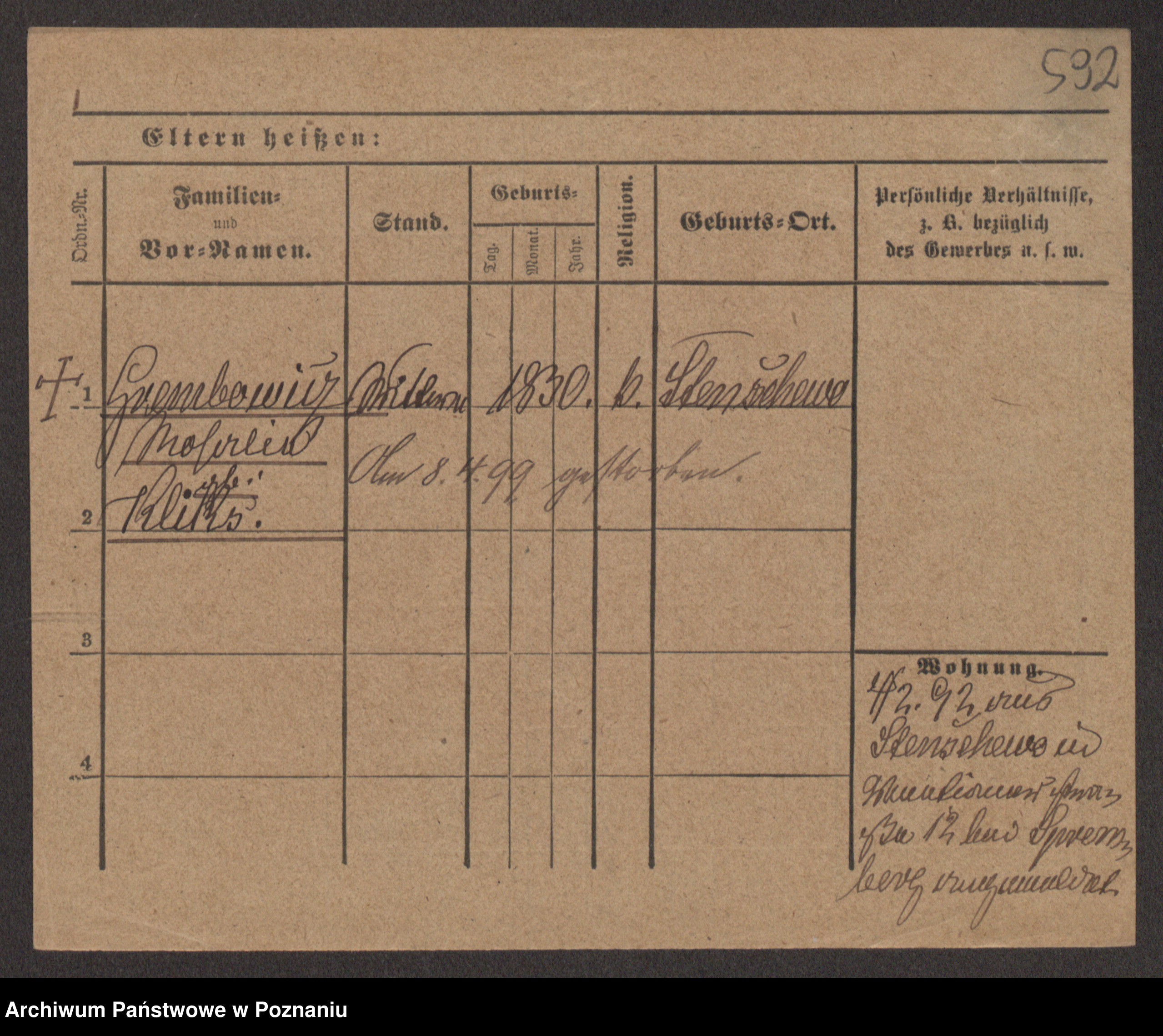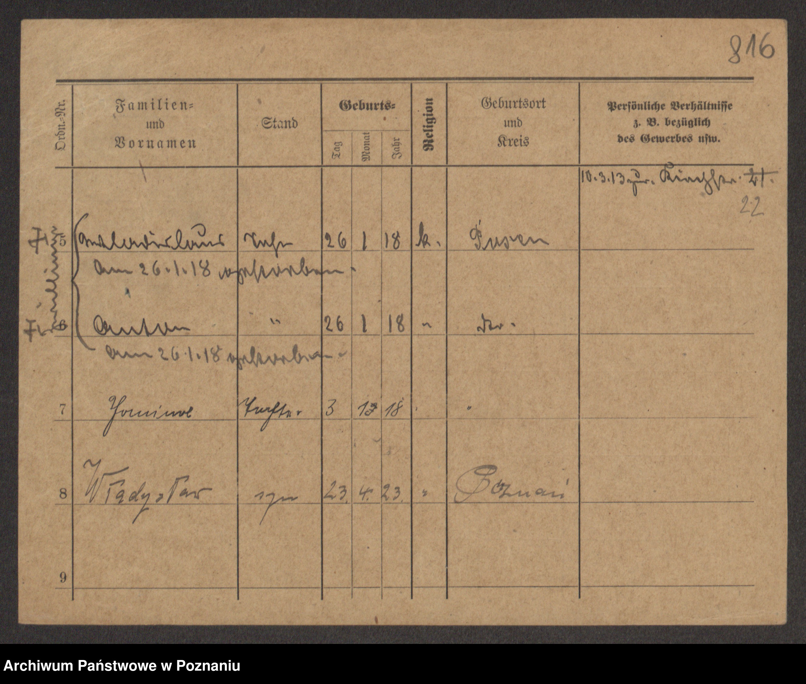 Podgląd karty osobowej dostępny jest po kliknięciu na nazwisko lub ikonkę karty. Można dokonywać powiększenia (ikony na górze) lub przechodzić między kolejnymi skanami (strzałki po bokach).