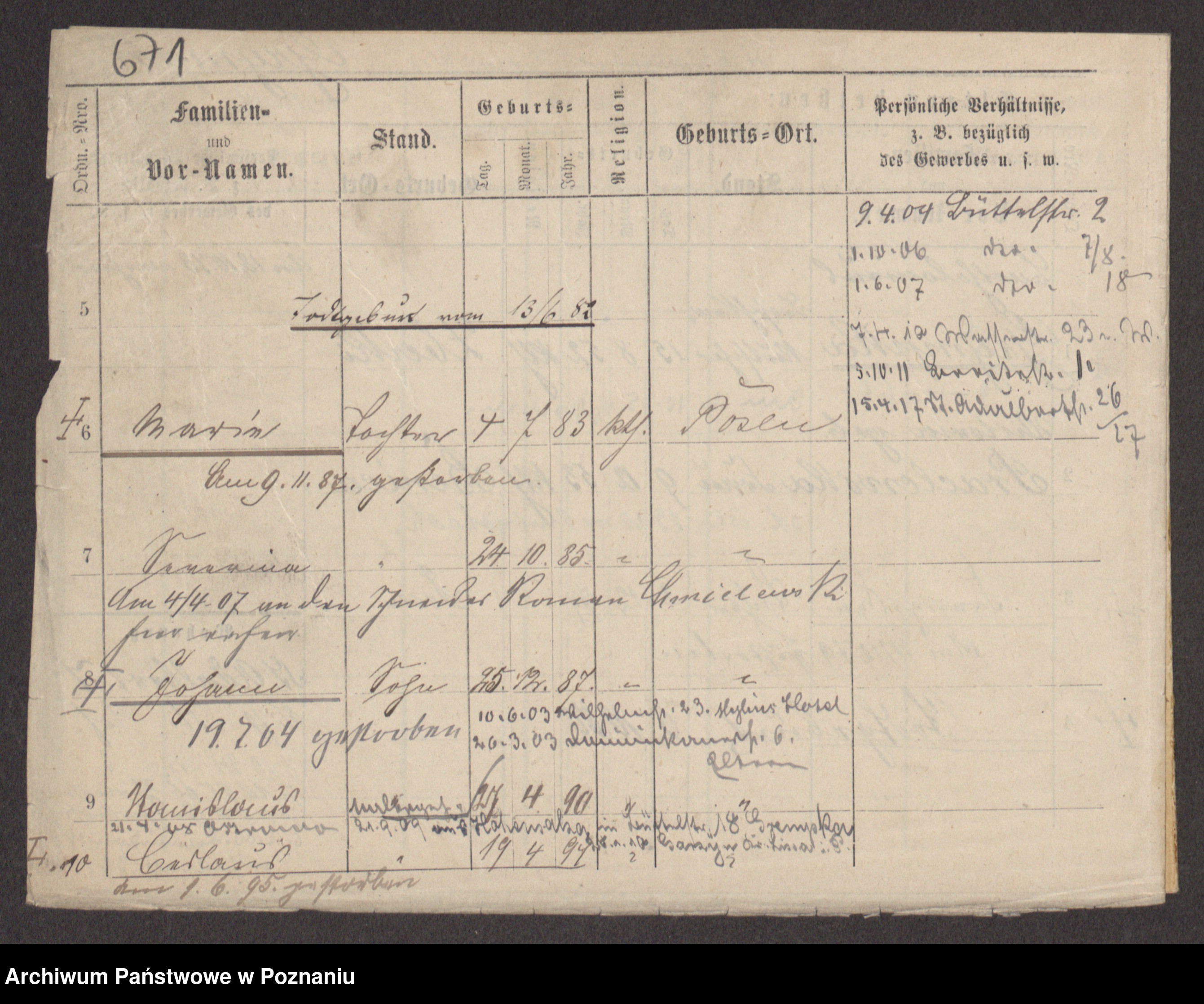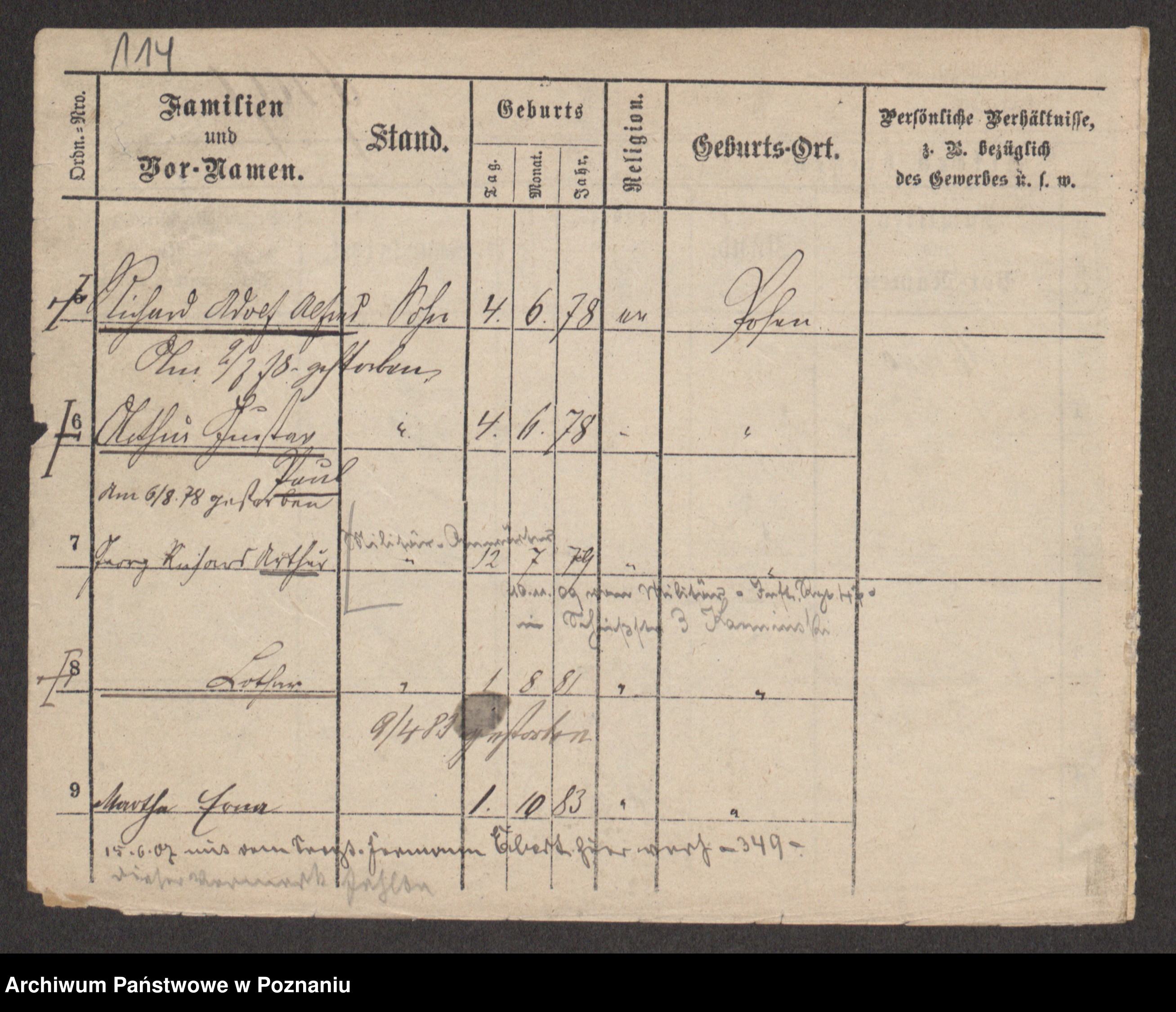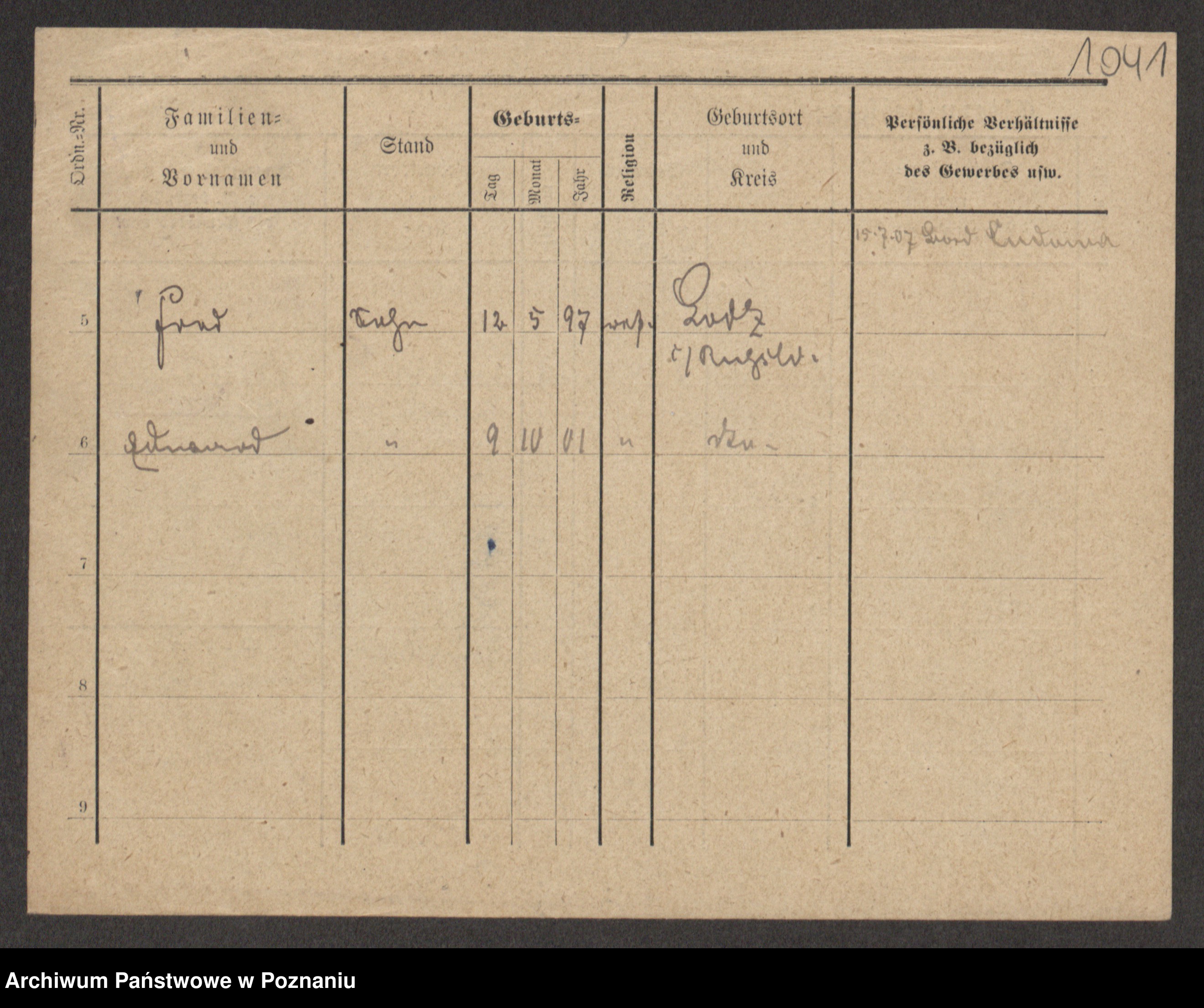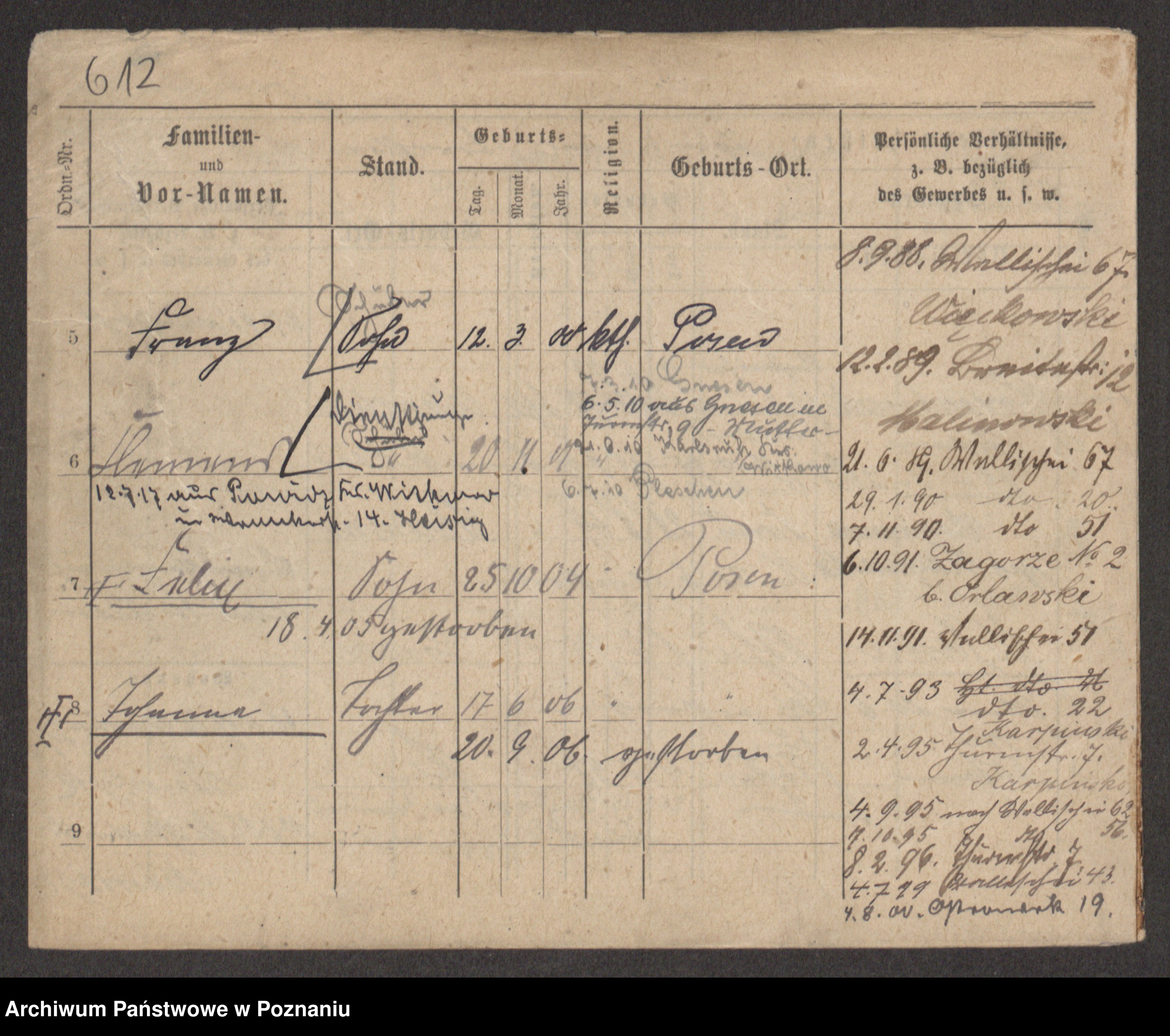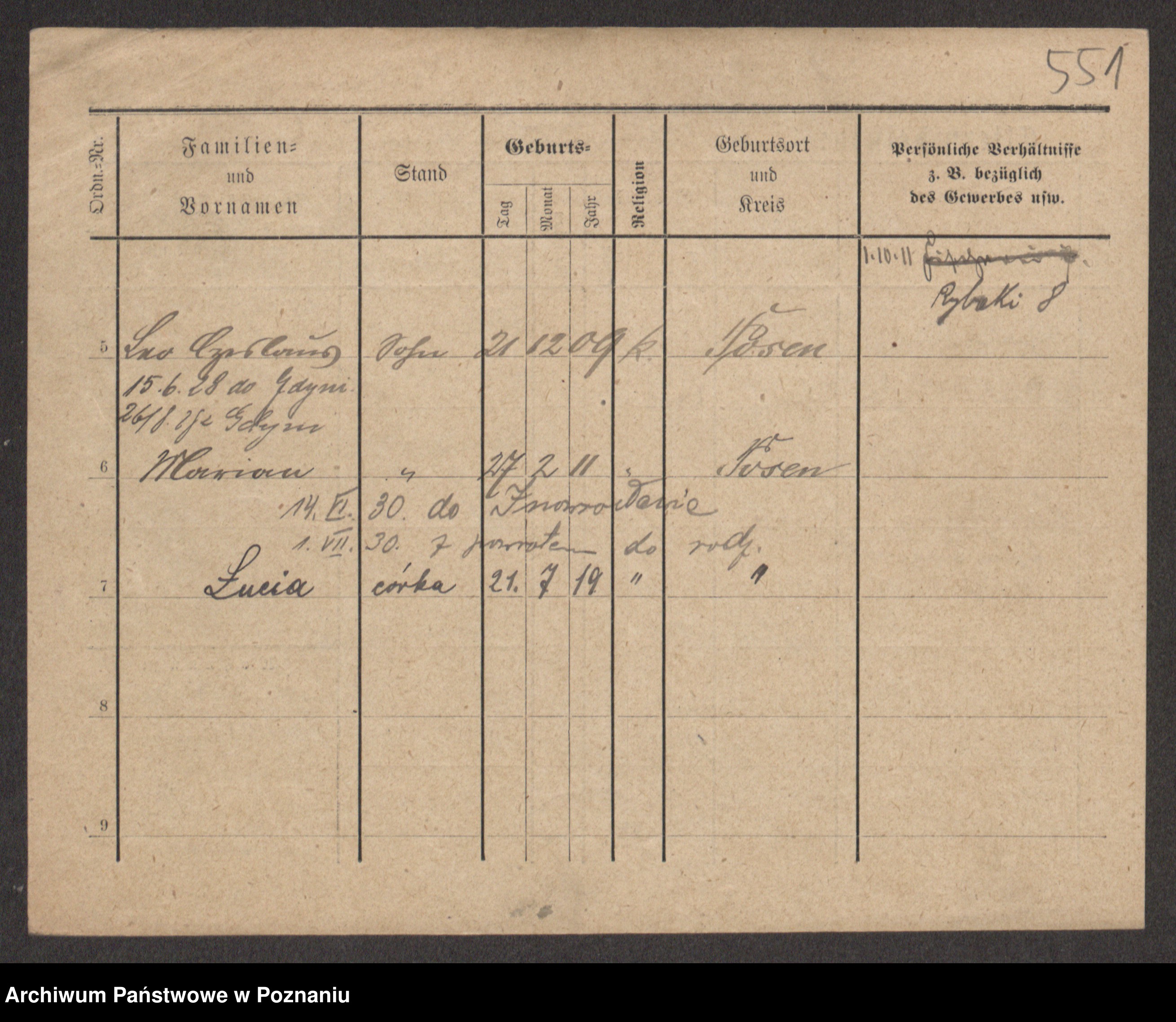 Podgląd karty osobowej dostępny jest po kliknięciu na nazwisko lub ikonkę karty. Można dokonywać powiększenia (ikony na górze) lub przechodzić między kolejnymi skanami (strzałki po bokach).