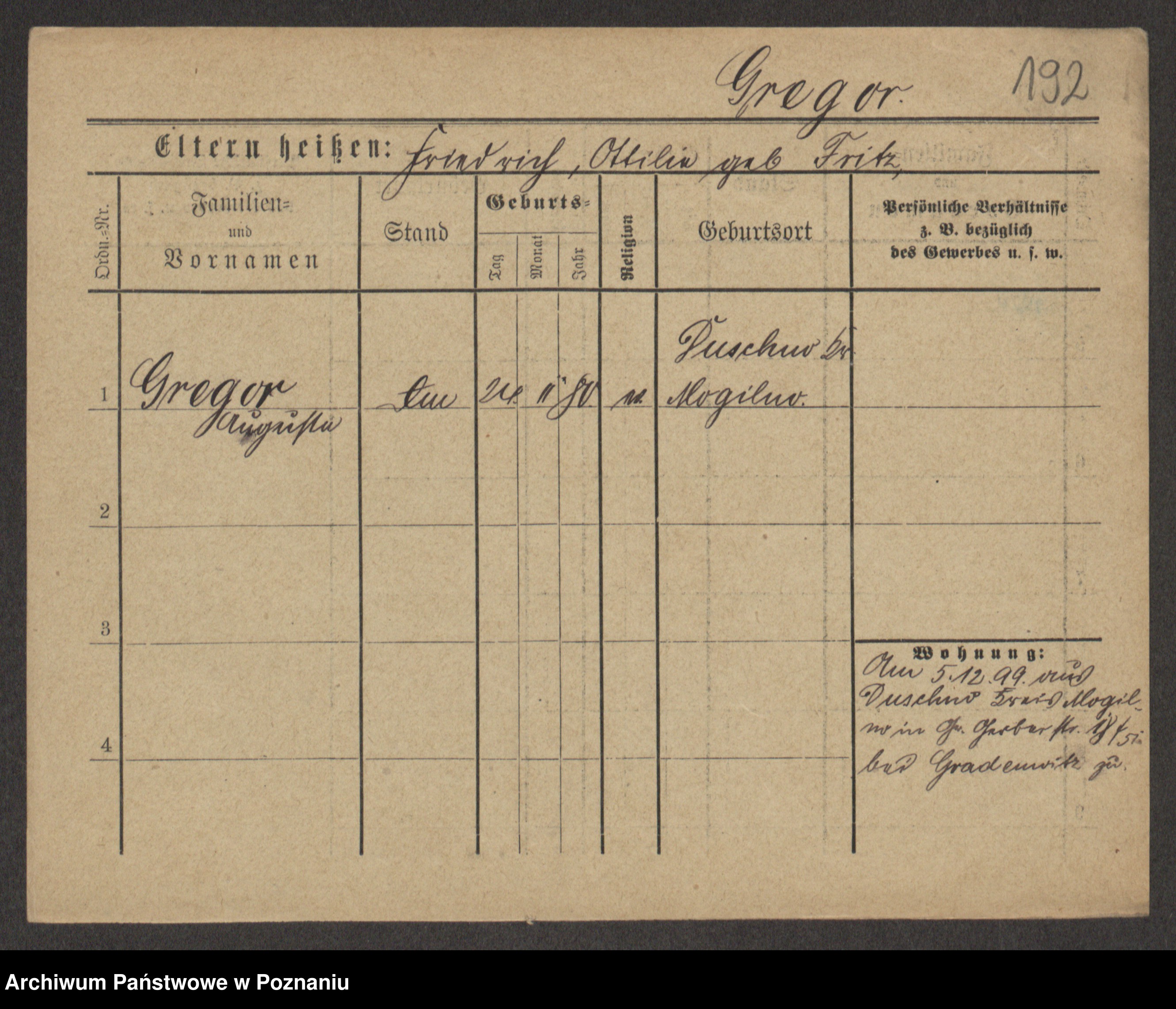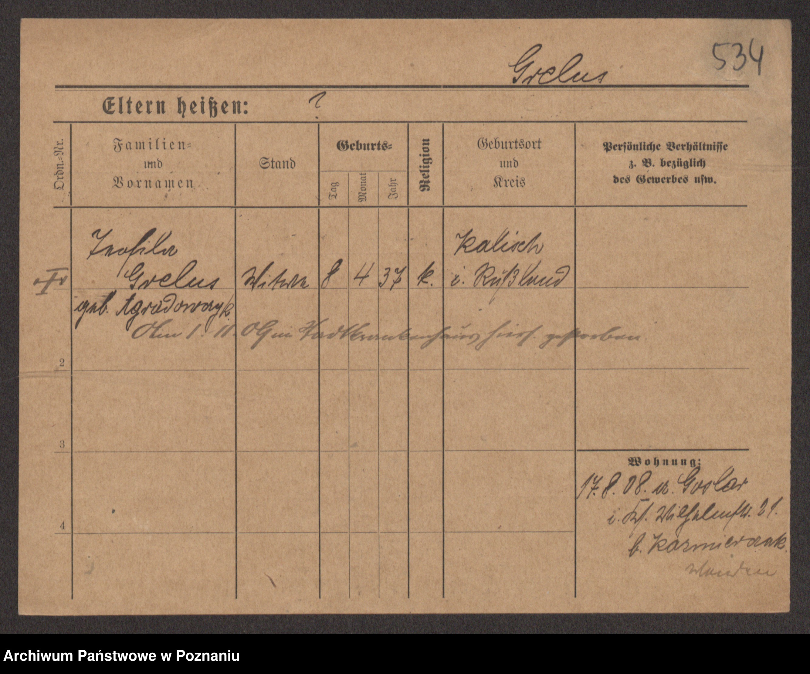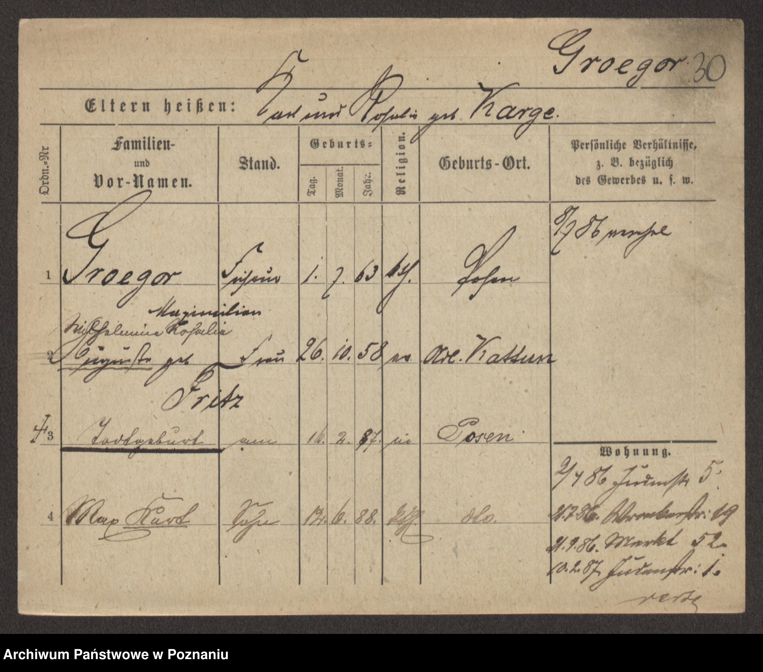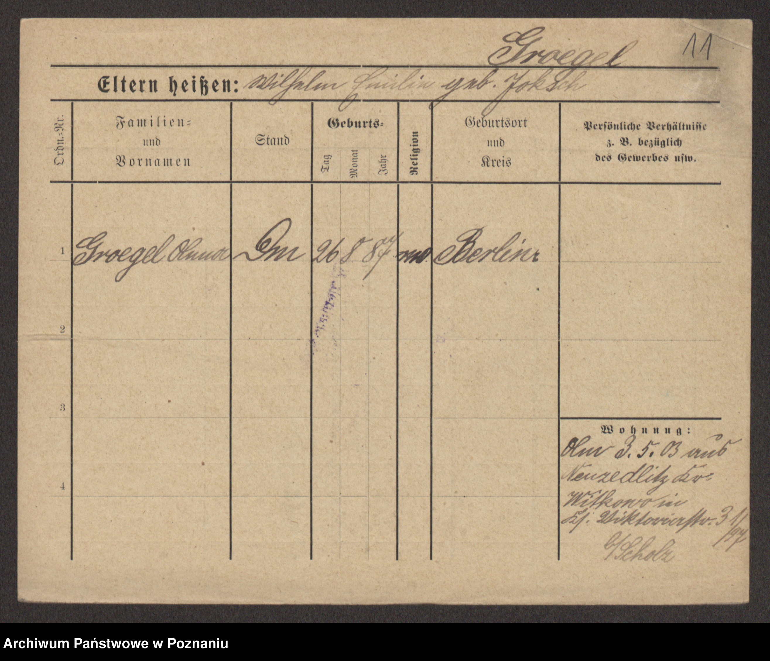 Groegor zd. Fritz, Wilhelmine Rosalie Auguste