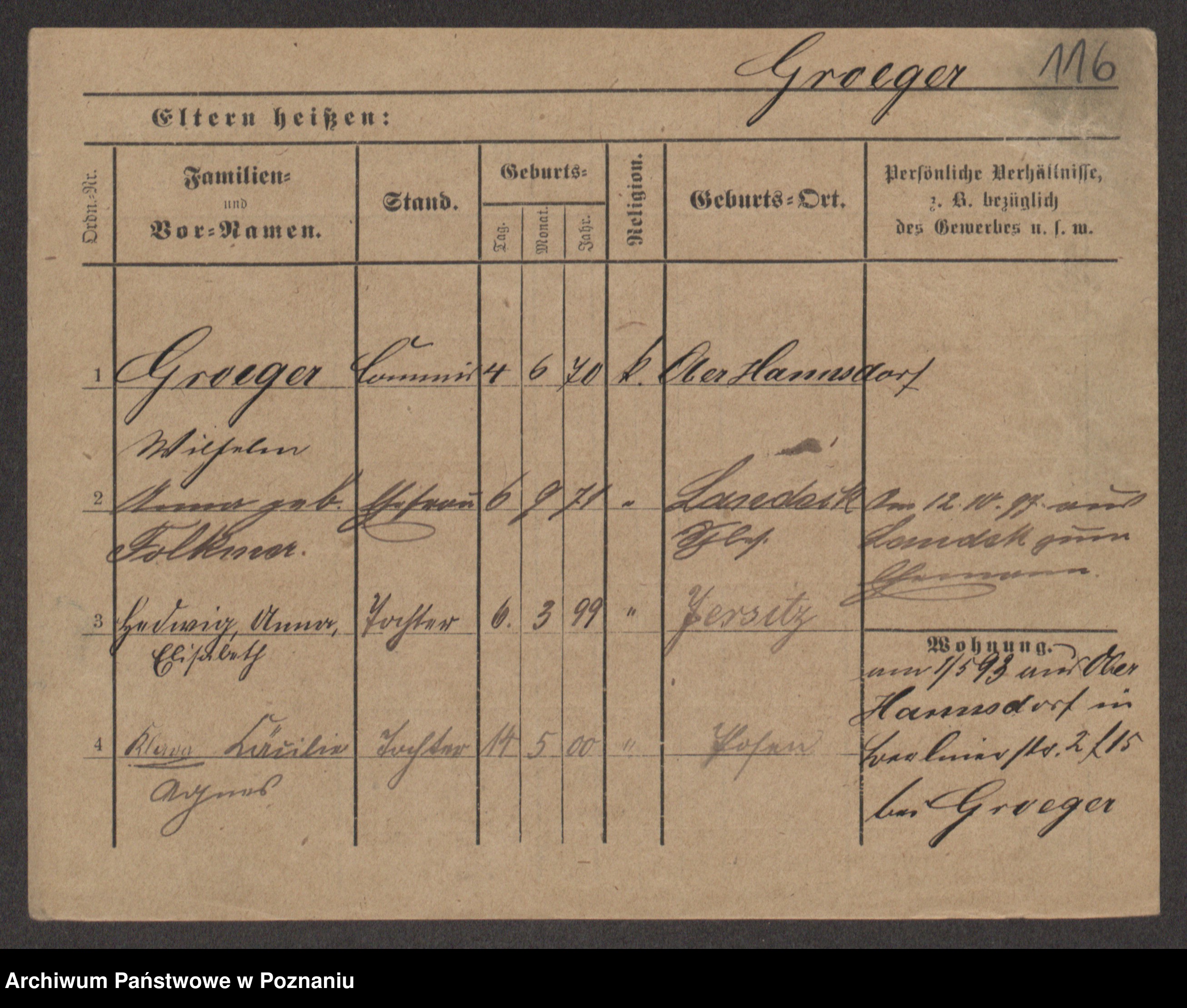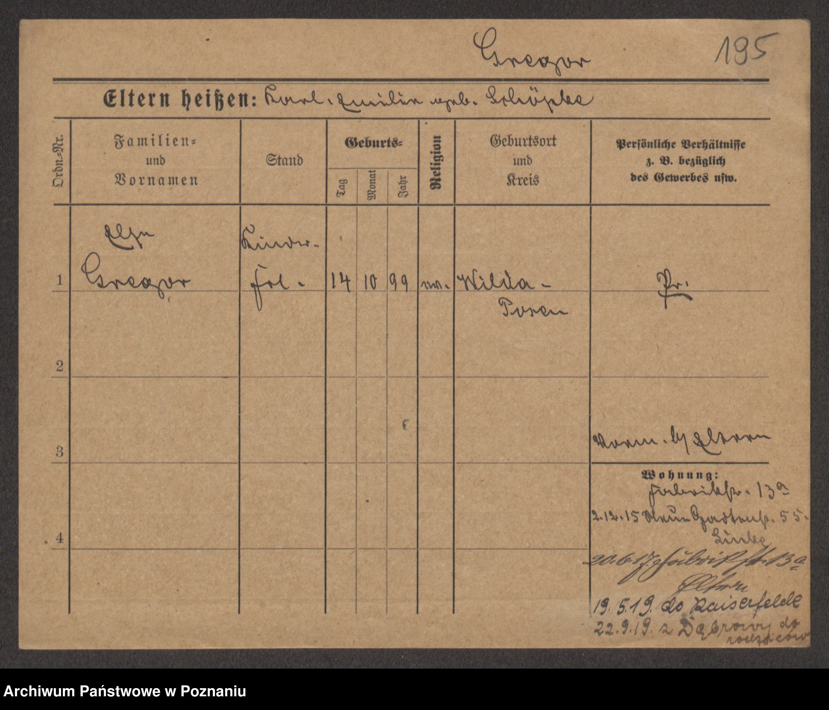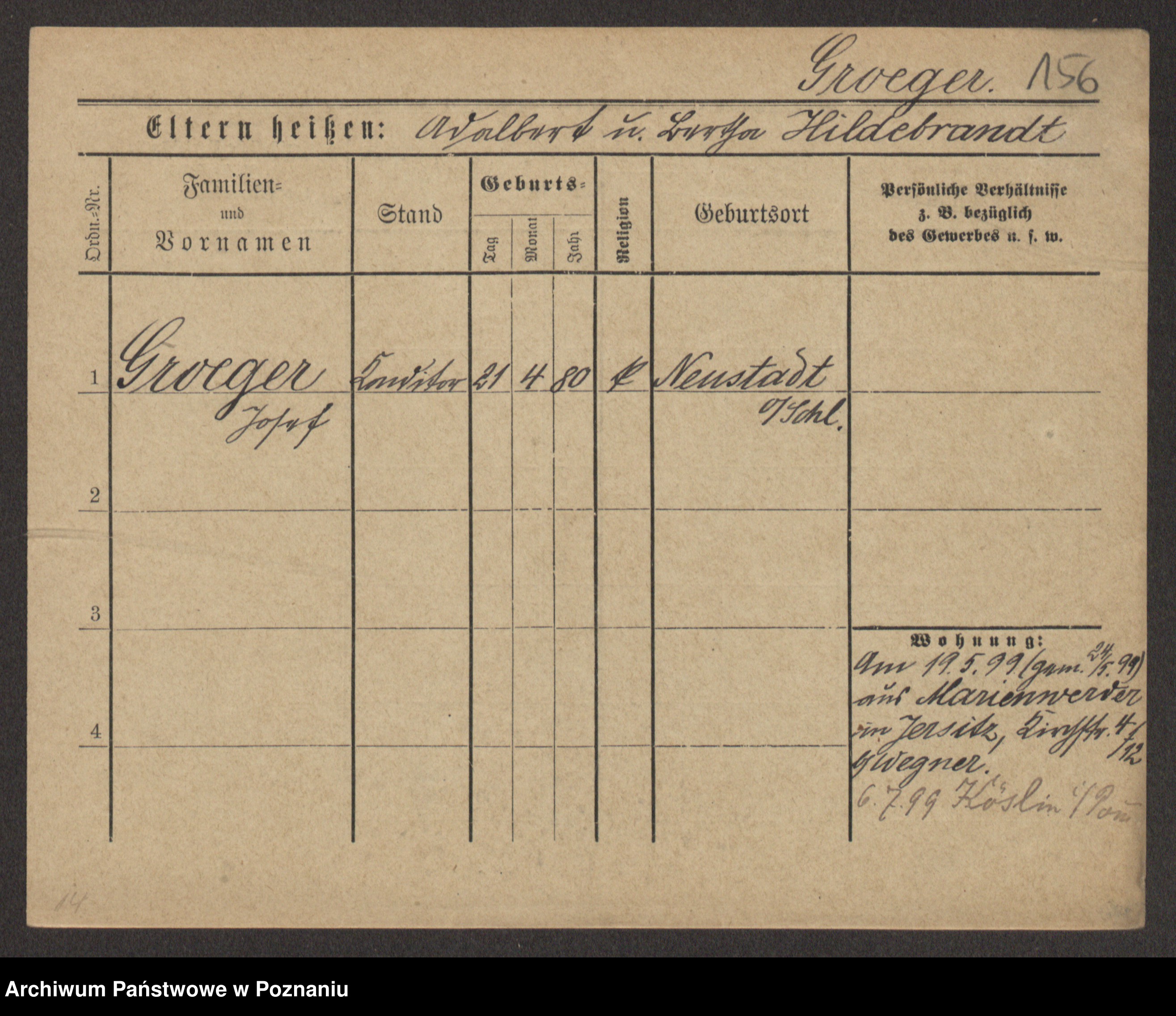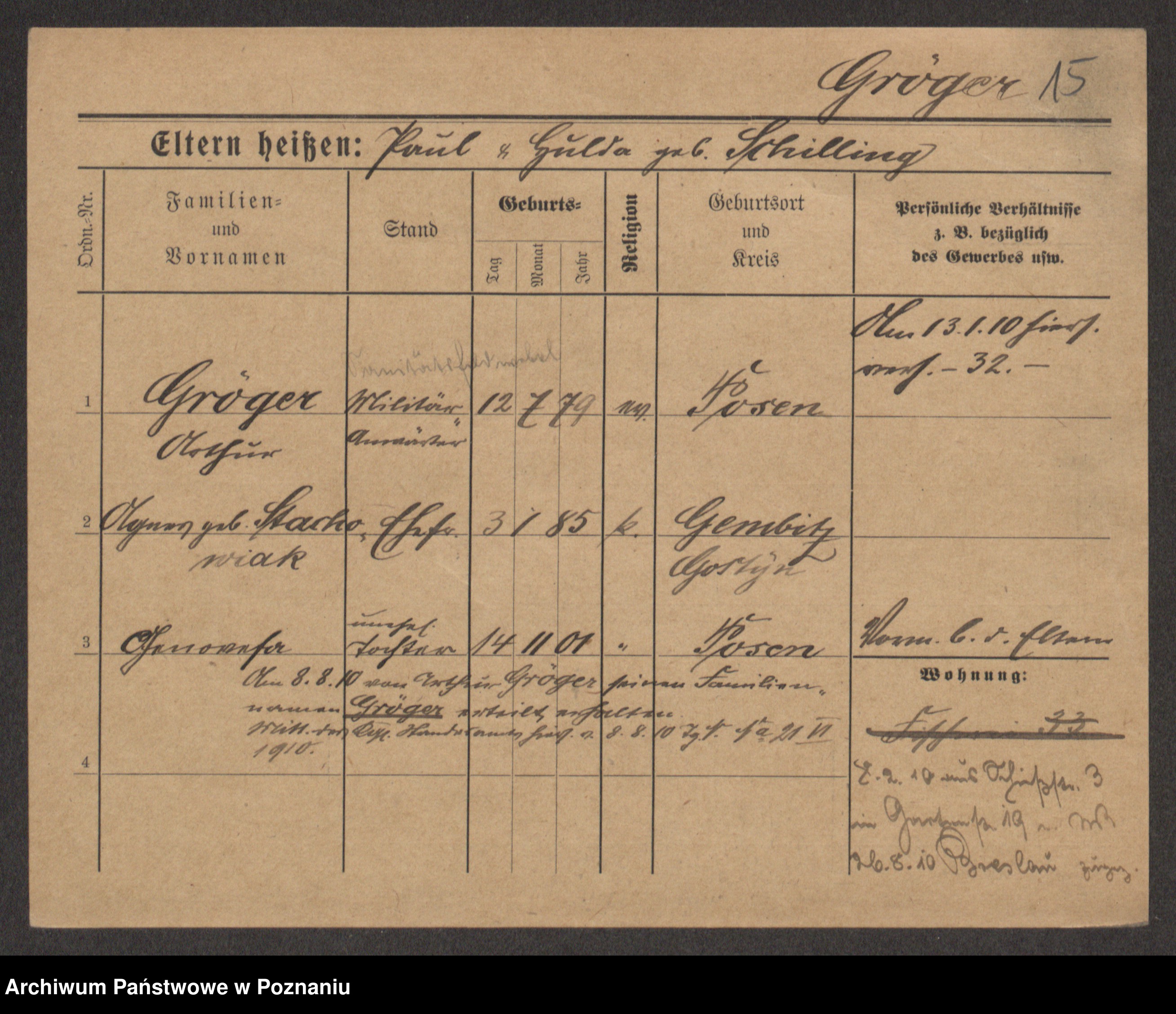 Groegor zd. Fritz, Wilhelmine Rosalie Auguste