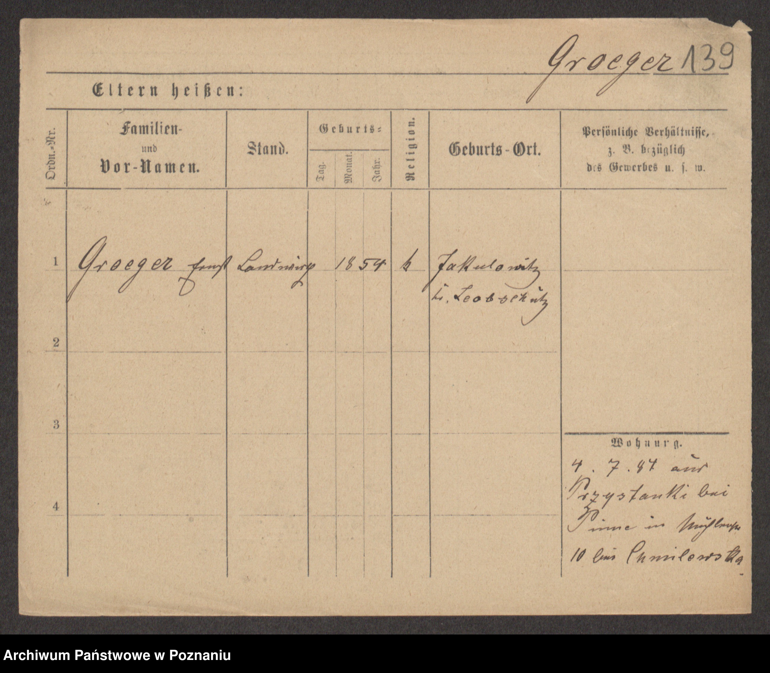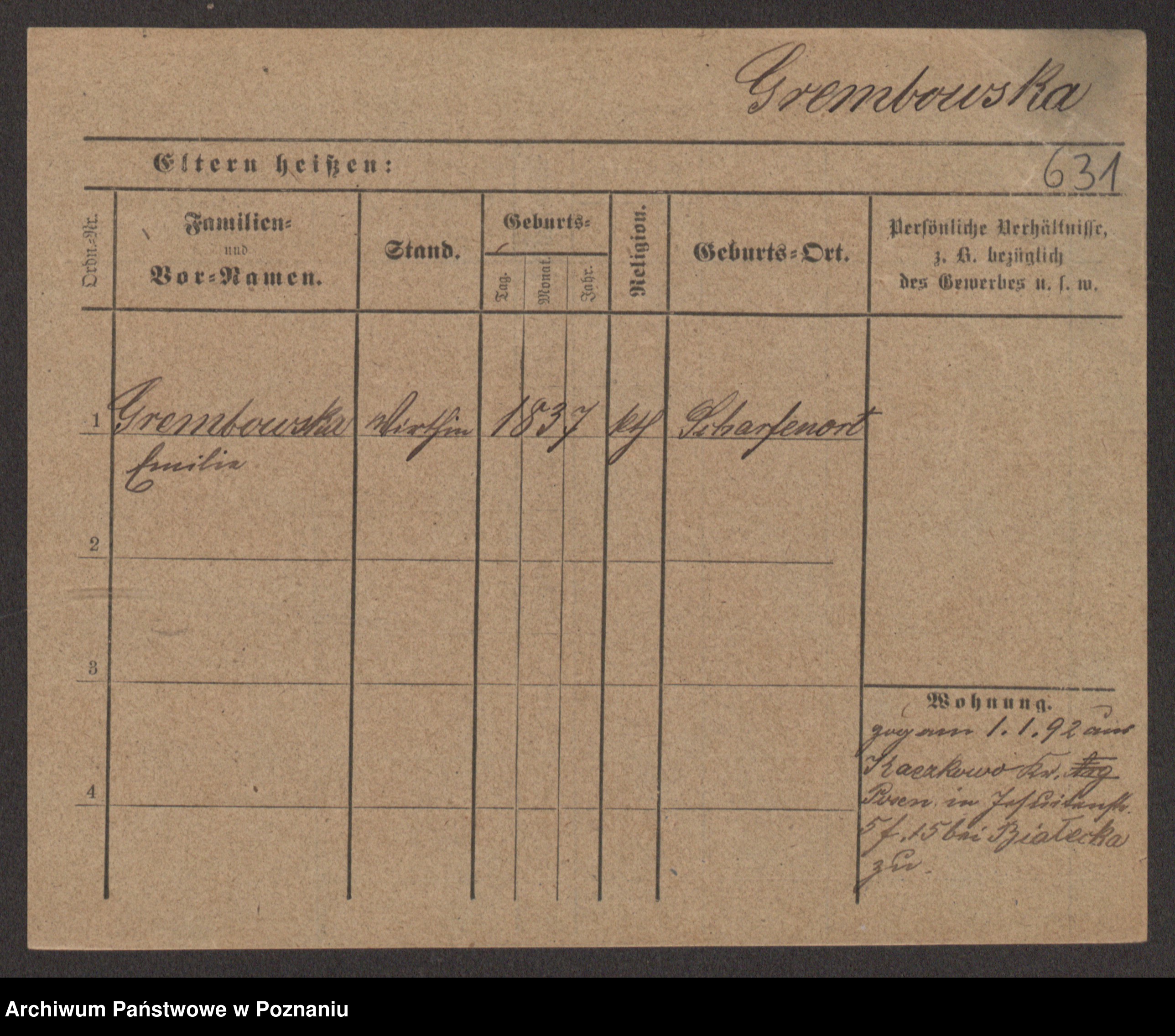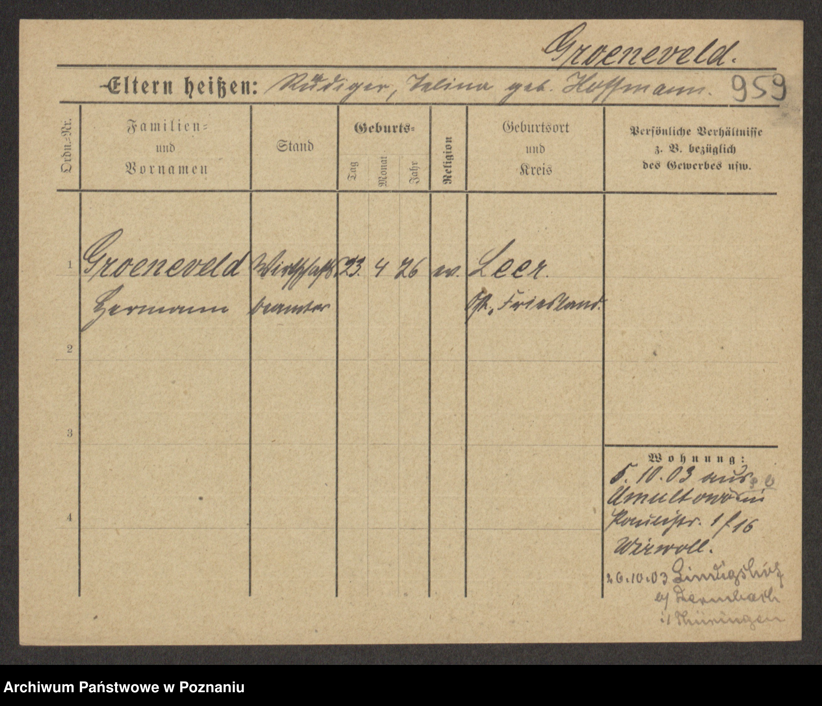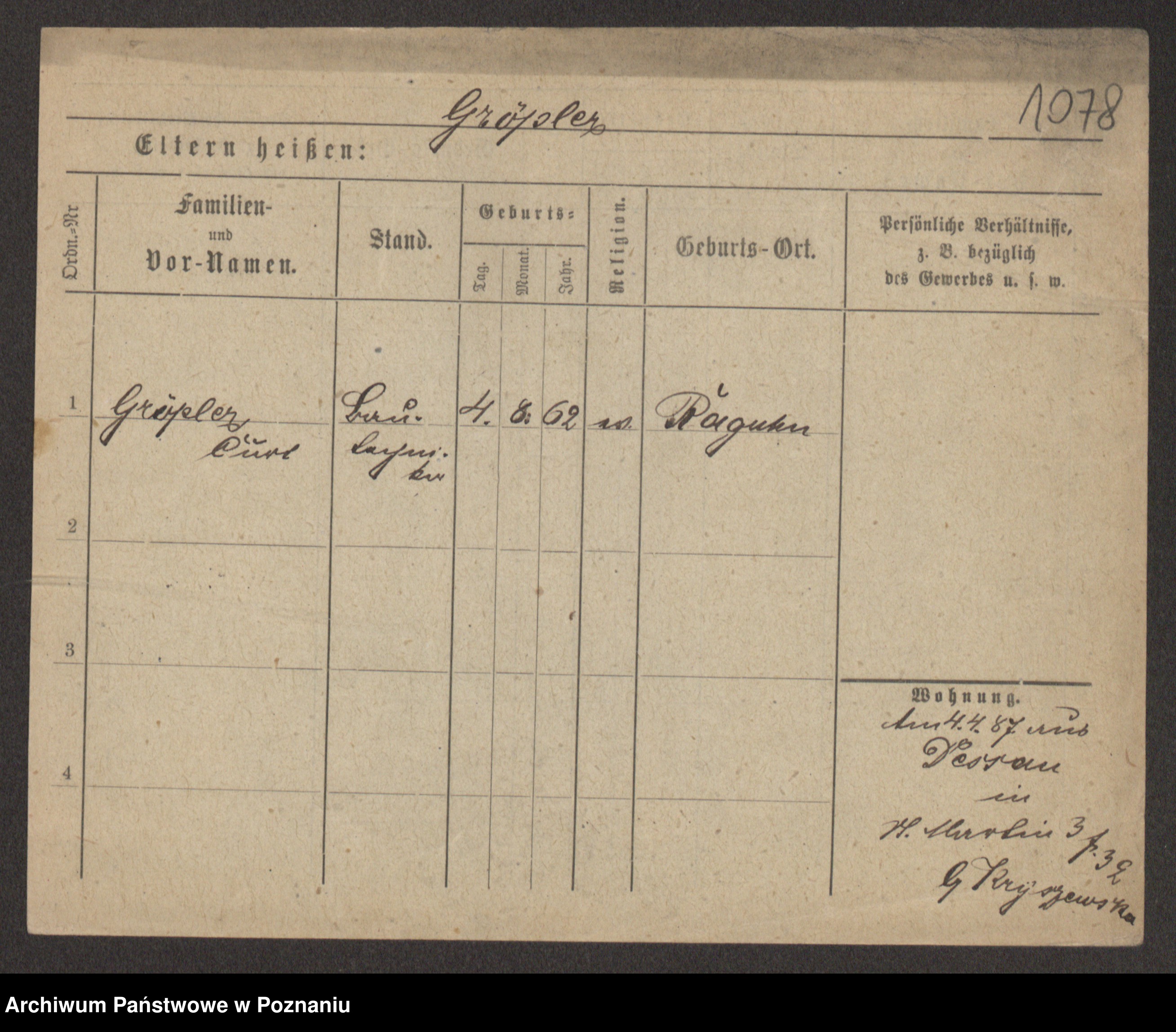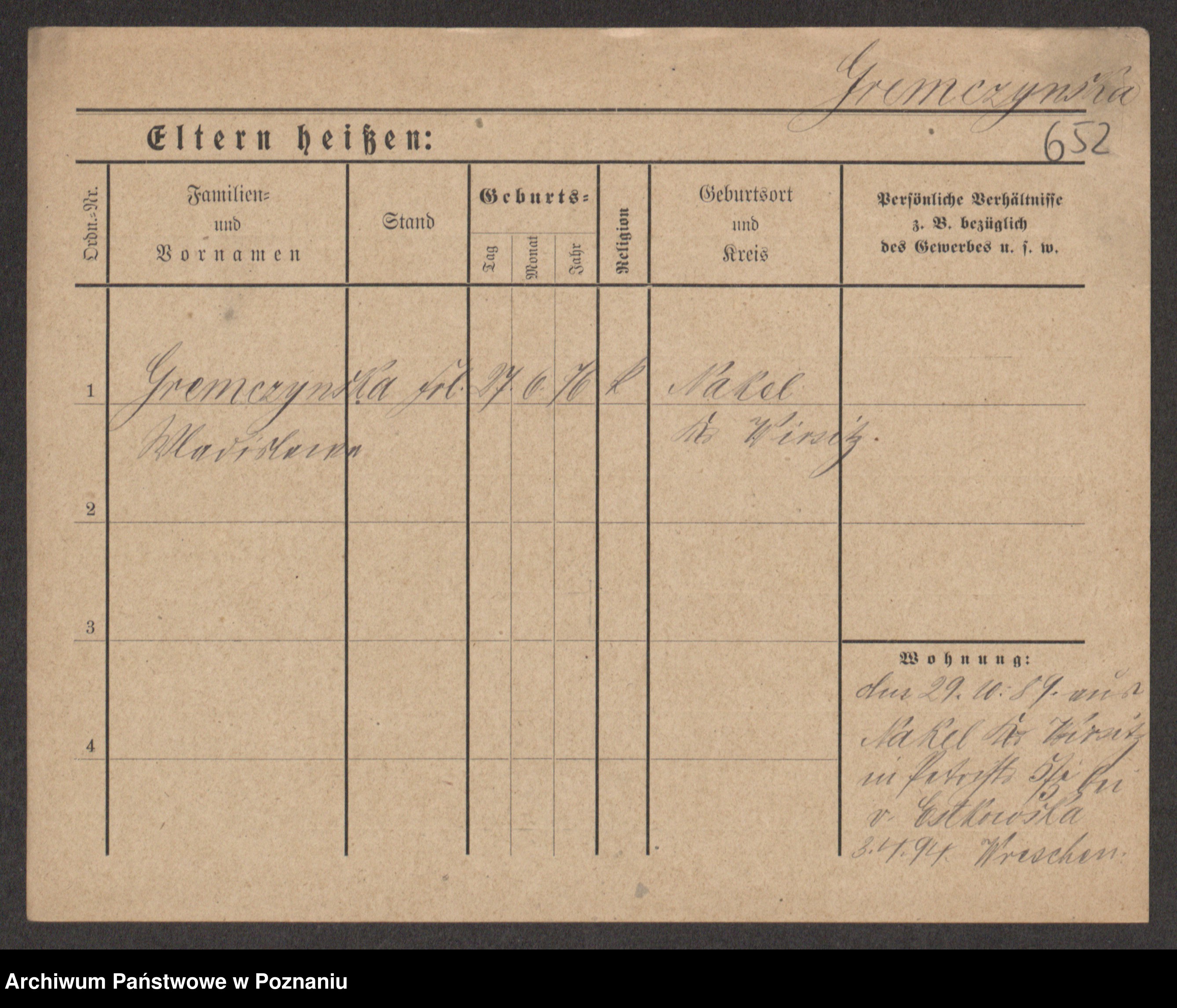 Groegor zd. Fritz, Wilhelmine Rosalie Auguste