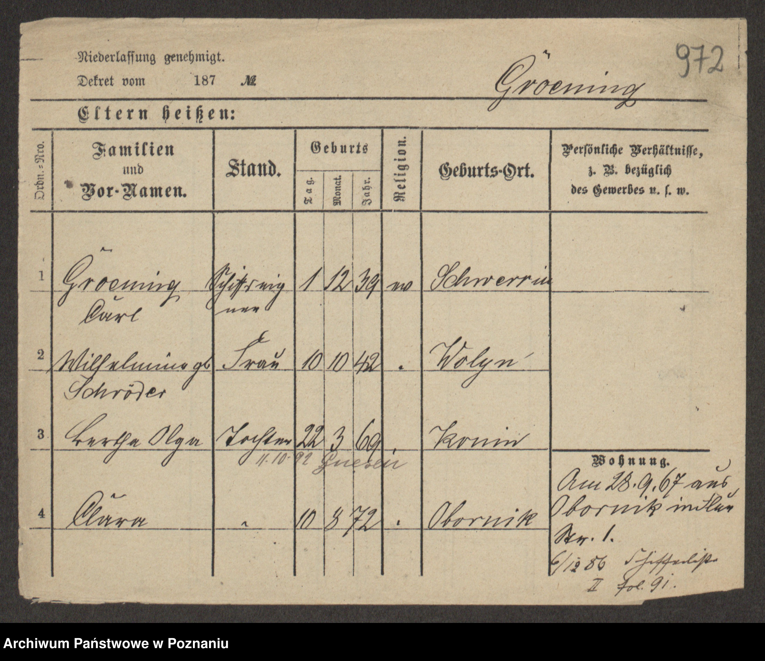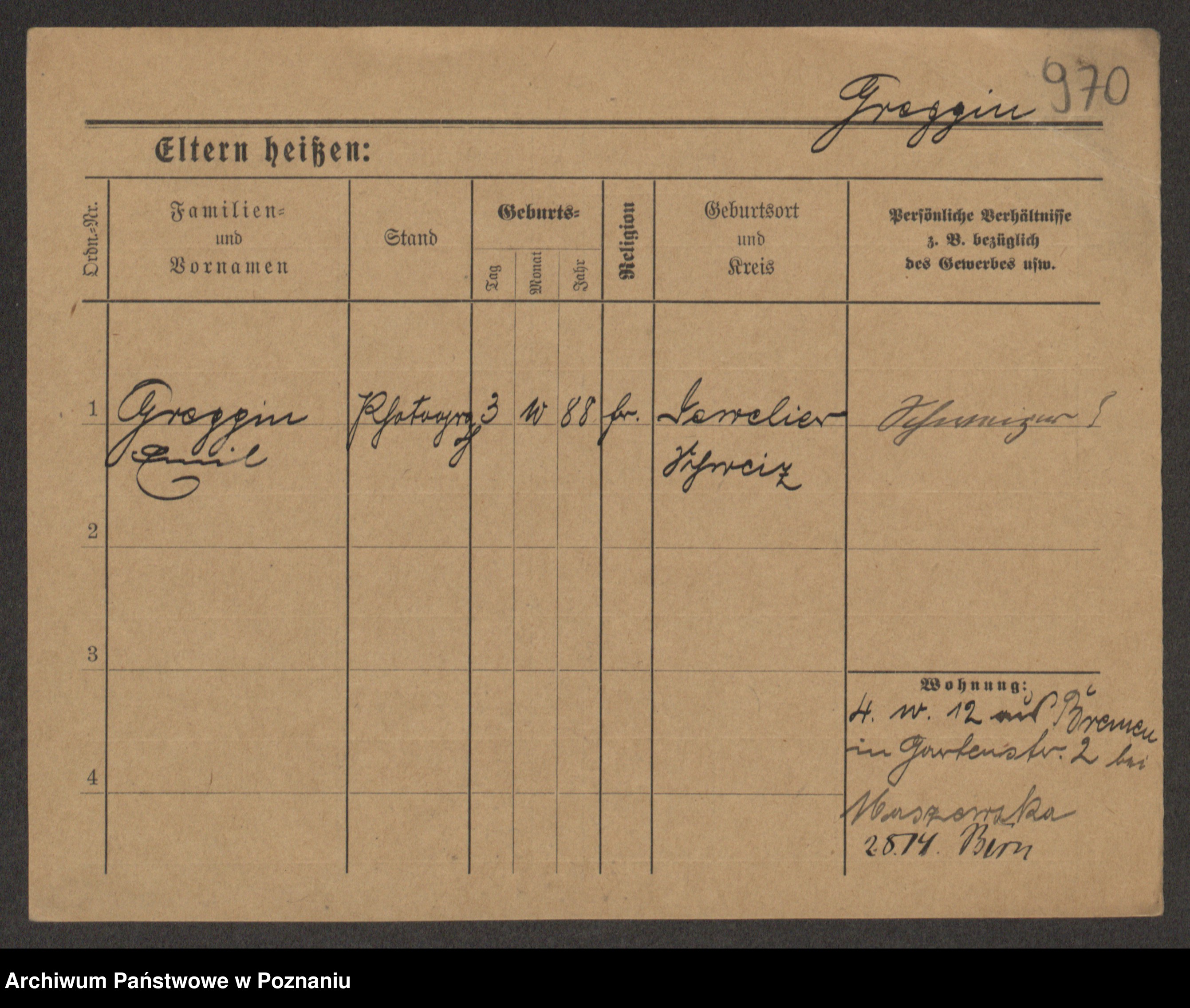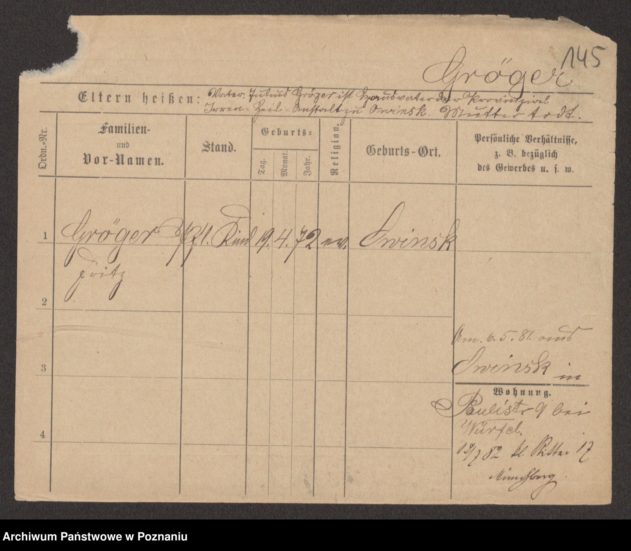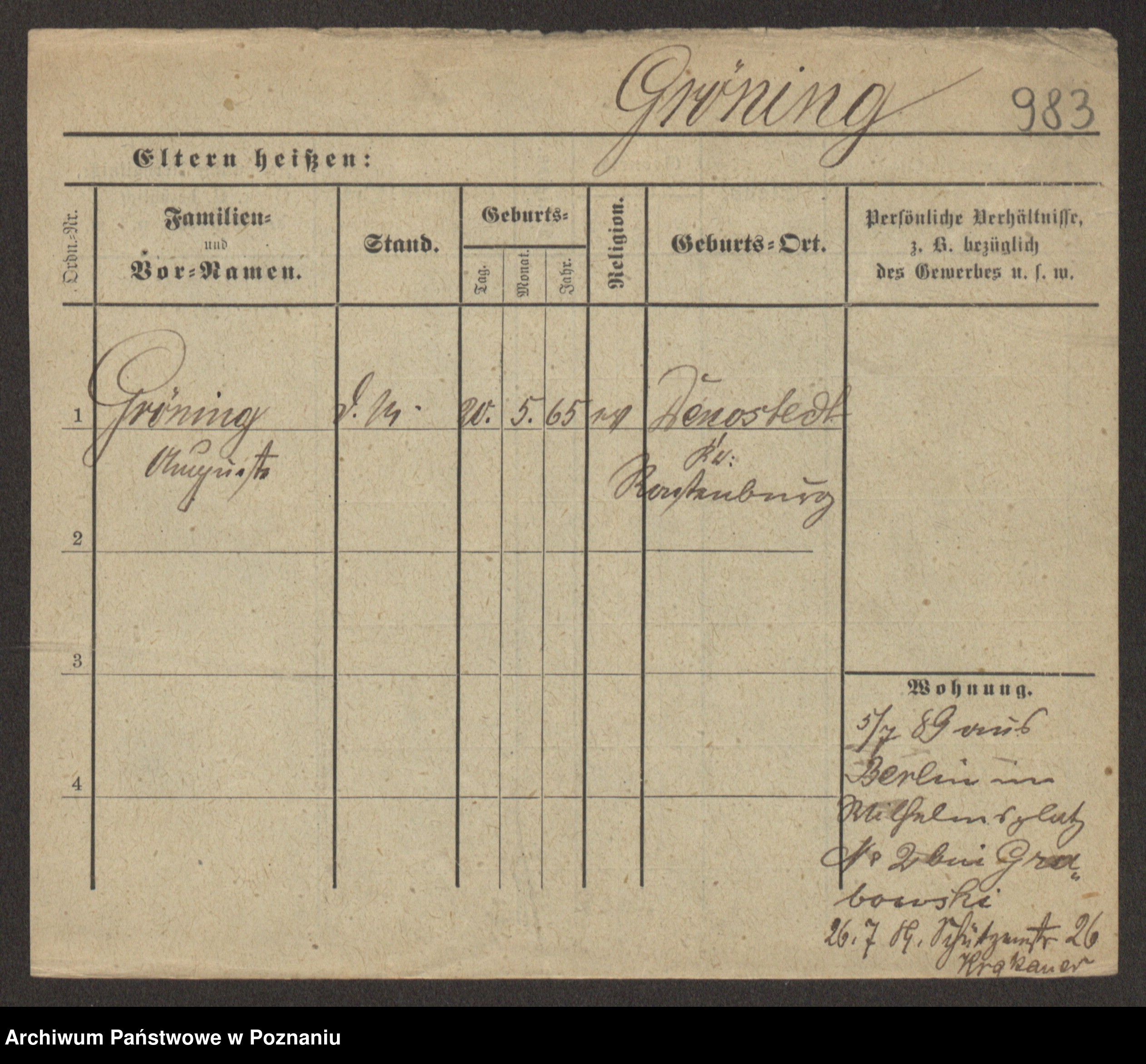 Groegor zd. Fritz, Wilhelmine Rosalie Auguste