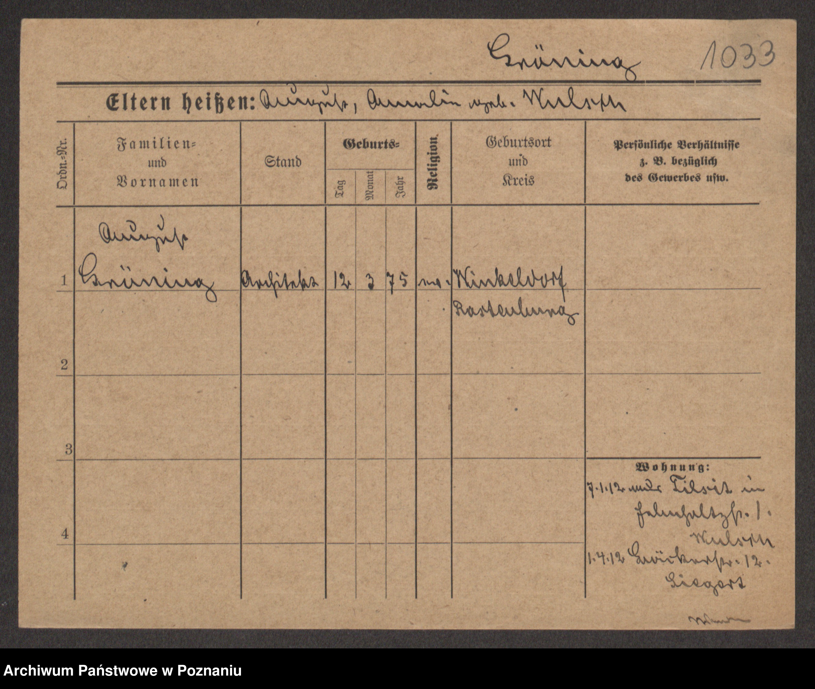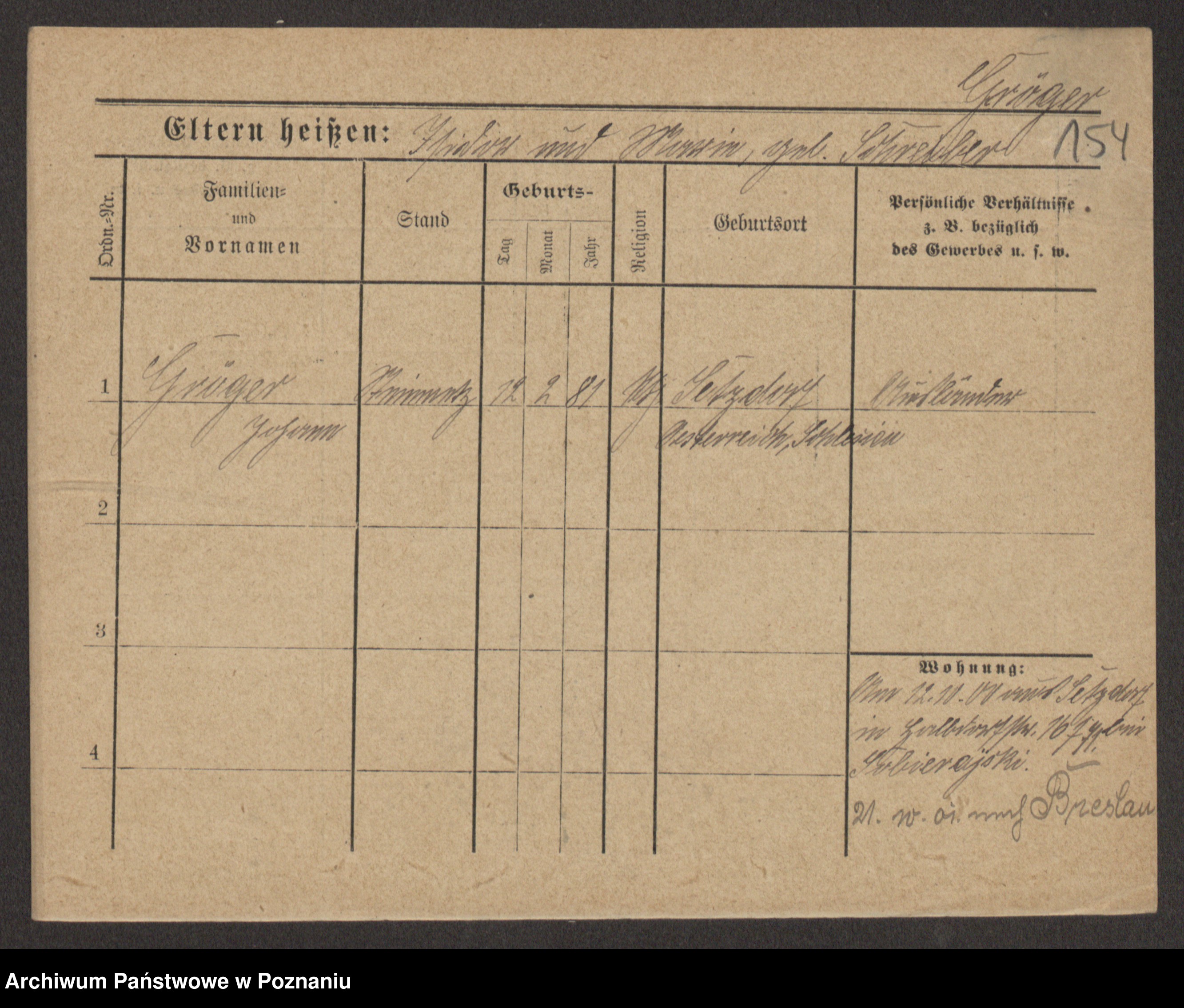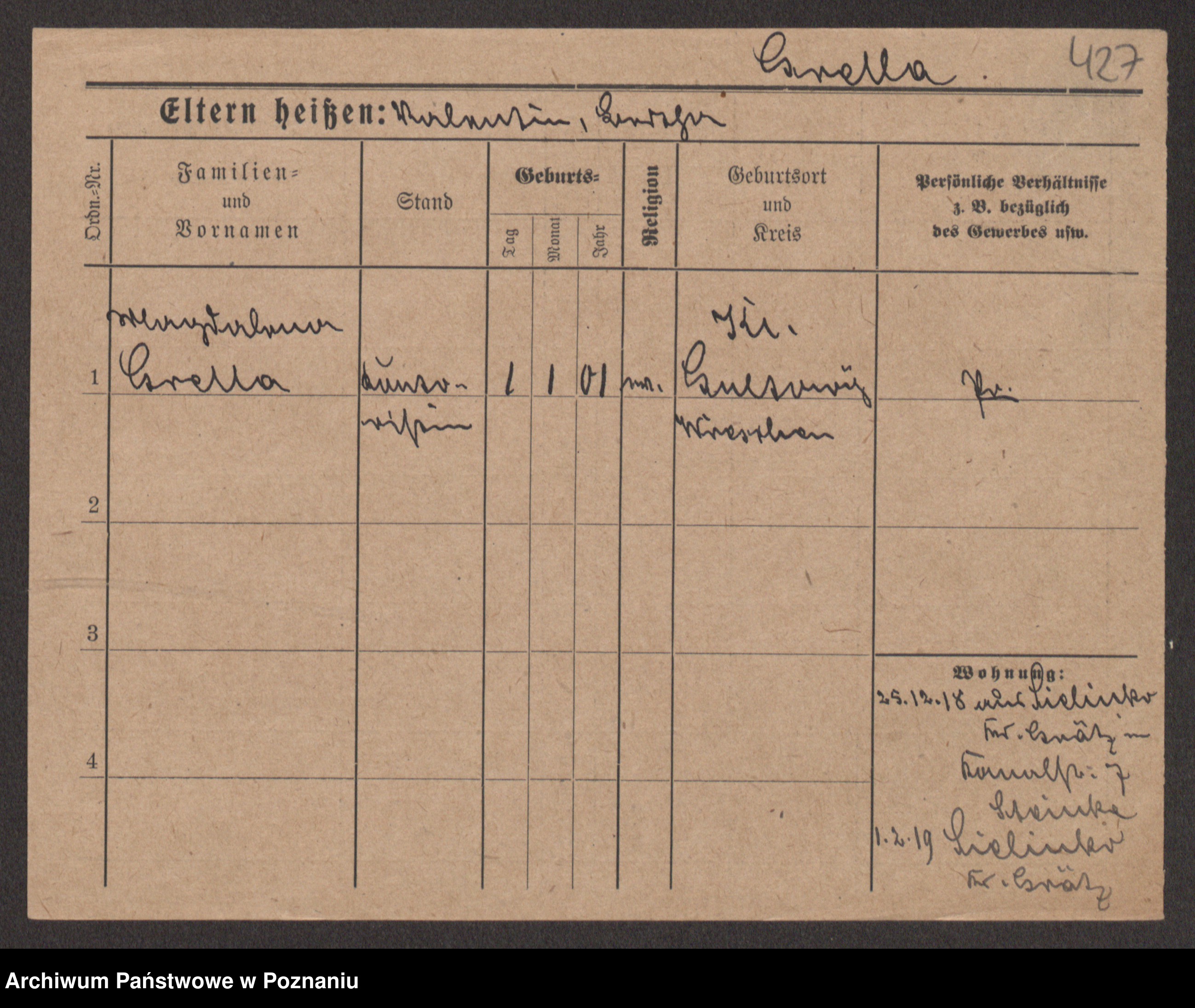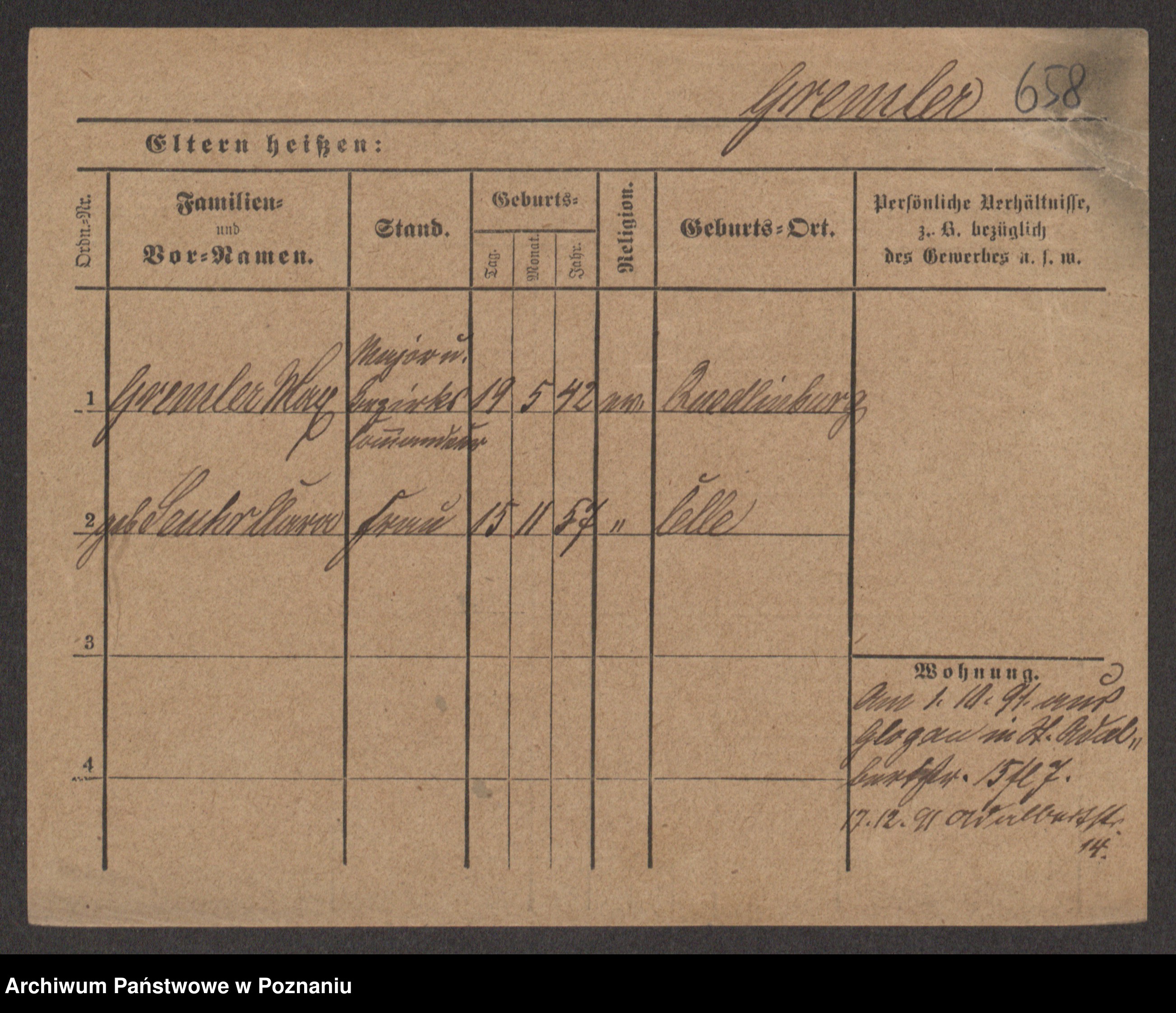 Groegor zd. Fritz, Wilhelmine Rosalie Auguste