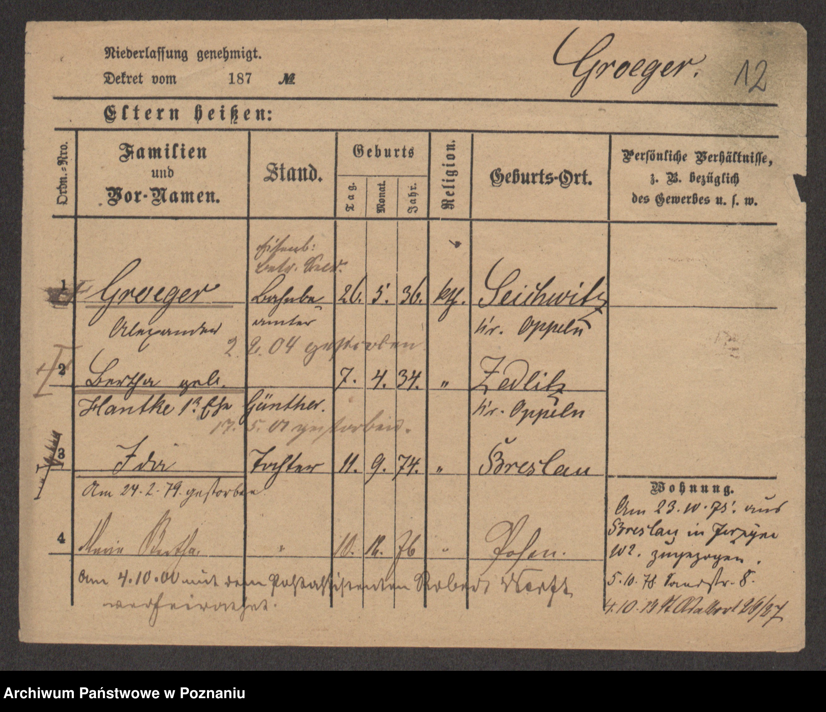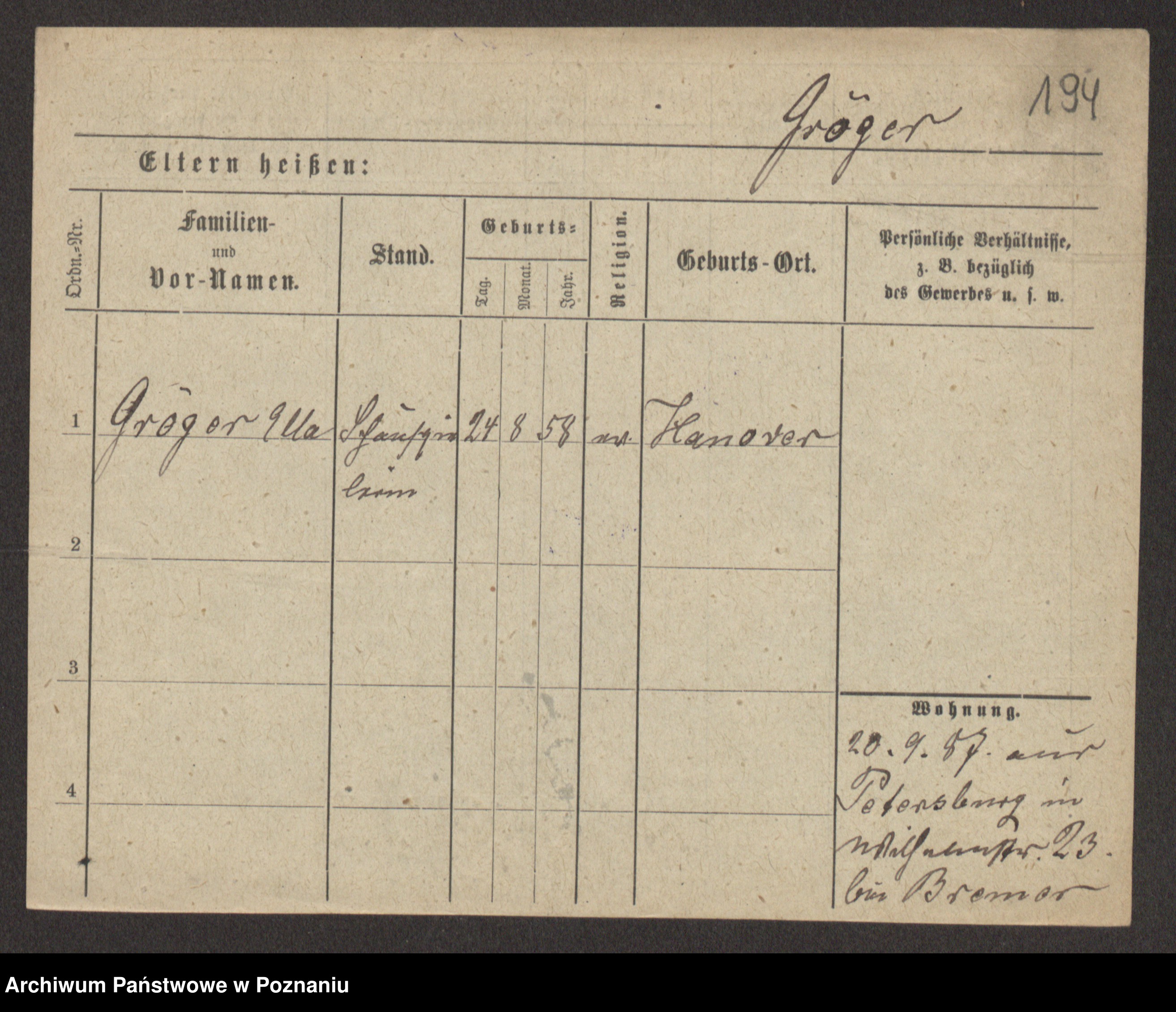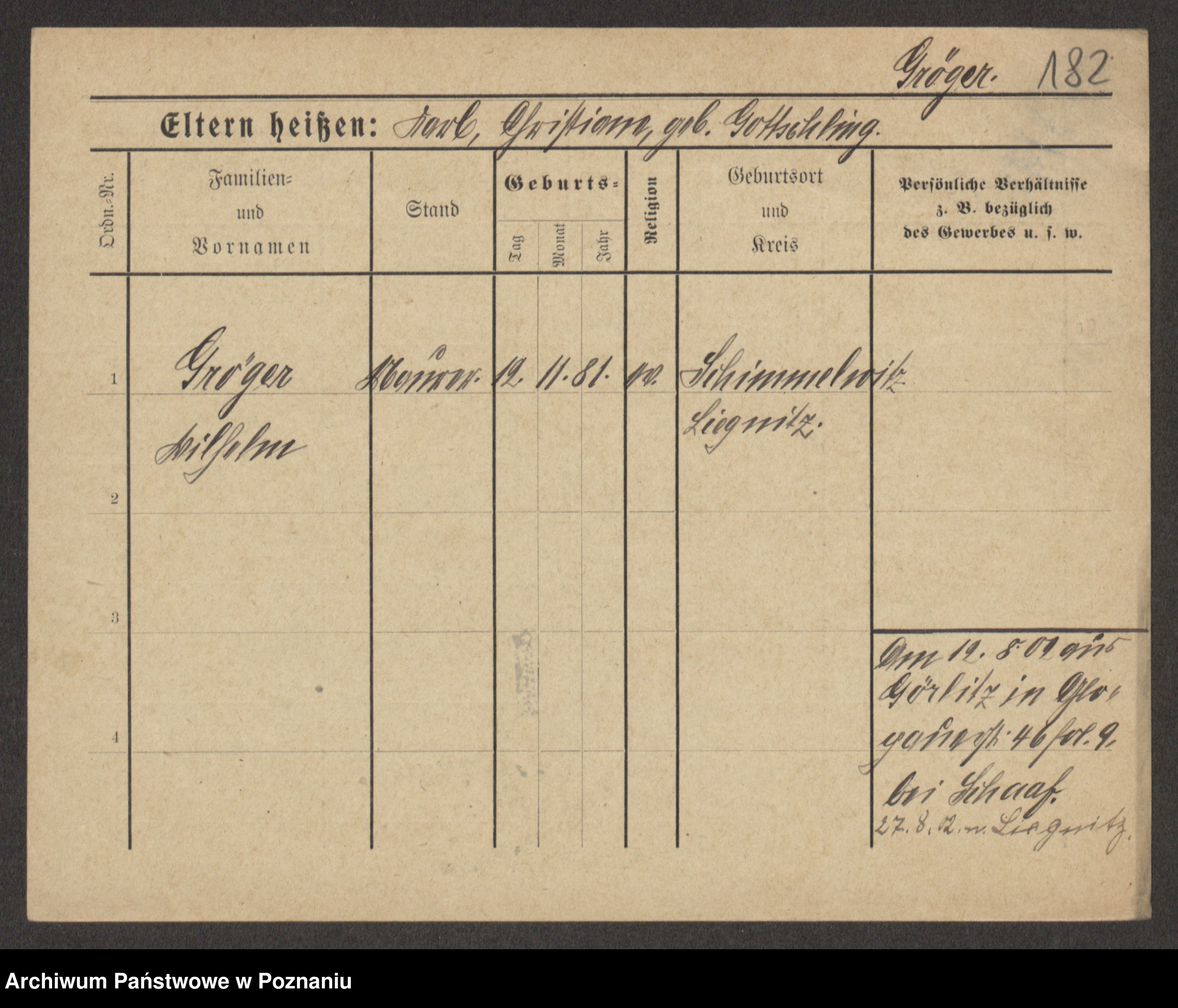 Gröger zd. Kretschmer, Auguste Emma