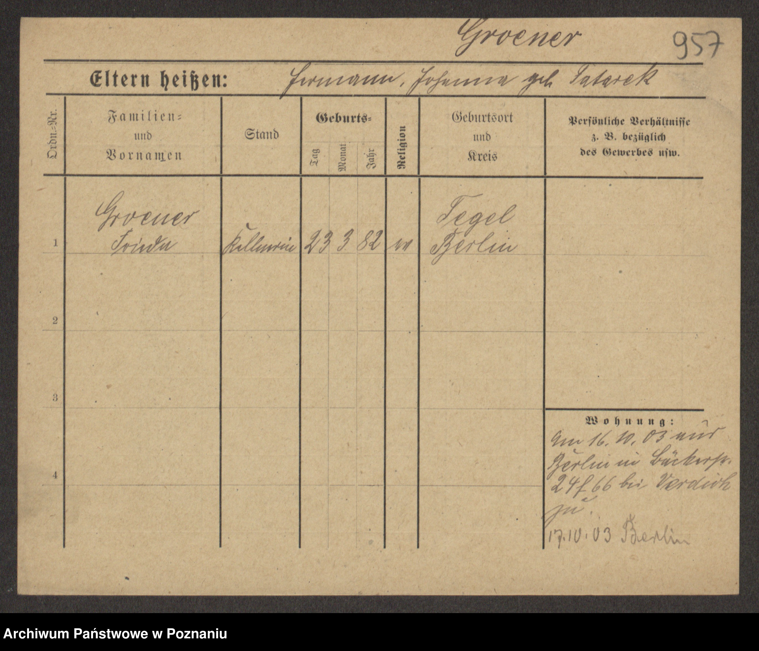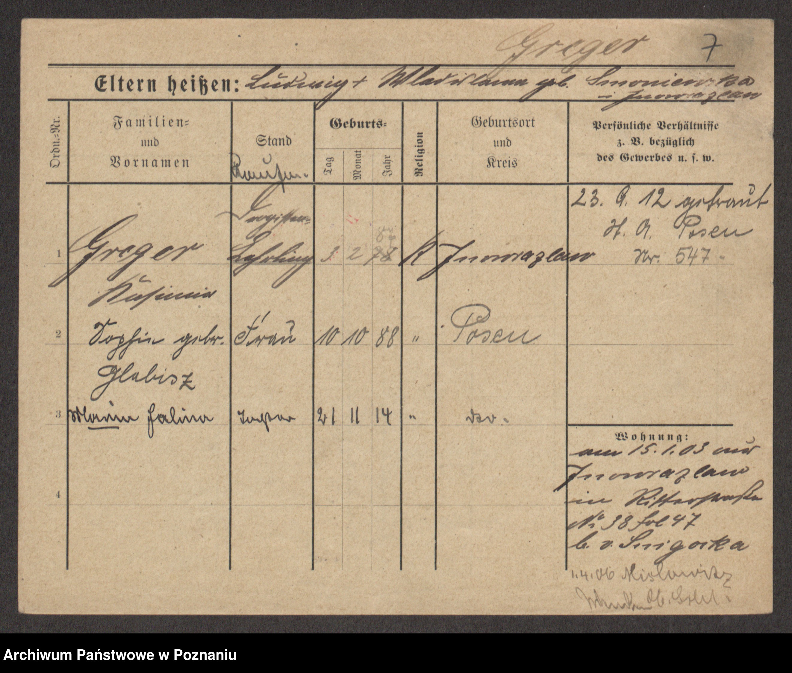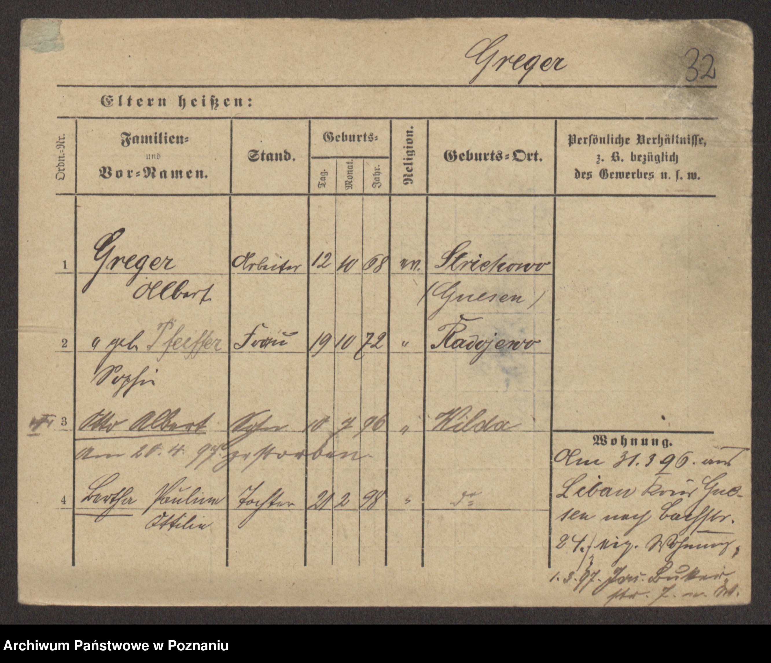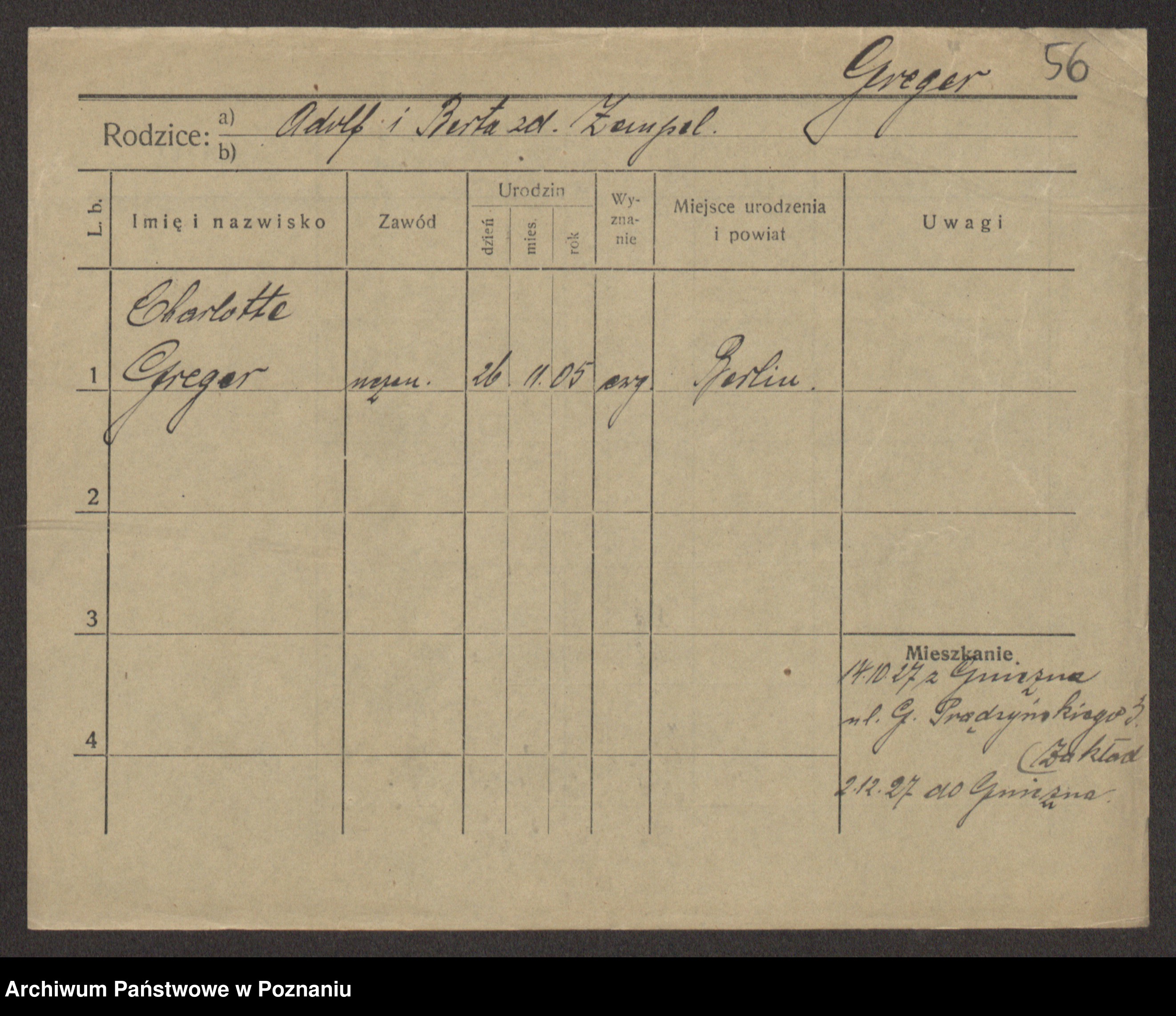 Greger, Bertha Pauline Ottilie