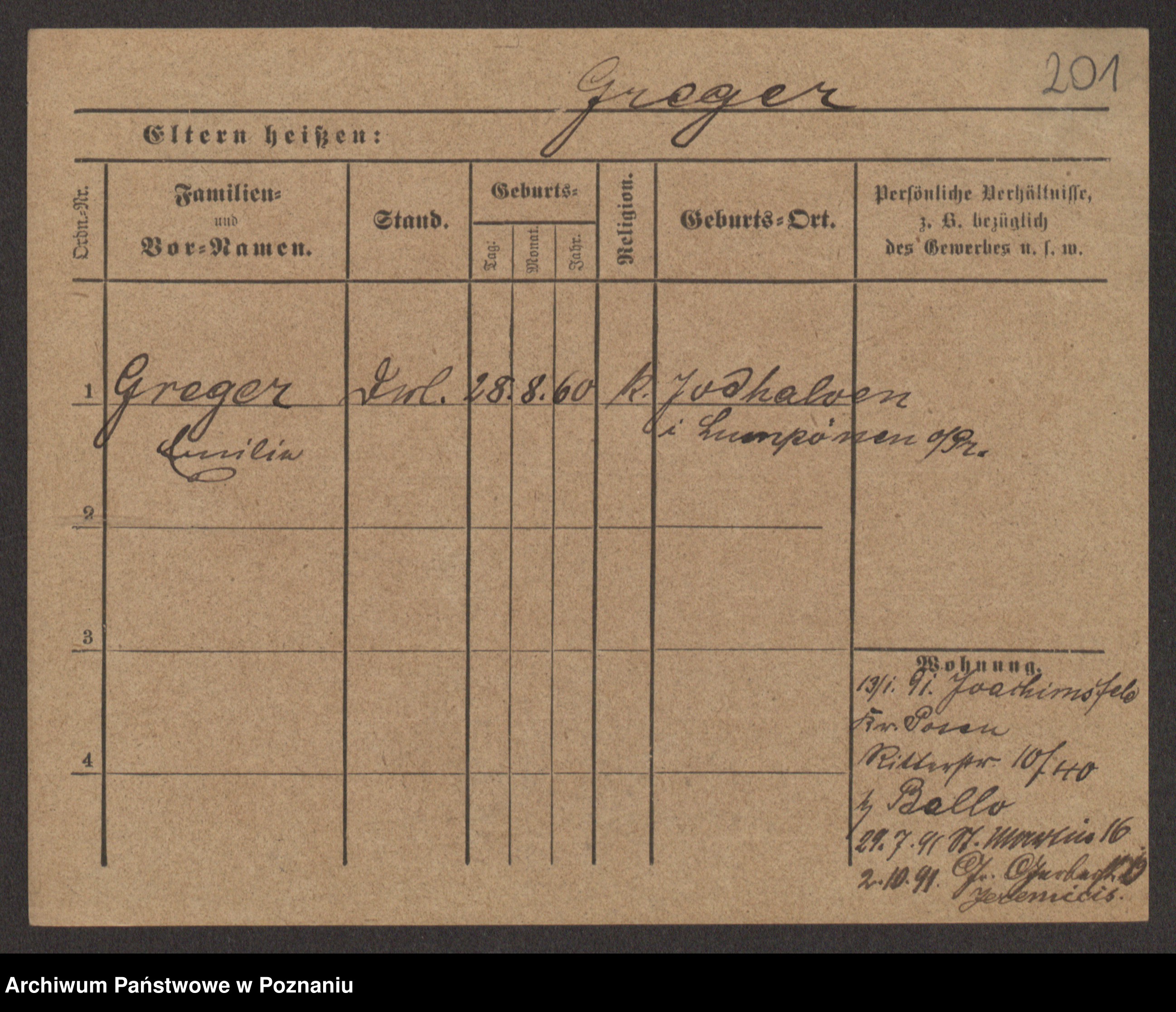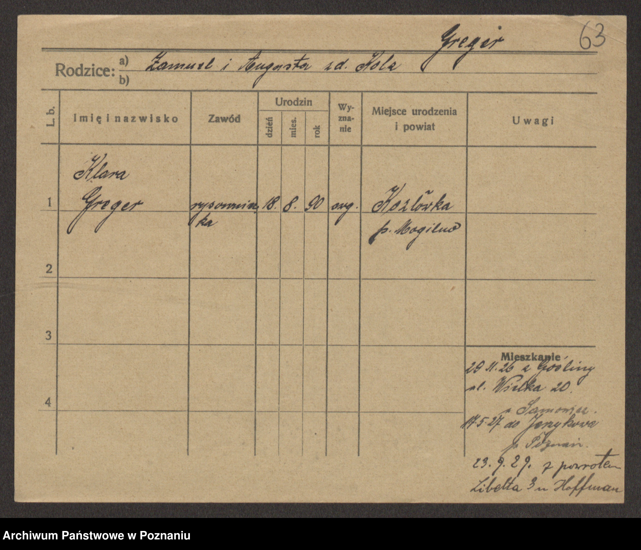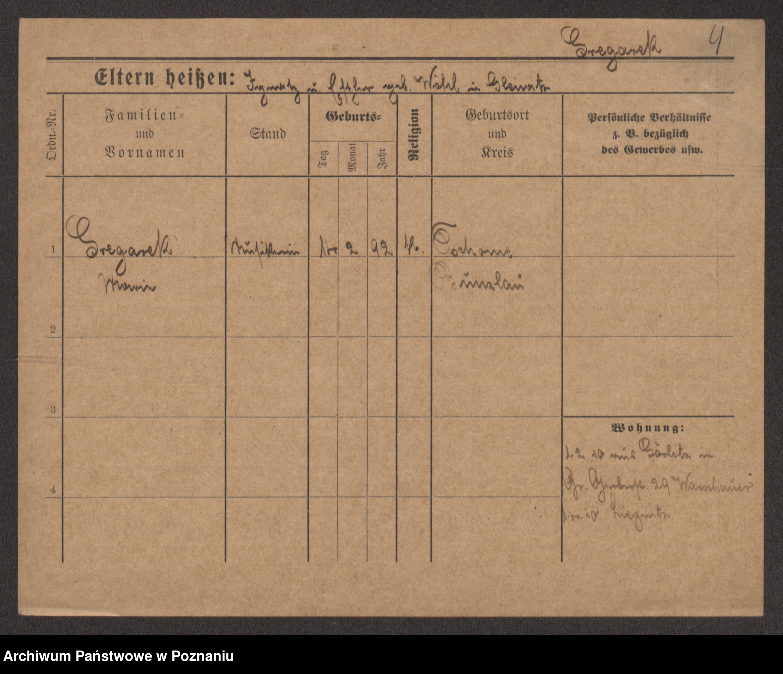 Greger, Bertha Pauline Ottilie