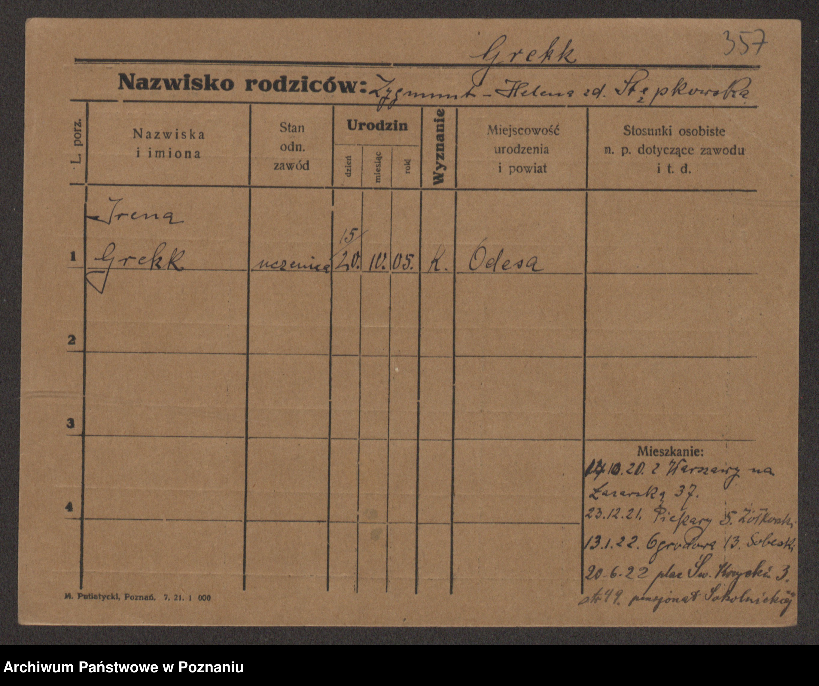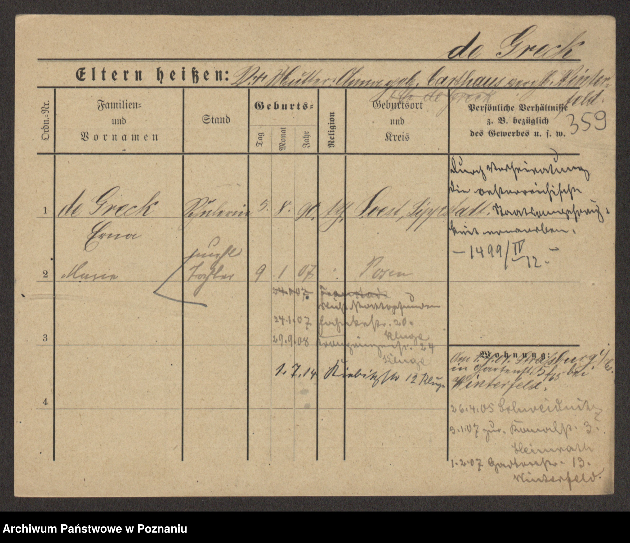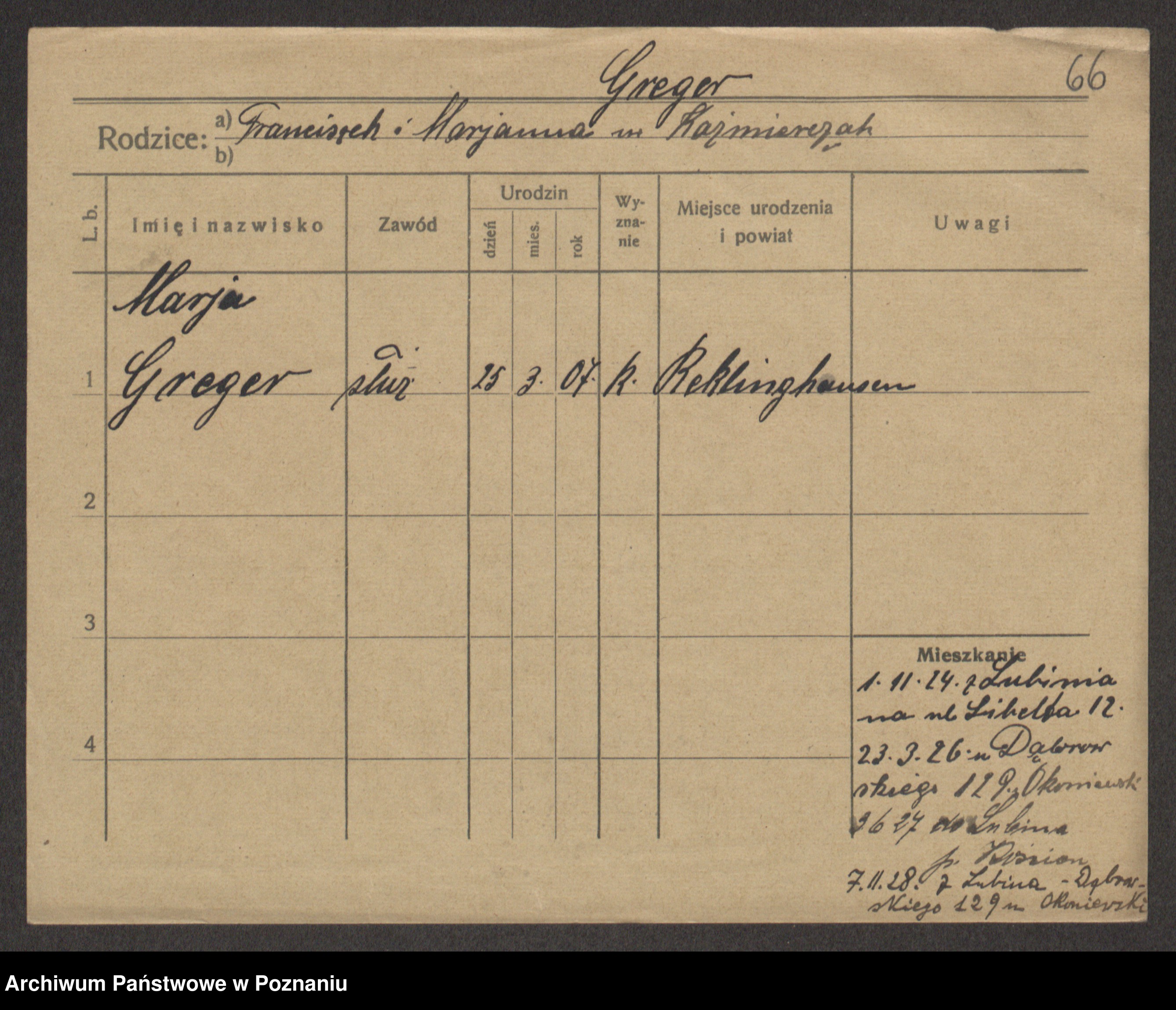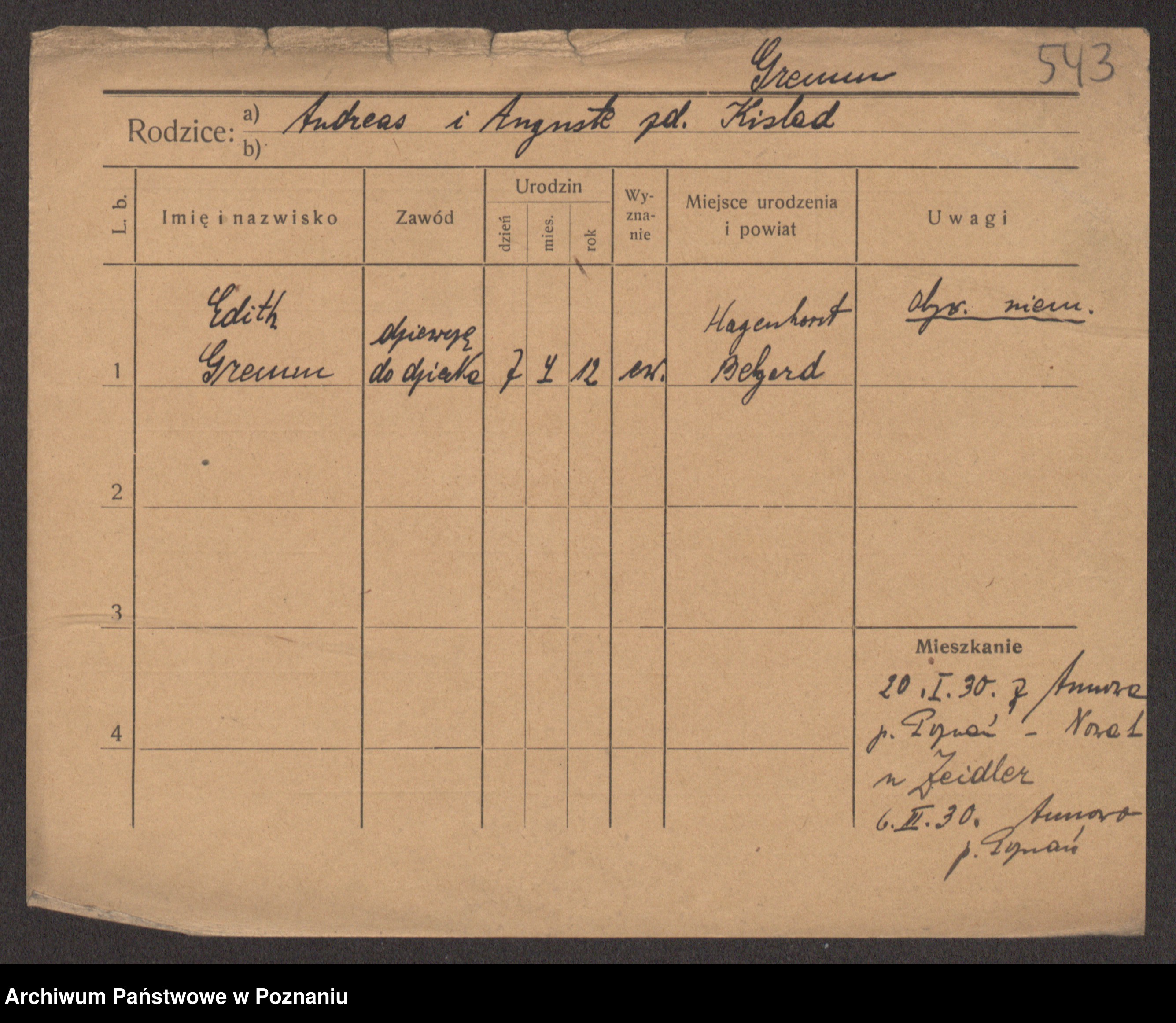 Greger, Bertha Pauline Ottilie