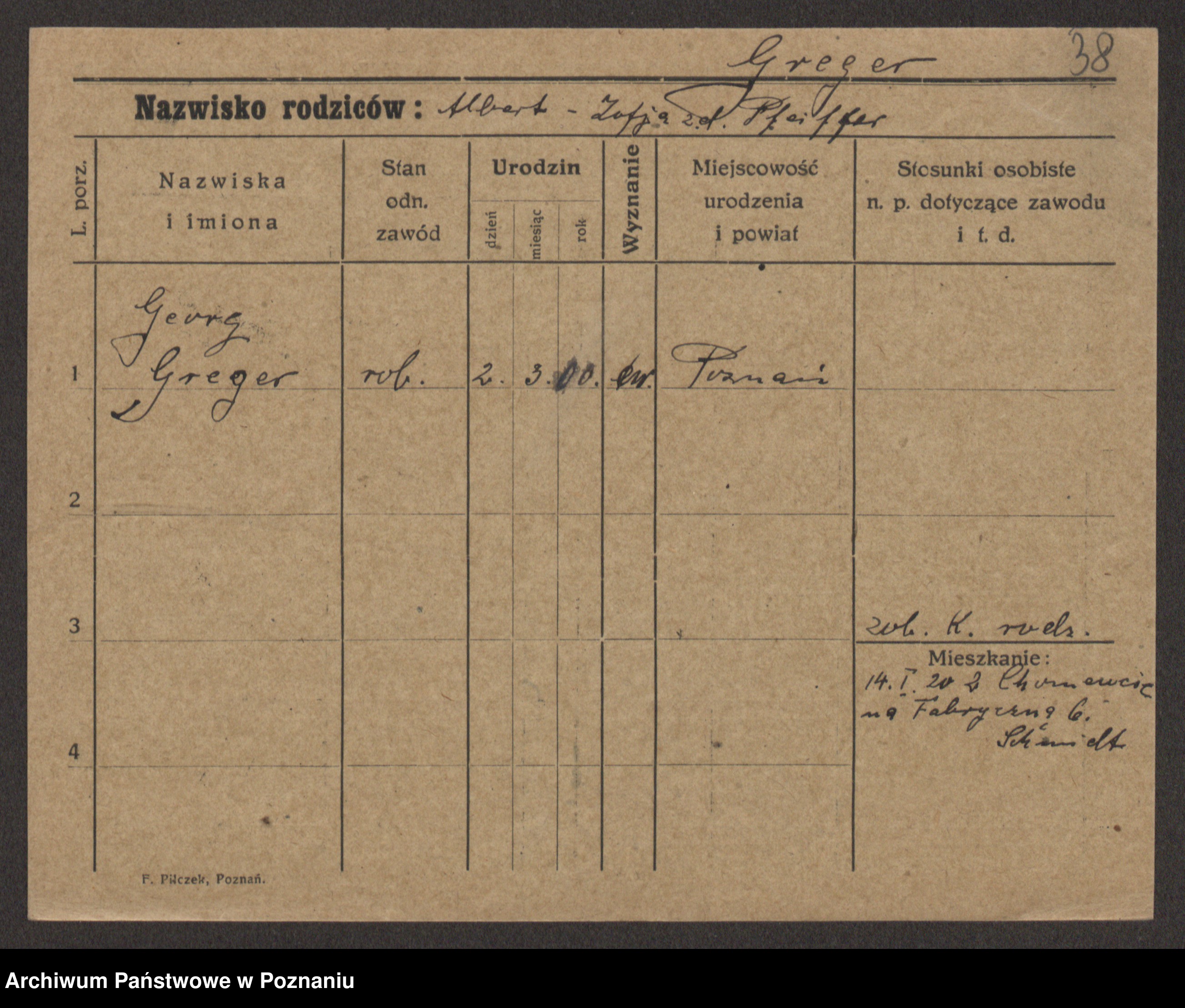 Greger zd. Pfeiffer, Sophie