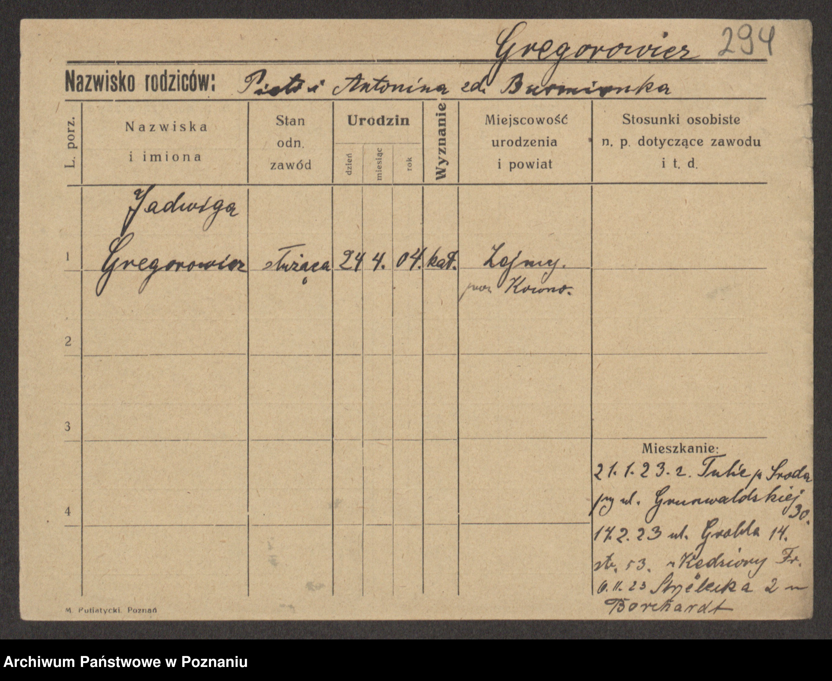 Greger zd. Smonieska v., Wladislawa