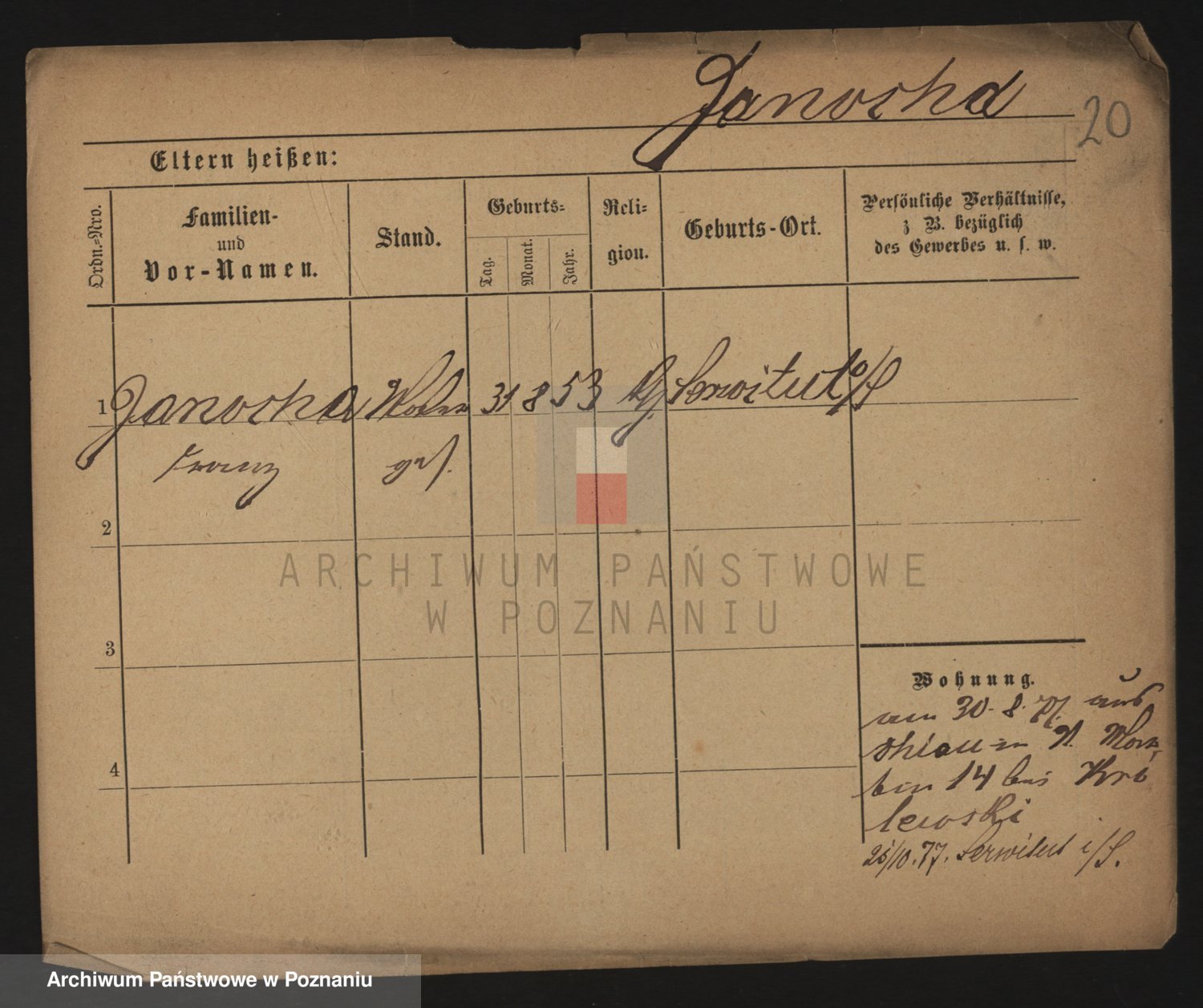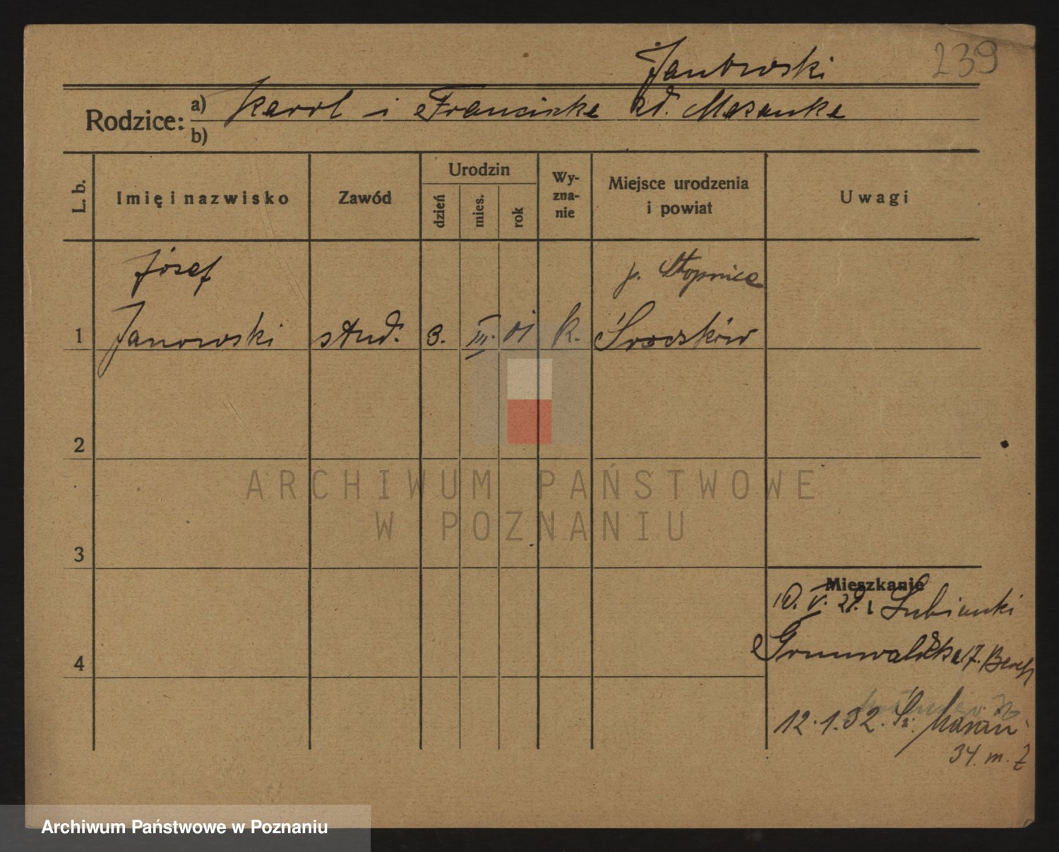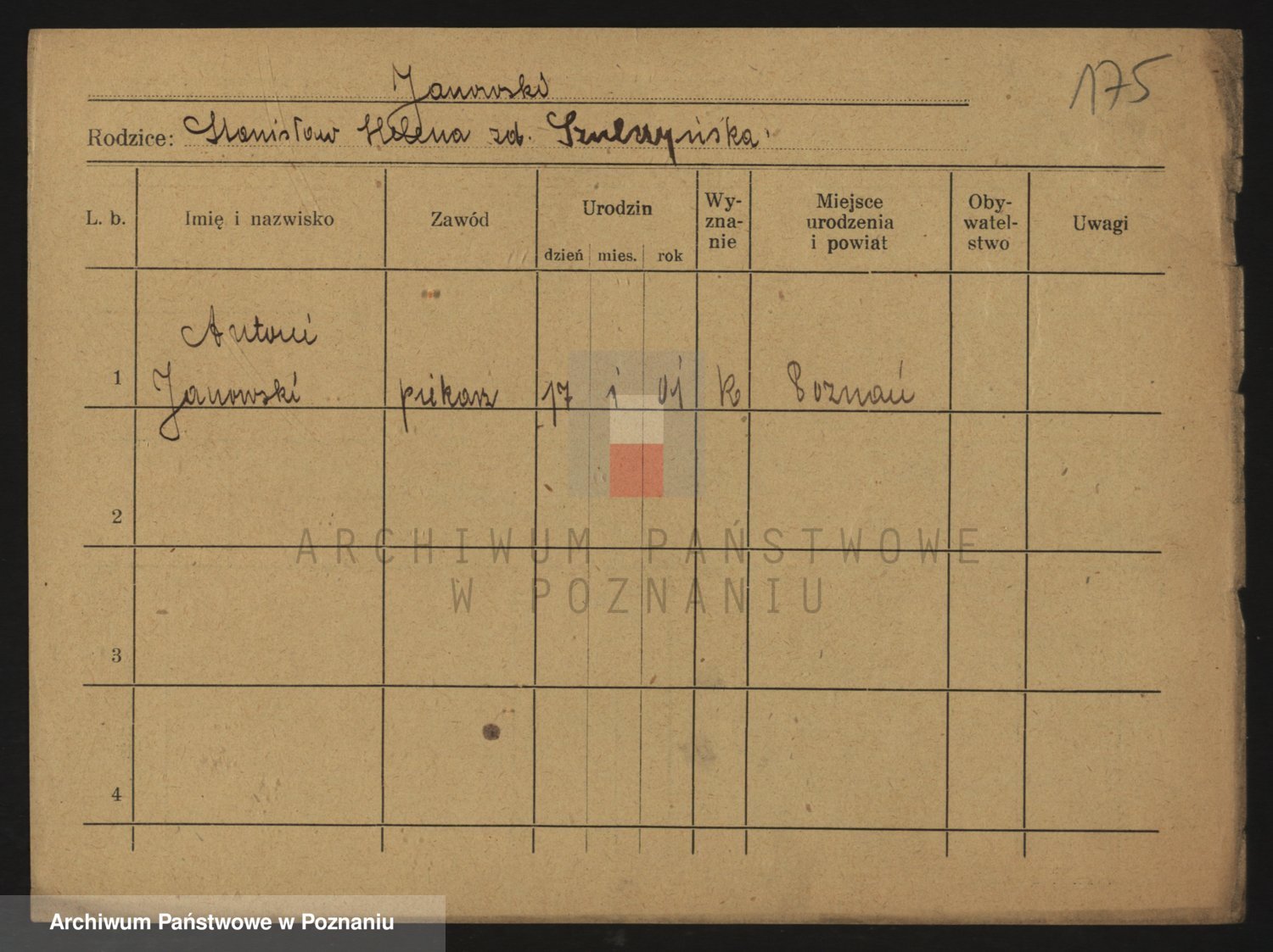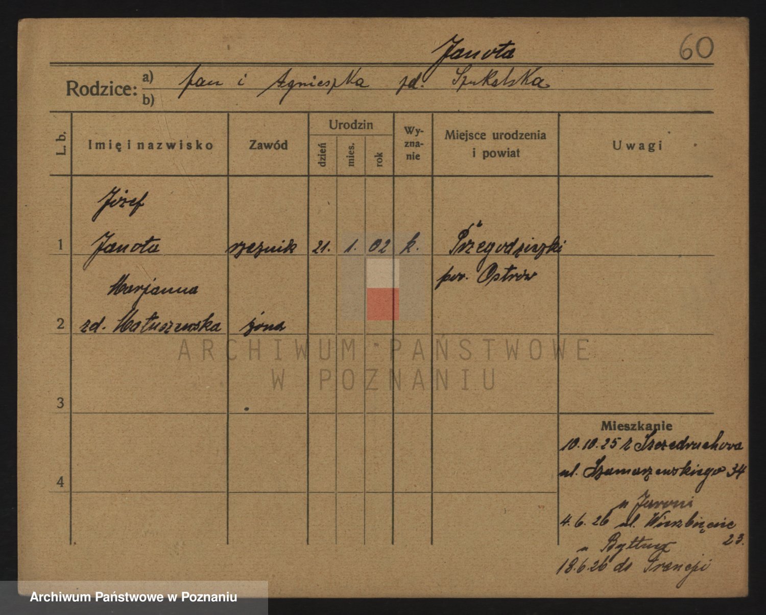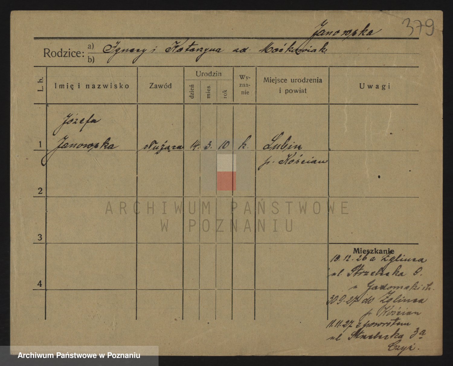 Podgląd karty osobowej dostępny jest po kliknięciu na nazwisko lub ikonkę karty. Można dokonywać powiększenia (ikony na górze) lub przechodzić między kolejnymi skanami (strzałki po bokach).
