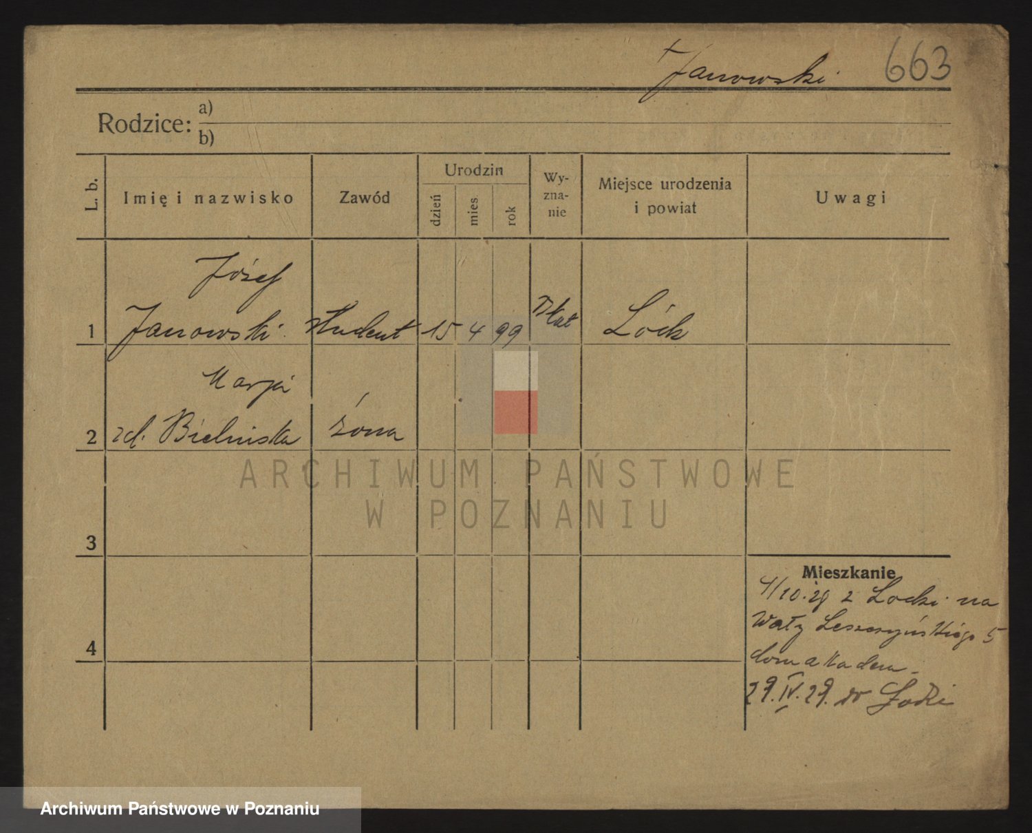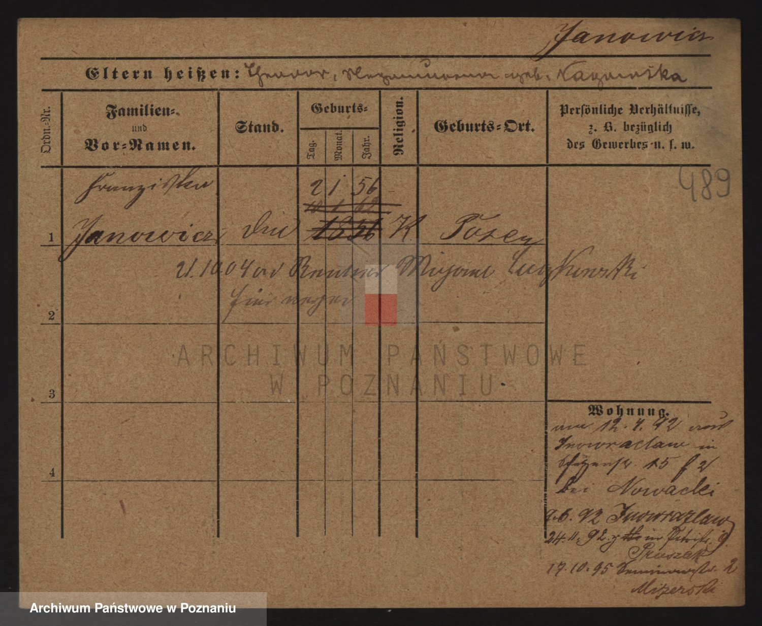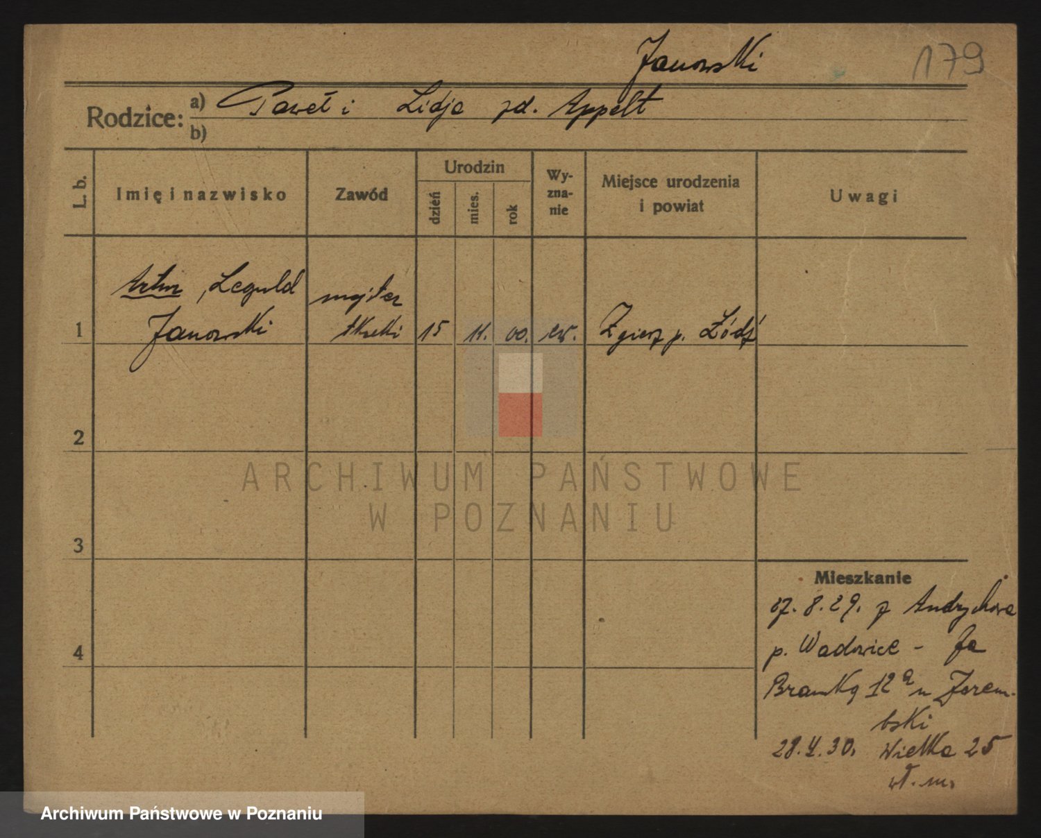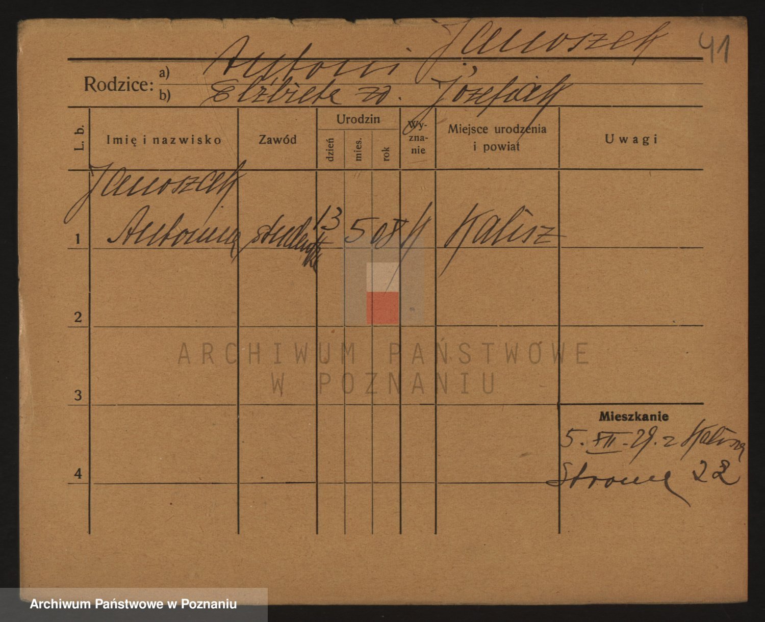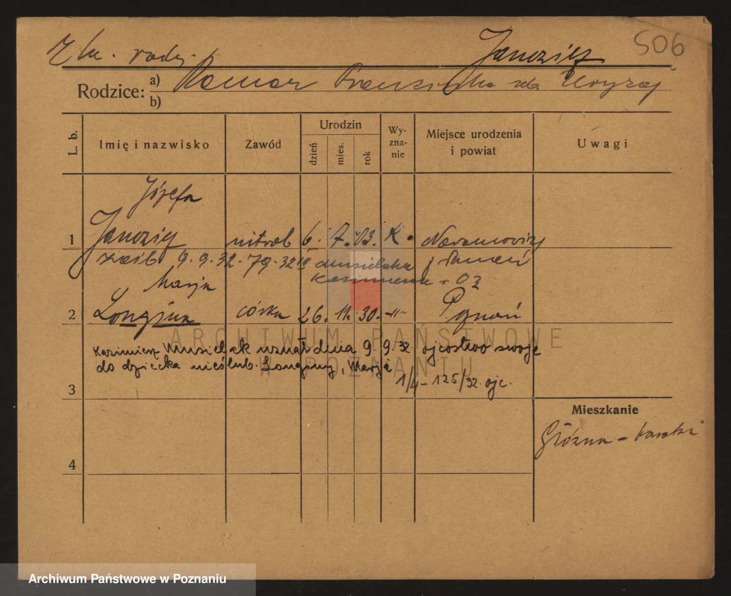 Podgląd karty osobowej dostępny jest po kliknięciu na nazwisko lub ikonkę karty. Można dokonywać powiększenia (ikony na górze) lub przechodzić między kolejnymi skanami (strzałki po bokach).
