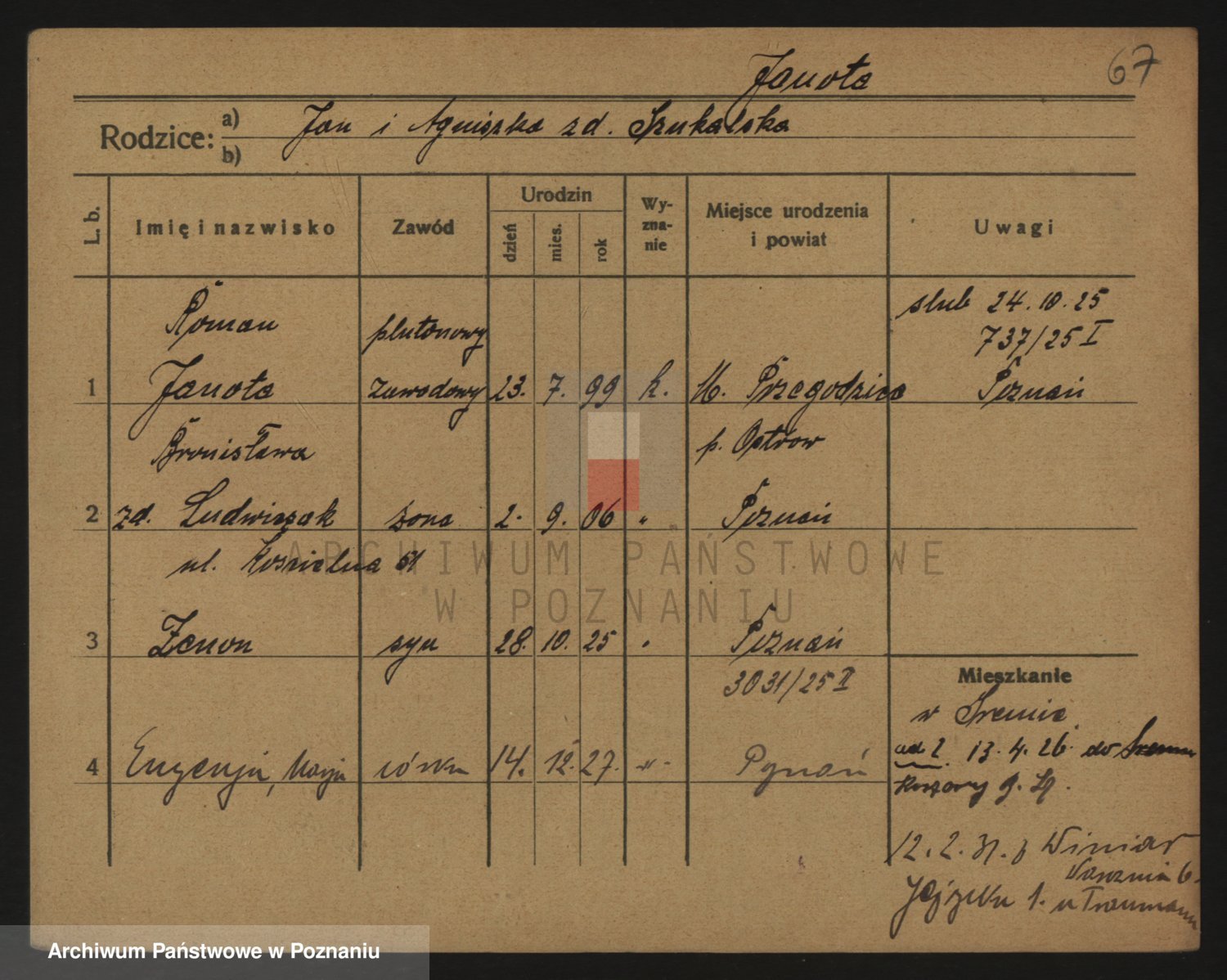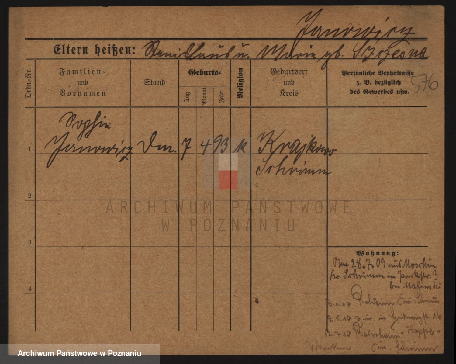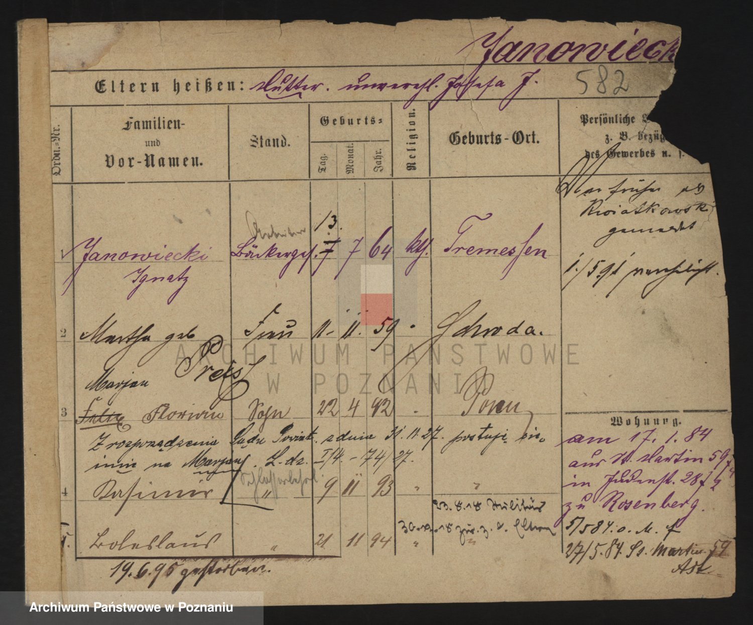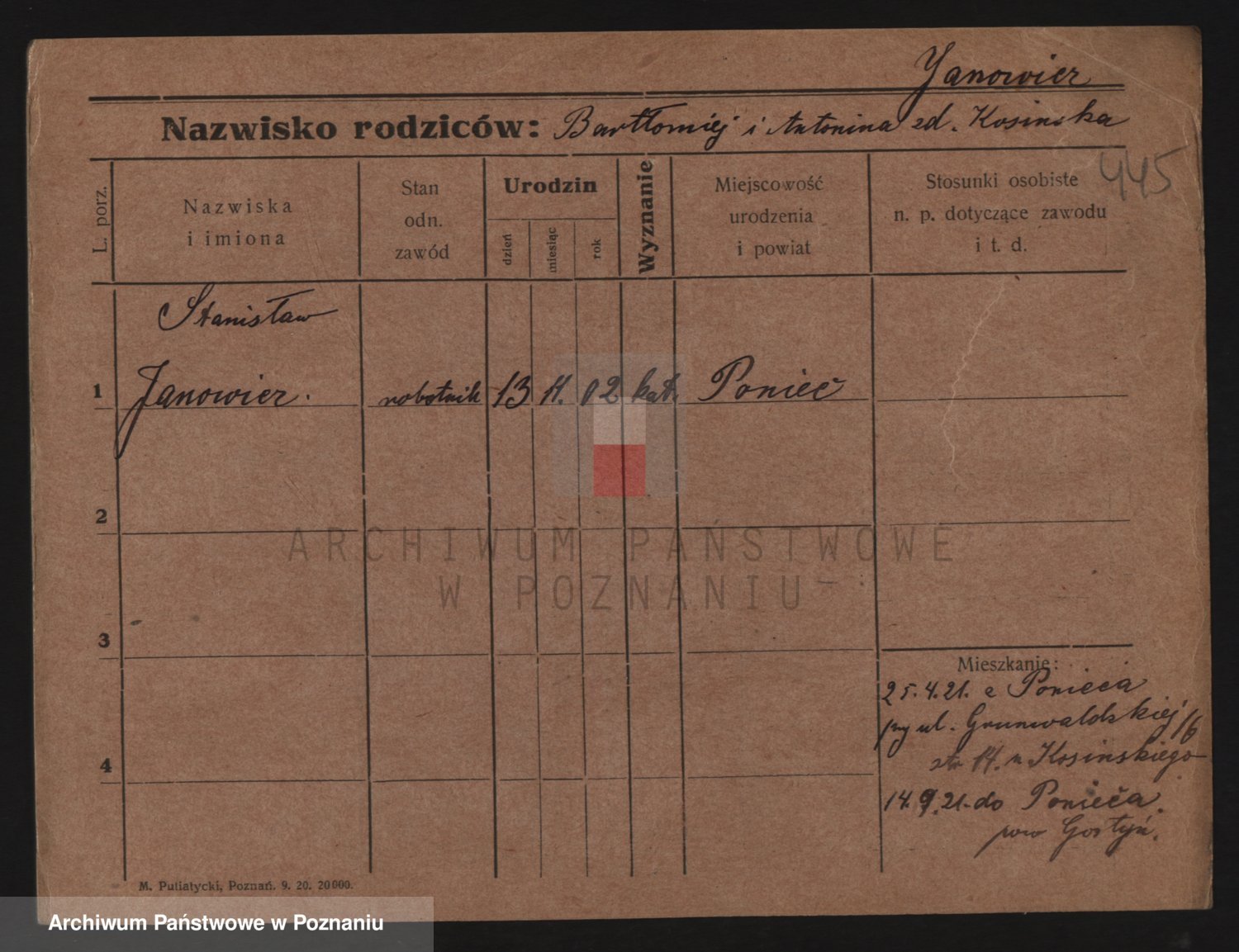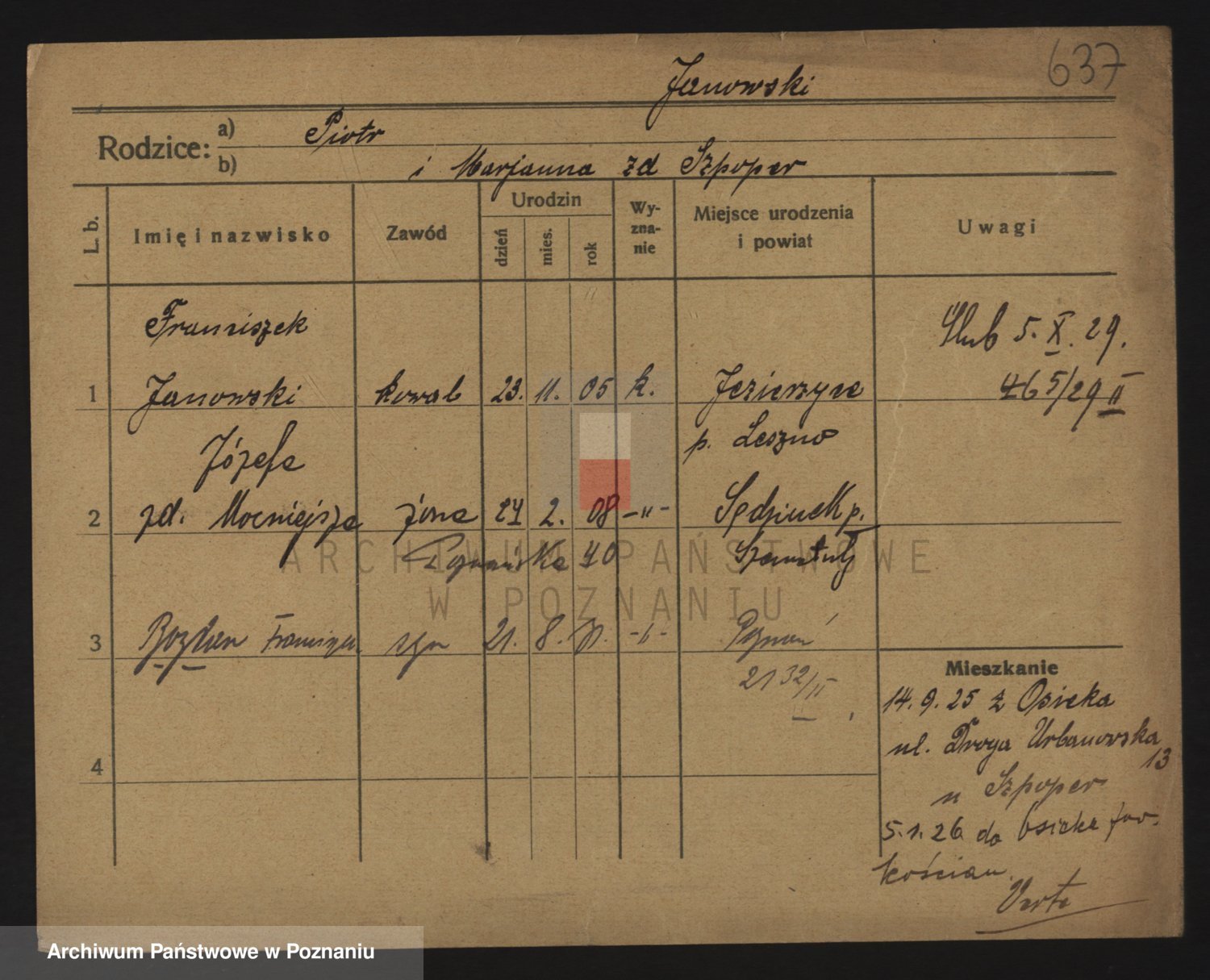 Podgląd karty osobowej dostępny jest po kliknięciu na nazwisko lub ikonkę karty. Można dokonywać powiększenia (ikony na górze) lub przechodzić między kolejnymi skanami (strzałki po bokach).
