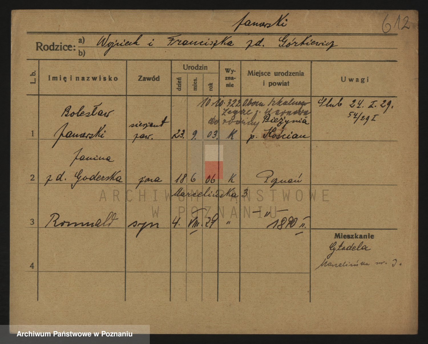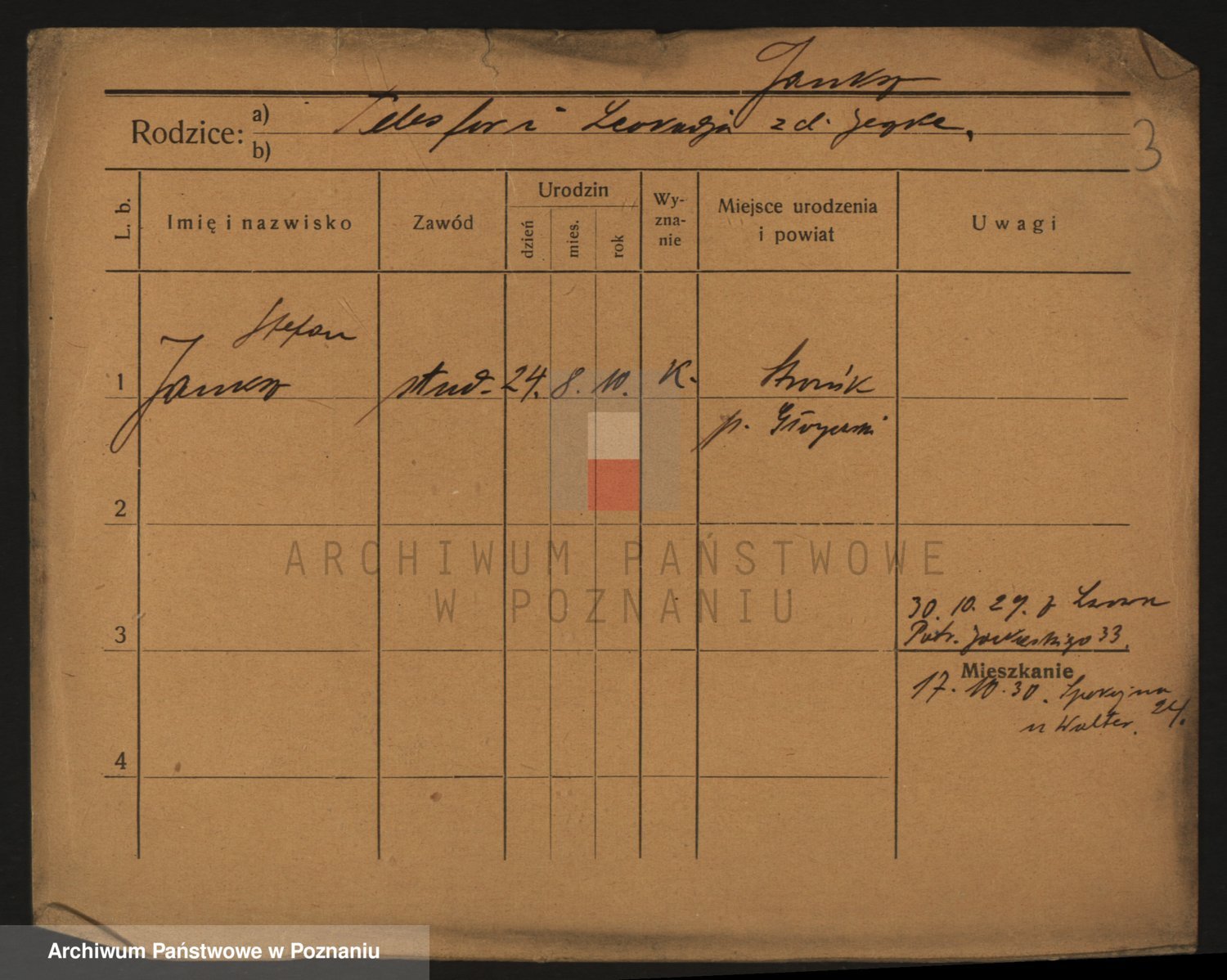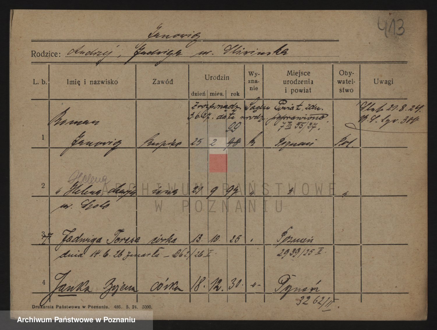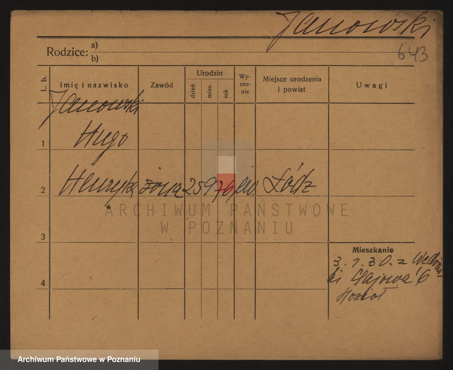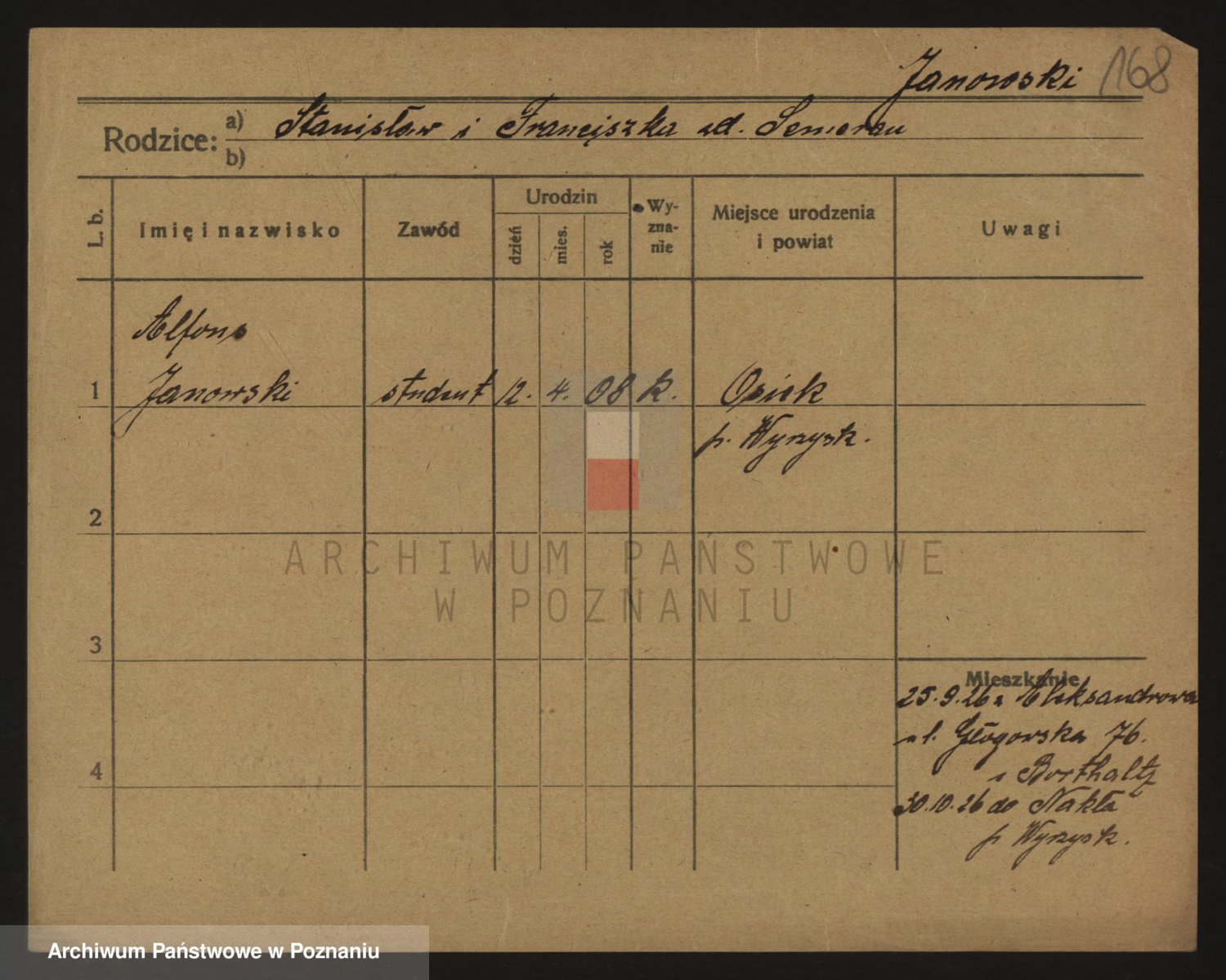 Podgląd karty osobowej dostępny jest po kliknięciu na nazwisko lub ikonkę karty. Można dokonywać powiększenia (ikony na górze) lub przechodzić między kolejnymi skanami (strzałki po bokach).
