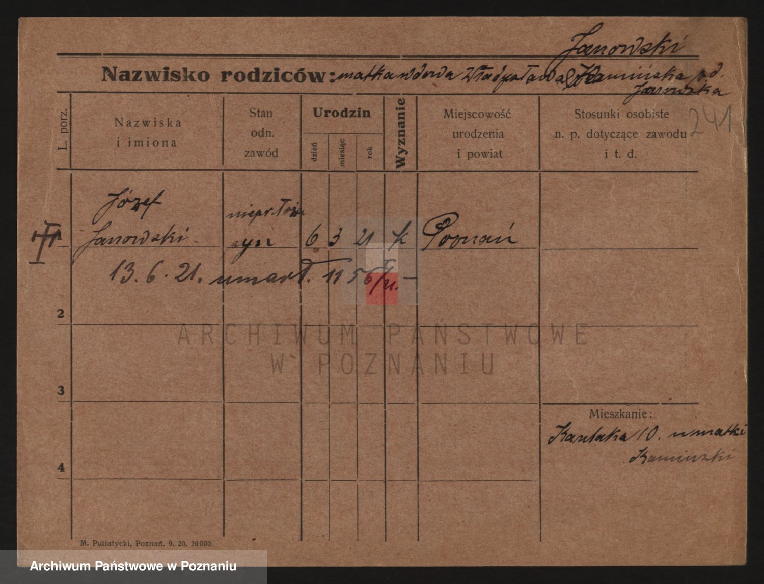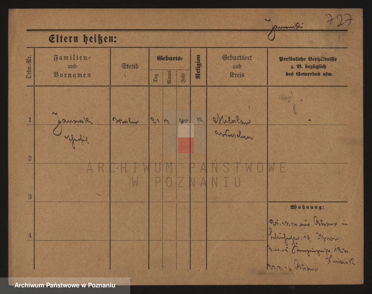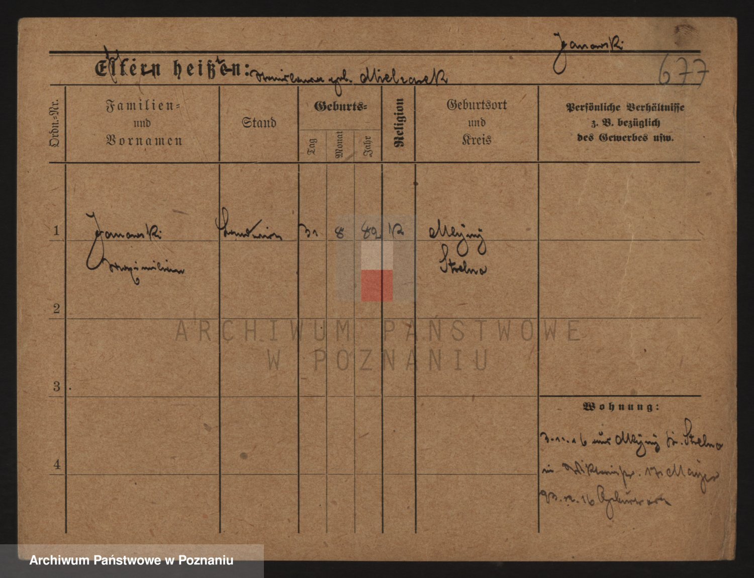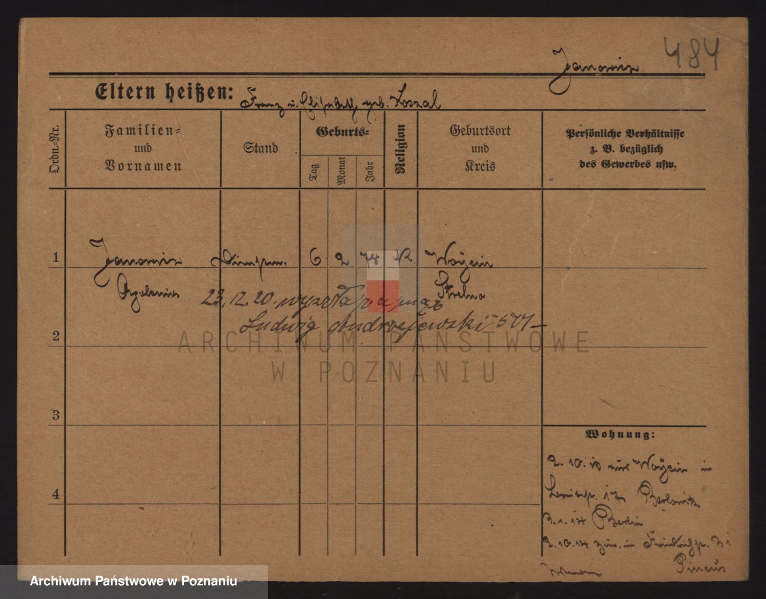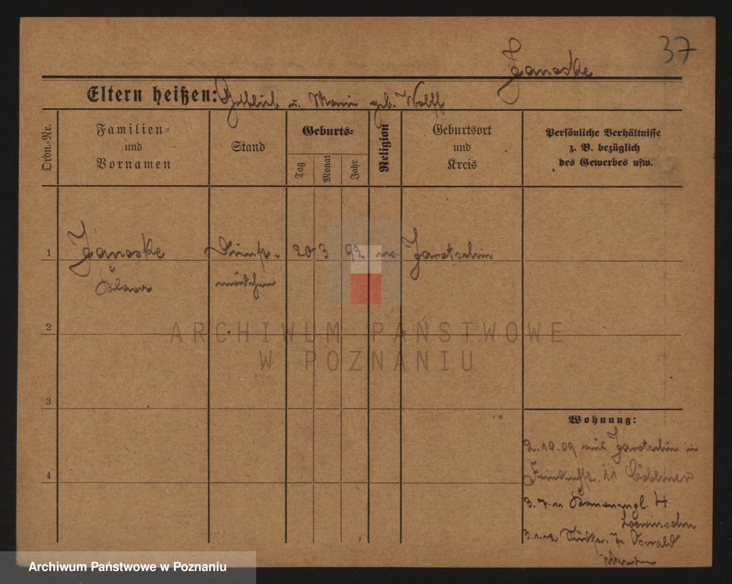 Podgląd karty osobowej dostępny jest po kliknięciu na nazwisko lub ikonkę karty. Można dokonywać powiększenia (ikony na górze) lub przechodzić między kolejnymi skanami (strzałki po bokach).