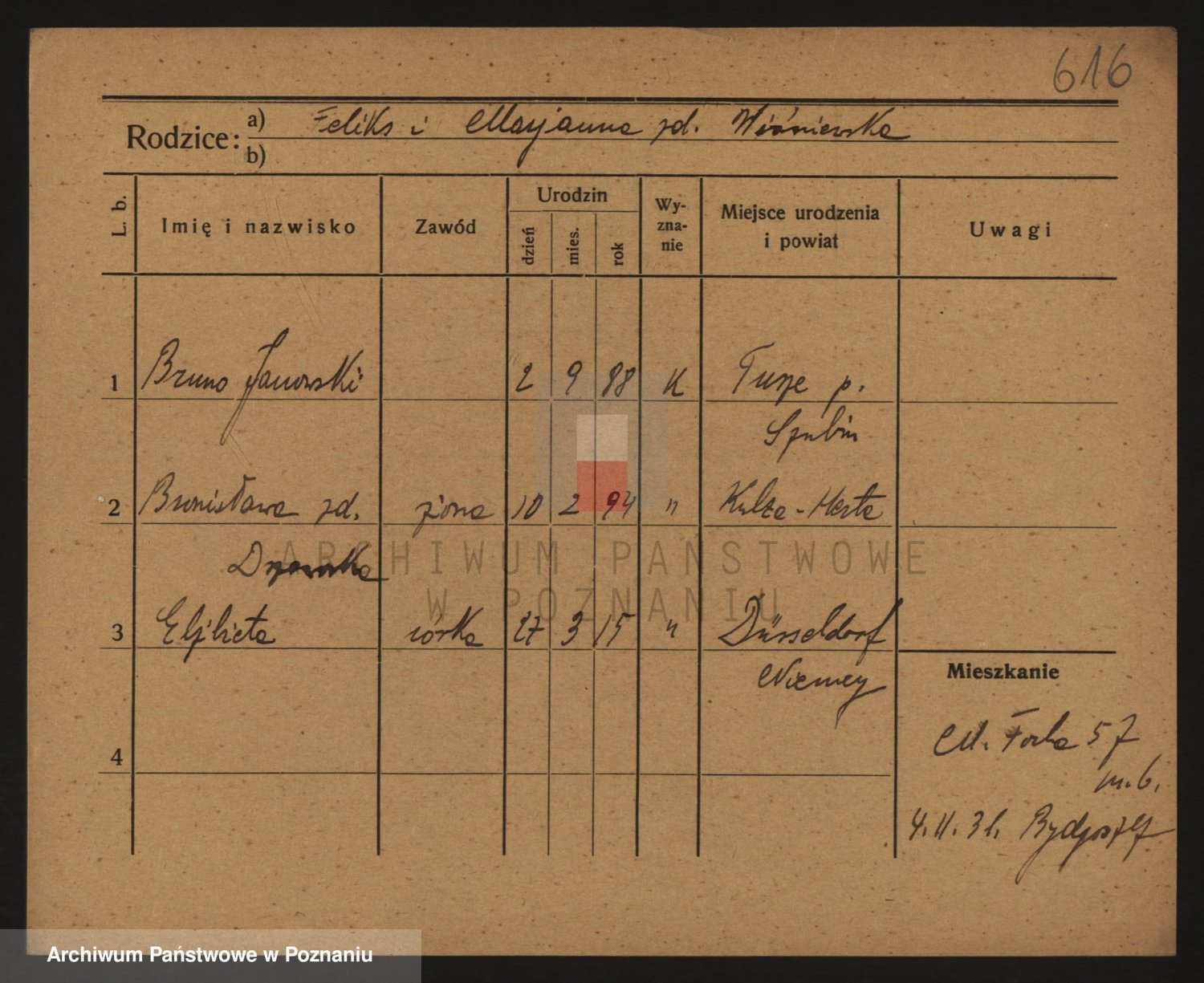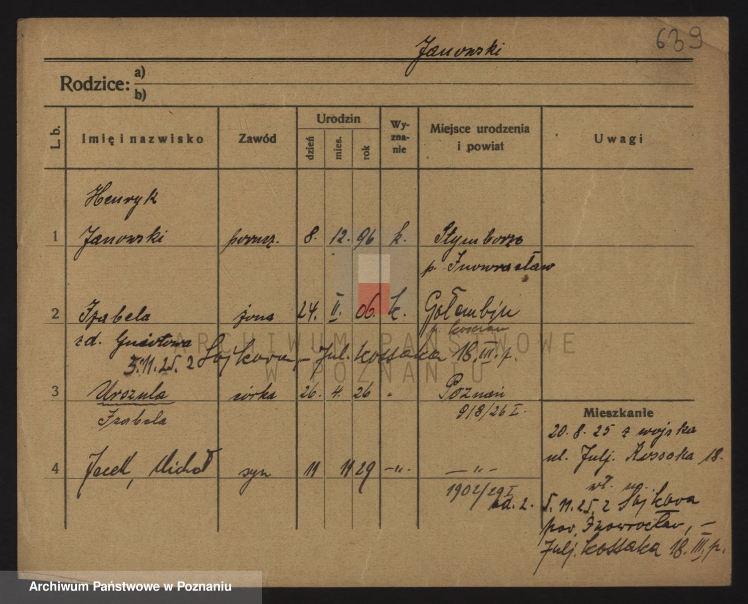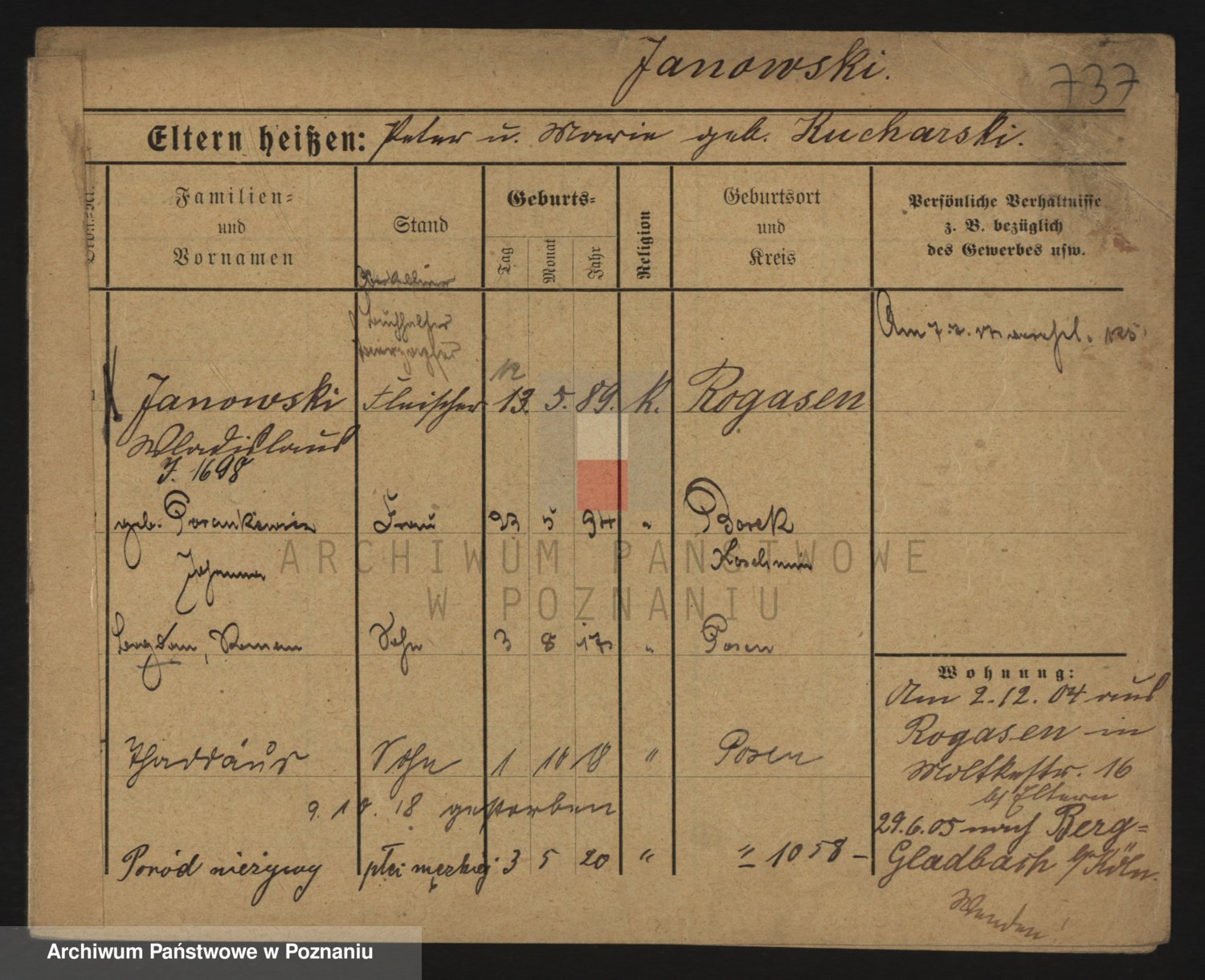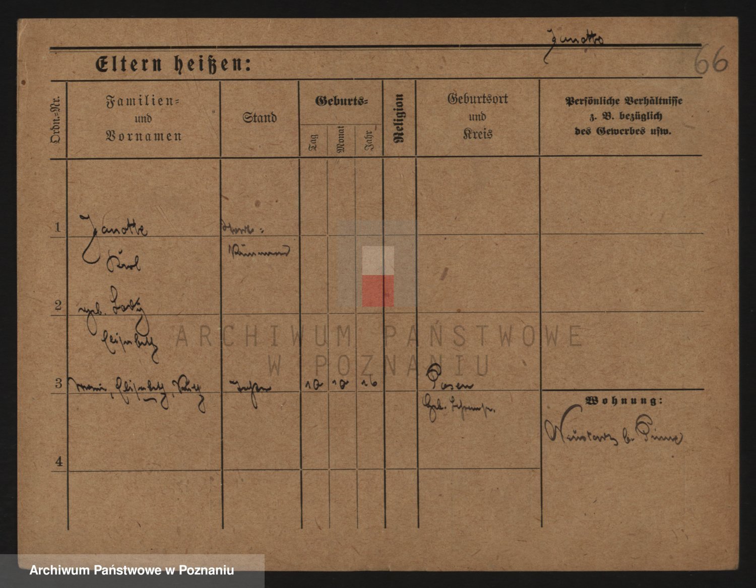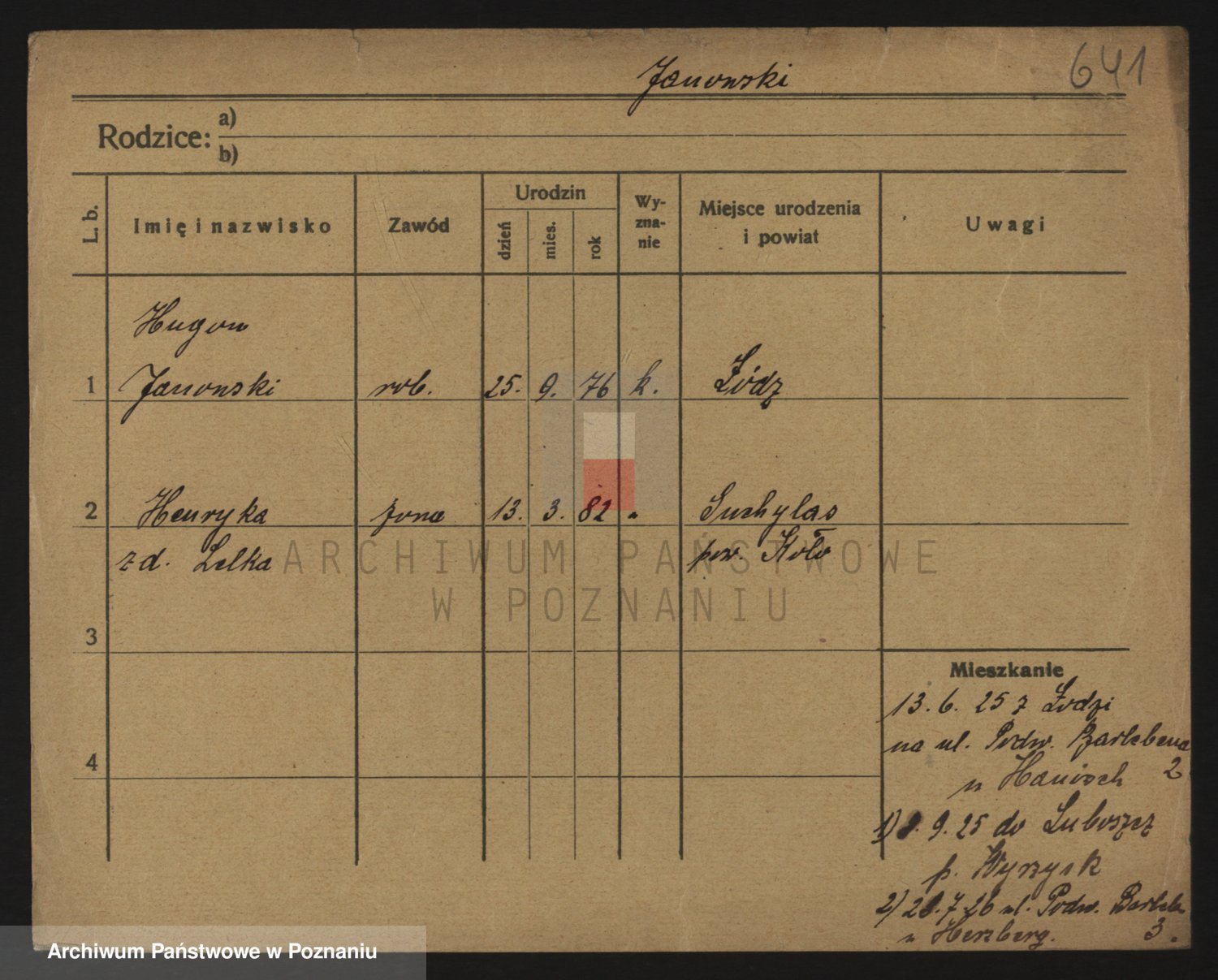 Podgląd karty osobowej dostępny jest po kliknięciu na nazwisko lub ikonkę karty. Można dokonywać powiększenia (ikony na górze) lub przechodzić między kolejnymi skanami (strzałki po bokach).