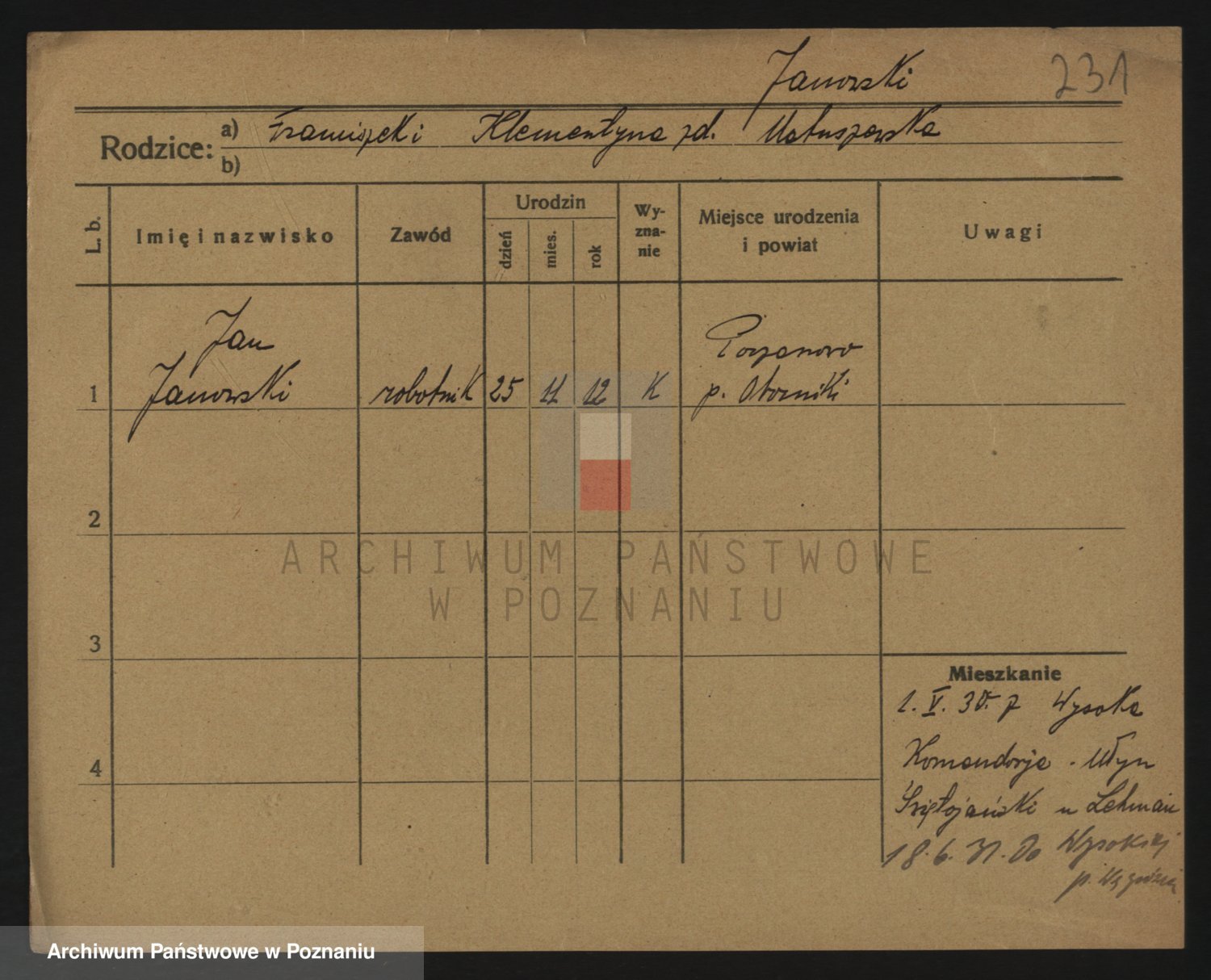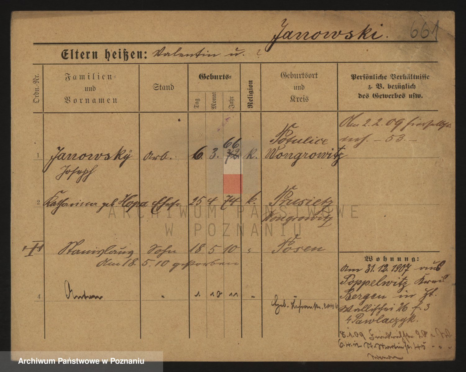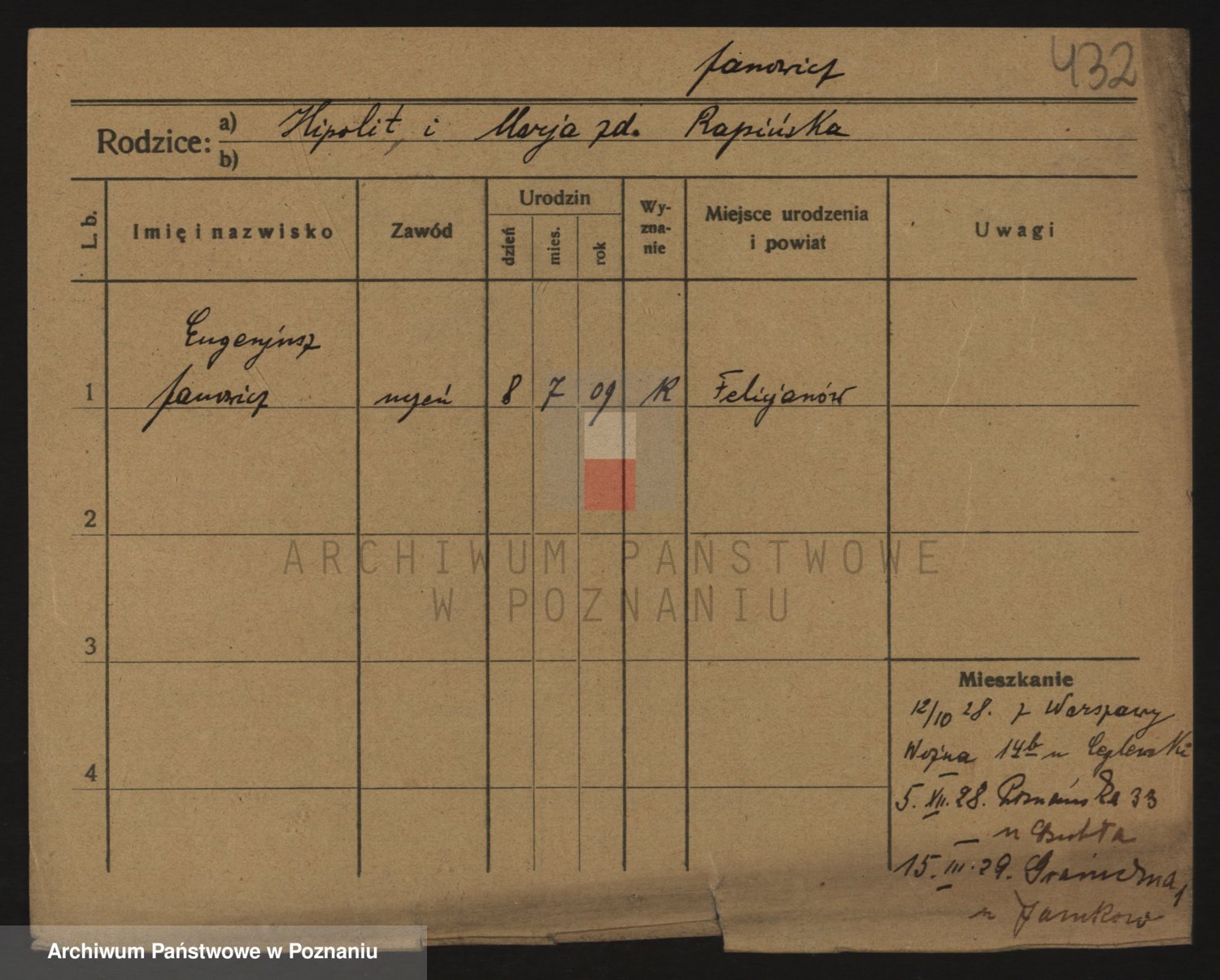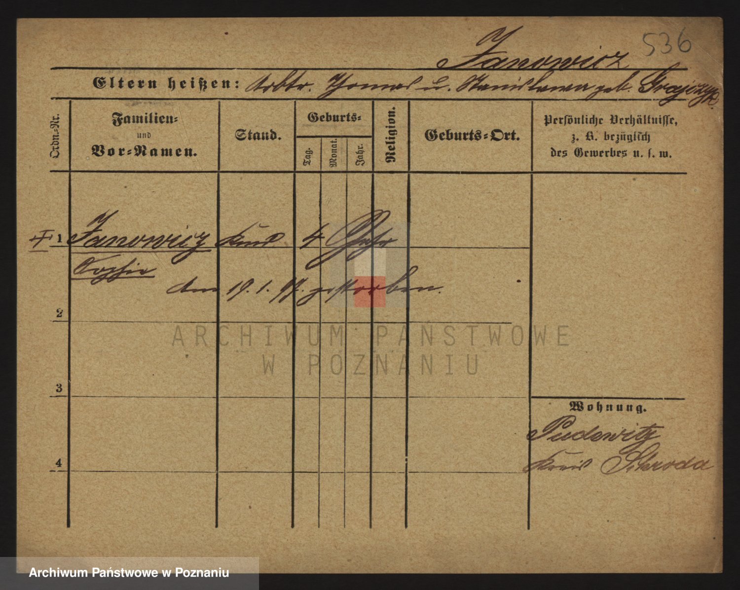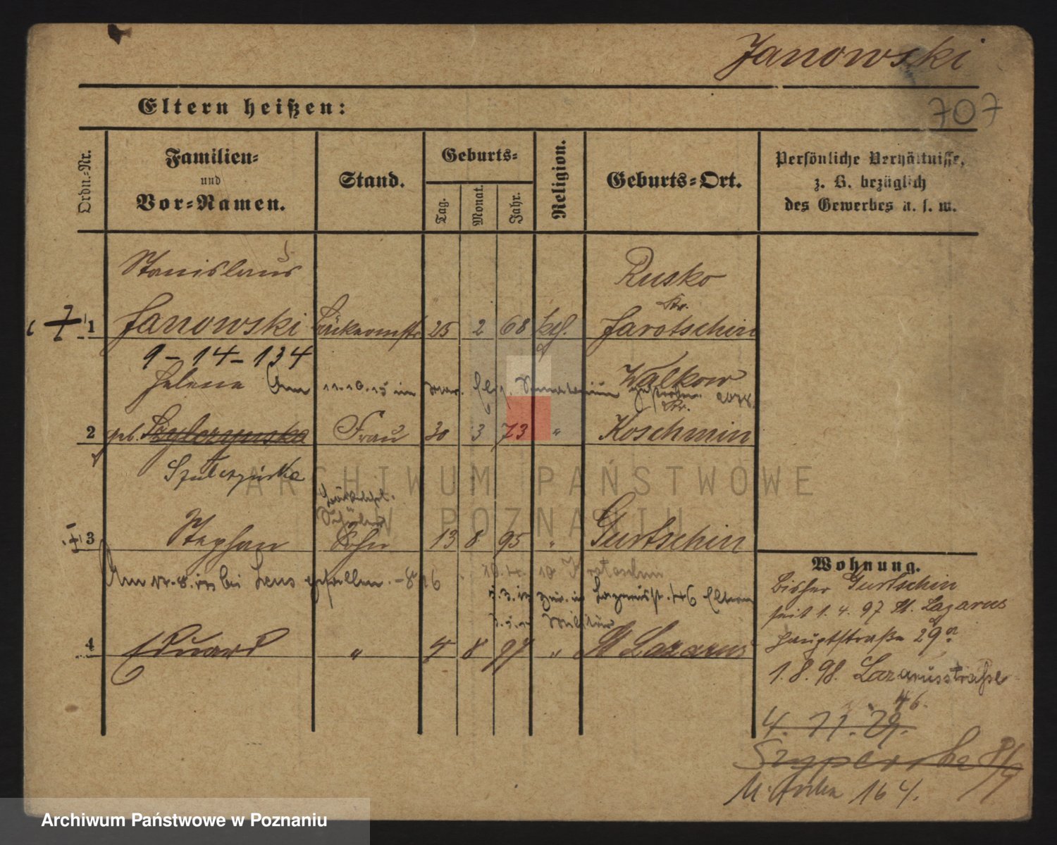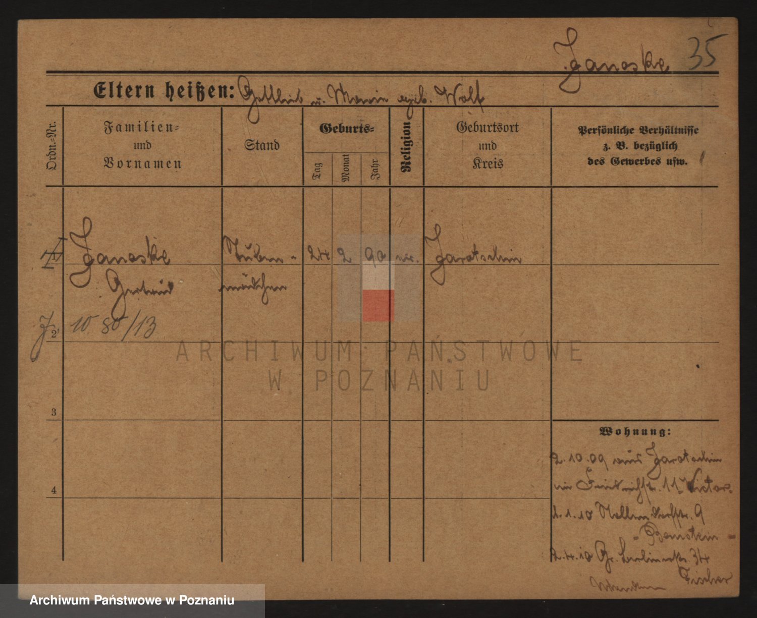 Podgląd karty osobowej dostępny jest po kliknięciu na nazwisko lub ikonkę karty. Można dokonywać powiększenia (ikony na górze) lub przechodzić między kolejnymi skanami (strzałki po bokach).