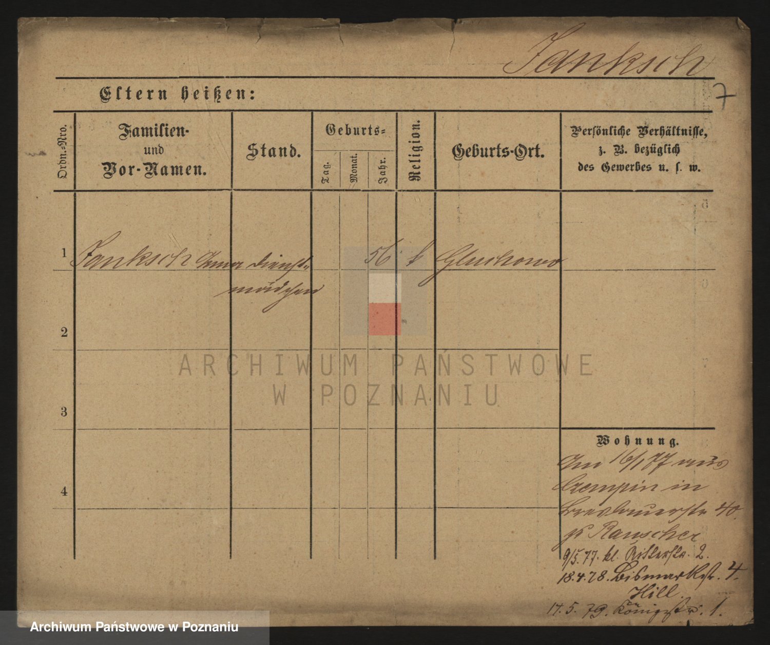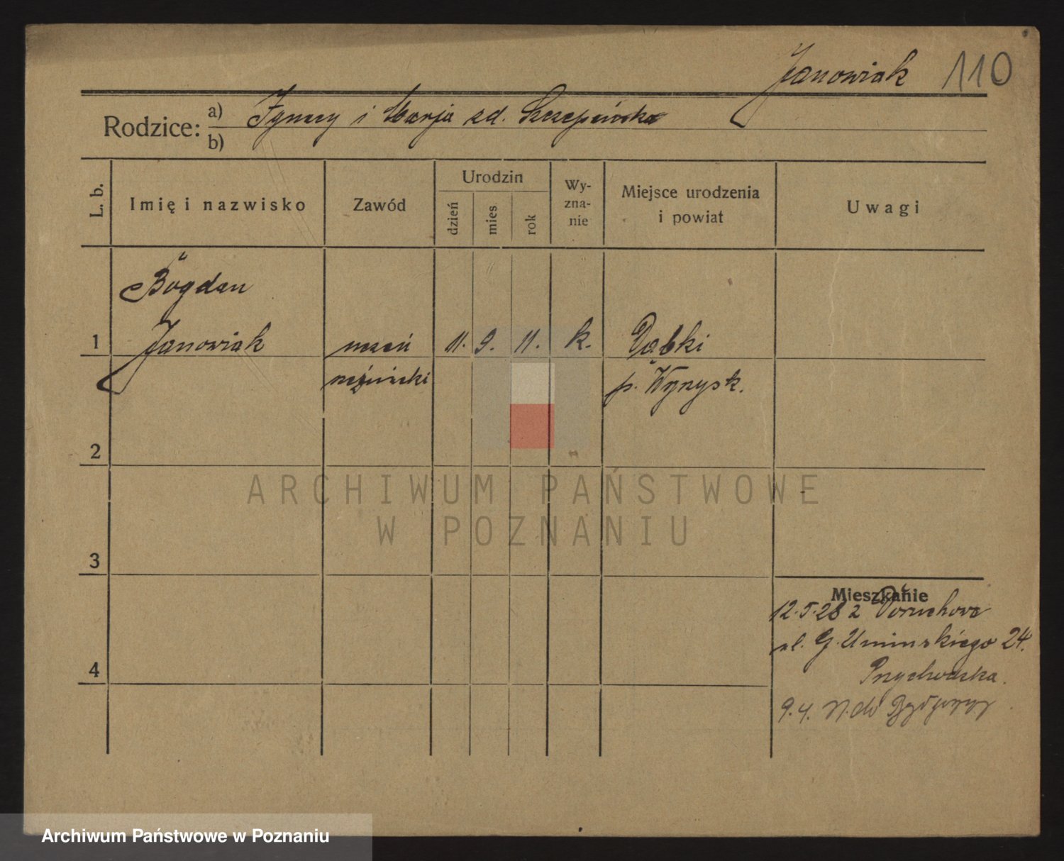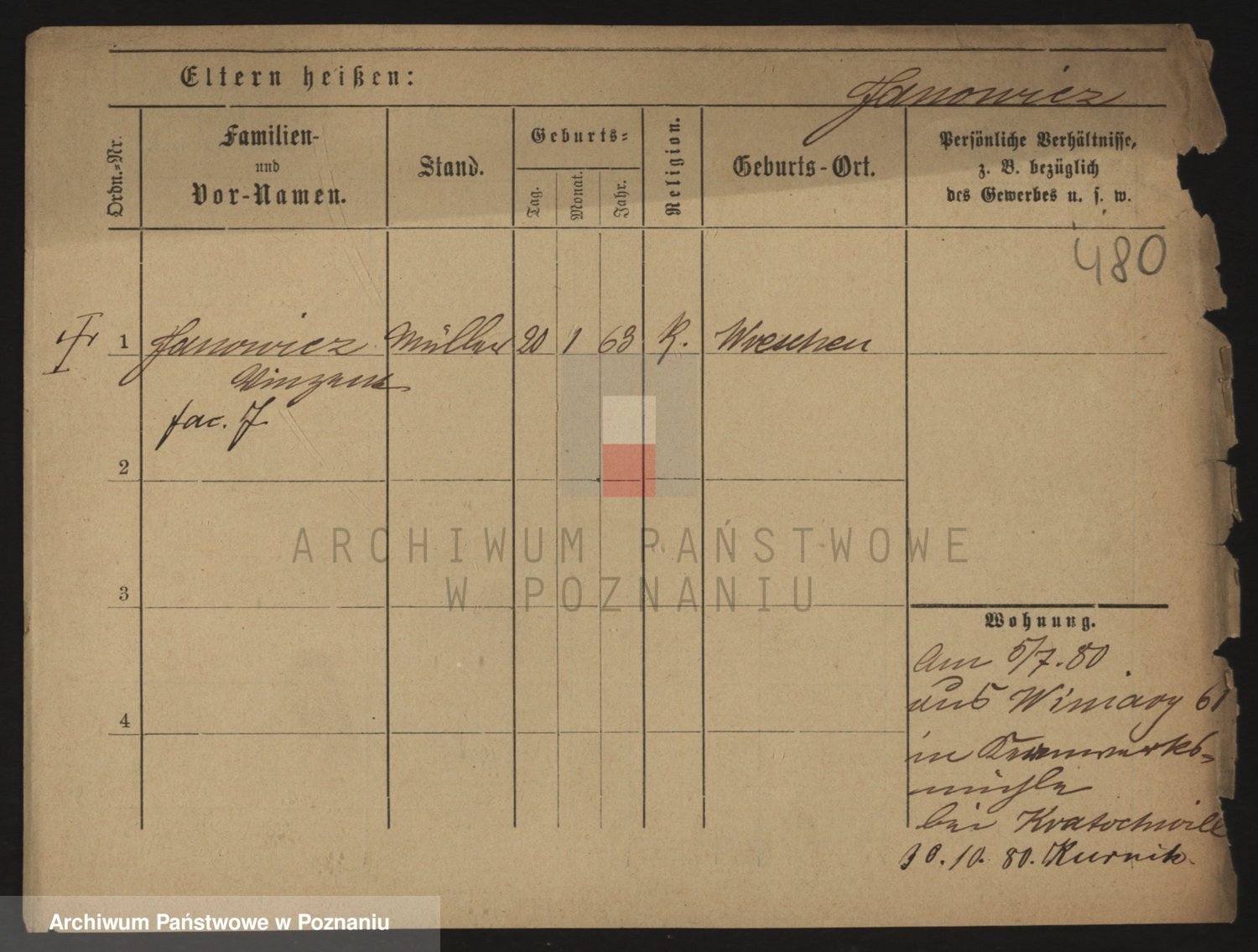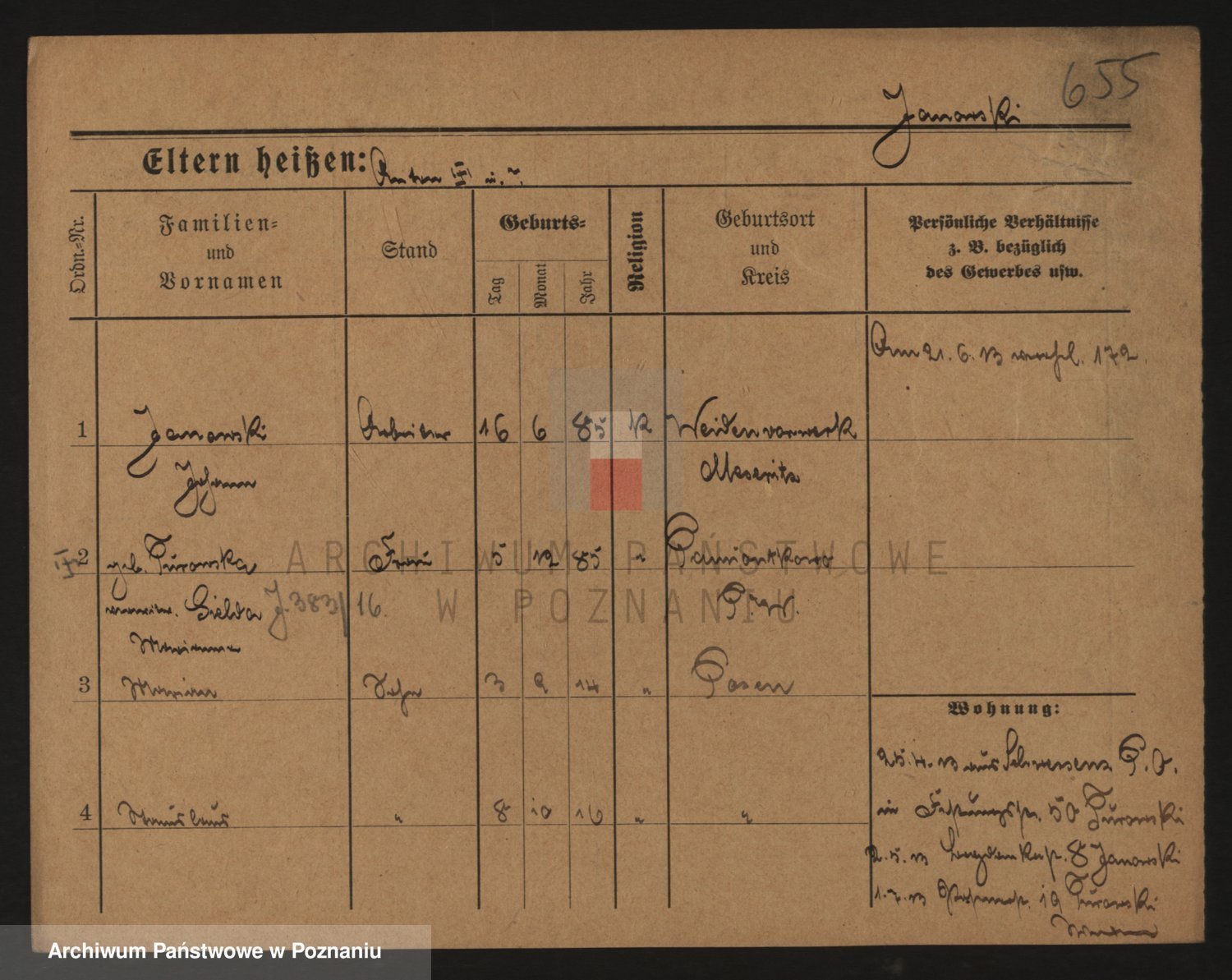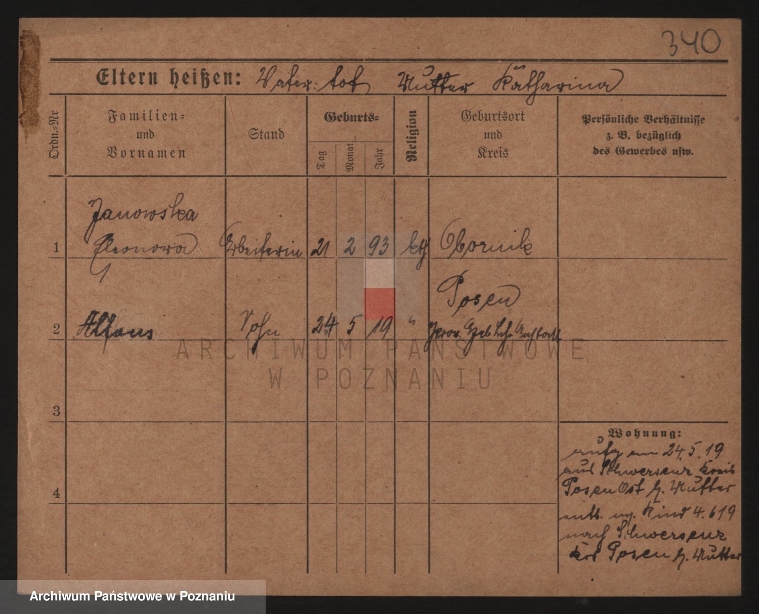 Podgląd karty osobowej dostępny jest po kliknięciu na nazwisko lub ikonkę karty. Można dokonywać powiększenia (ikony na górze) lub przechodzić między kolejnymi skanami (strzałki po bokach).