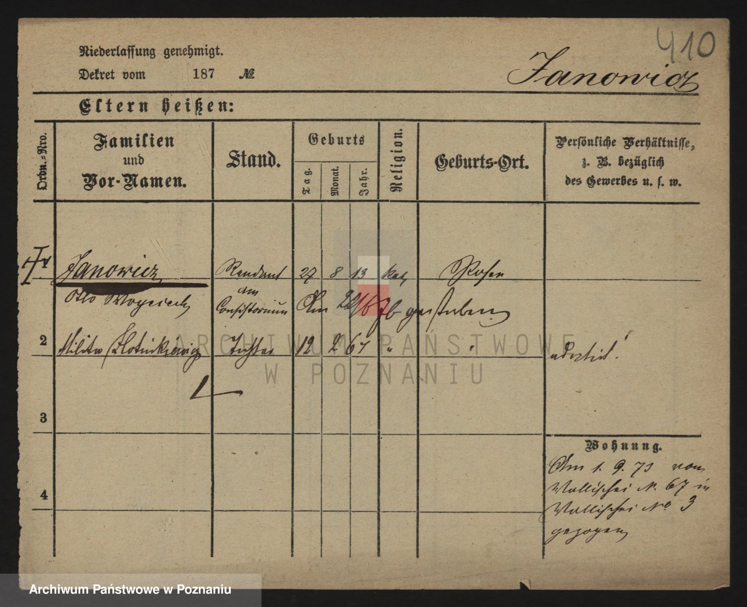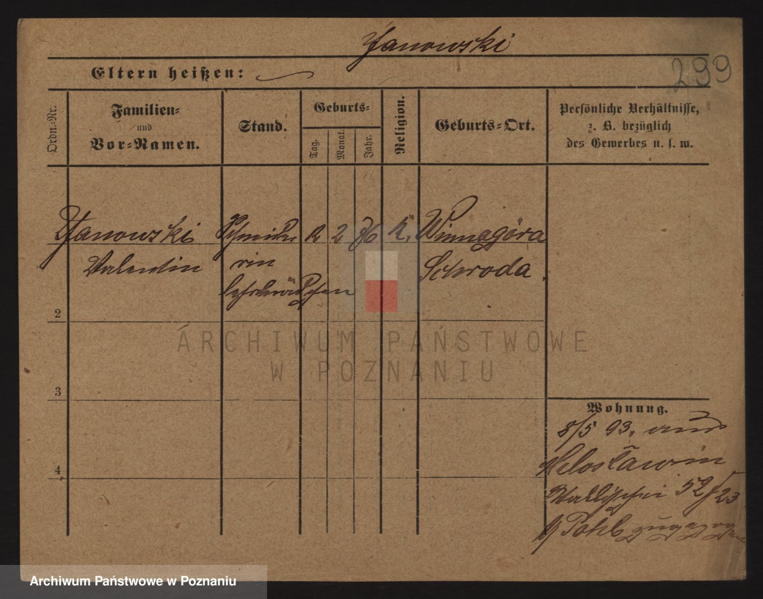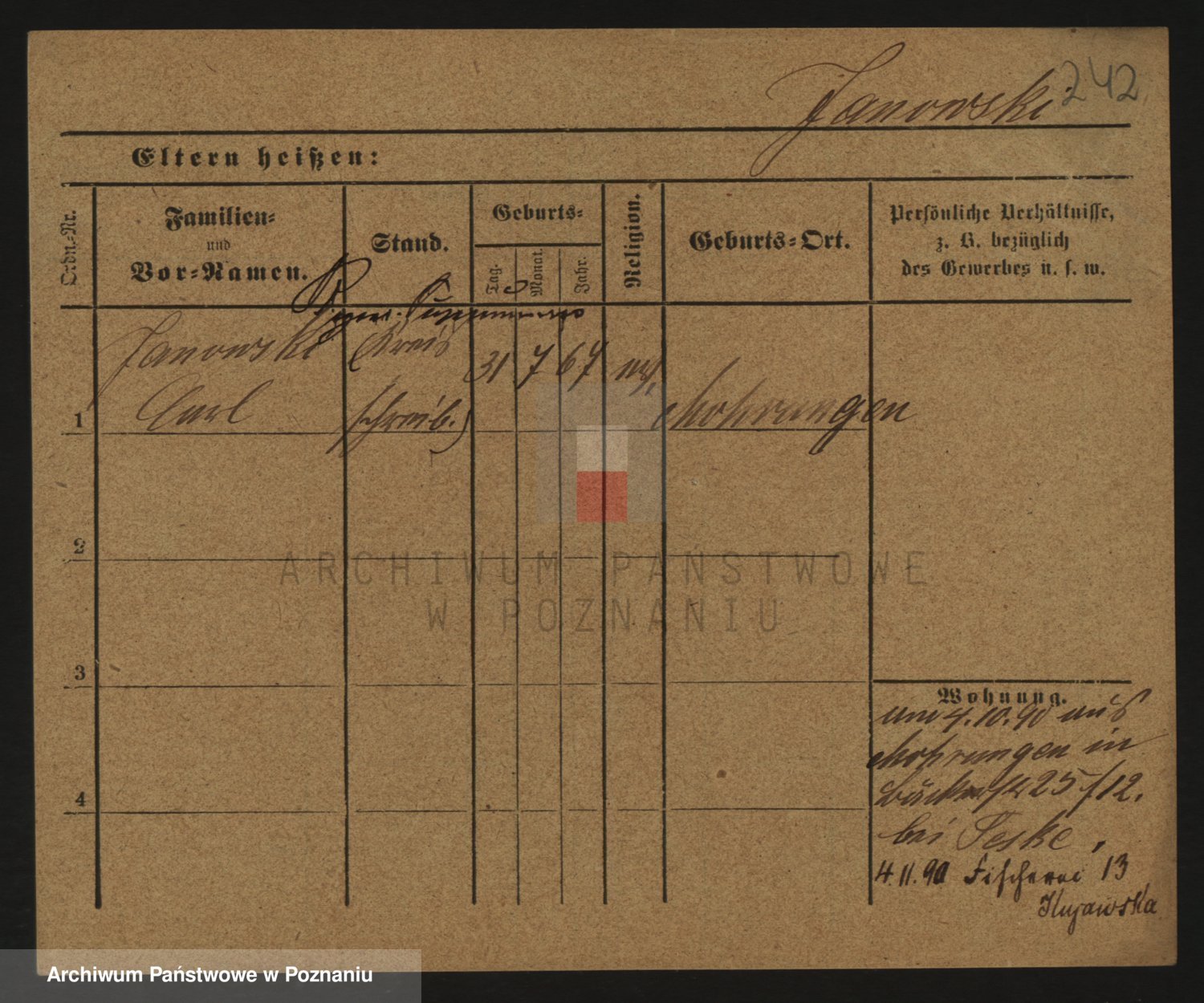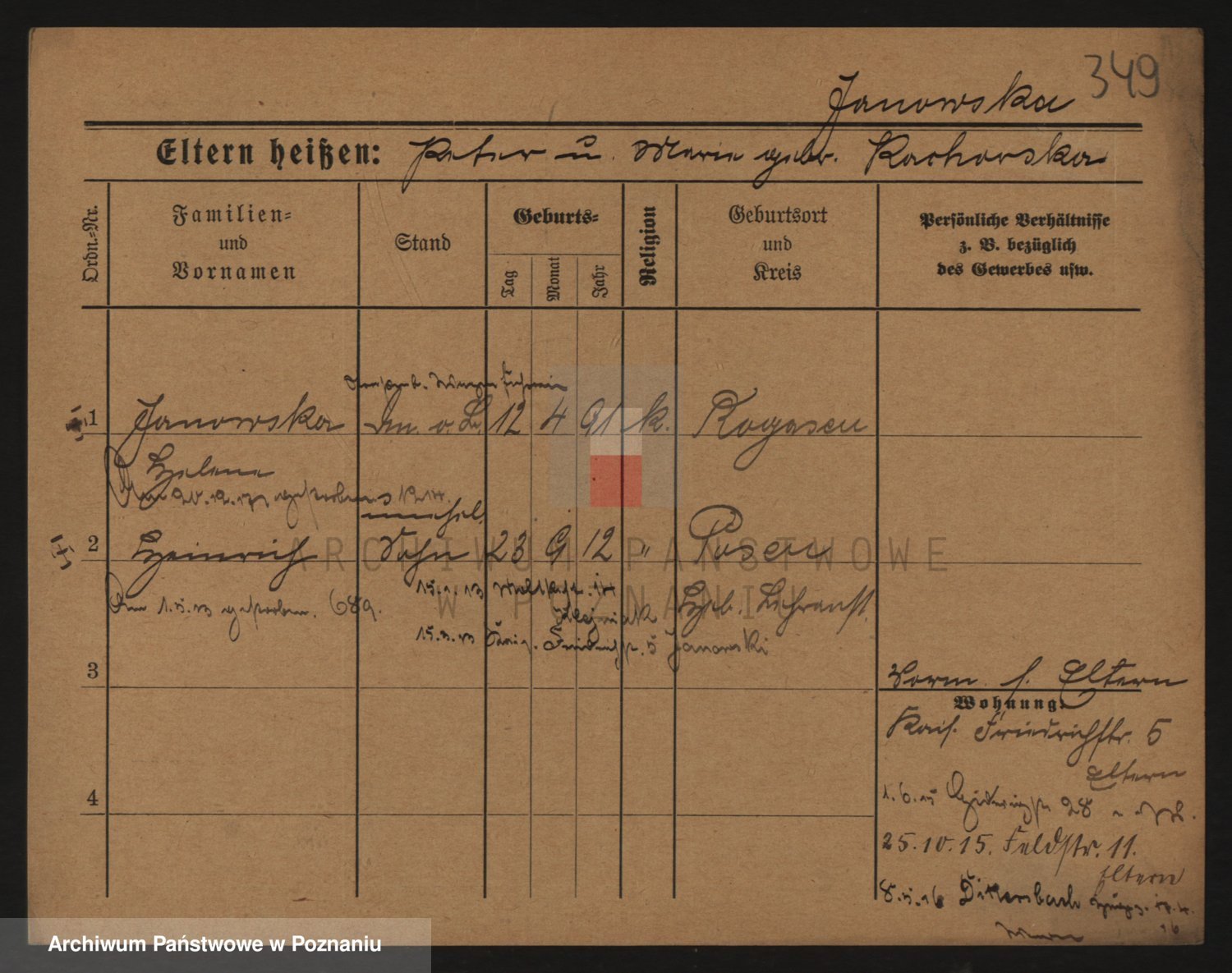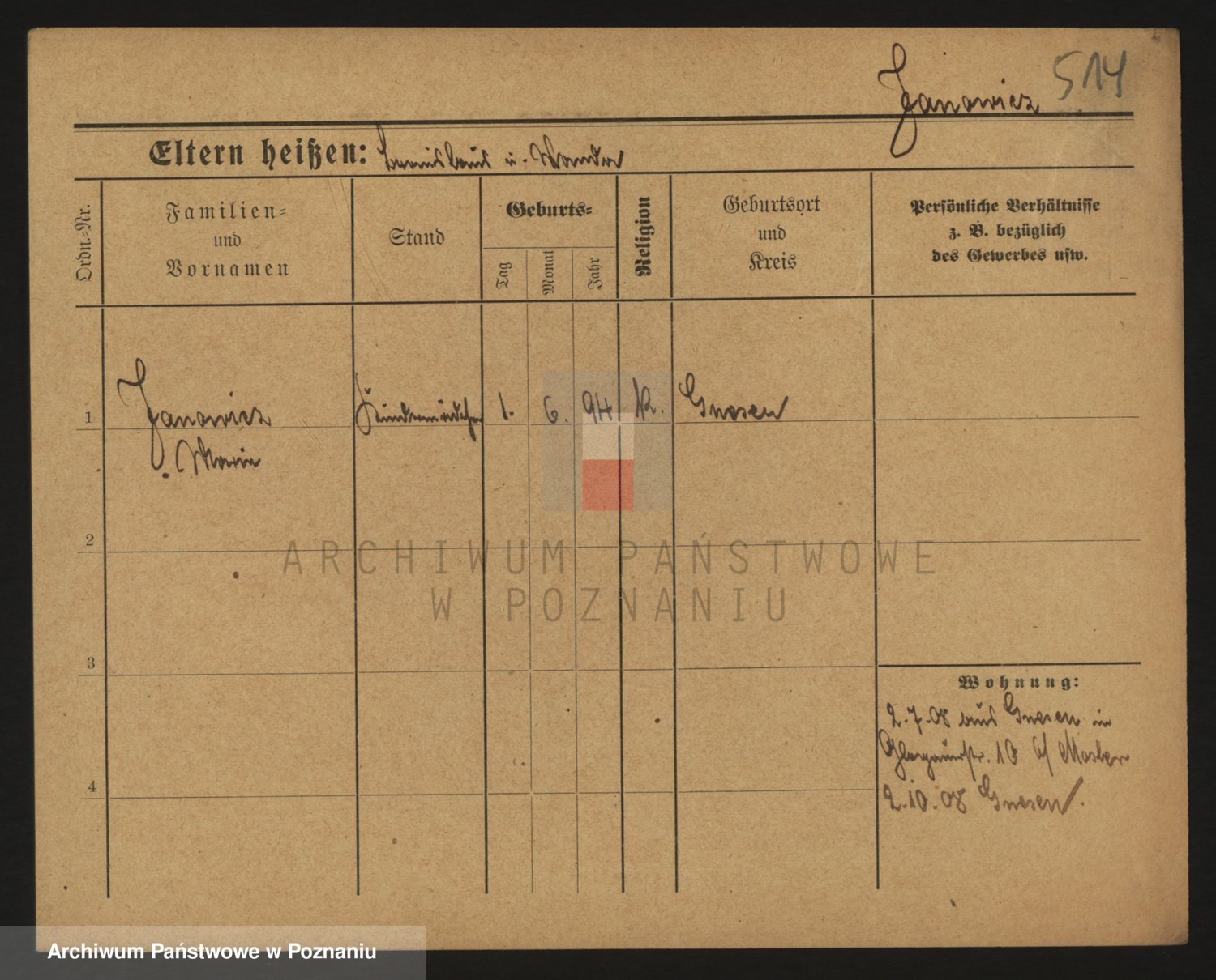 Podgląd karty osobowej dostępny jest po kliknięciu na nazwisko lub ikonkę karty. Można dokonywać powiększenia (ikony na górze) lub przechodzić między kolejnymi skanami (strzałki po bokach).