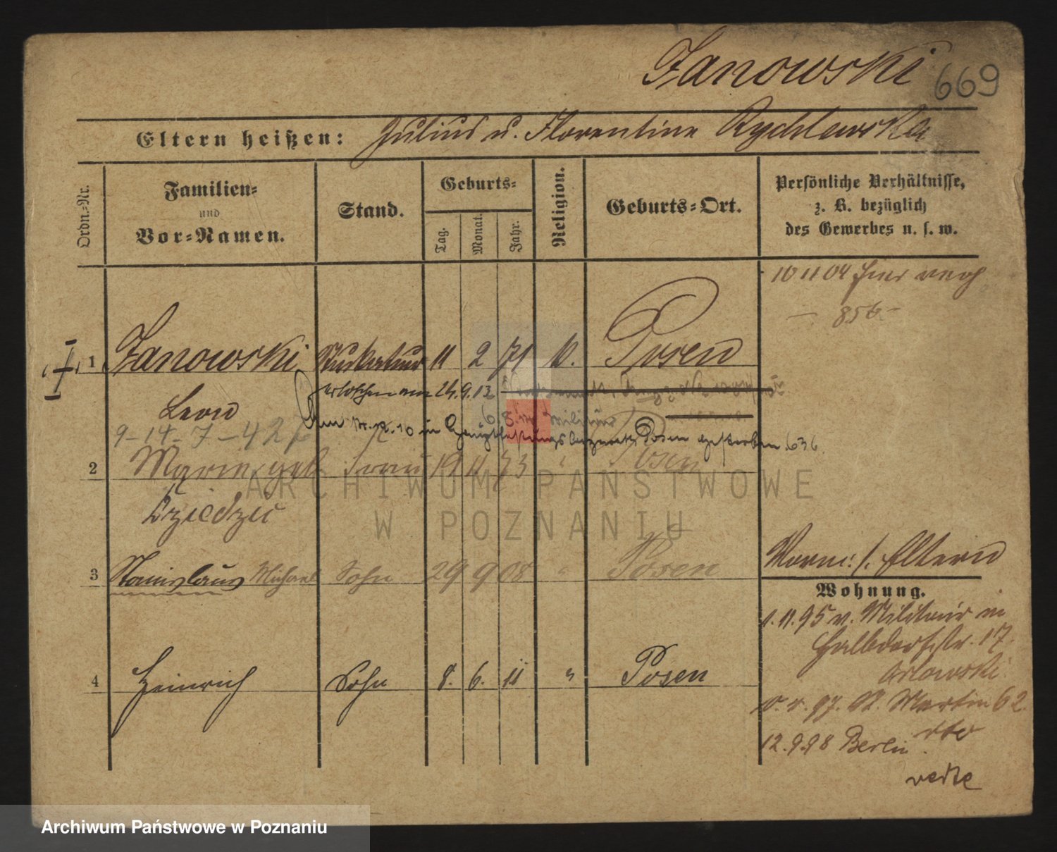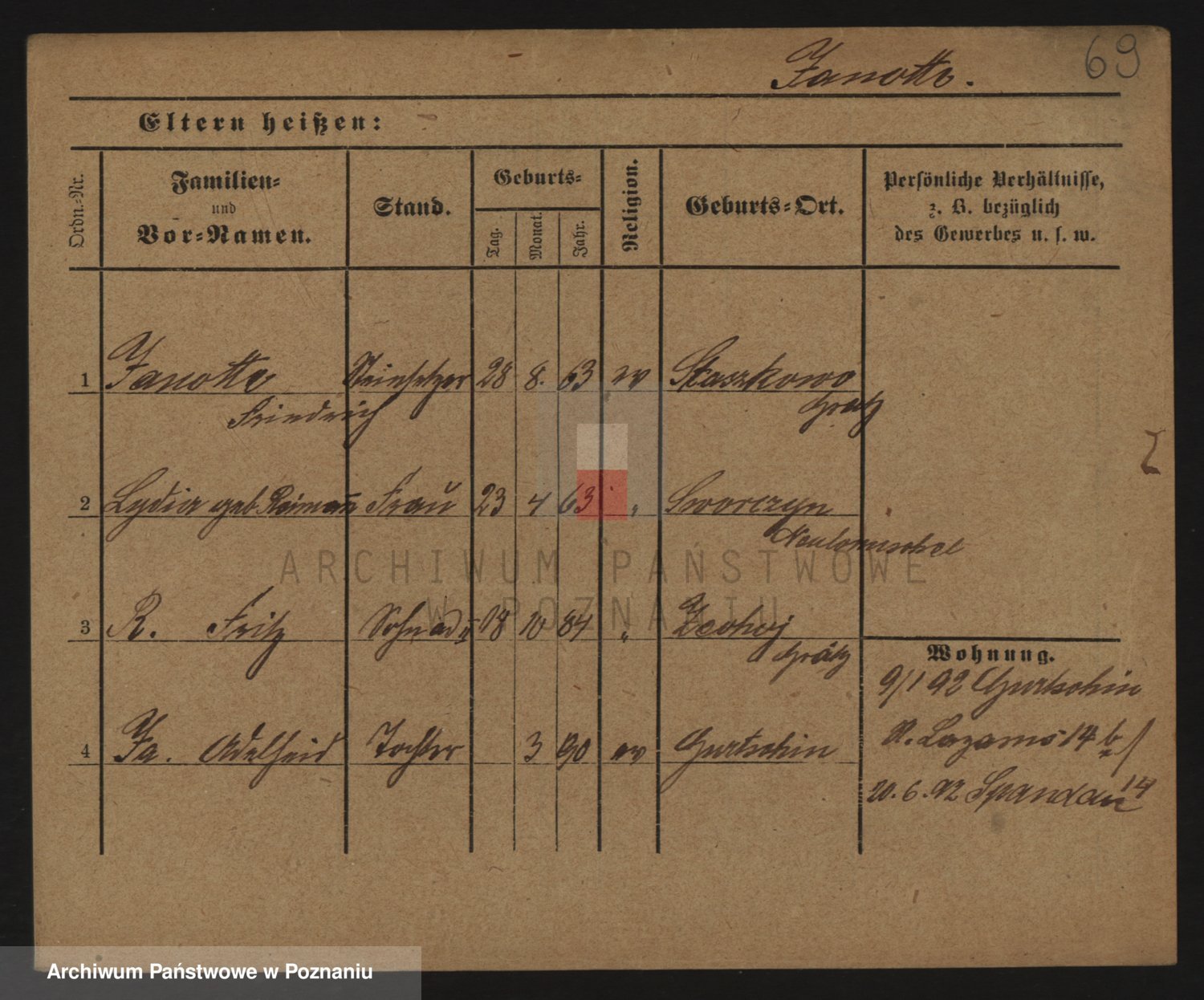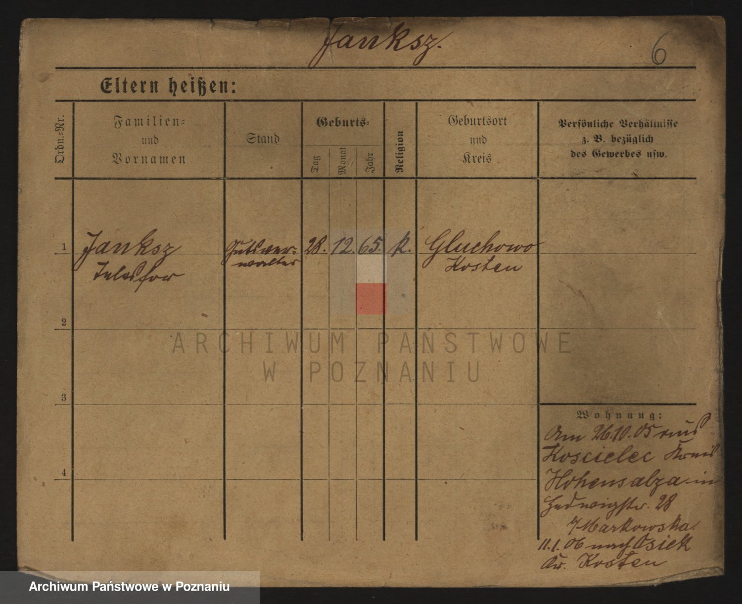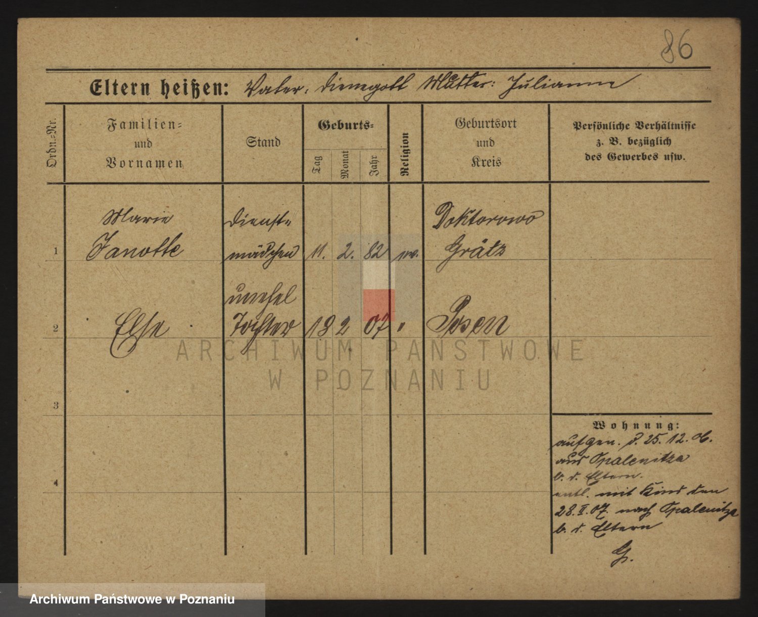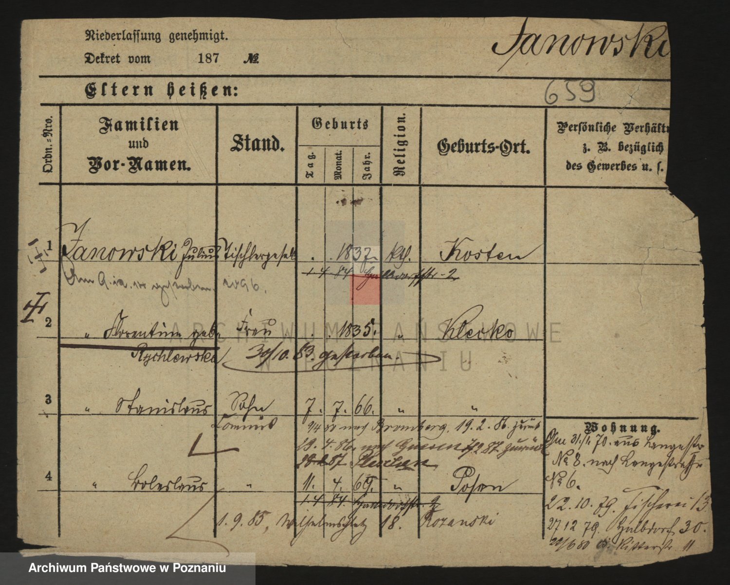 Podgląd karty osobowej dostępny jest po kliknięciu na nazwisko lub ikonkę karty. Można dokonywać powiększenia (ikony na górze) lub przechodzić między kolejnymi skanami (strzałki po bokach).