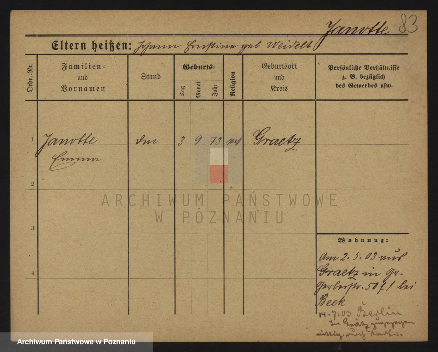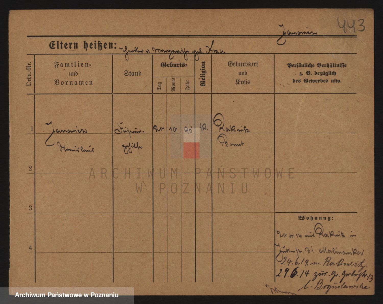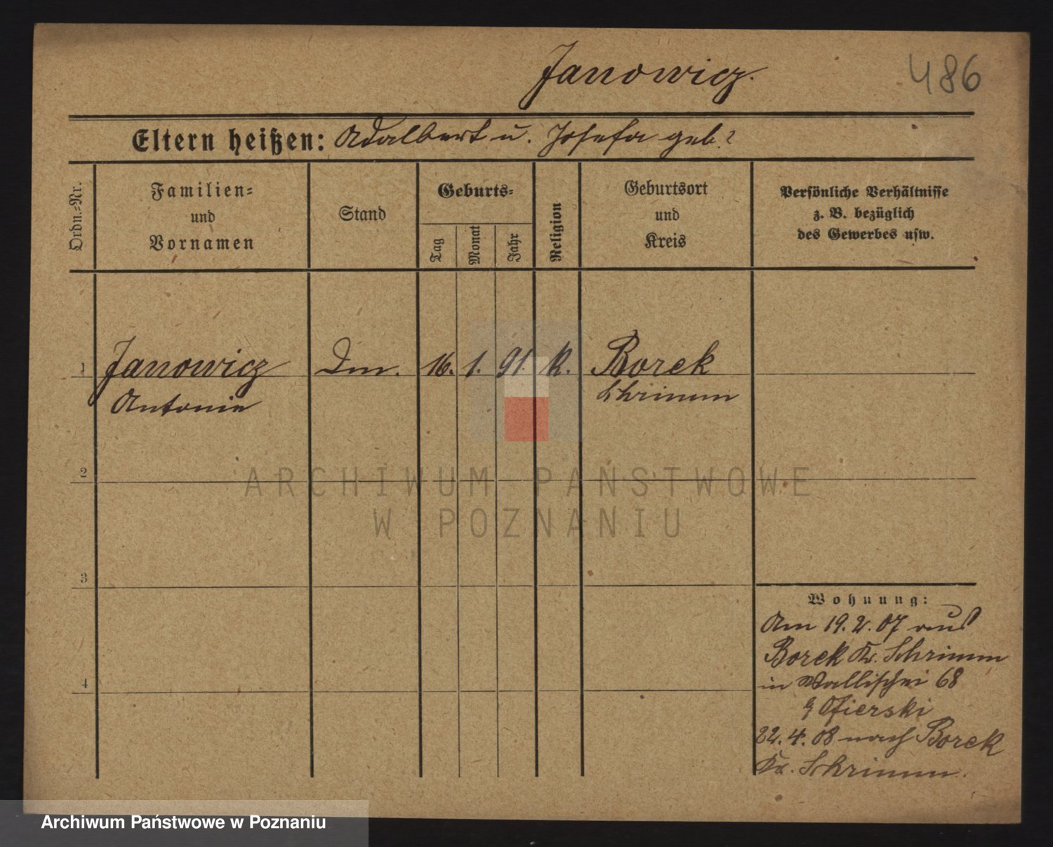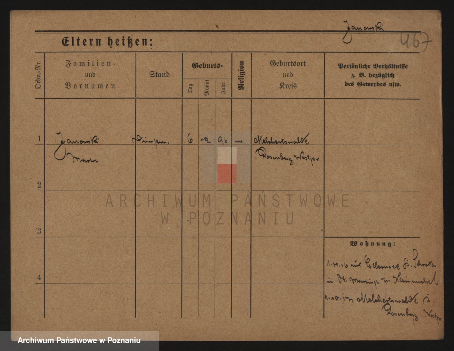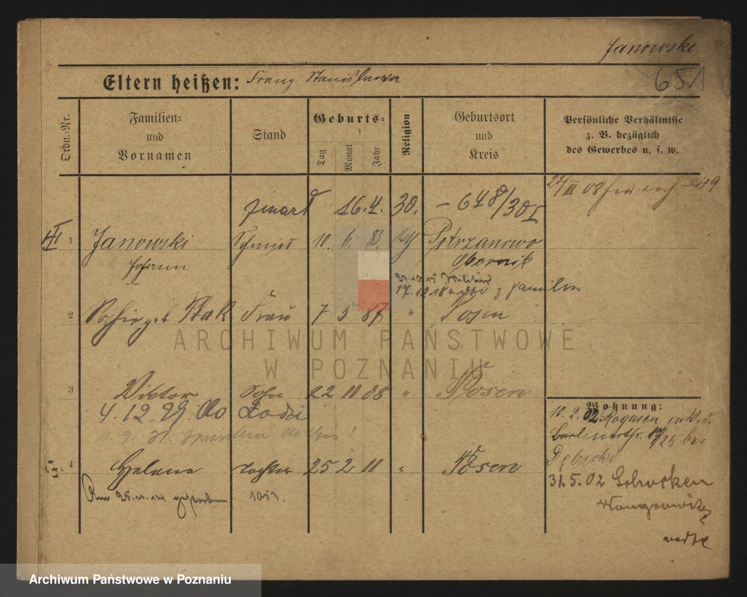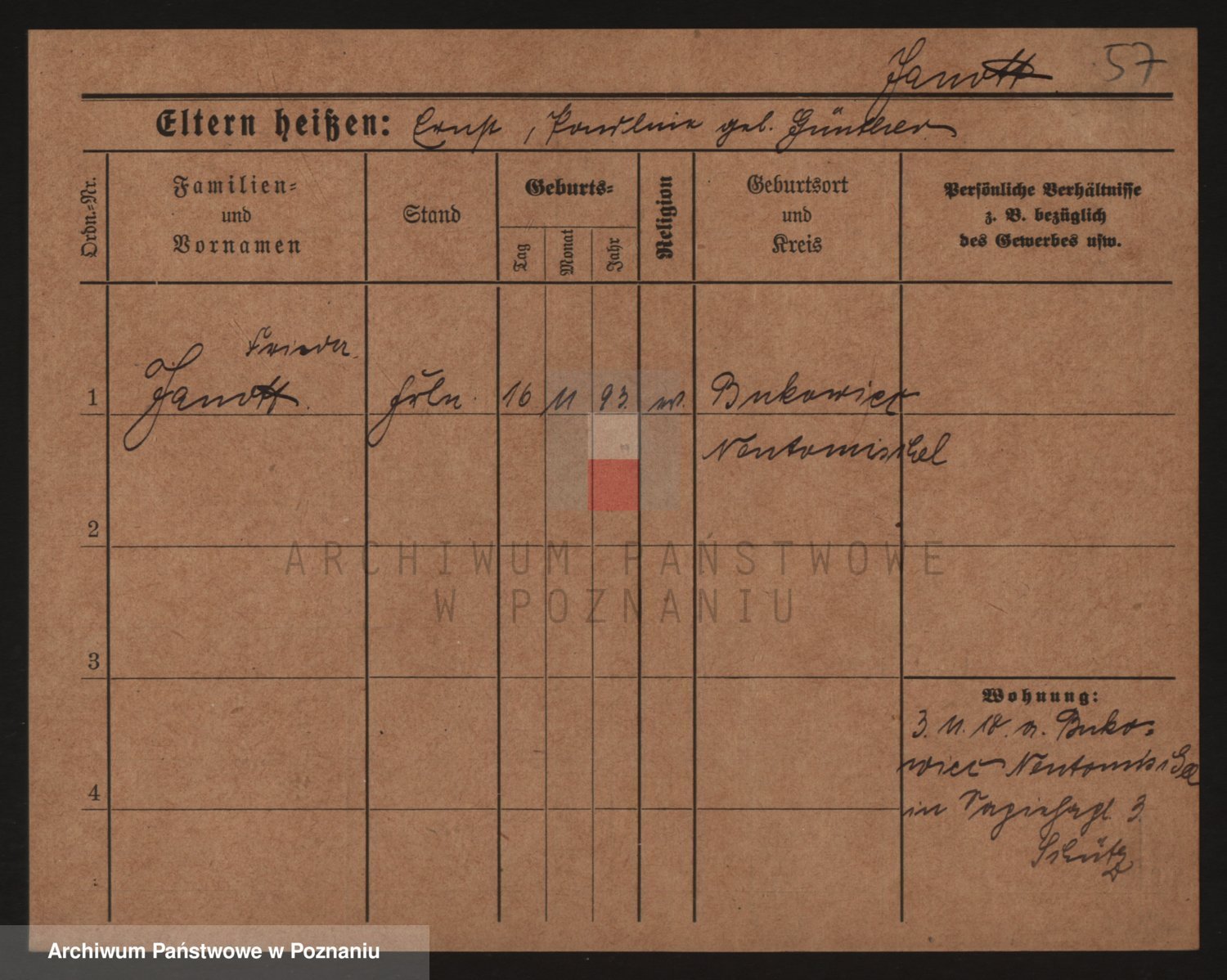 Podgląd karty osobowej dostępny jest po kliknięciu na nazwisko lub ikonkę karty. Można dokonywać powiększenia (ikony na górze) lub przechodzić między kolejnymi skanami (strzałki po bokach).