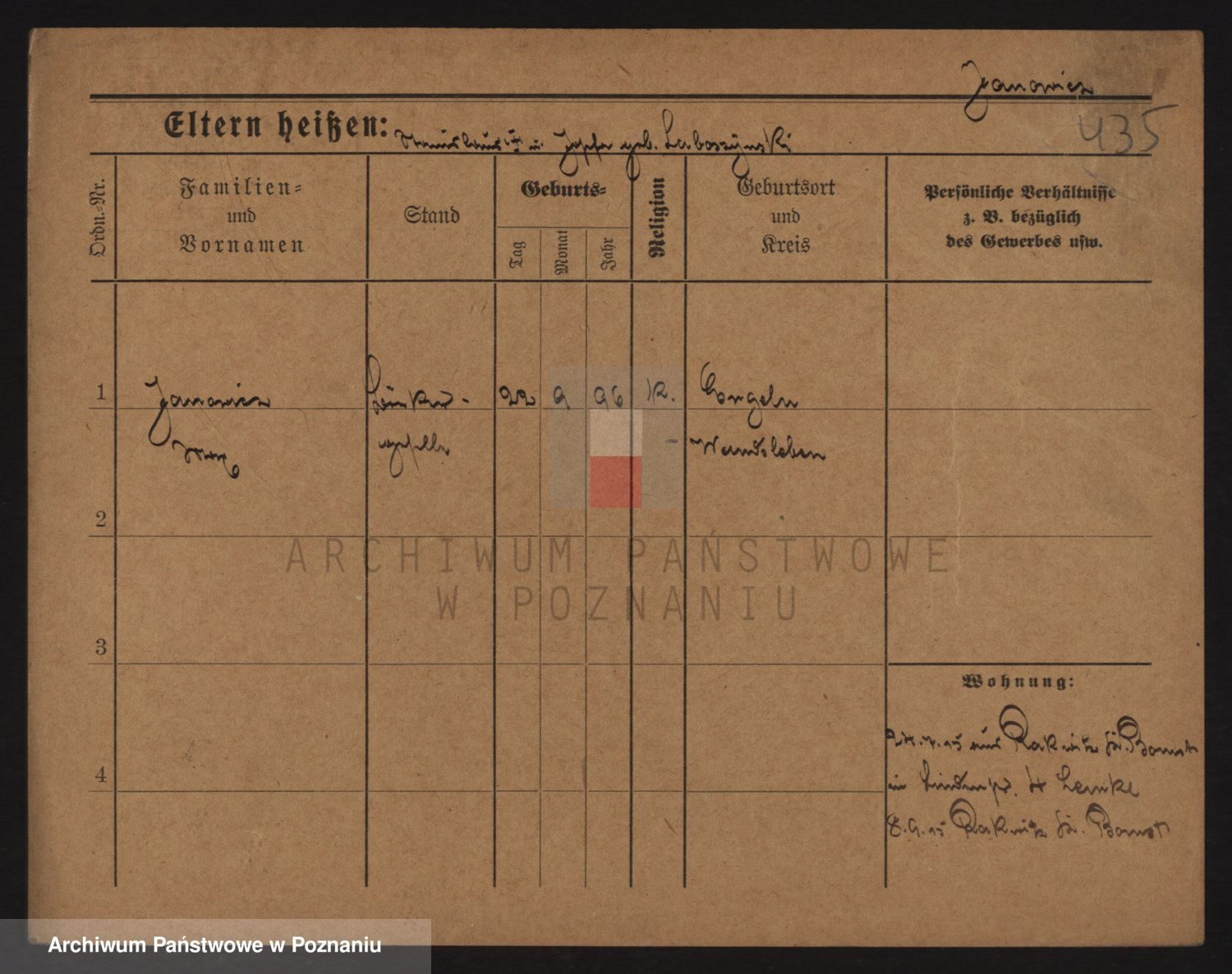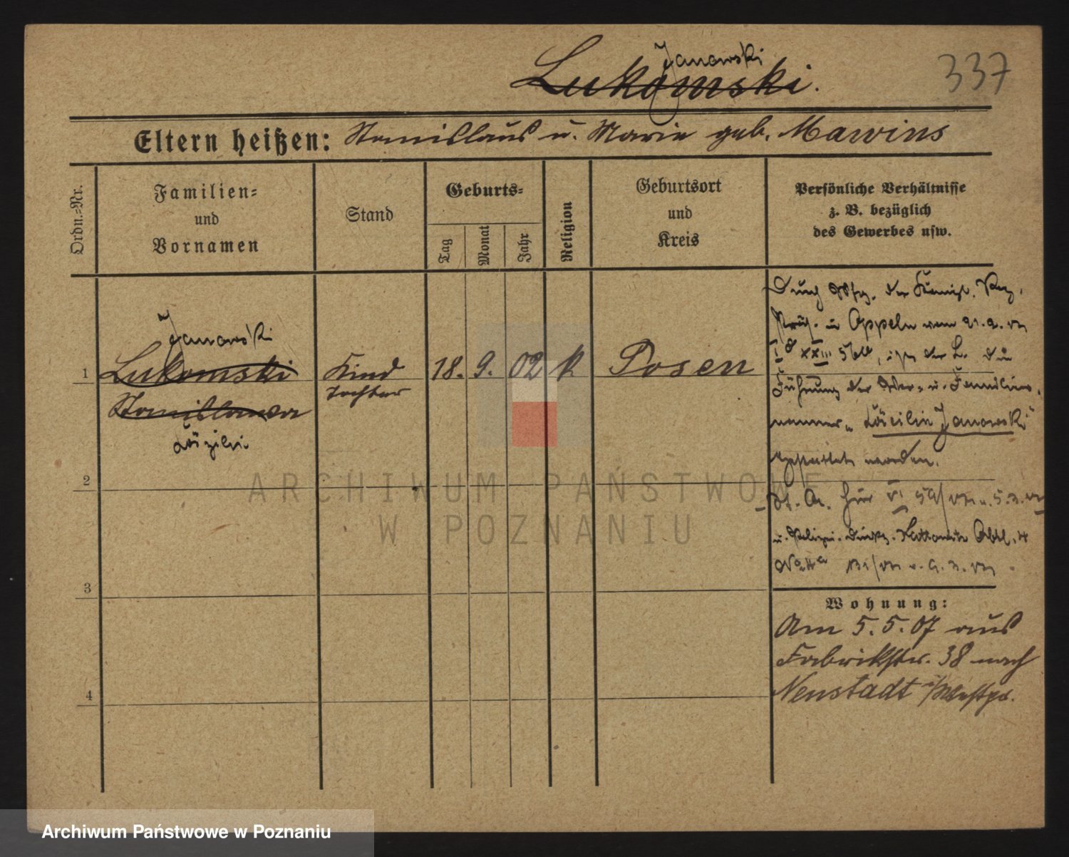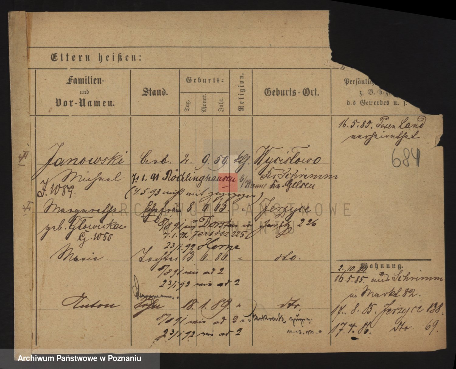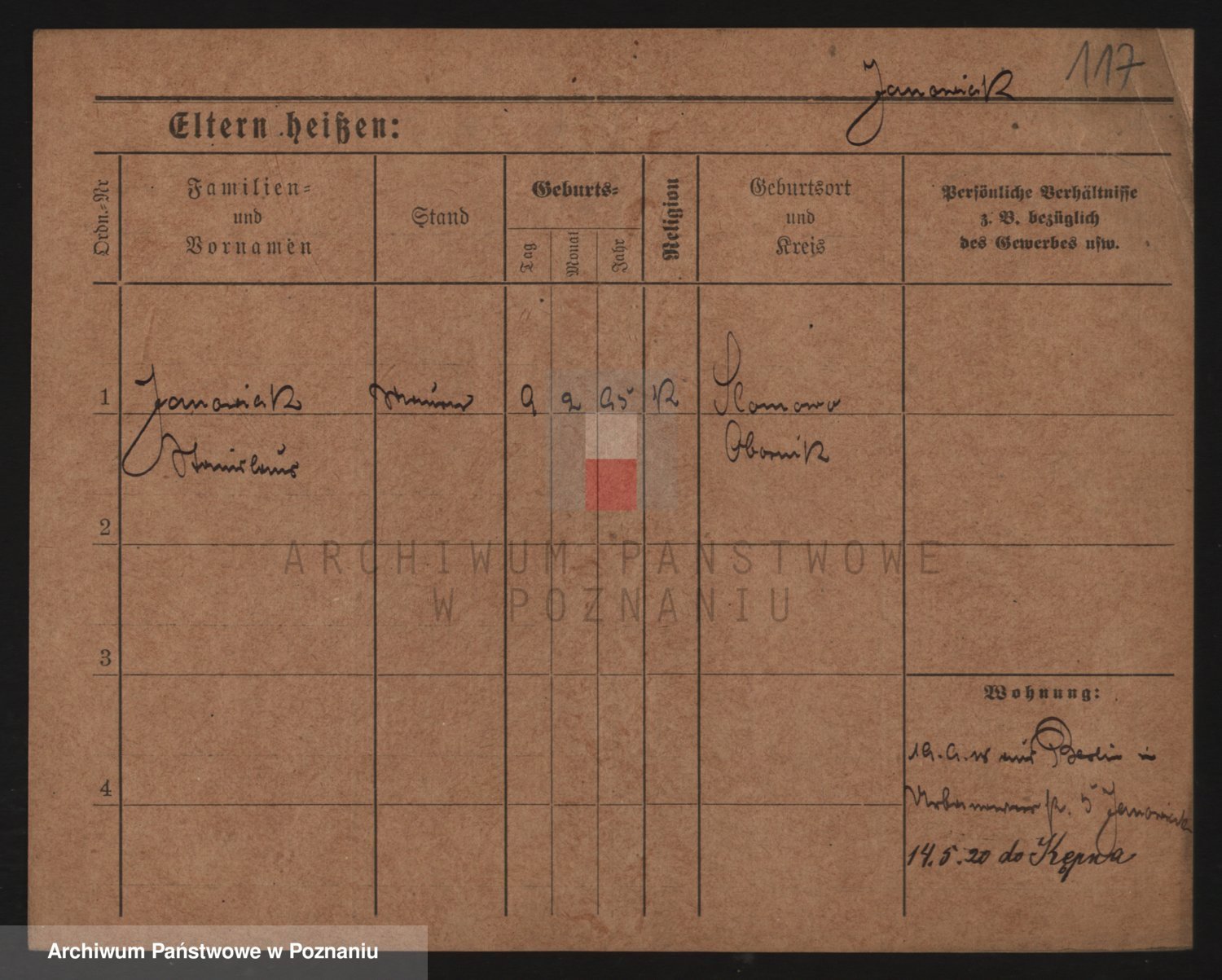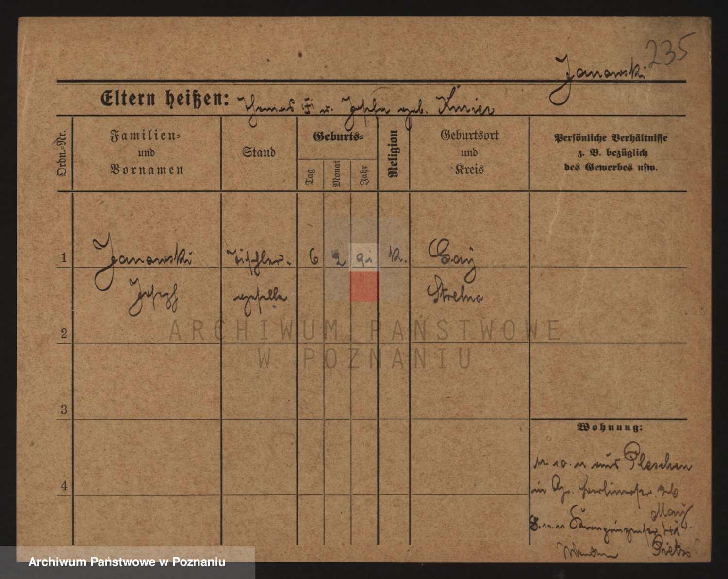 Podgląd karty osobowej dostępny jest po kliknięciu na nazwisko lub ikonkę karty. Można dokonywać powiększenia (ikony na górze) lub przechodzić między kolejnymi skanami (strzałki po bokach).