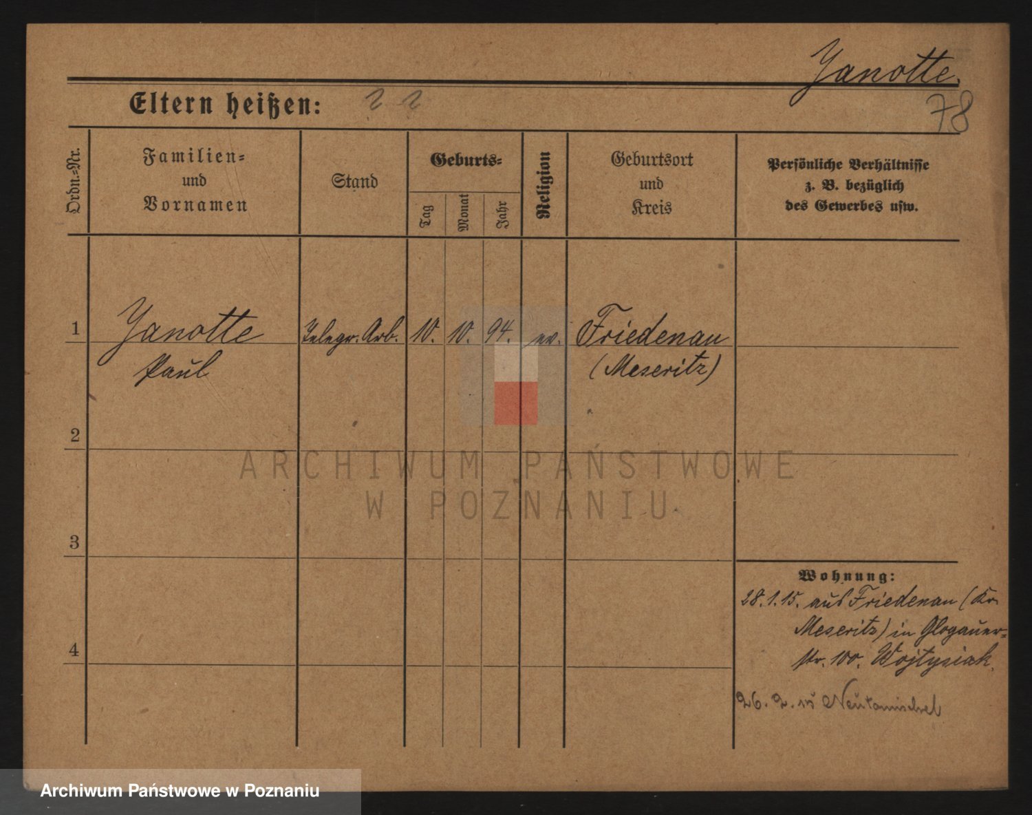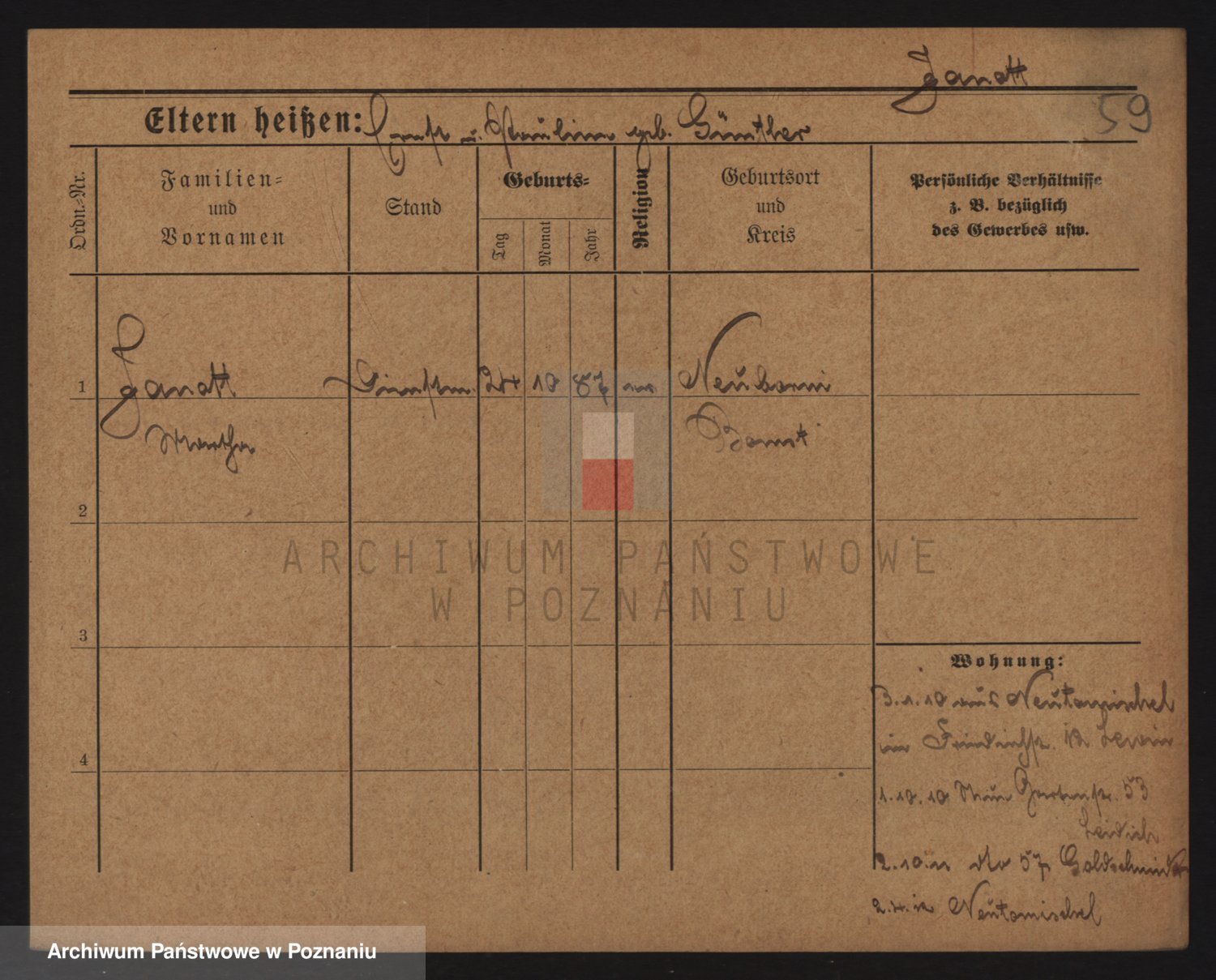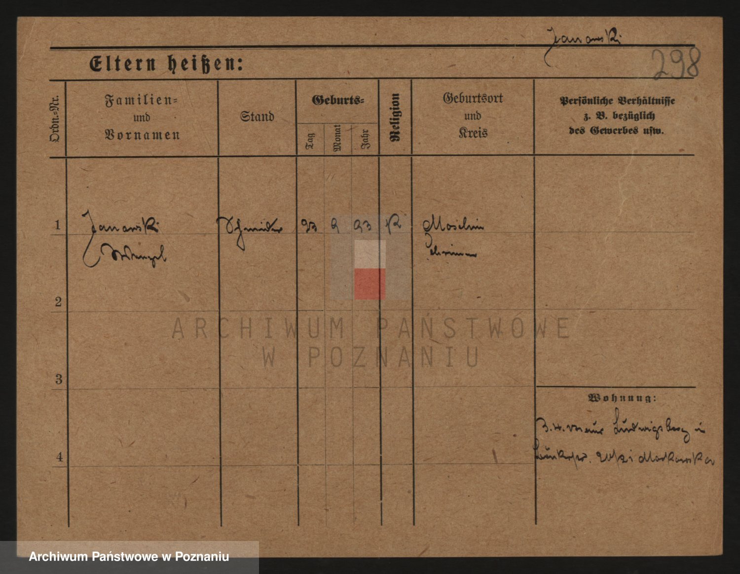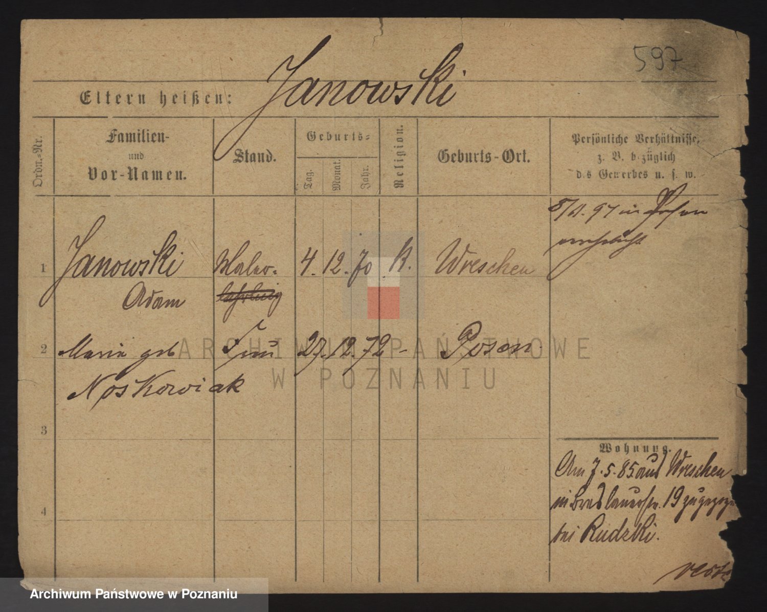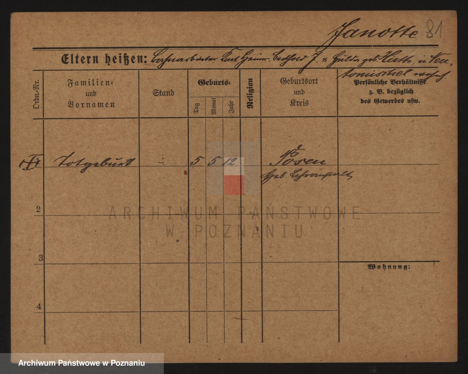Podgląd karty osobowej dostępny jest po kliknięciu na nazwisko lub ikonkę karty. Można dokonywać powiększenia (ikony na górze) lub przechodzić między kolejnymi skanami (strzałki po bokach).
