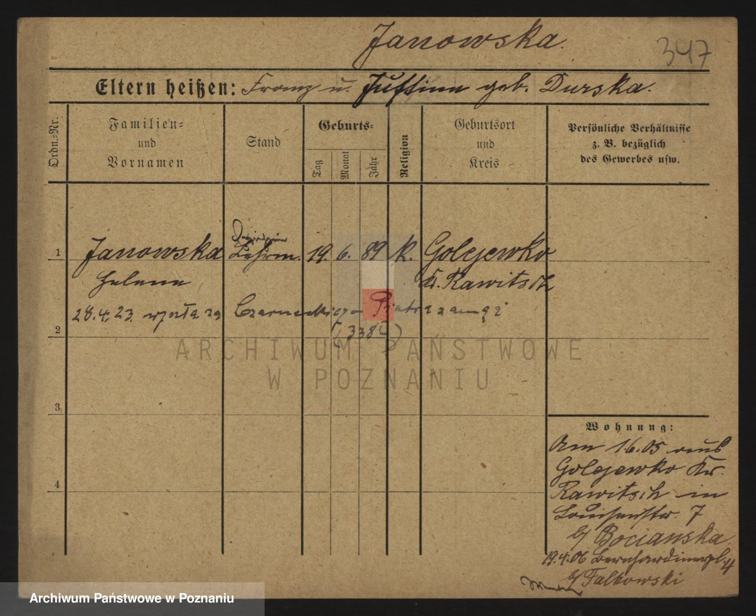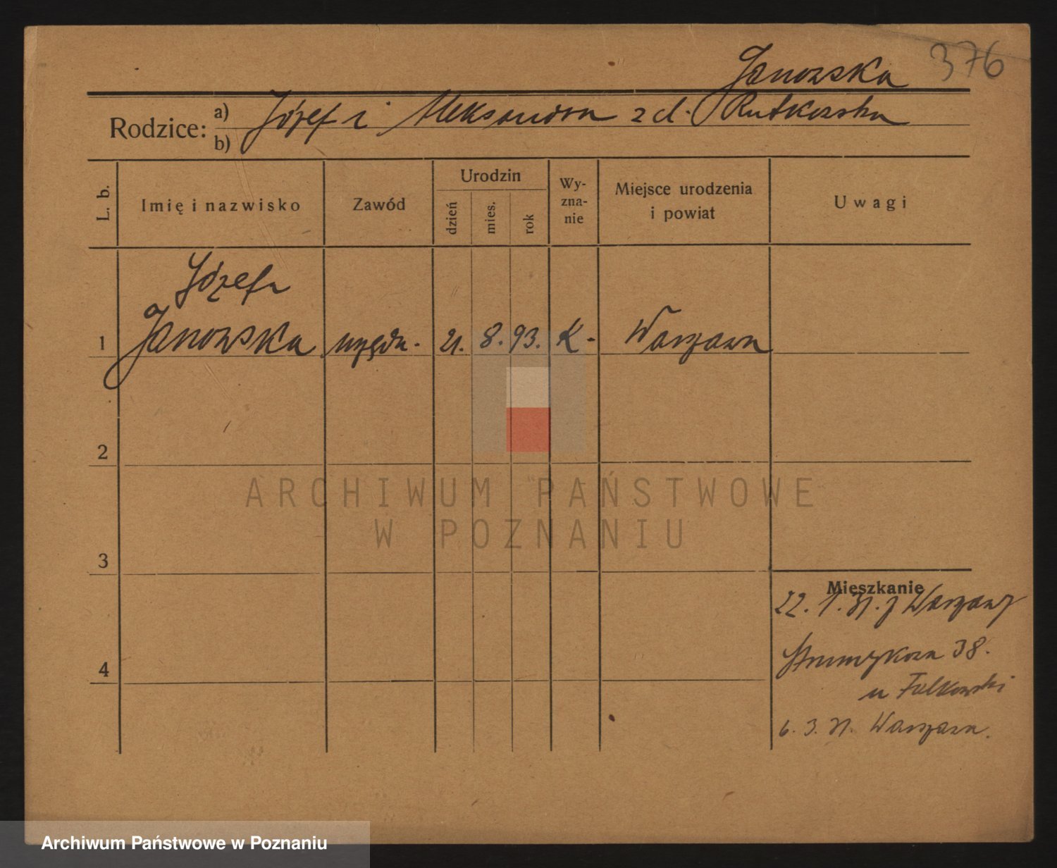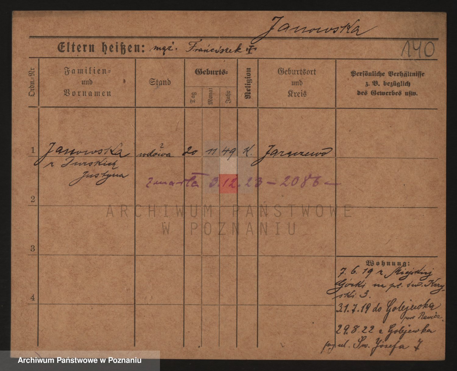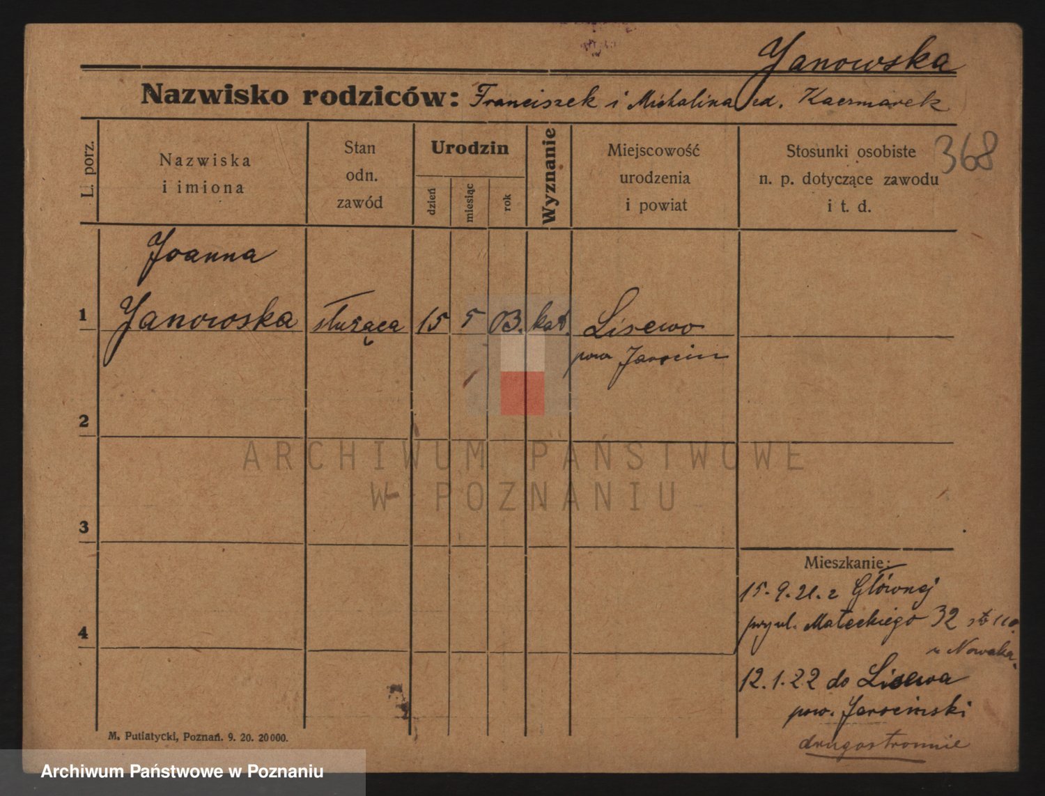 Janowska z d. Porankiewicz, Johanna